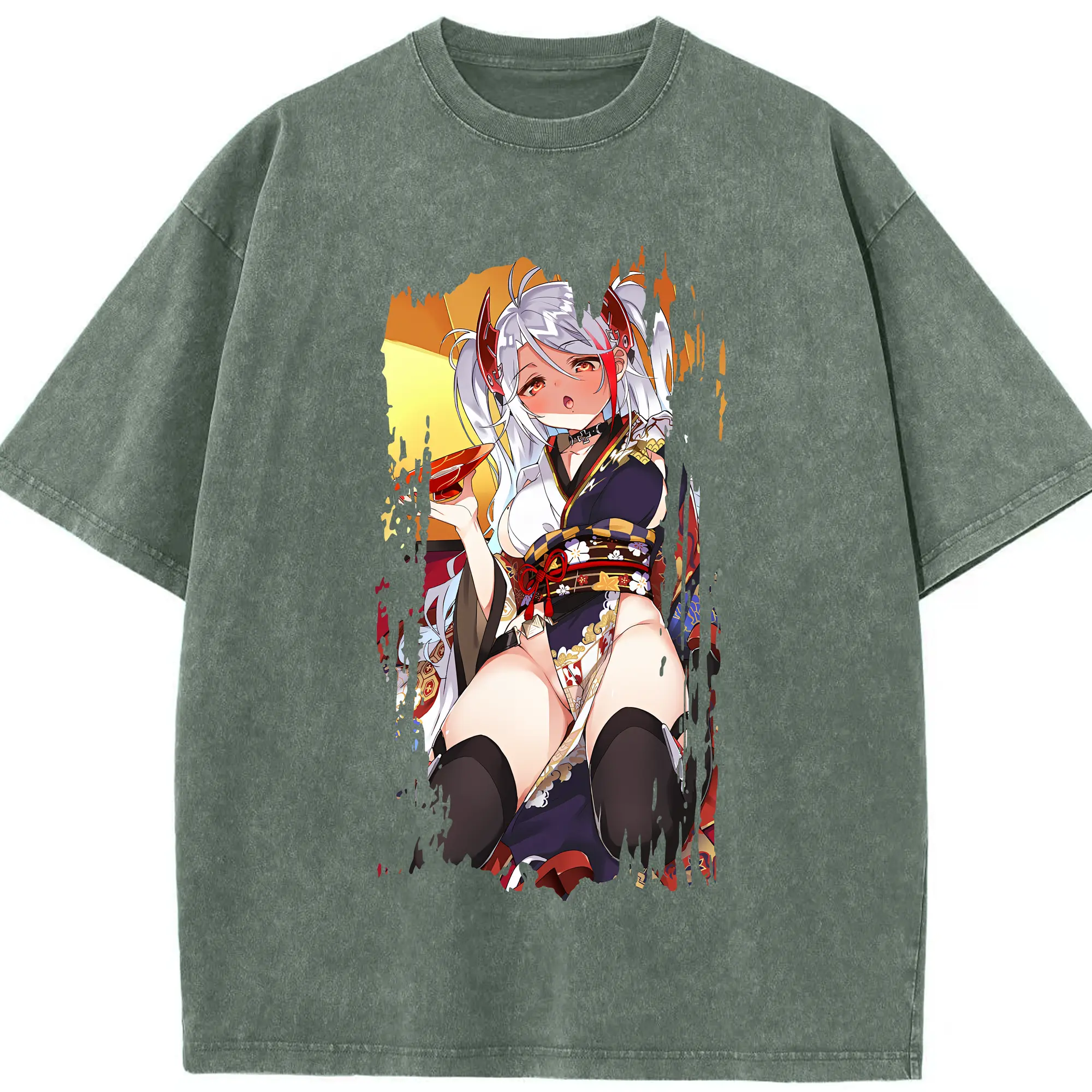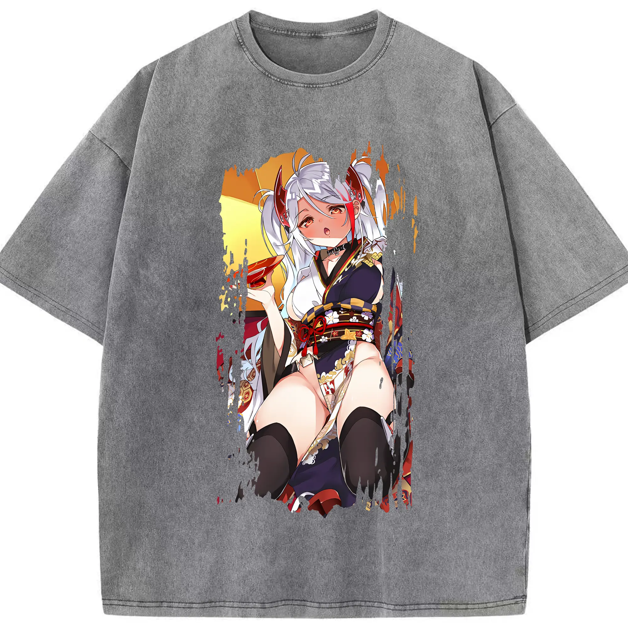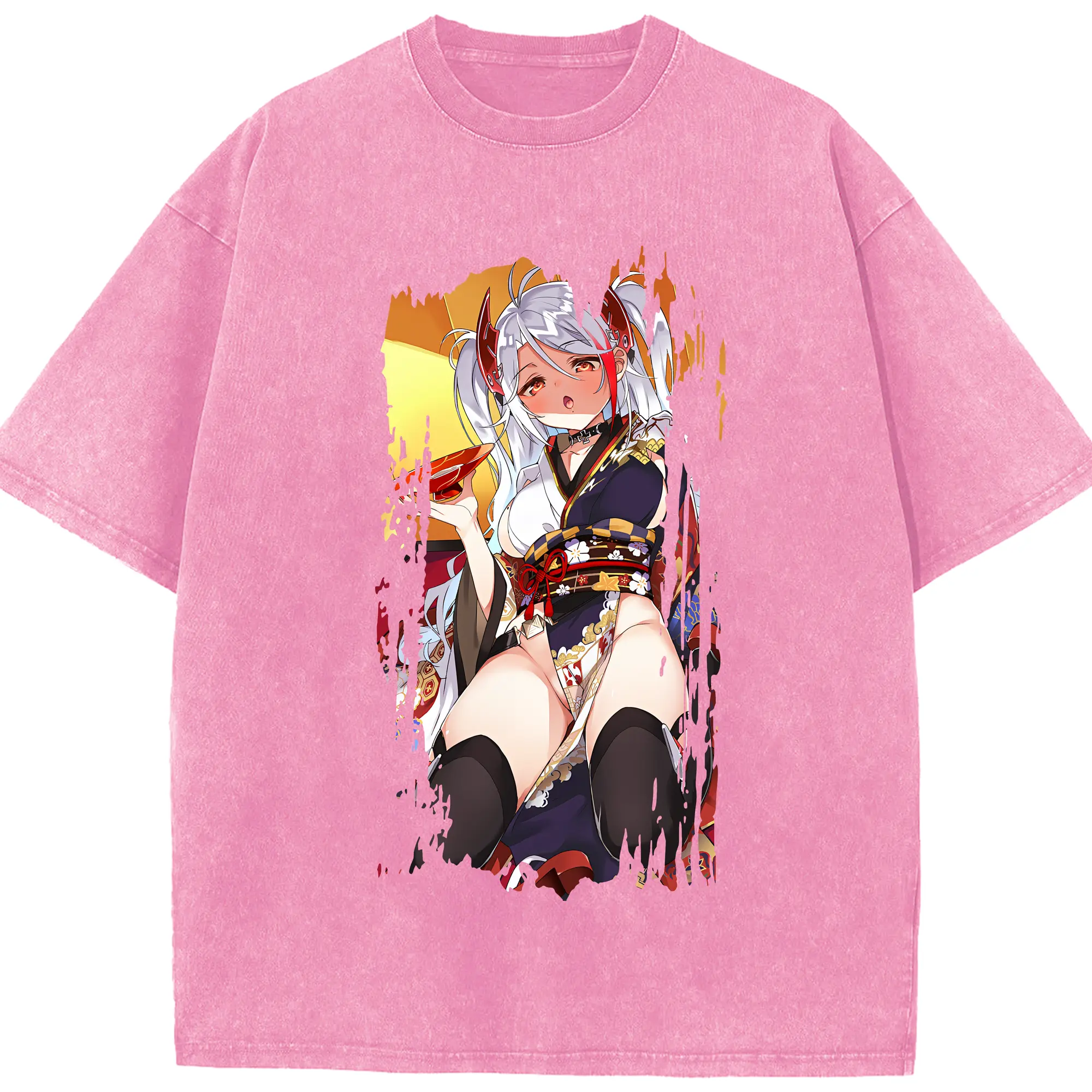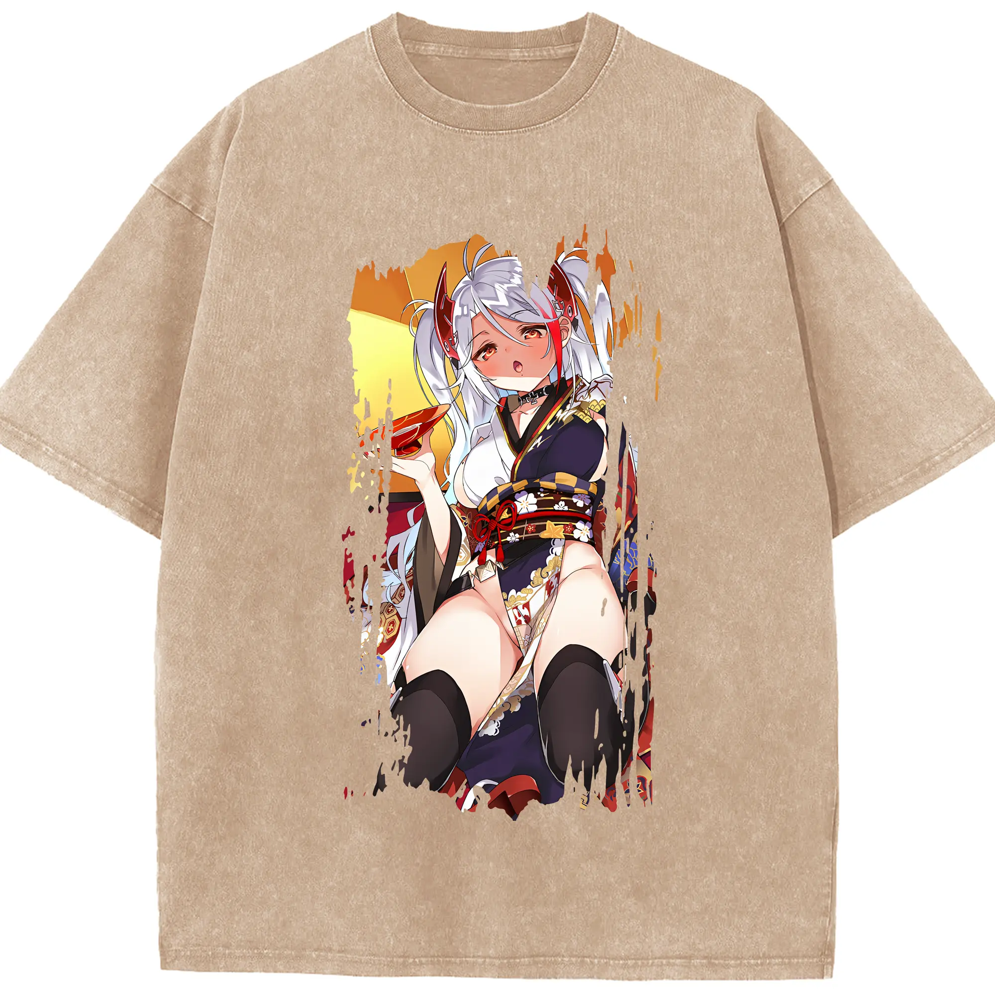 アズールレーン グッズ,プリンツ・オイゲン - 綿100% ヴィンテージ風 半袖Tシャツ ・ 背面プリント ・ 柔らか肌触り ・ 通気性 快適 ・ スポーツ カジュアル 外出用