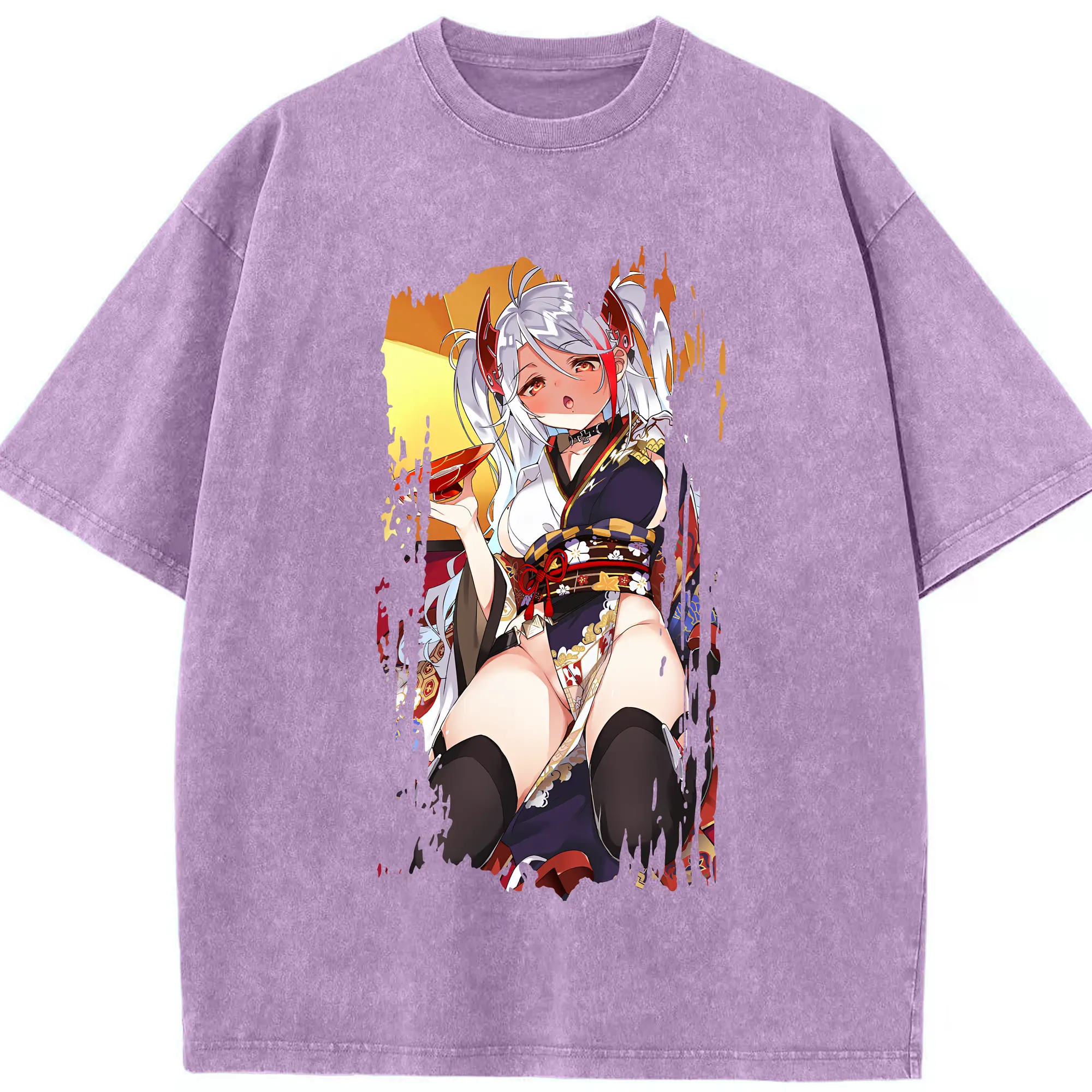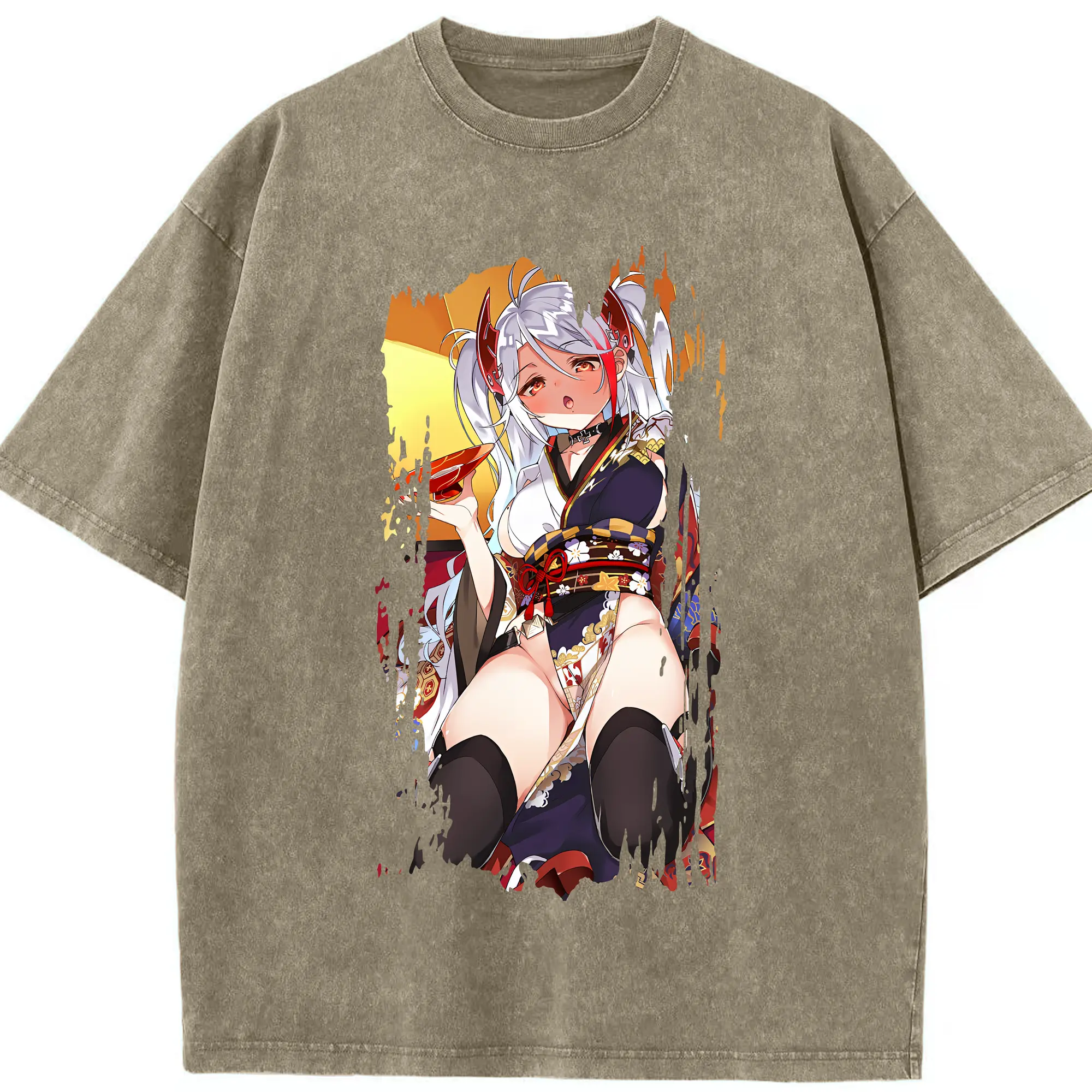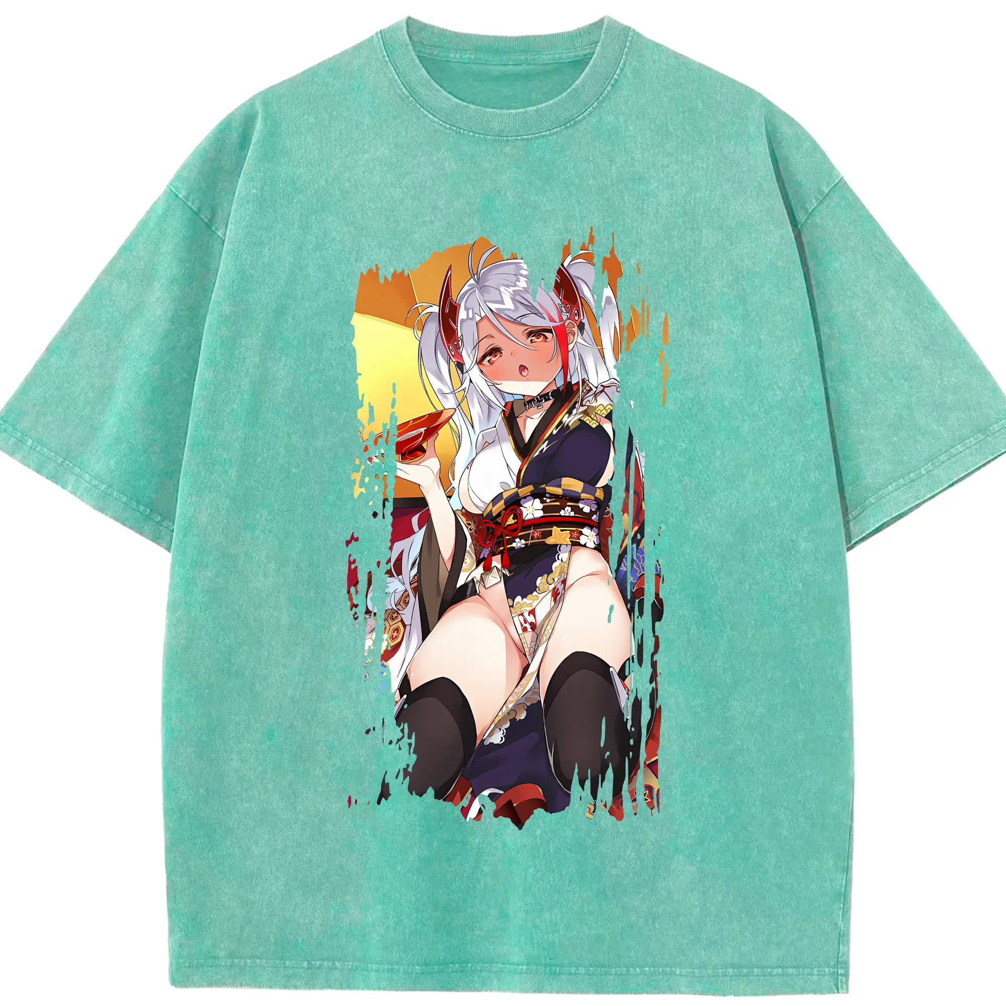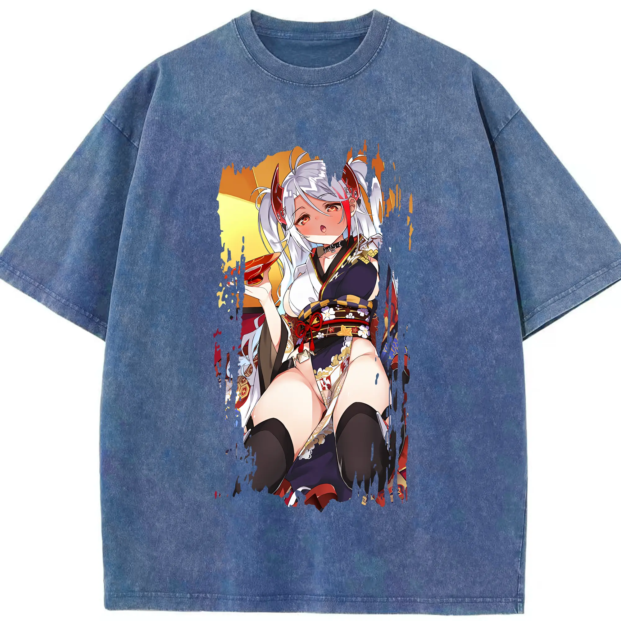アズールレーン グッズ,プリンツ・オイゲン - 綿100% ヴィンテージ風 半袖Tシャツ ・ 背面プリント ・ 柔らか肌触り ・ 通気性 快適 ・ スポーツ カジュアル 外出用