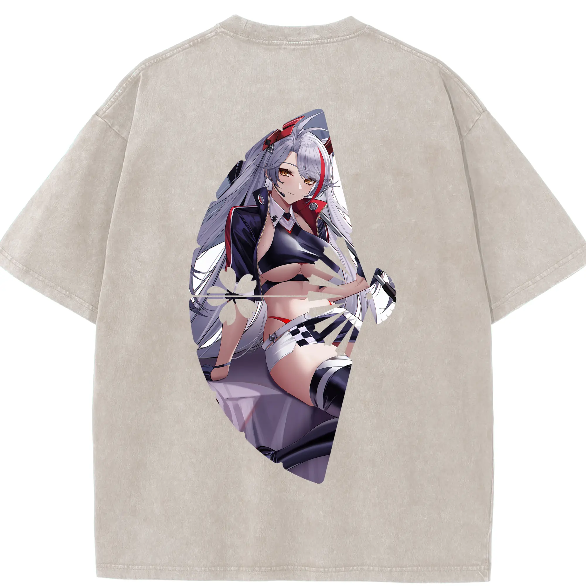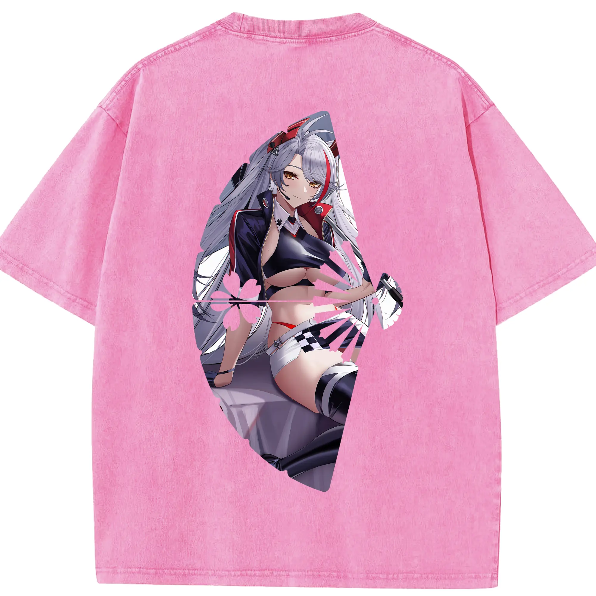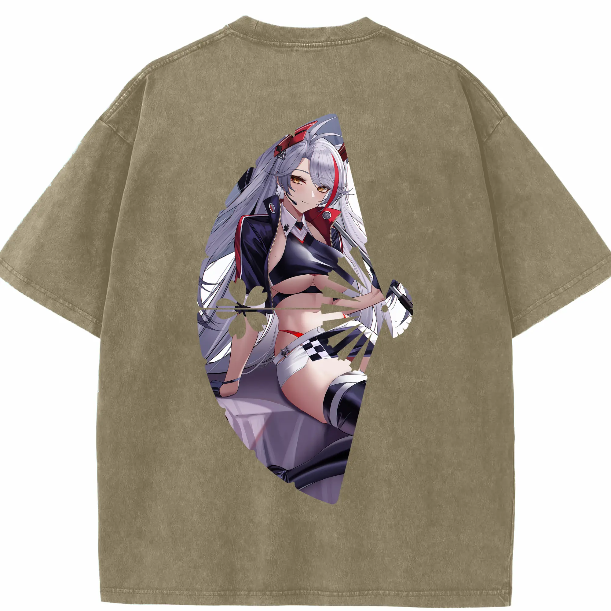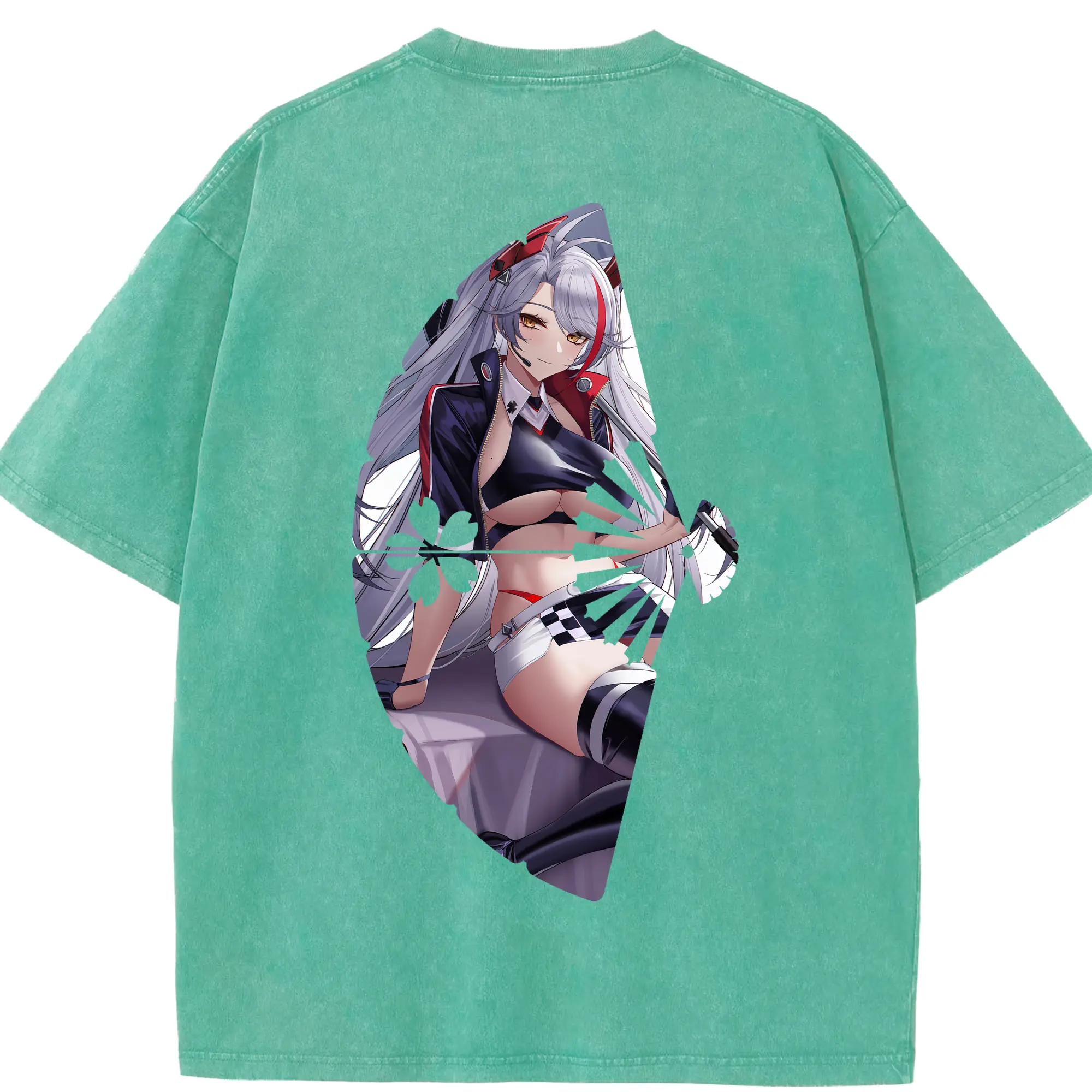 アズールレーン グッズ,プリンツ・オイゲン - 綿100% ヴィンテージ風 半袖Tシャツ ・ フロントプリント ・ 柔らか肌触り ・ 通気性 快適 ・ スポーツ カジュアル 外出用