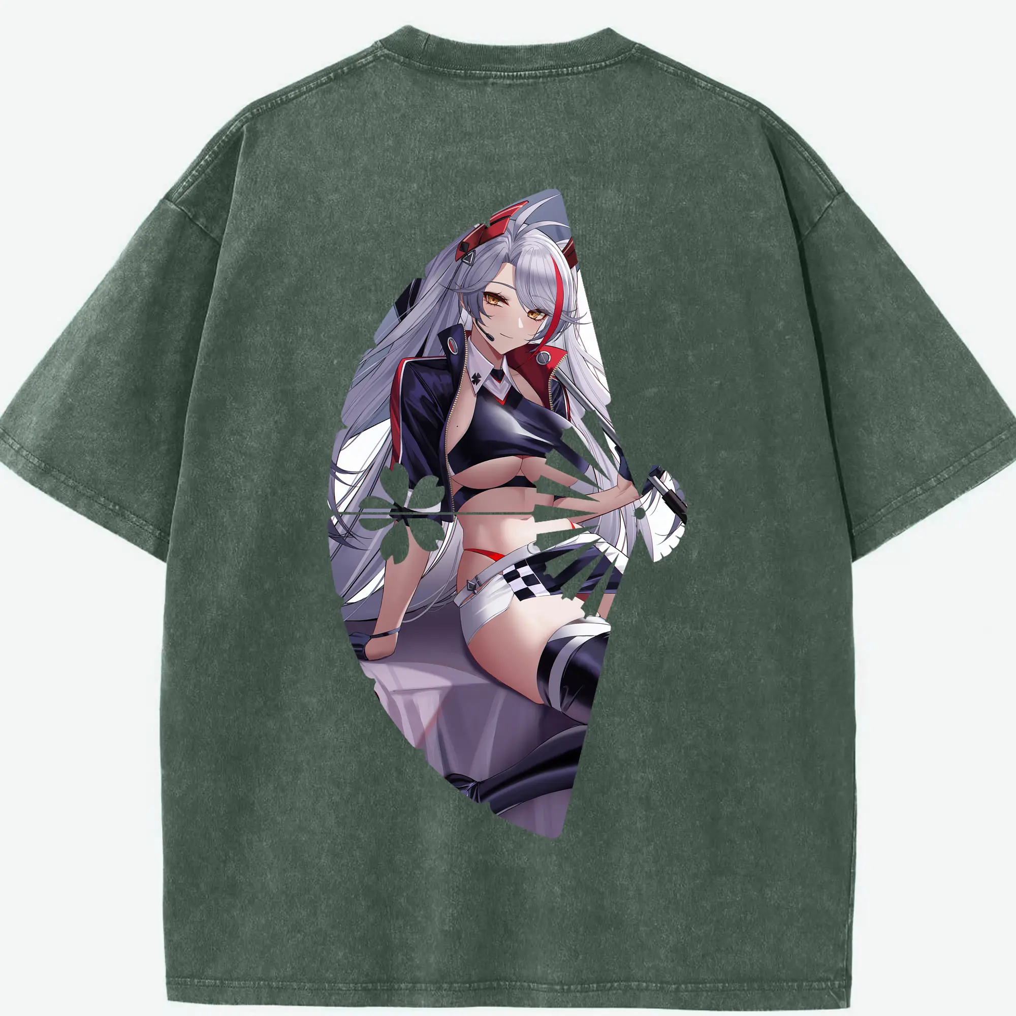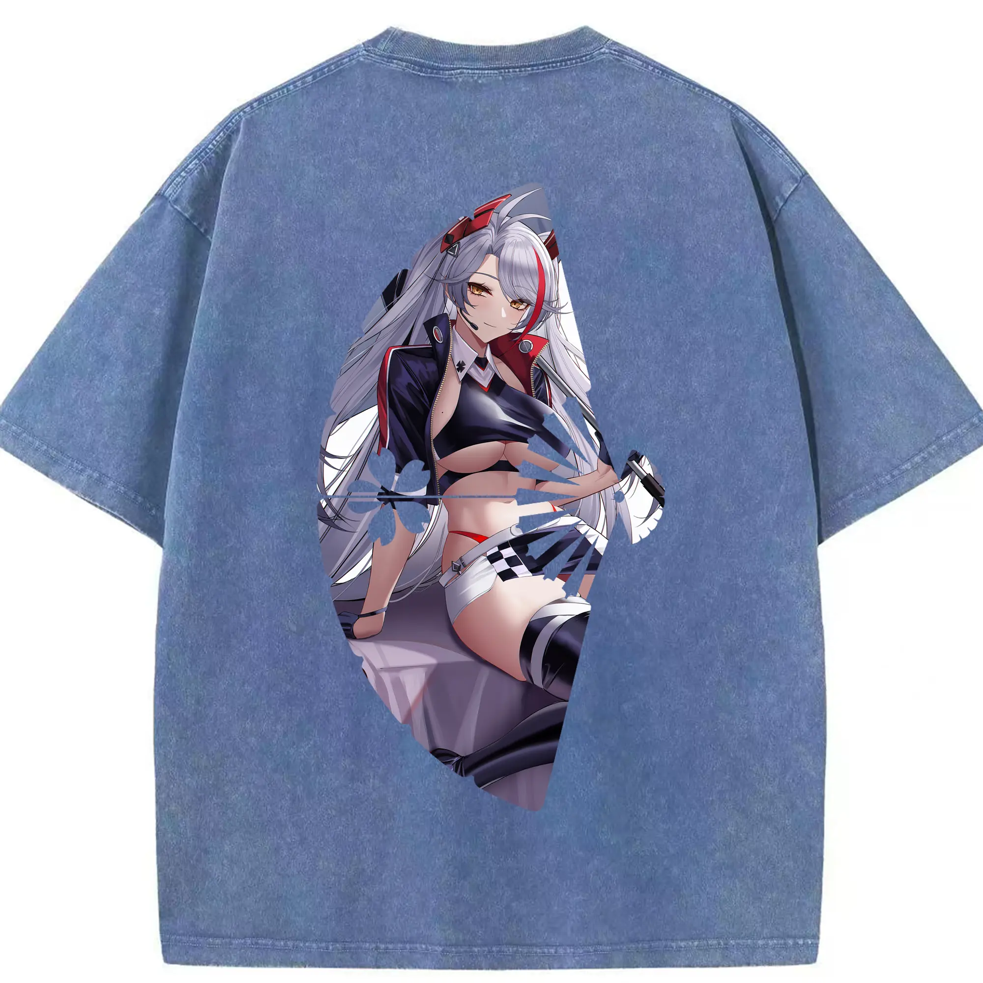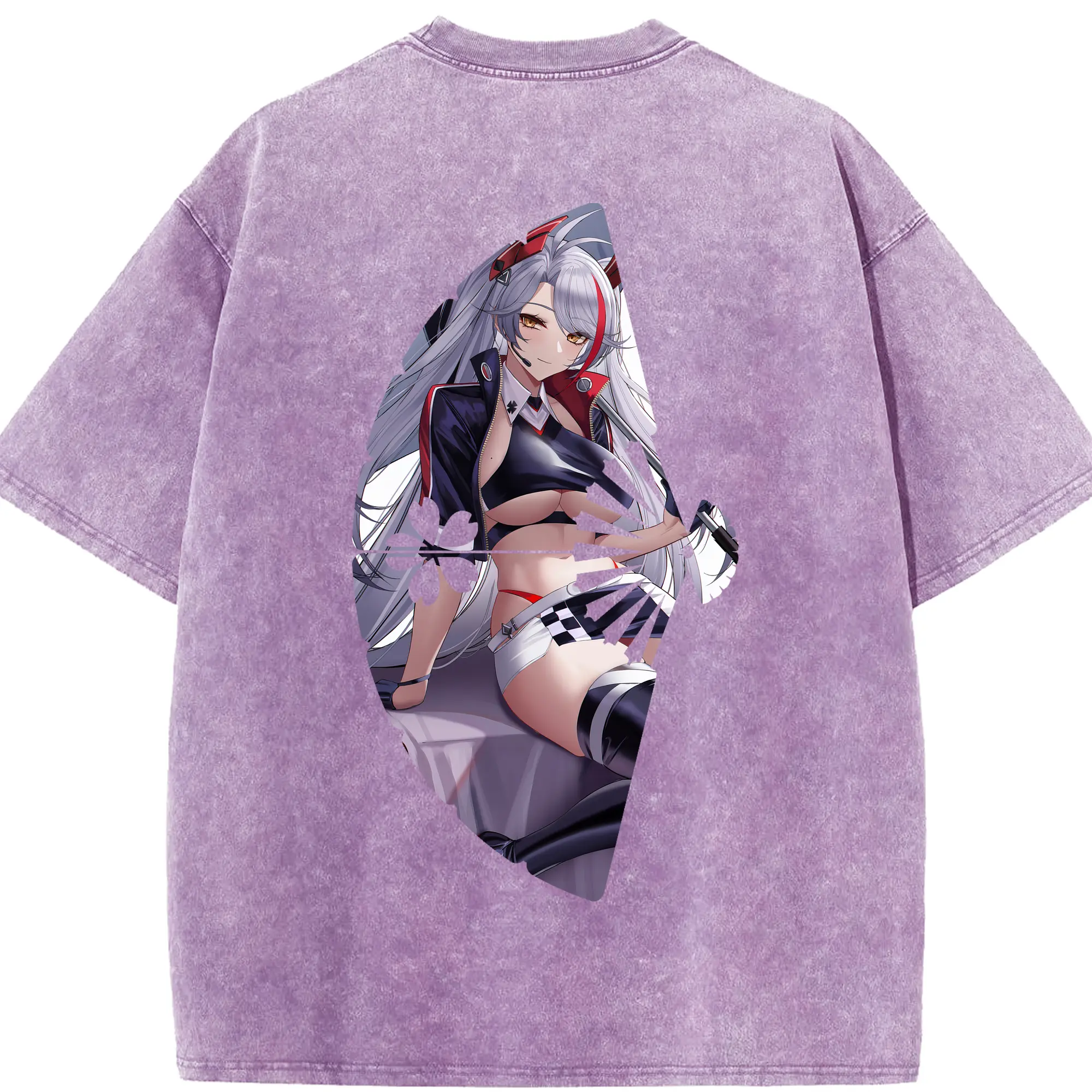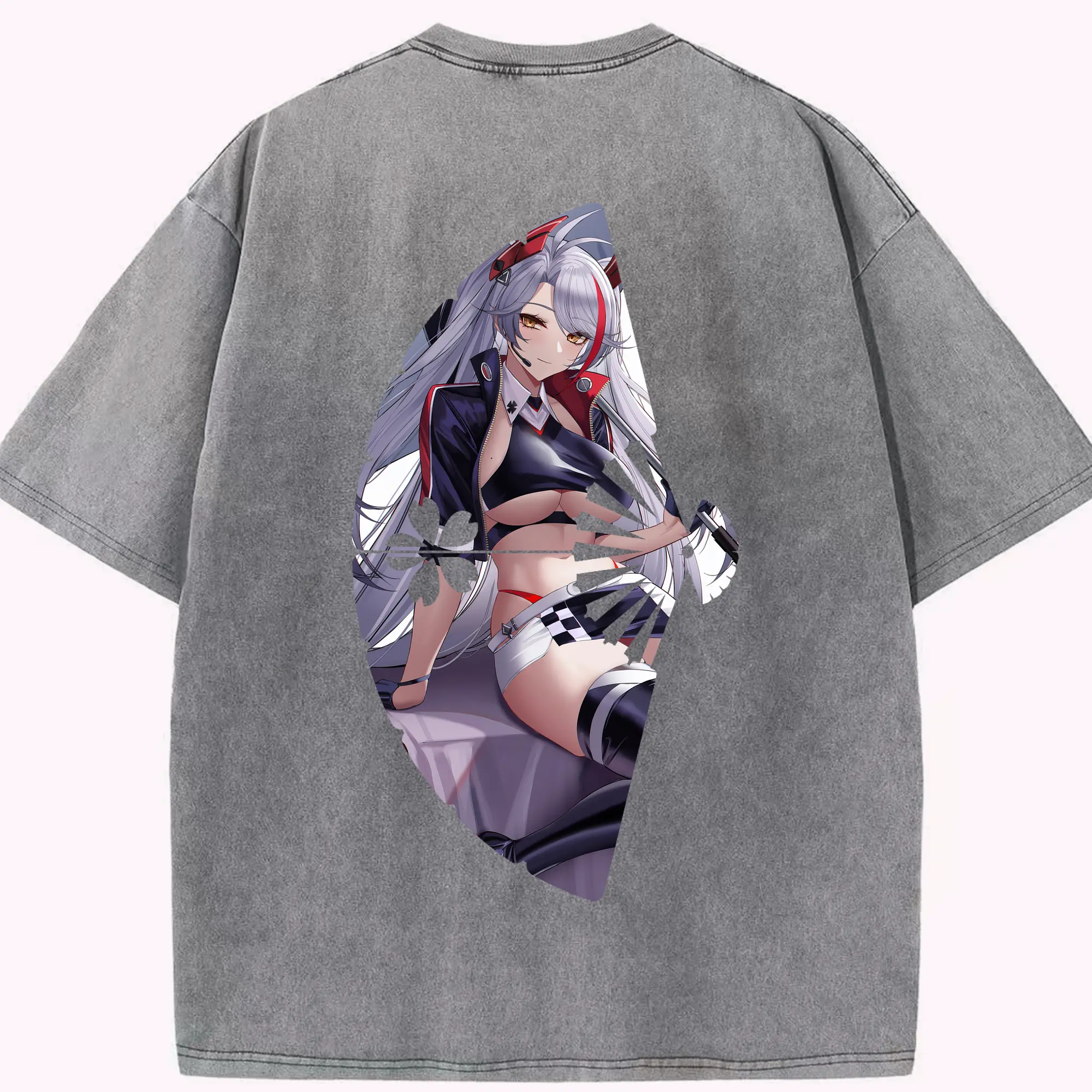 アズールレーン グッズ,プリンツ・オイゲン - 綿100% ヴィンテージ風 半袖Tシャツ ・ フロントプリント ・ 柔らか肌触り ・ 通気性 快適 ・ スポーツ カジュアル 外出用