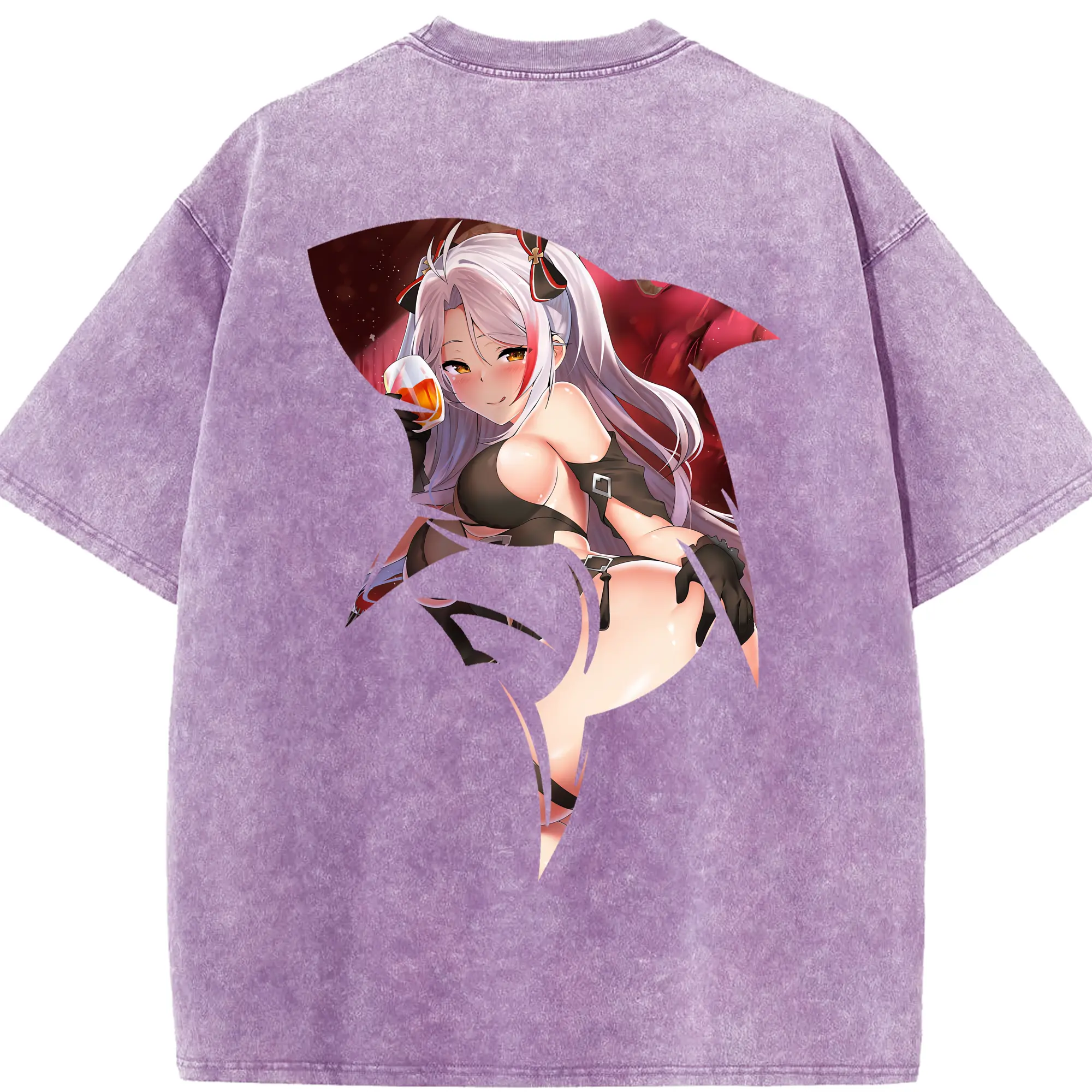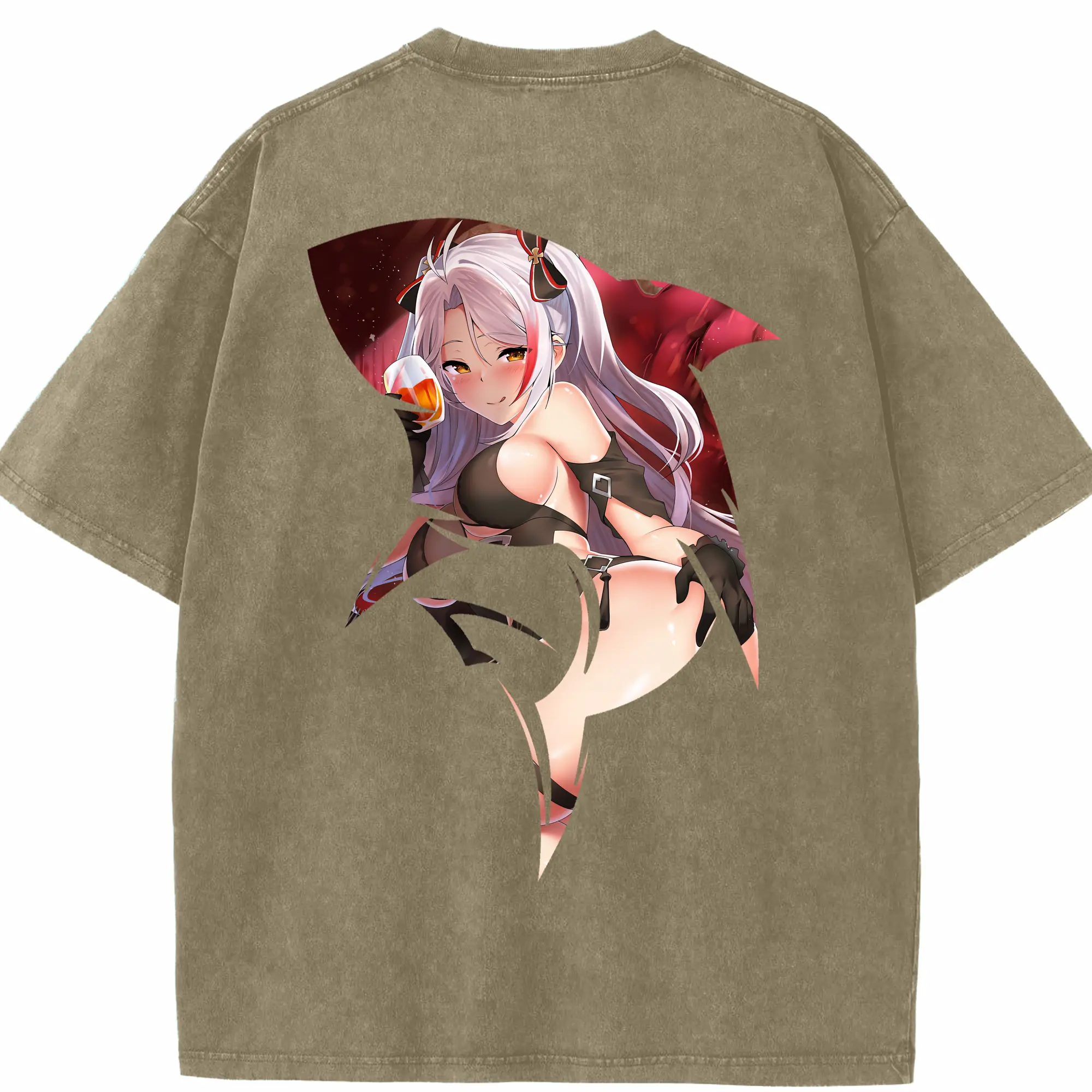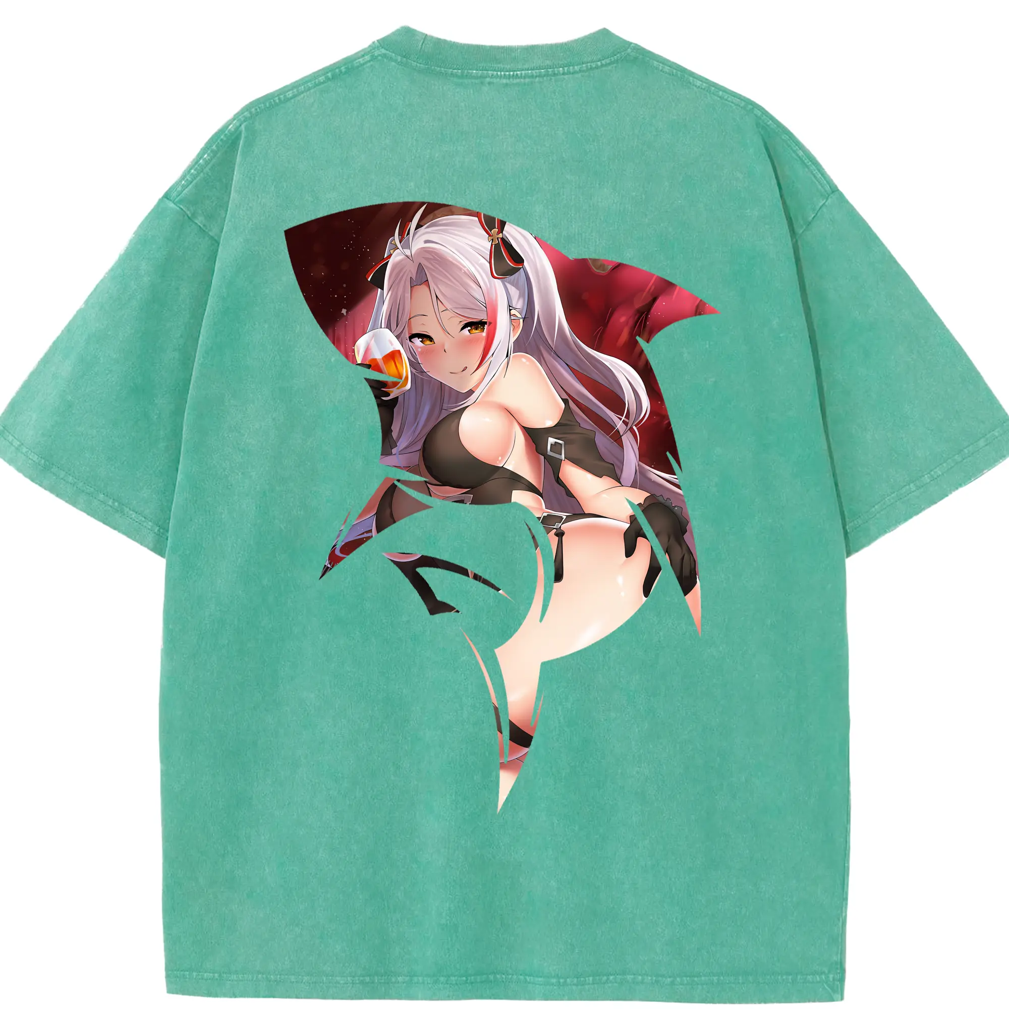 アズールレーン グッズ,プリンツ・オイゲン - 綿100% ヴィンテージ風 半袖Tシャツ ・ フロントプリント ・ 柔らか肌触り ・ 通気性 快適 ・ スポーツ カジュアル 外出用