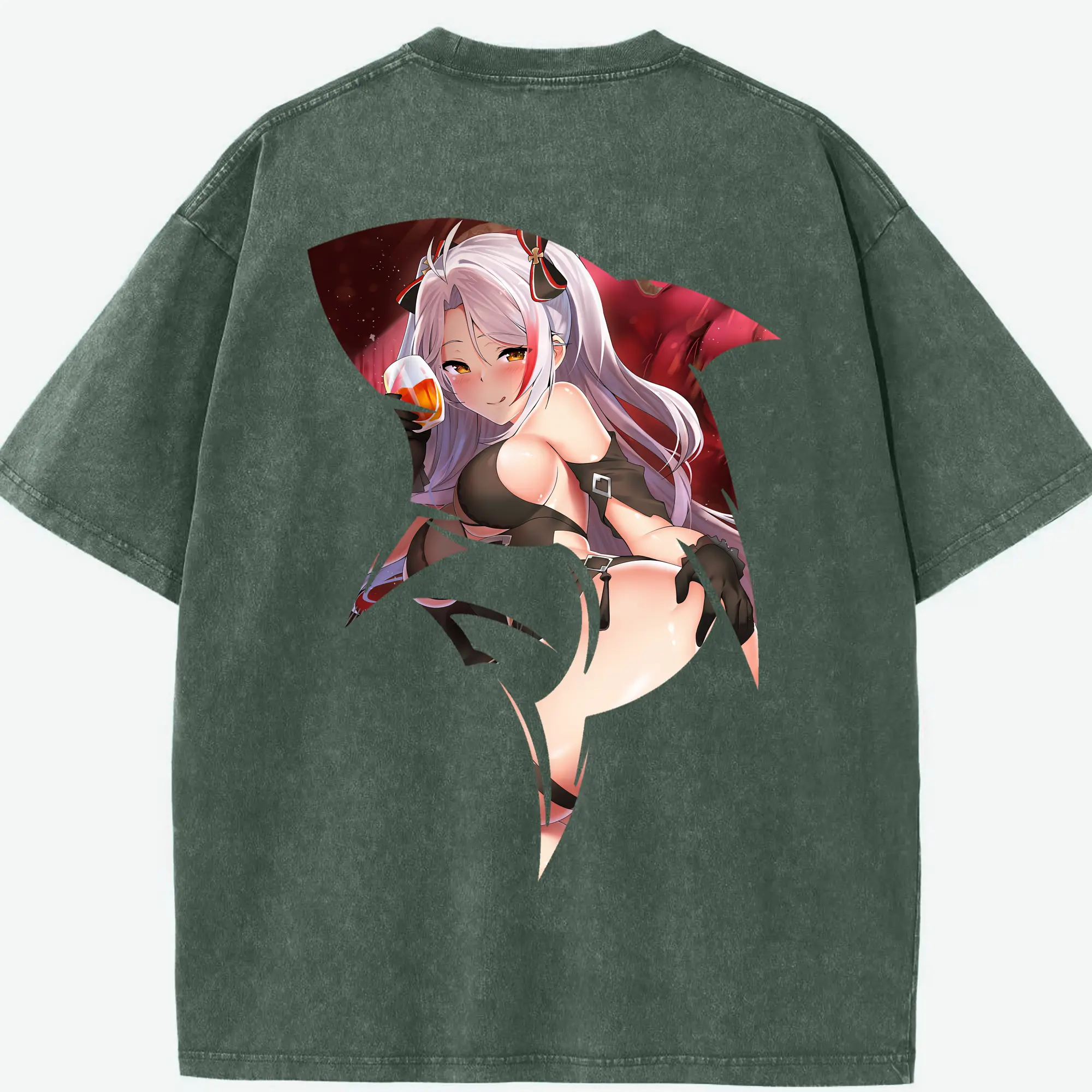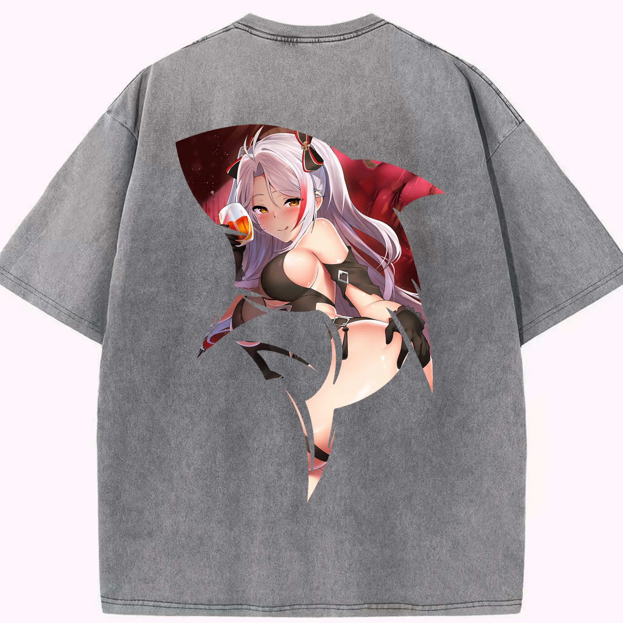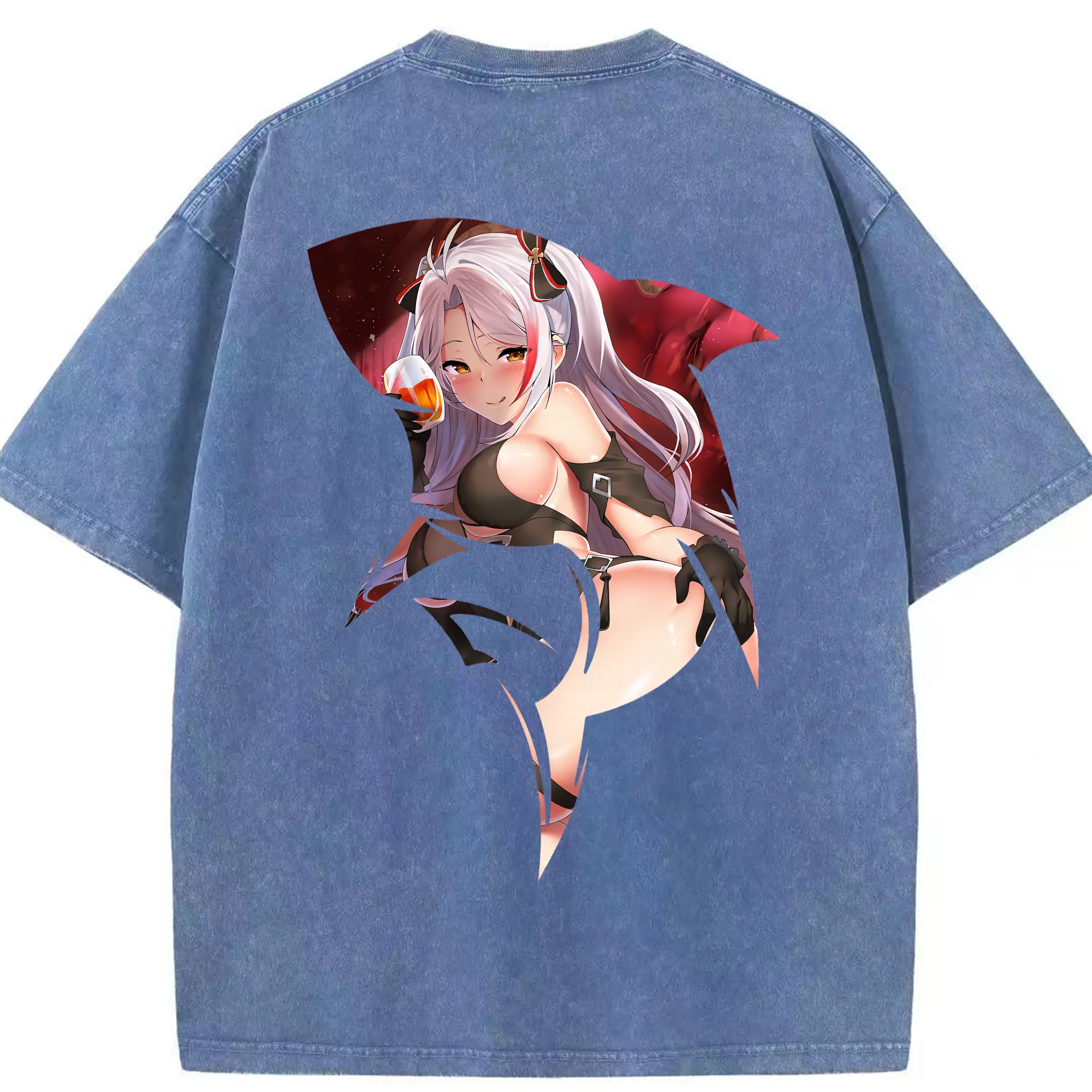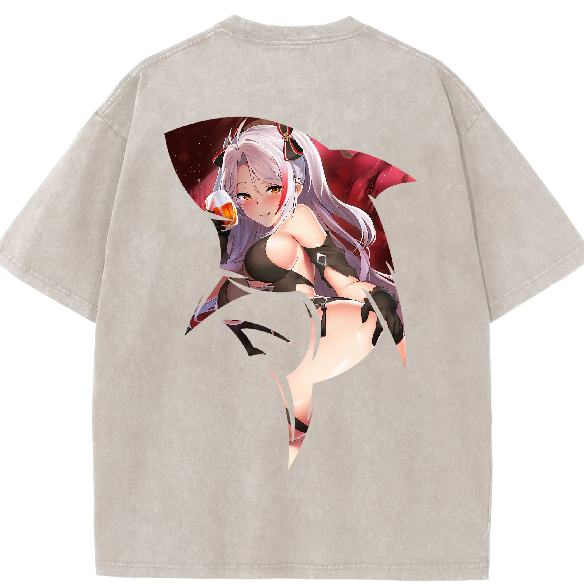 アズールレーン グッズ,プリンツ・オイゲン - 綿100% ヴィンテージ風 半袖Tシャツ ・ フロントプリント ・ 柔らか肌触り ・ 通気性 快適 ・ スポーツ カジュアル 外出用