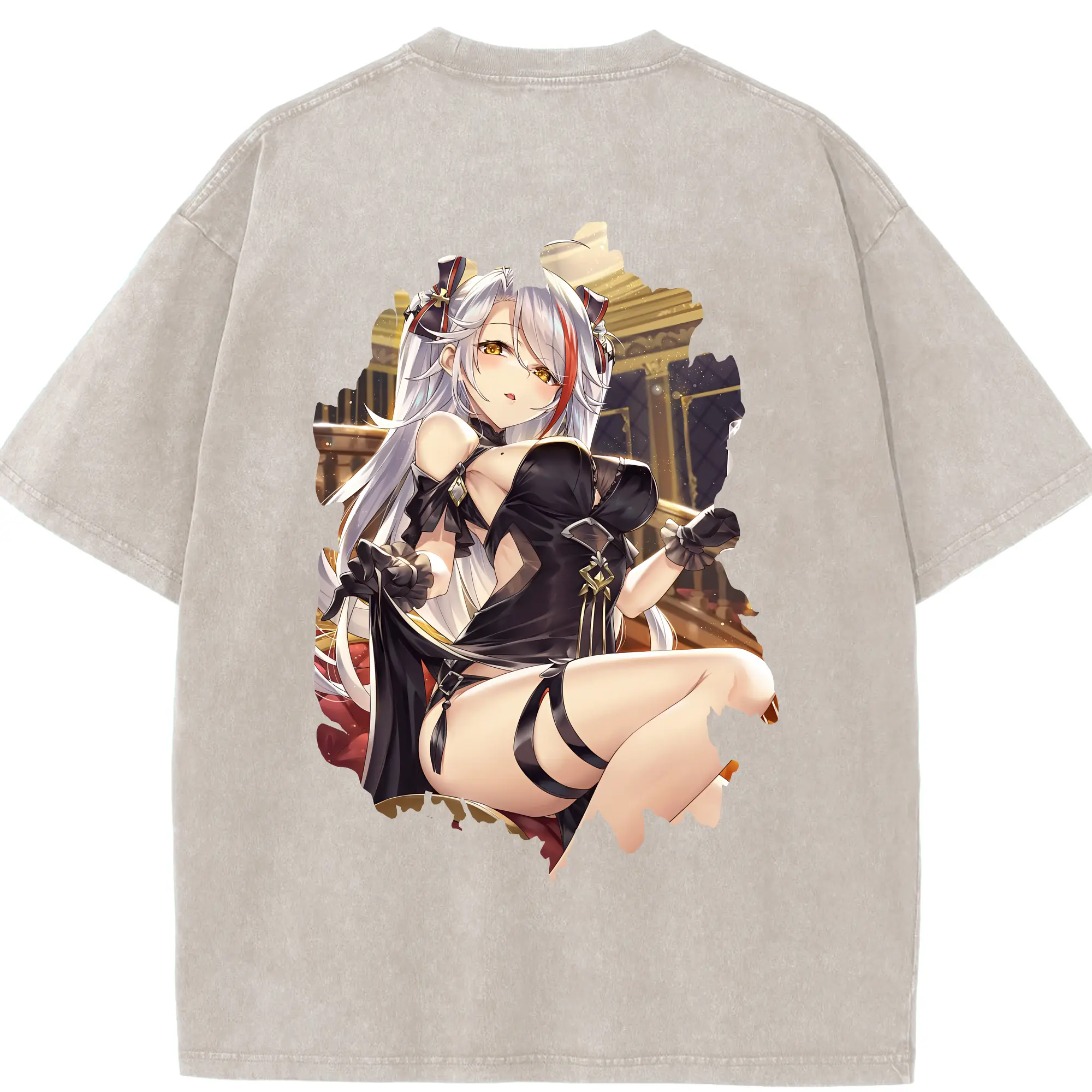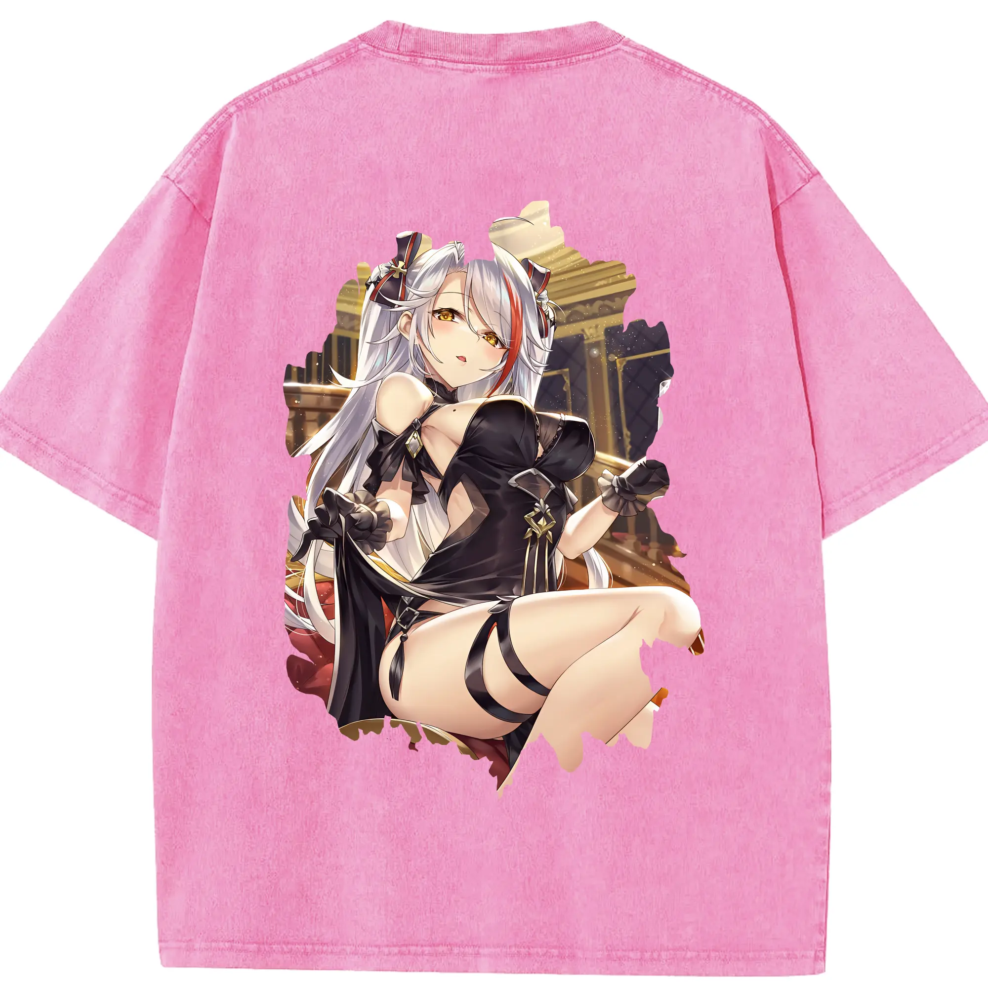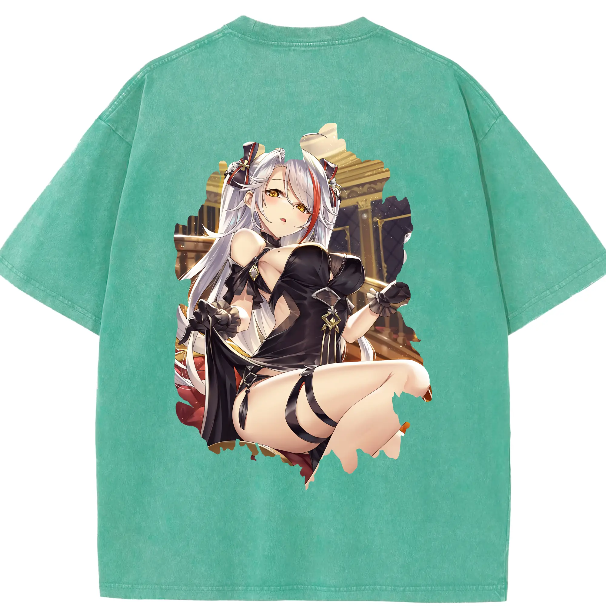 アズールレーン グッズ,プリンツ・オイゲン - 綿100% ヴィンテージ風 半袖Tシャツ ・ フロントプリント ・ 柔らか肌触り ・ 通気性 快適 ・ スポーツ カジュアル 外出用