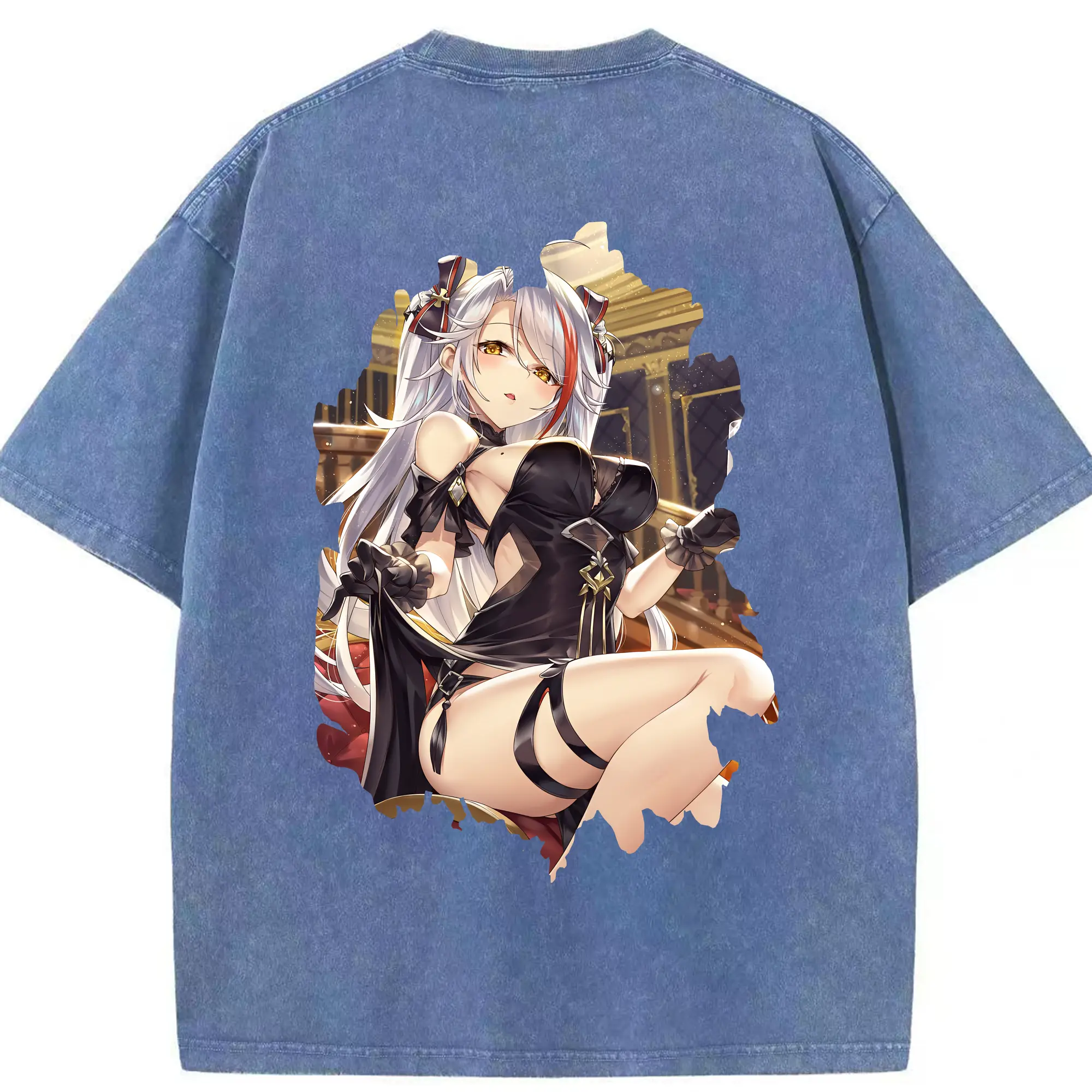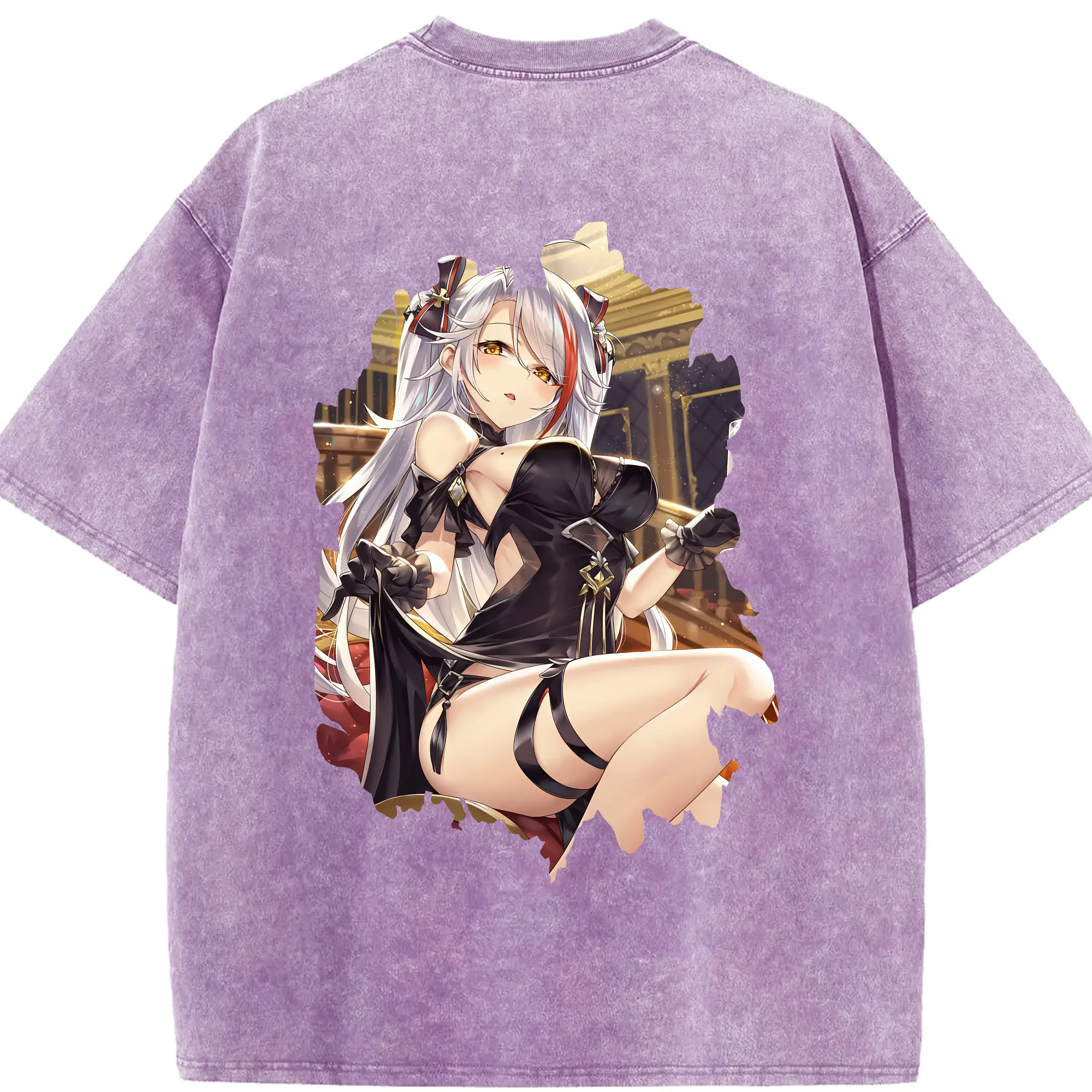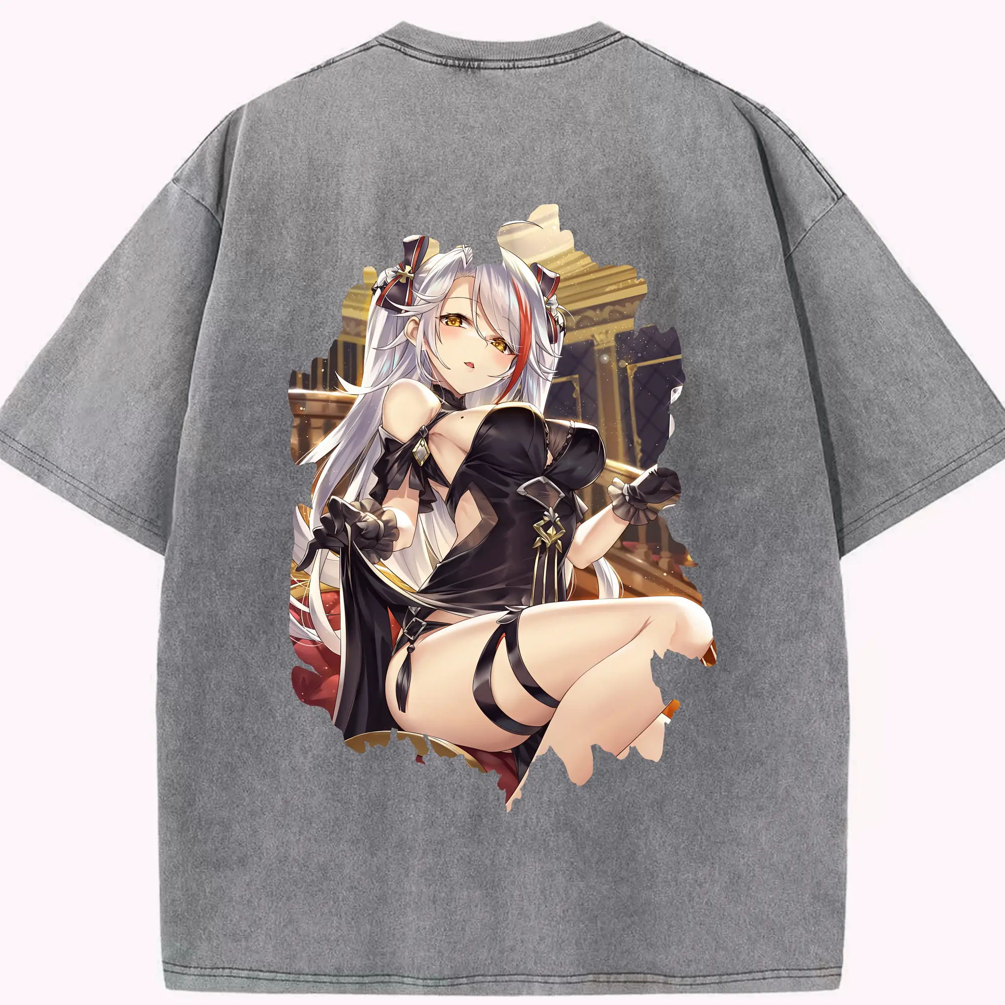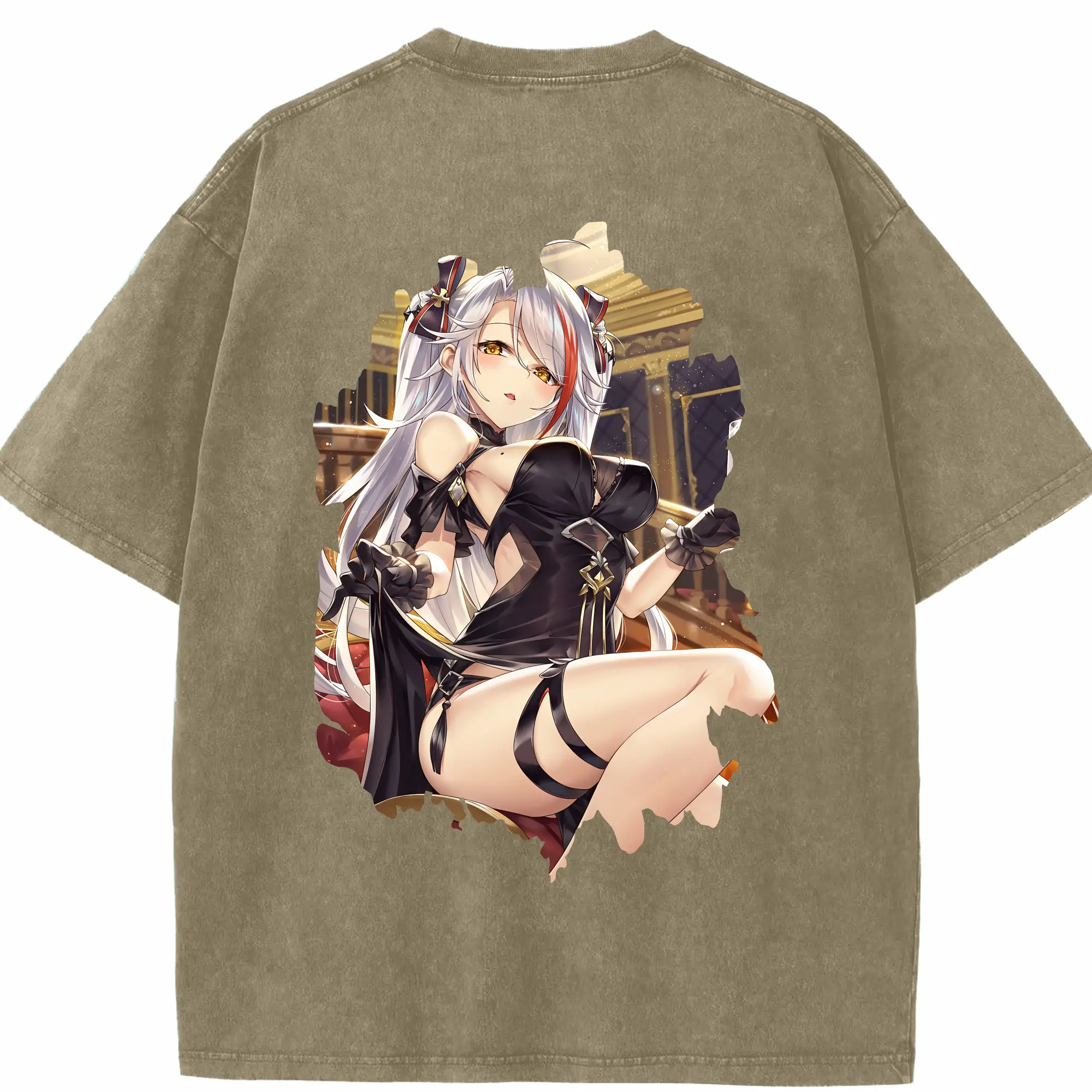 アズールレーン グッズ,プリンツ・オイゲン - 綿100% ヴィンテージ風 半袖Tシャツ ・ フロントプリント ・ 柔らか肌触り ・ 通気性 快適 ・ スポーツ カジュアル 外出用