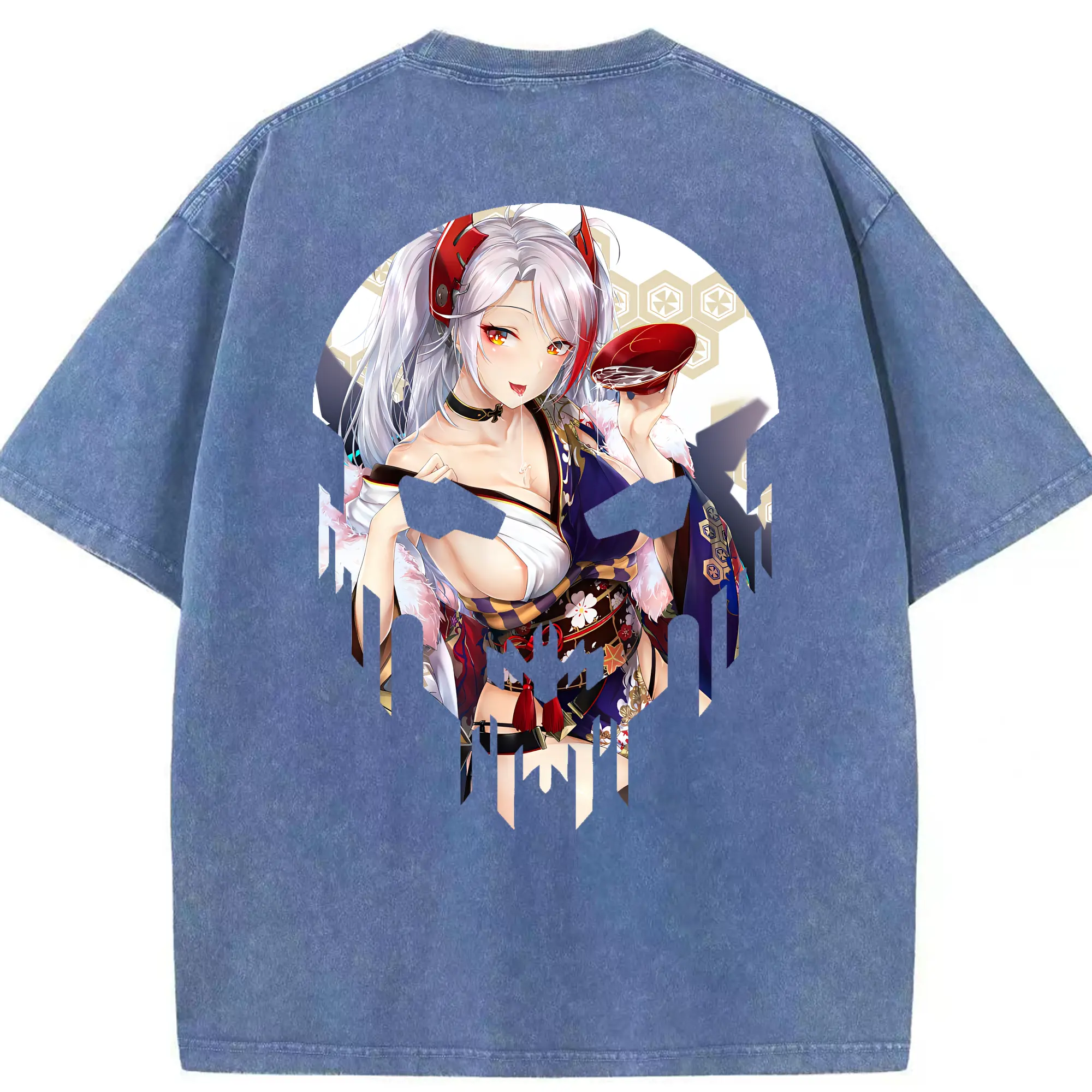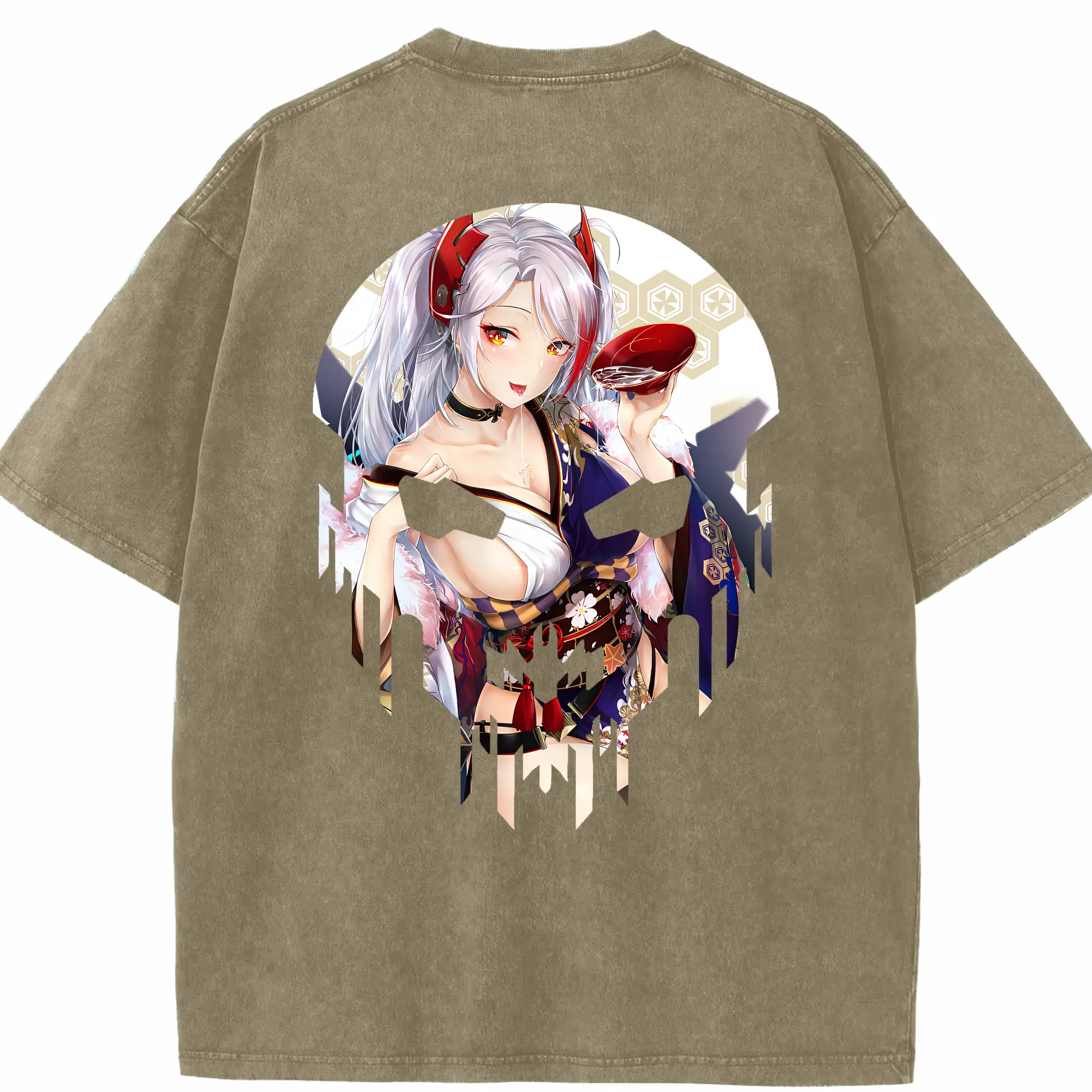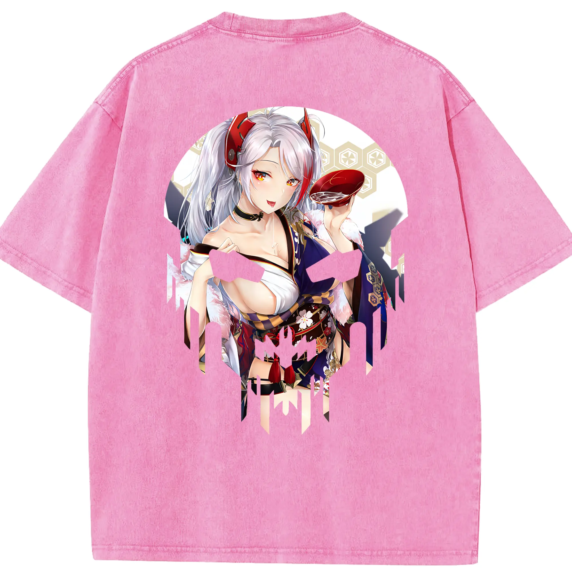 アズールレーン グッズ,プリンツ・オイゲン - 綿100% ヴィンテージ風 半袖Tシャツ ・ フロントプリント ・ 柔らか肌触り ・ 通気性 快適 ・ スポーツ カジュアル 外出用