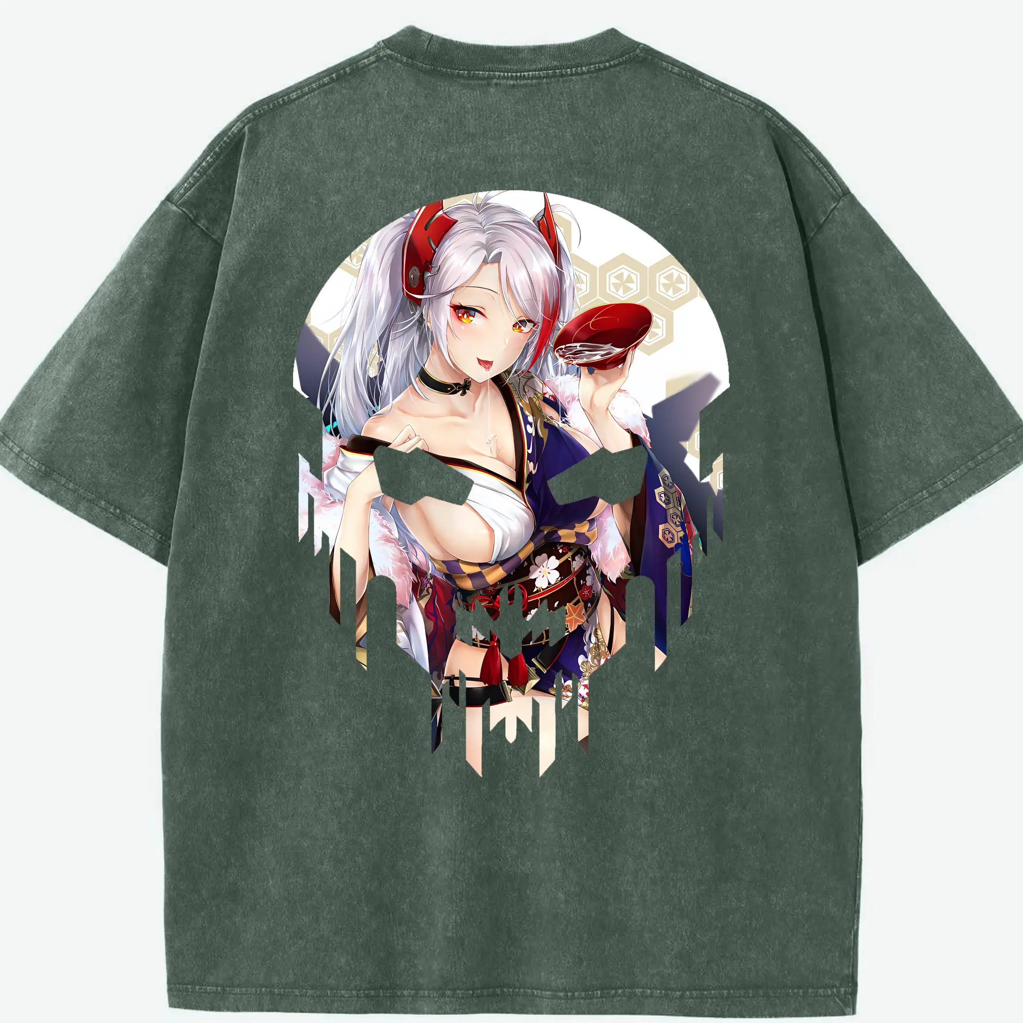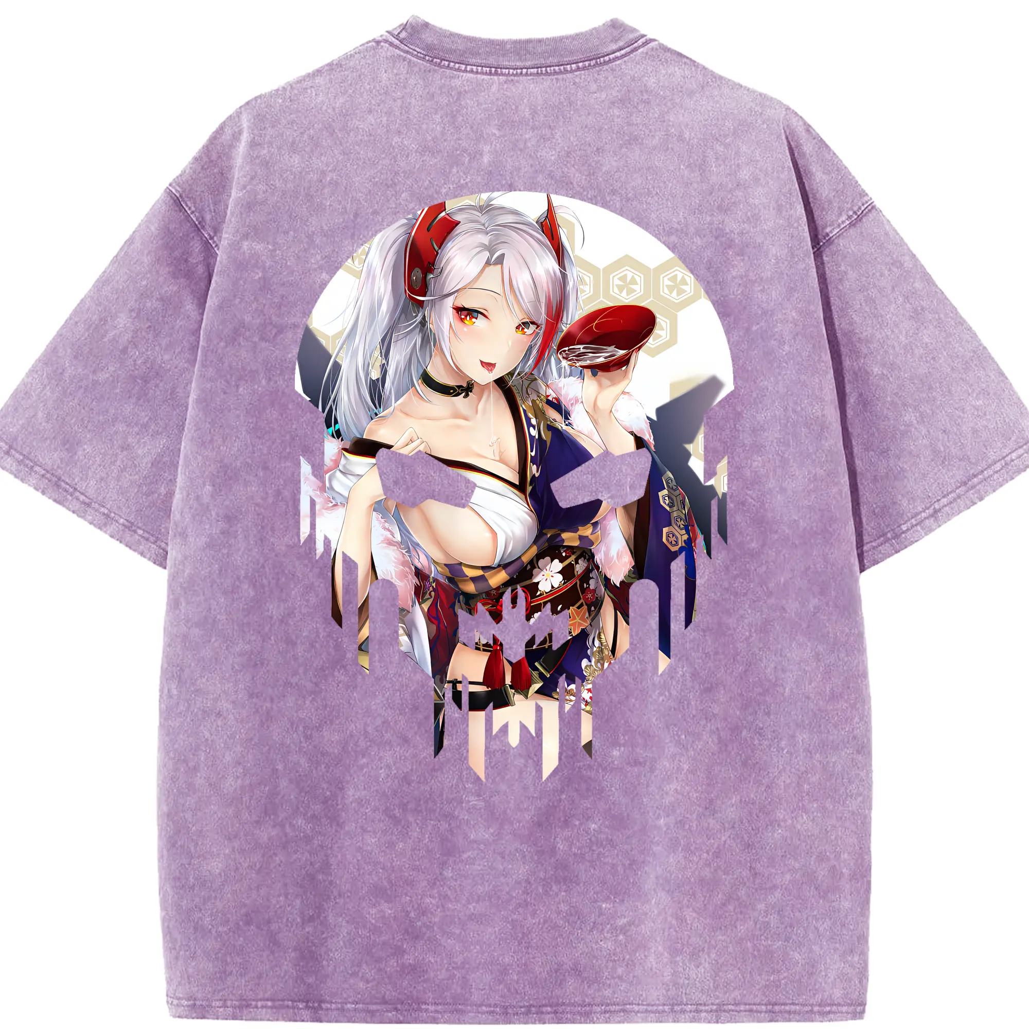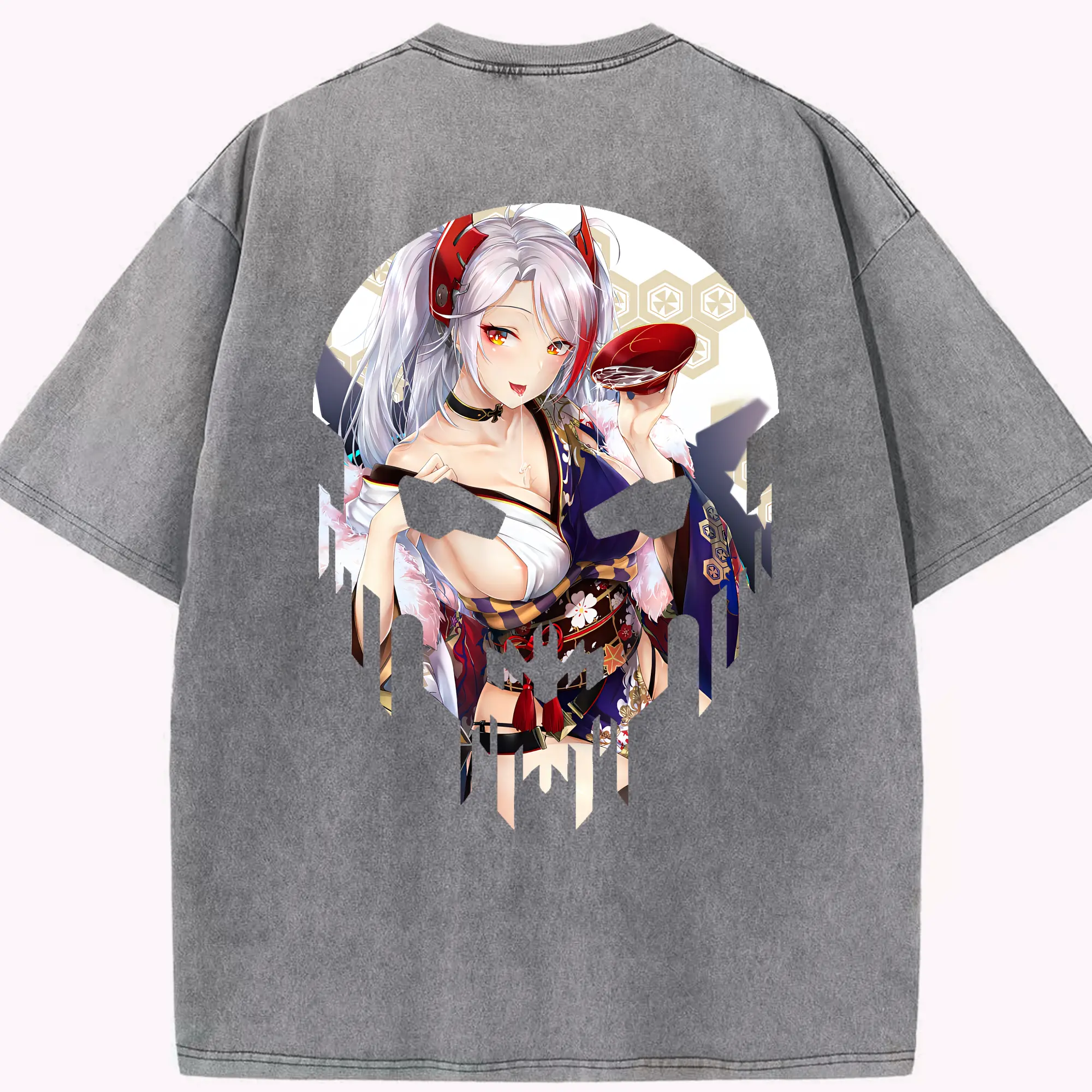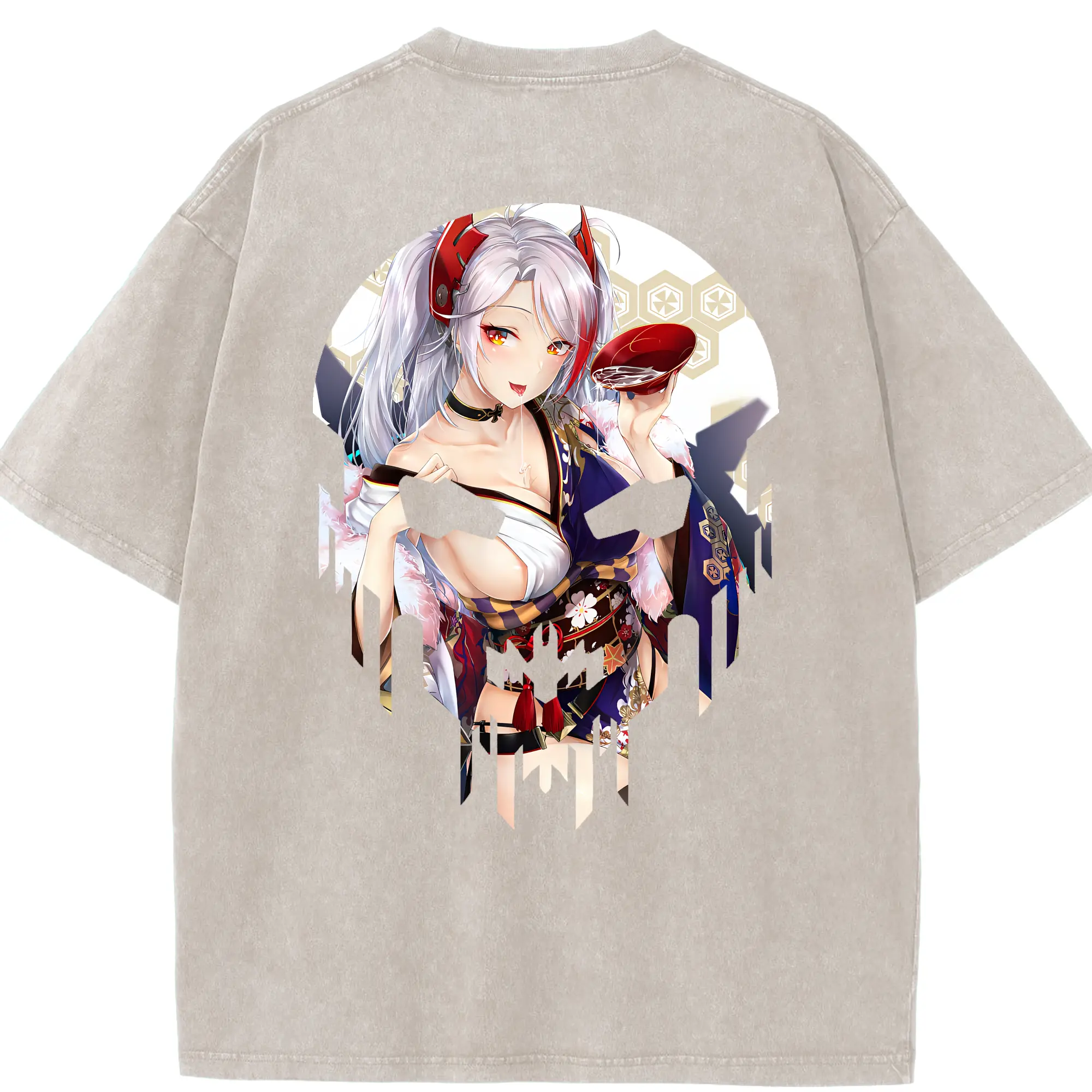 アズールレーン グッズ,プリンツ・オイゲン - 綿100% ヴィンテージ風 半袖Tシャツ ・ フロントプリント ・ 柔らか肌触り ・ 通気性 快適 ・ スポーツ カジュアル 外出用