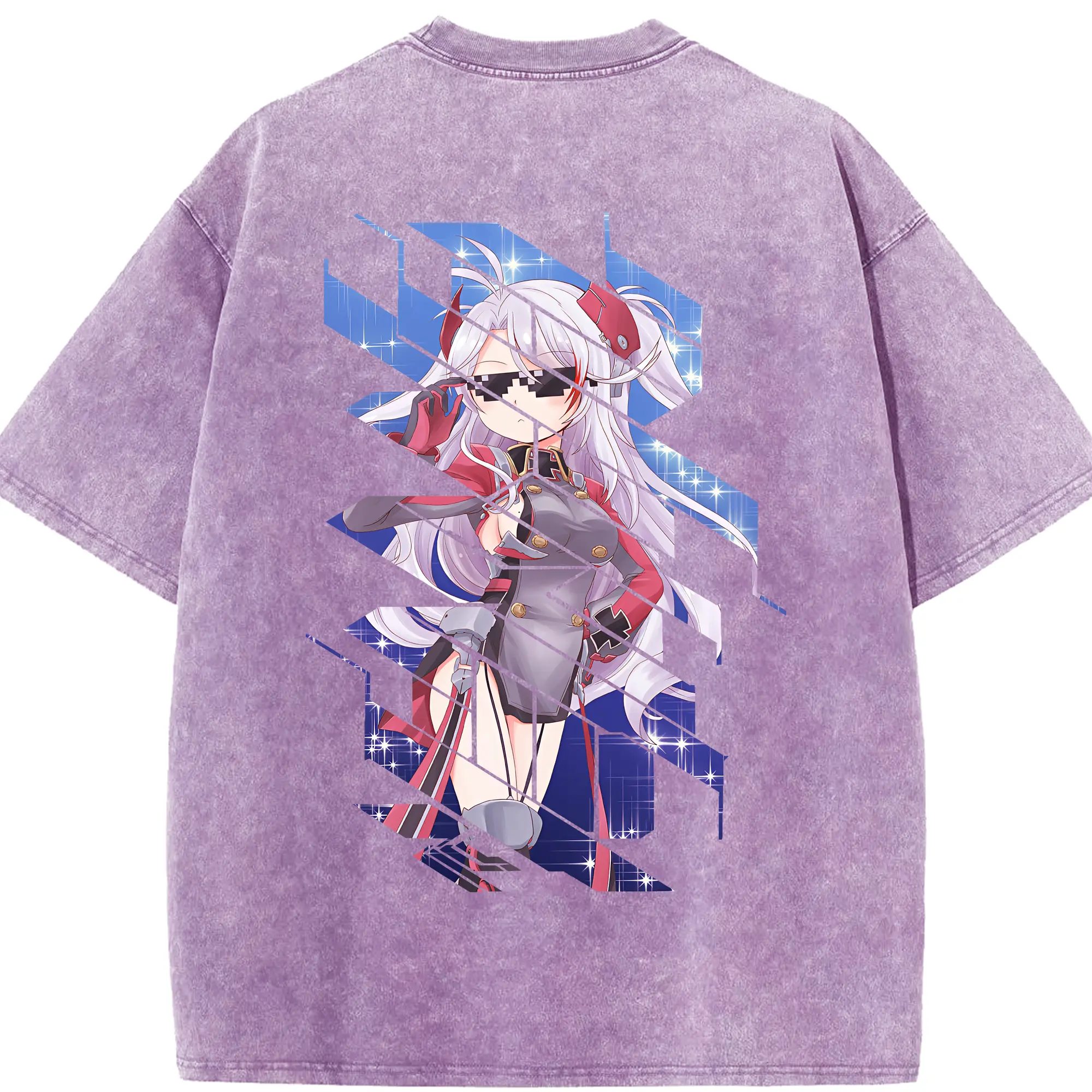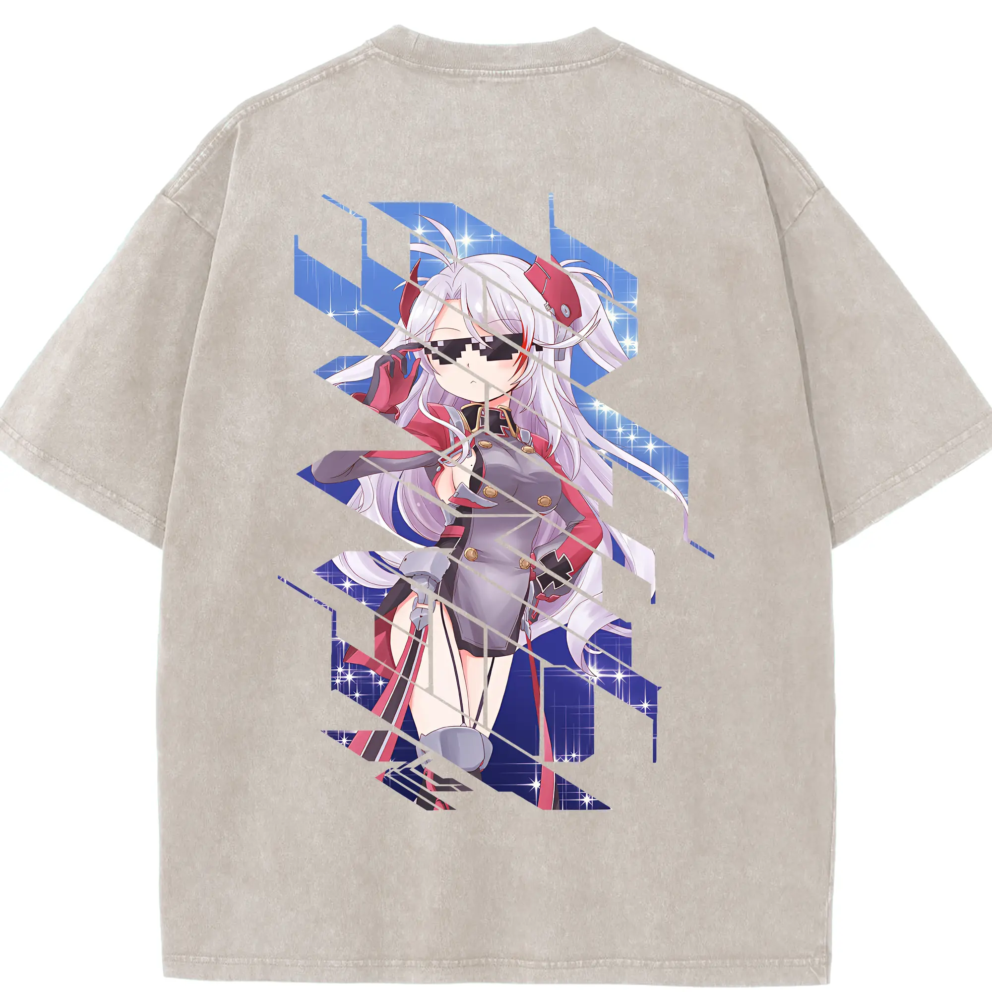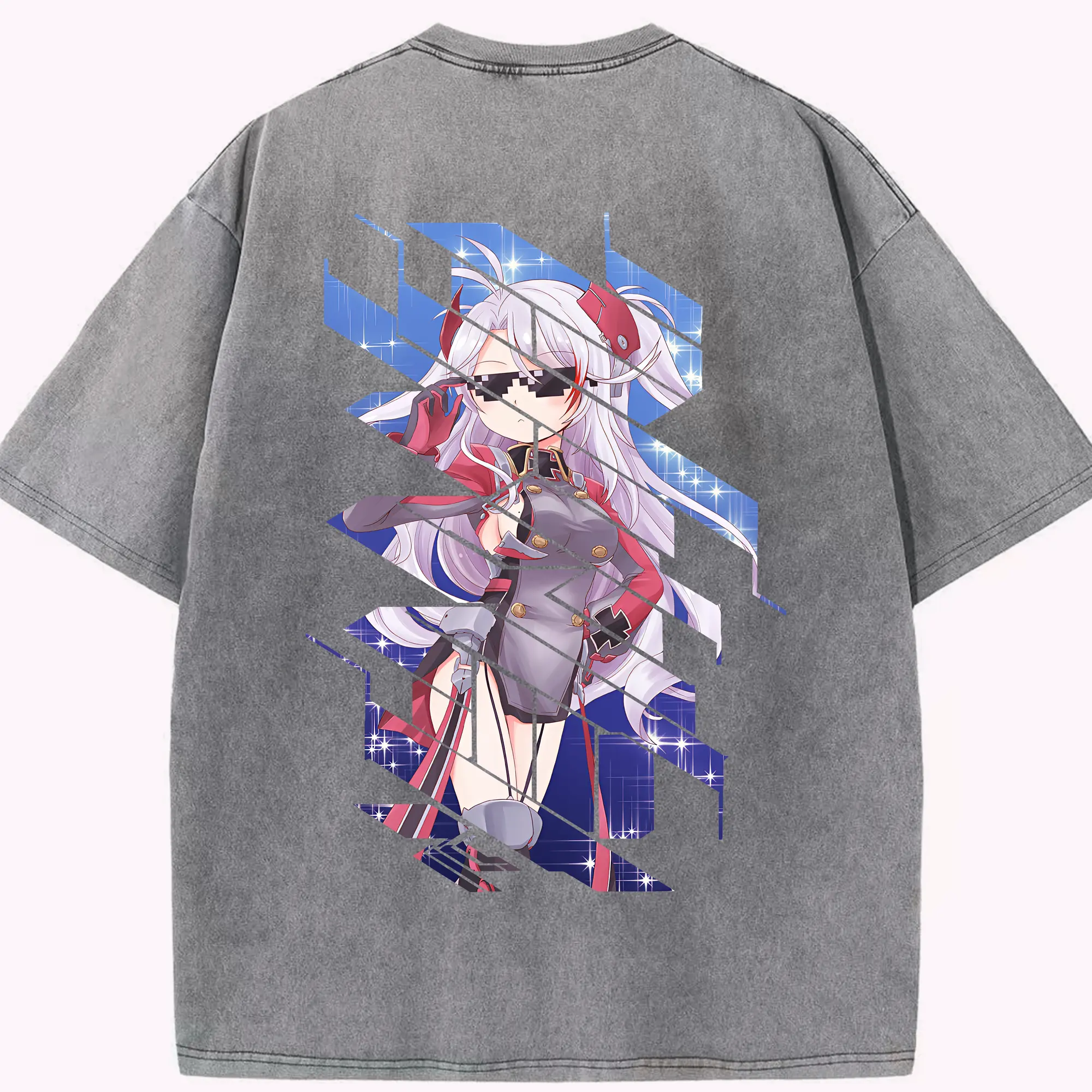 アズールレーン グッズ,プリンツ・オイゲン - 綿100% ヴィンテージ風 半袖Tシャツ ・ フロントプリント ・ 柔らか肌触り ・ 通気性 快適 ・ スポーツ カジュアル 外出用