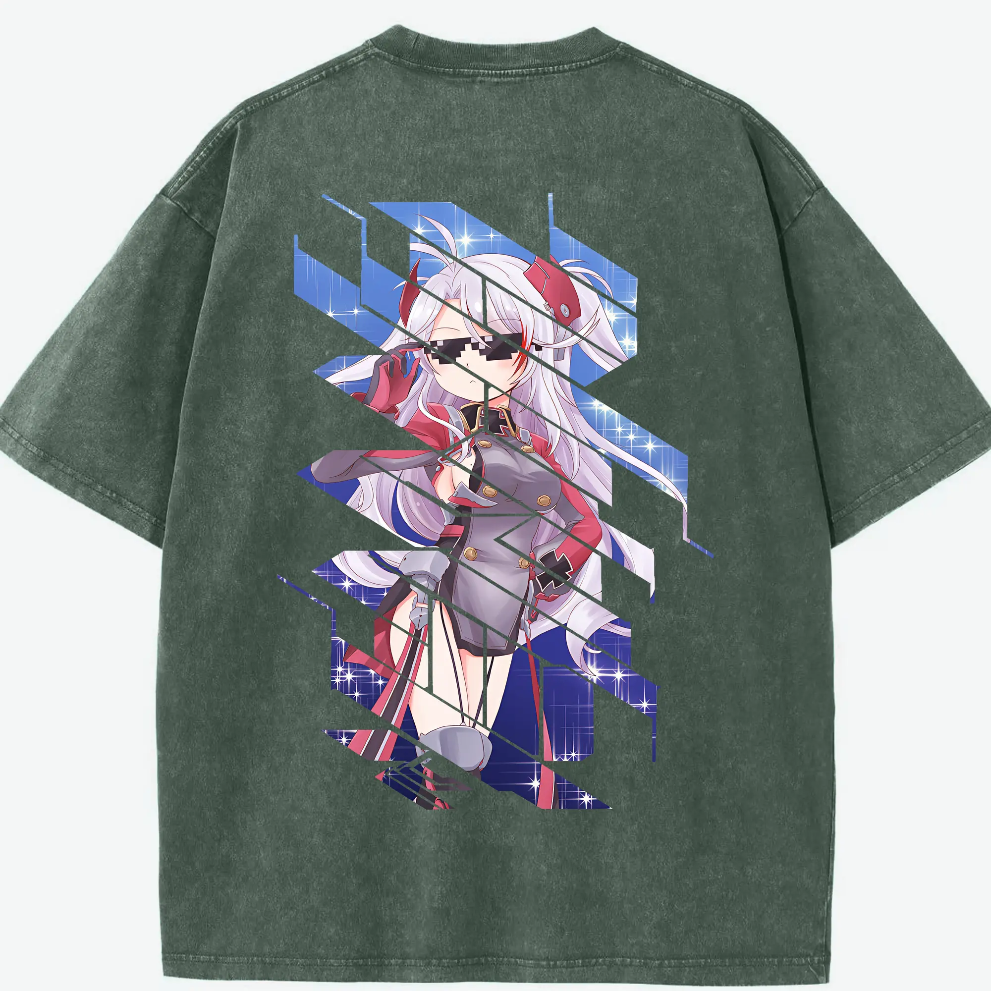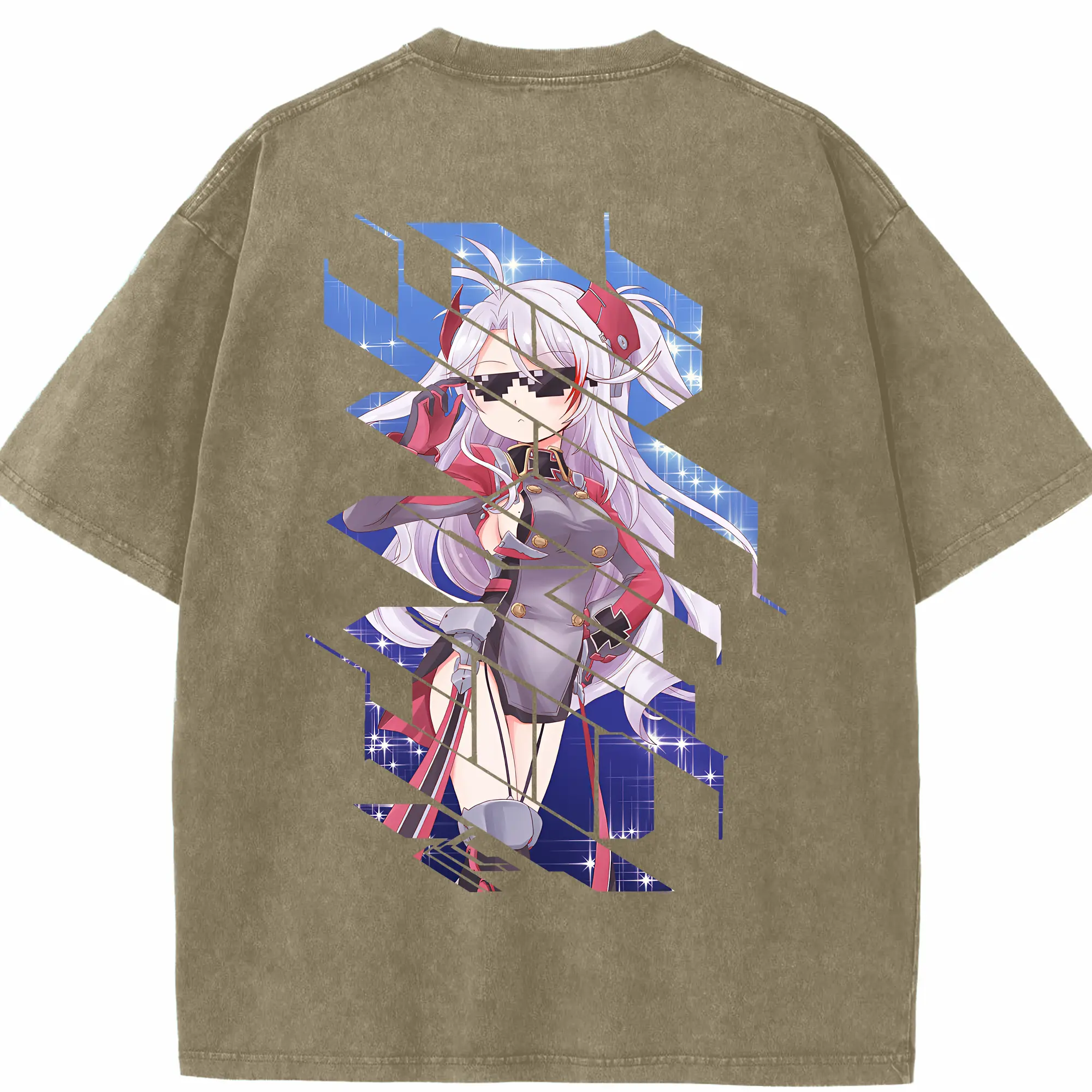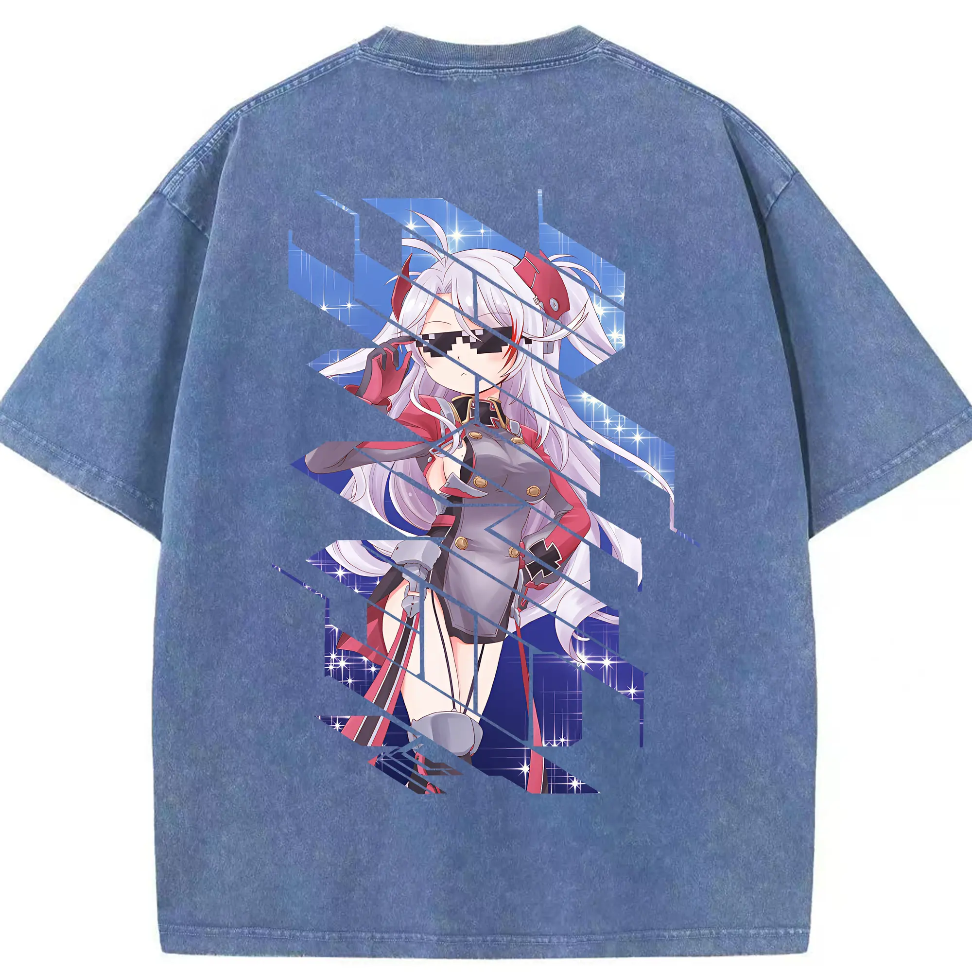 アズールレーン グッズ,プリンツ・オイゲン - 綿100% ヴィンテージ風 半袖Tシャツ ・ フロントプリント ・ 柔らか肌触り ・ 通気性 快適 ・ スポーツ カジュアル 外出用
