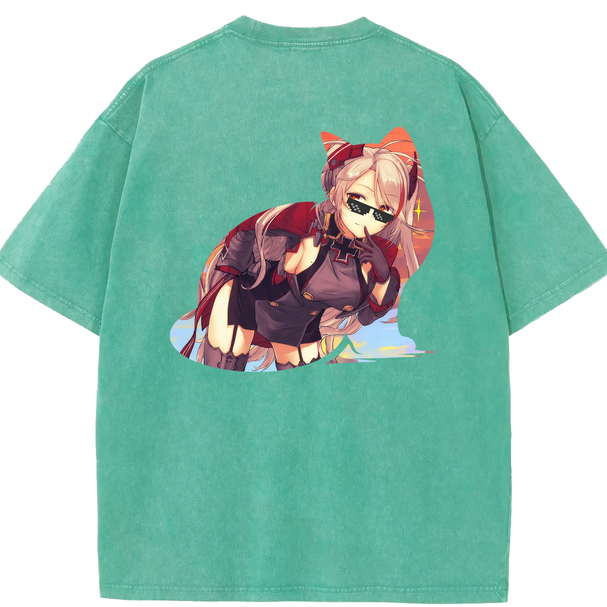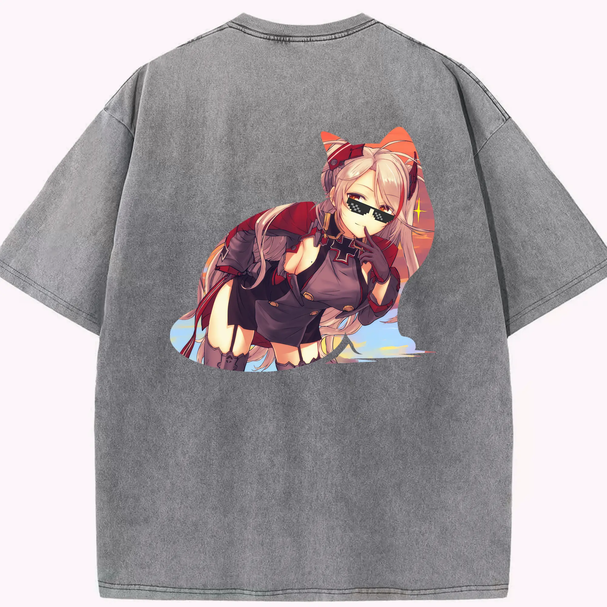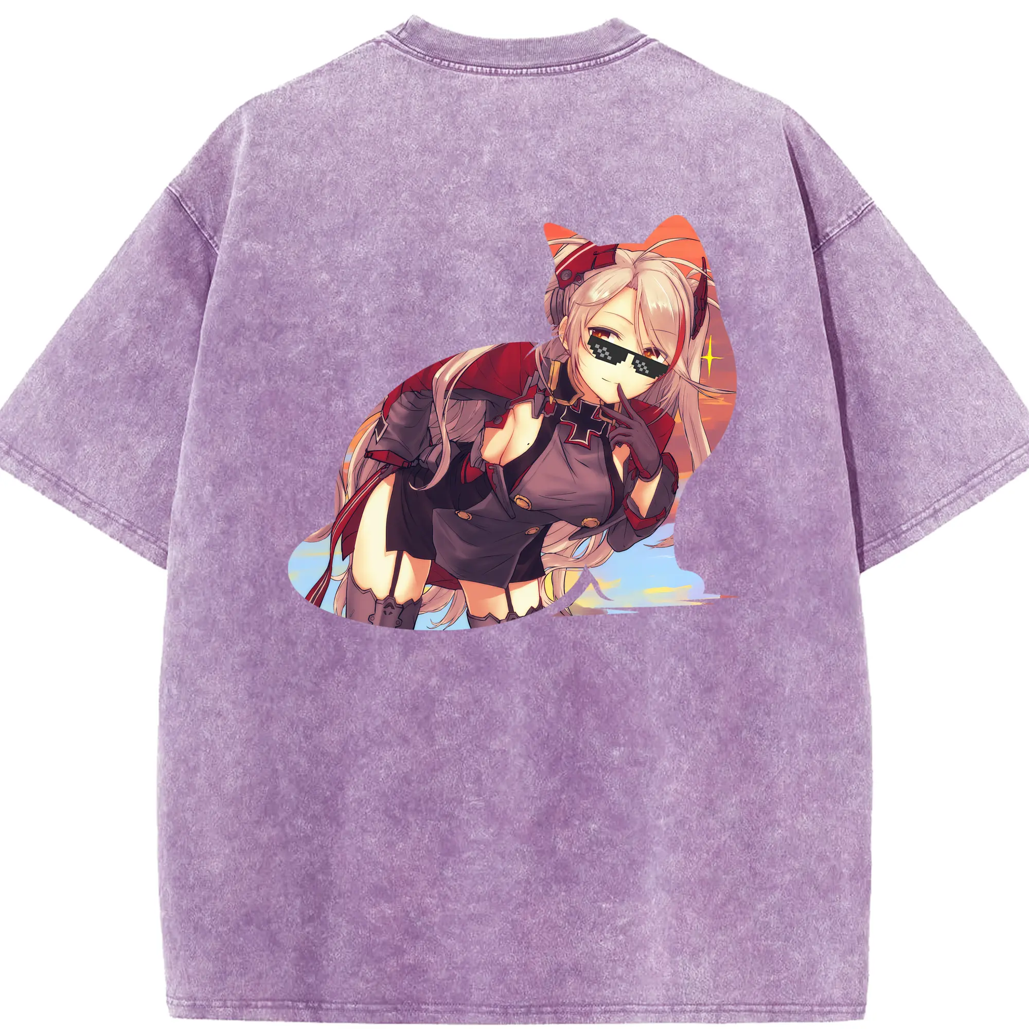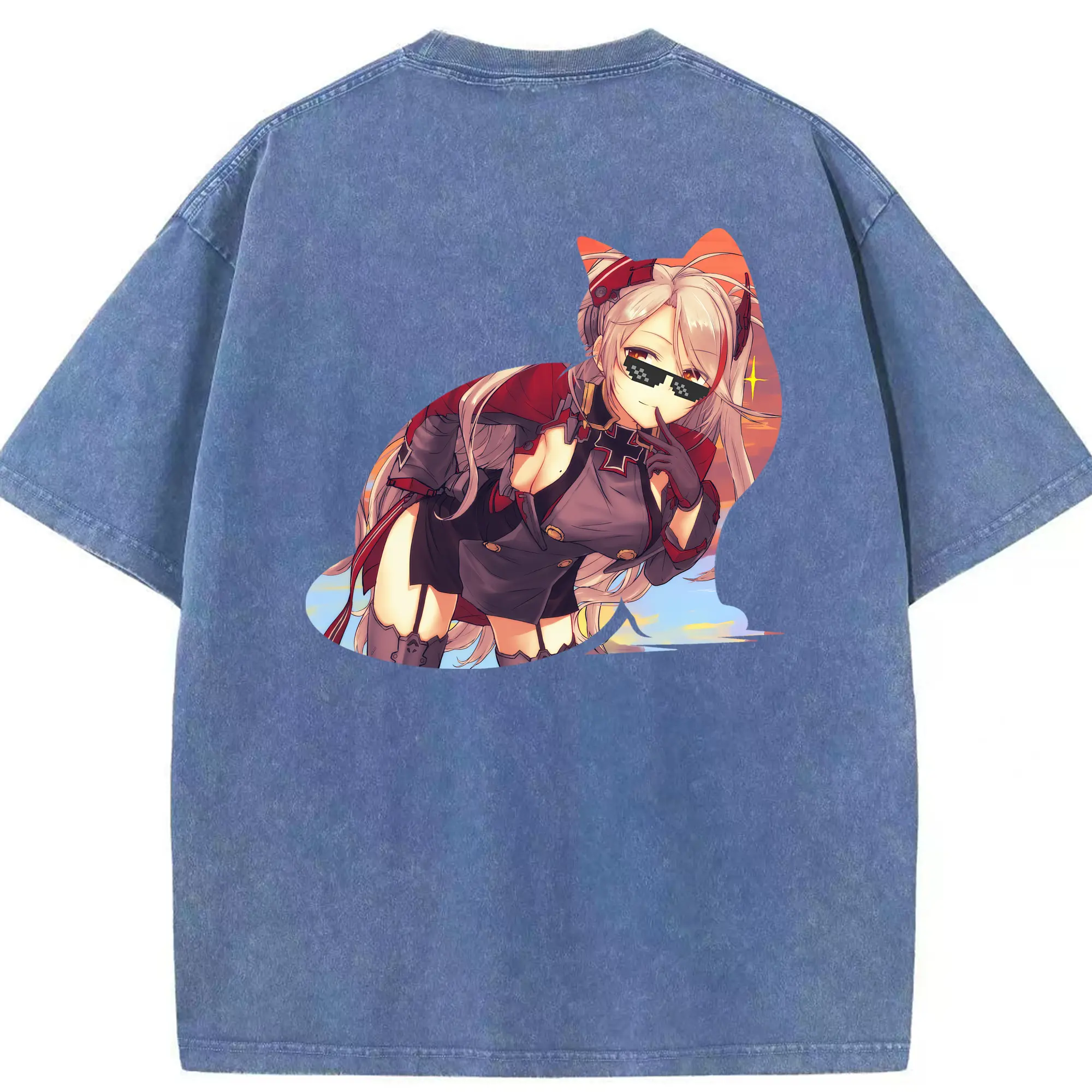 アズールレーン グッズ,プリンツ・オイゲン - 綿100% ヴィンテージ風 半袖Tシャツ ・ フロントプリント ・ 柔らか肌触り ・ 通気性 快適 ・ スポーツ カジュアル 外出用