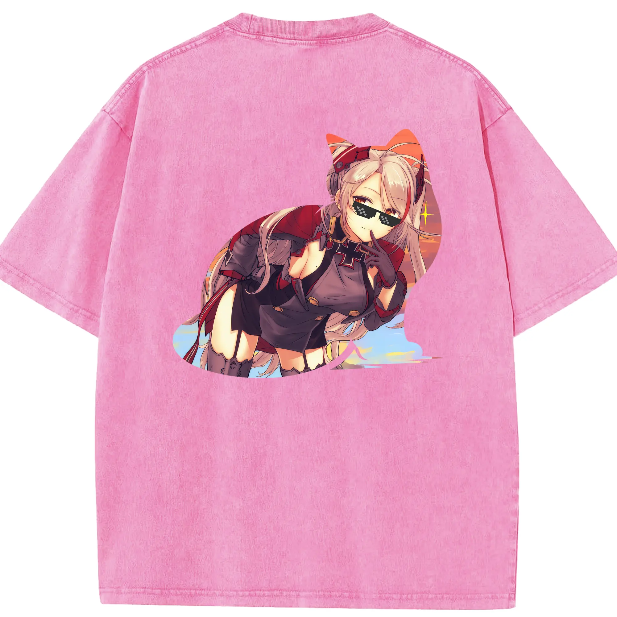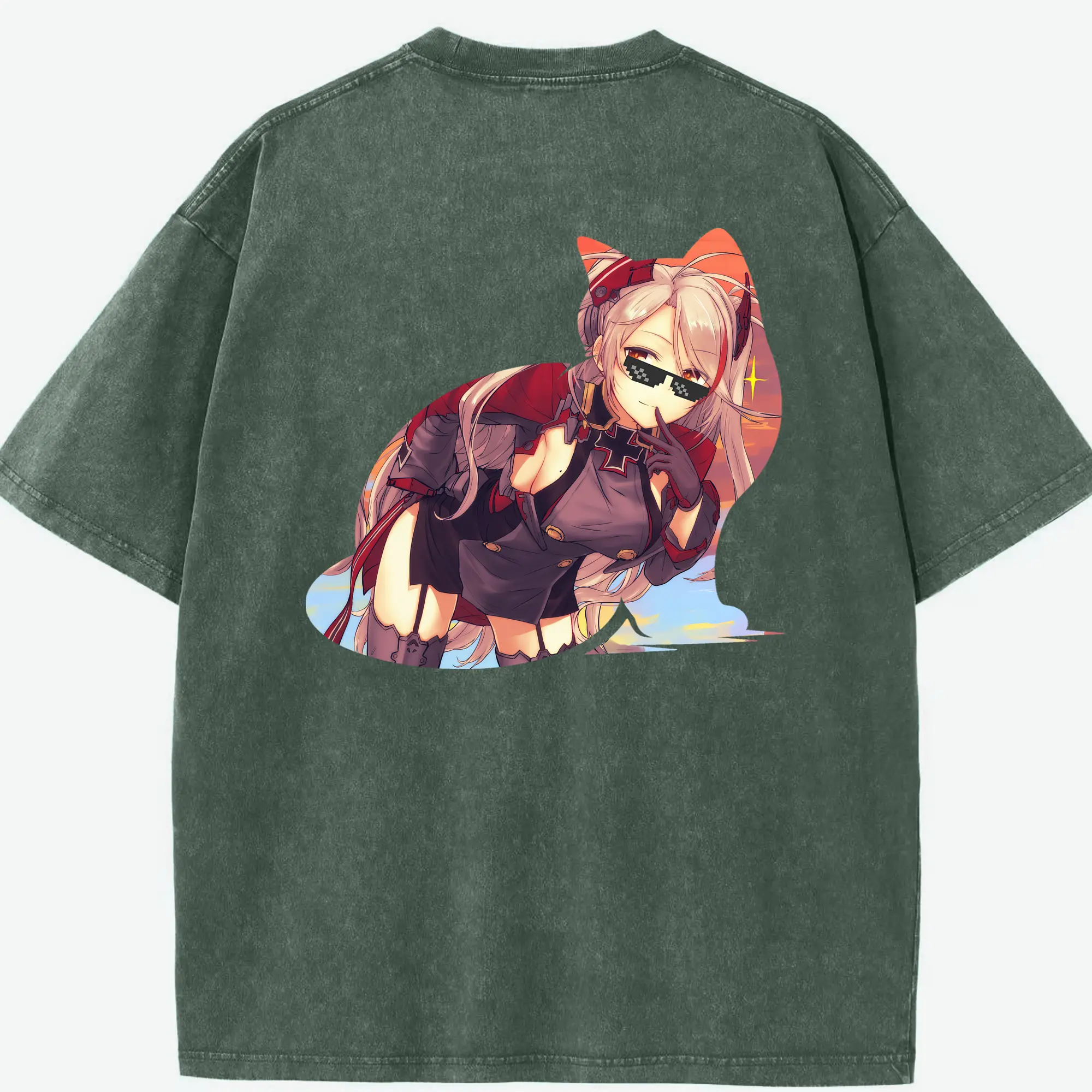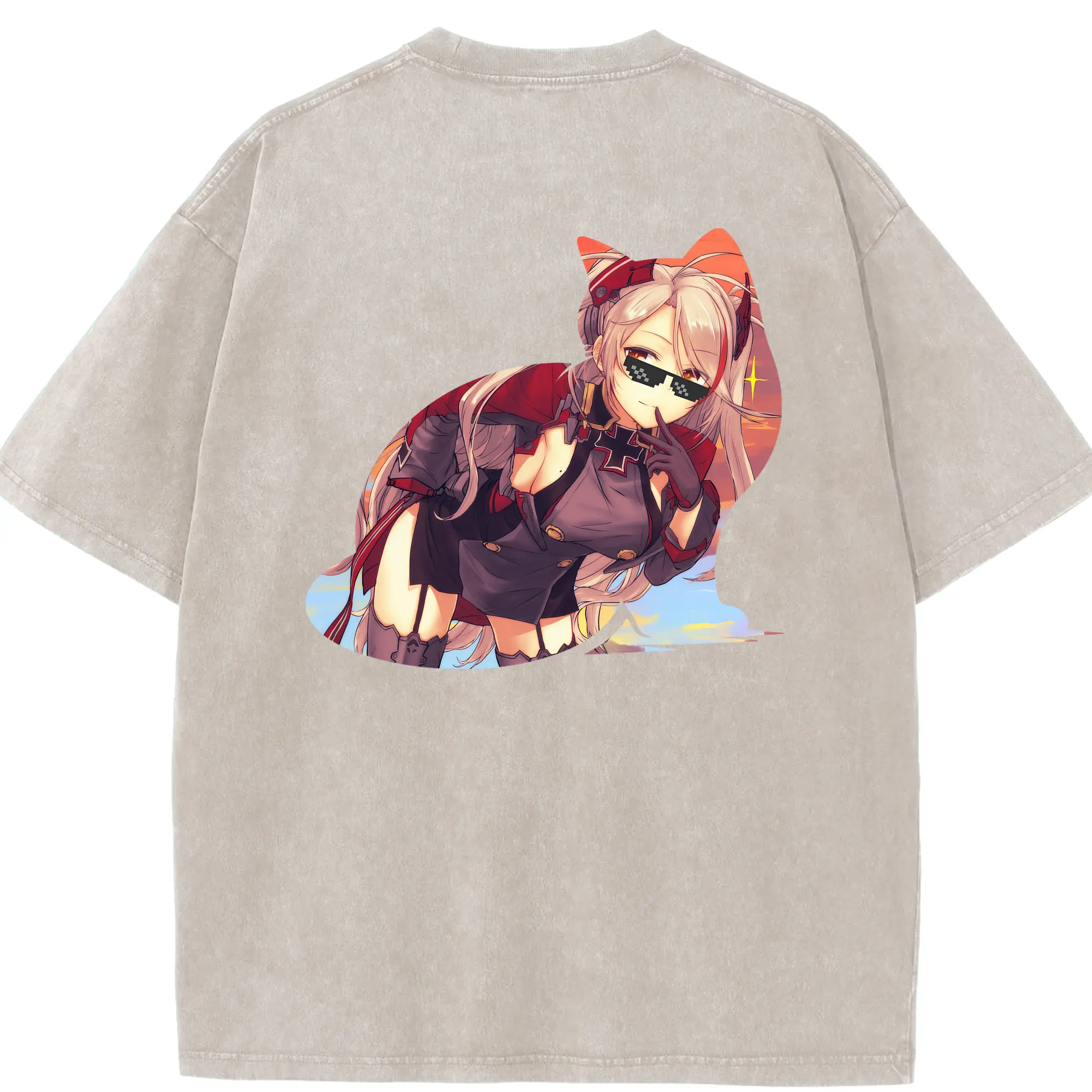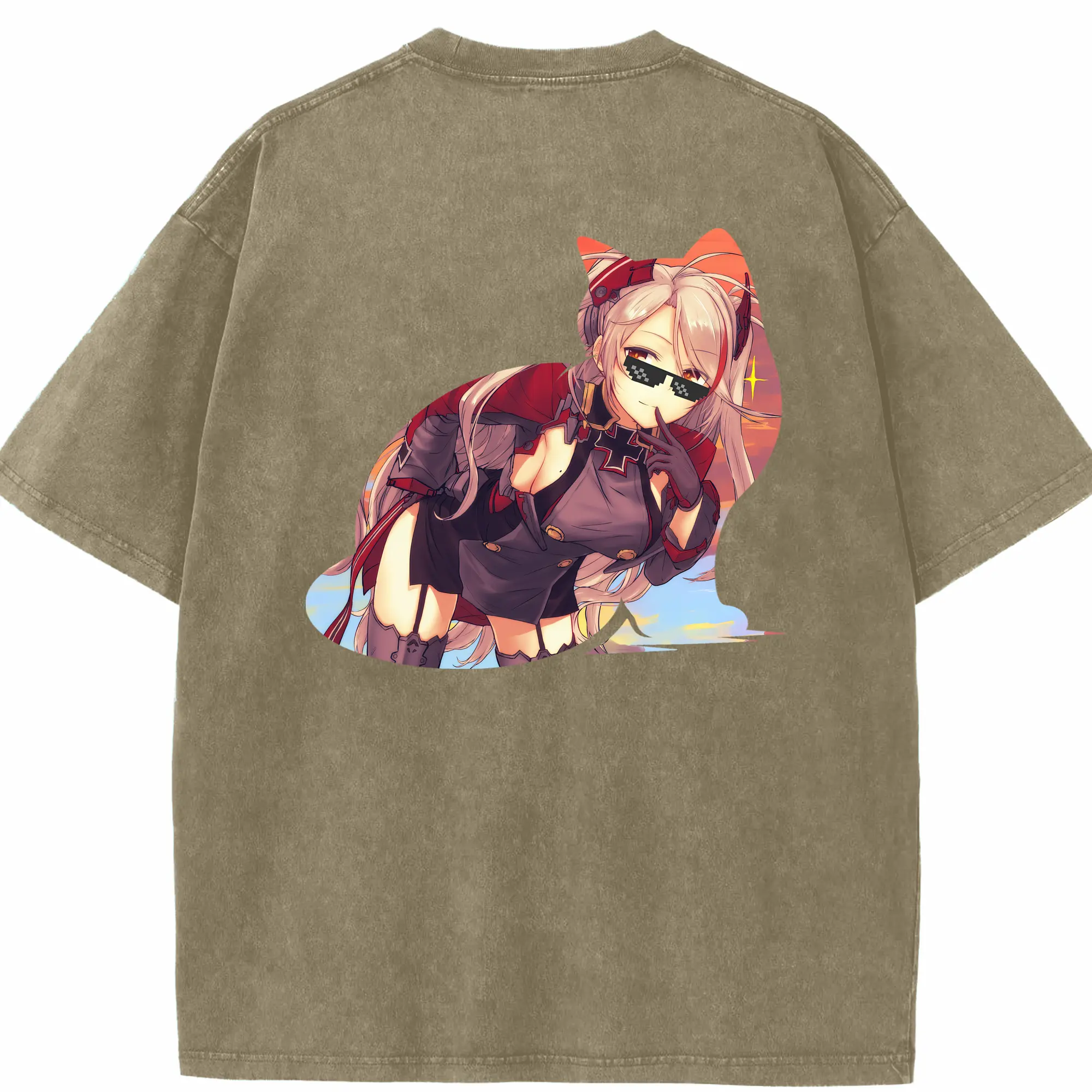 アズールレーン グッズ,プリンツ・オイゲン - 綿100% ヴィンテージ風 半袖Tシャツ ・ フロントプリント ・ 柔らか肌触り ・ 通気性 快適 ・ スポーツ カジュアル 外出用