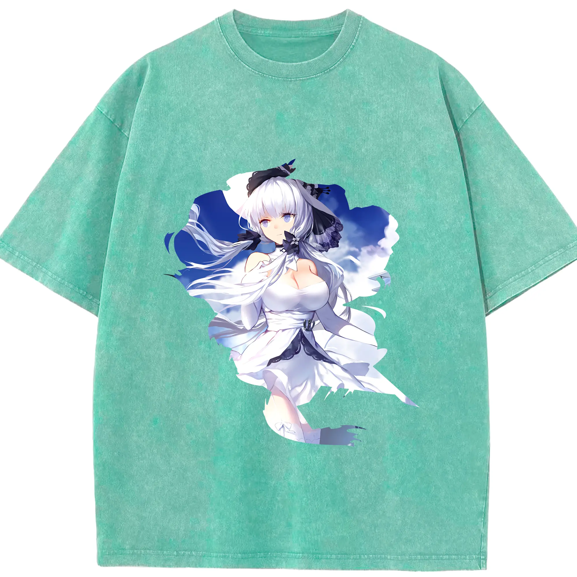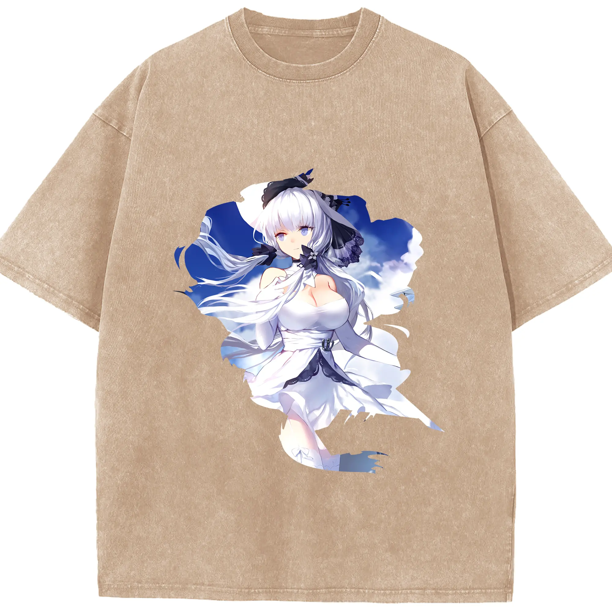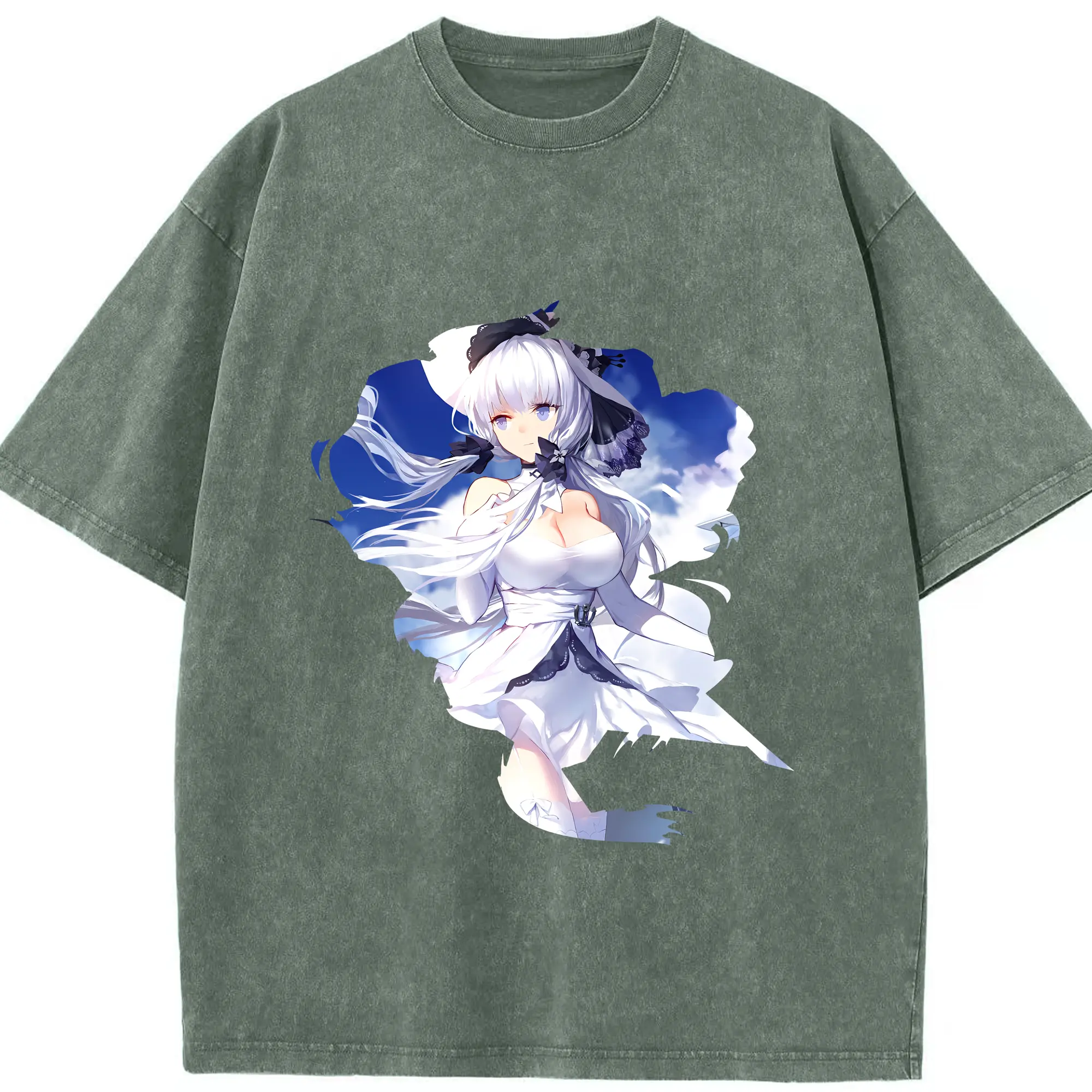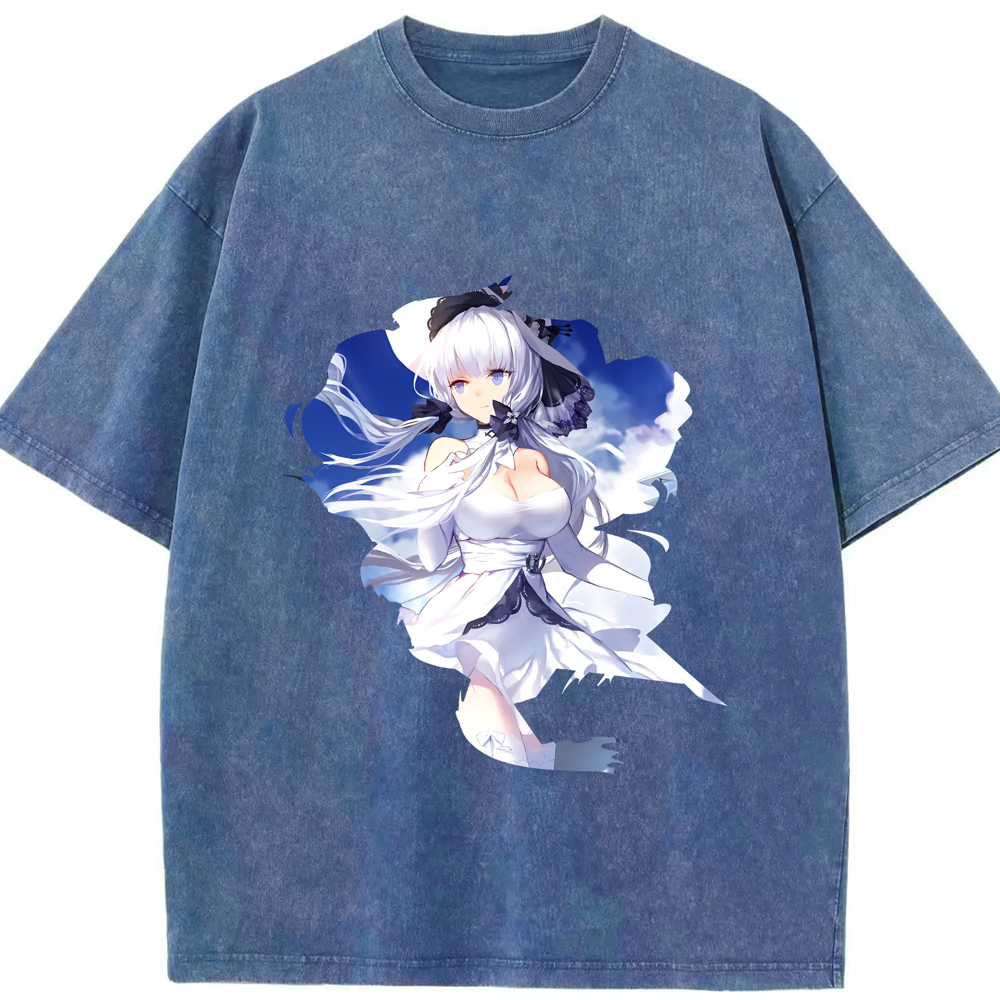 アズールレーン グッズ,イラストリアス - 綿100% ヴィンテージ風 半袖Tシャツ ・ 背面プリント ・ 柔らか肌触り ・ 通気性 快適 ・ スポーツ カジュアル 外出用