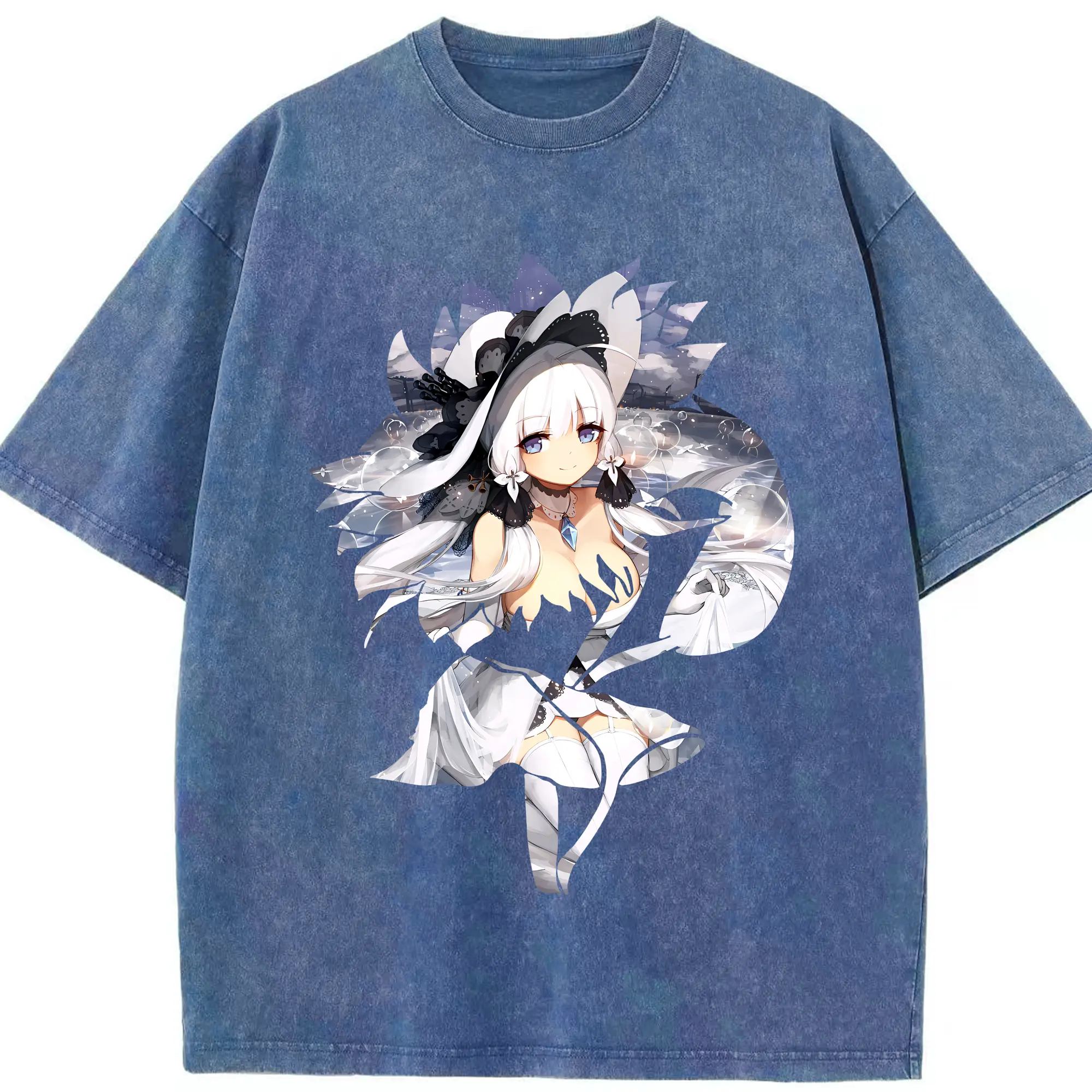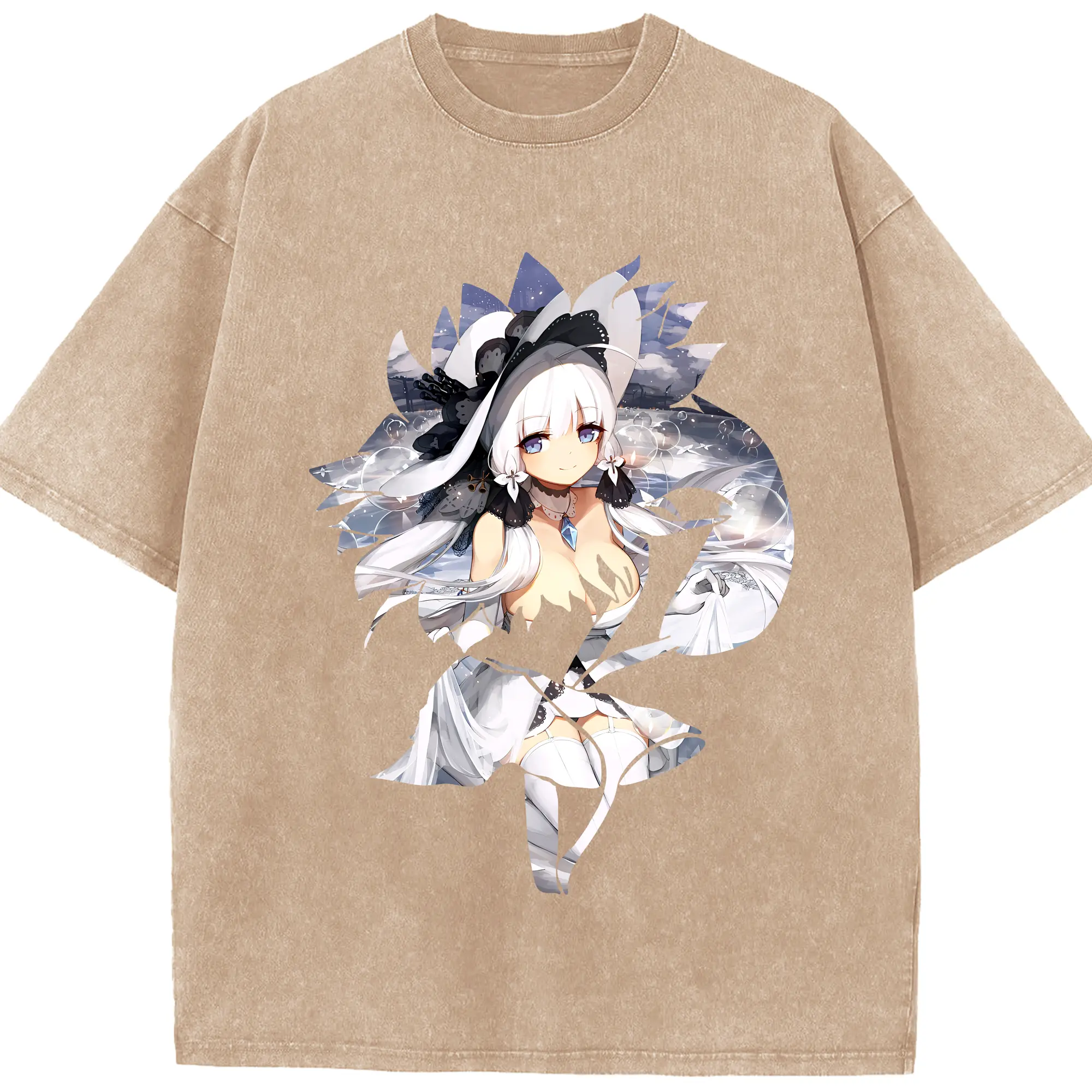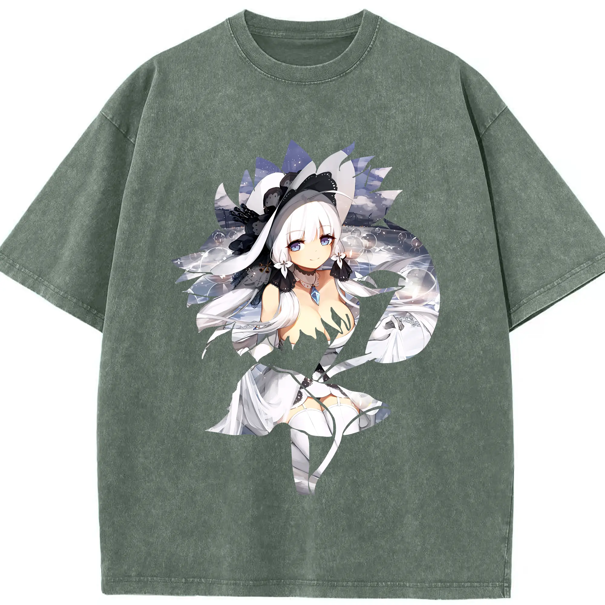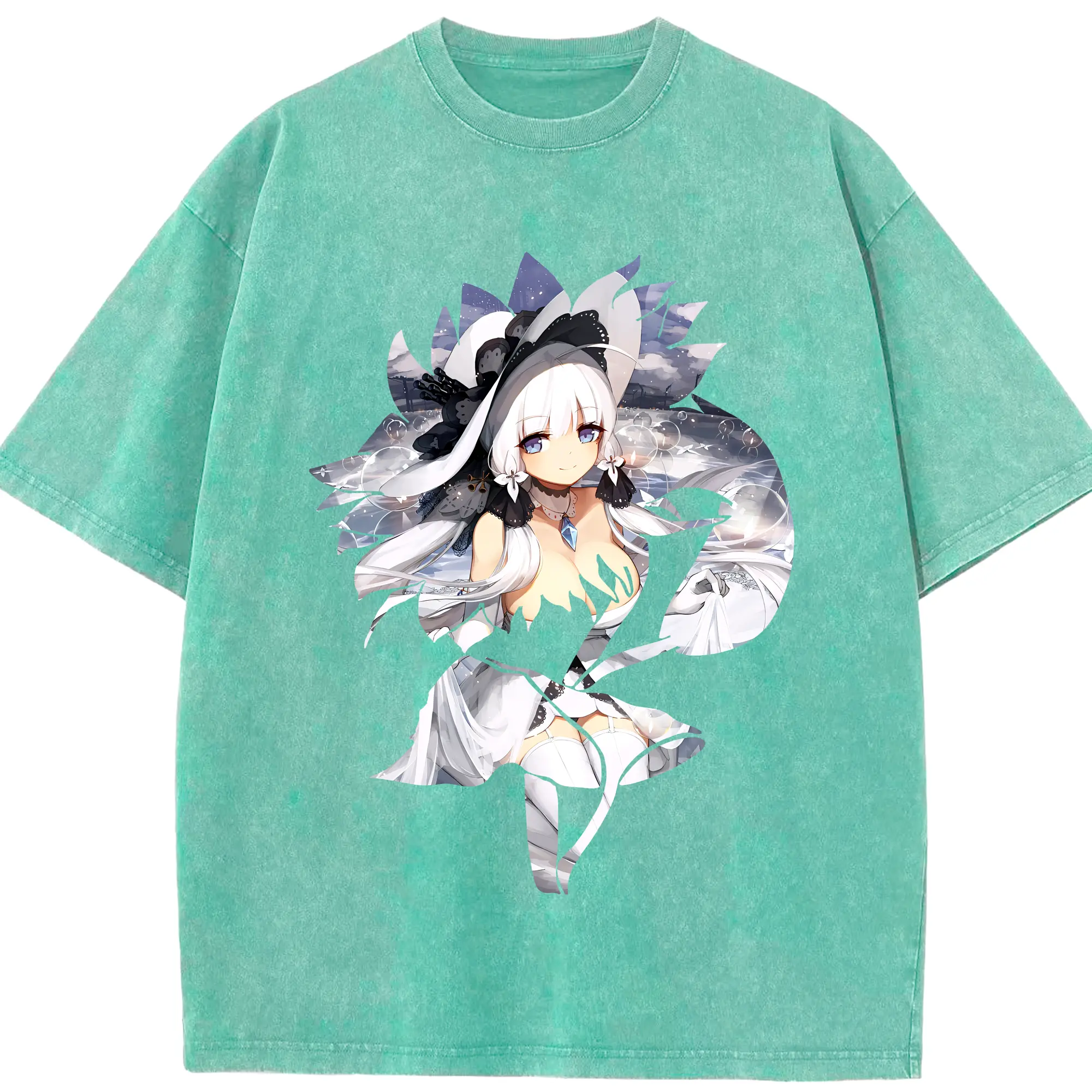 アズールレーン グッズ,イラストリアス - 綿100% ヴィンテージ風 半袖Tシャツ ・ 背面プリント ・ 柔らか肌触り ・ 通気性 快適 ・ スポーツ カジュアル 外出用