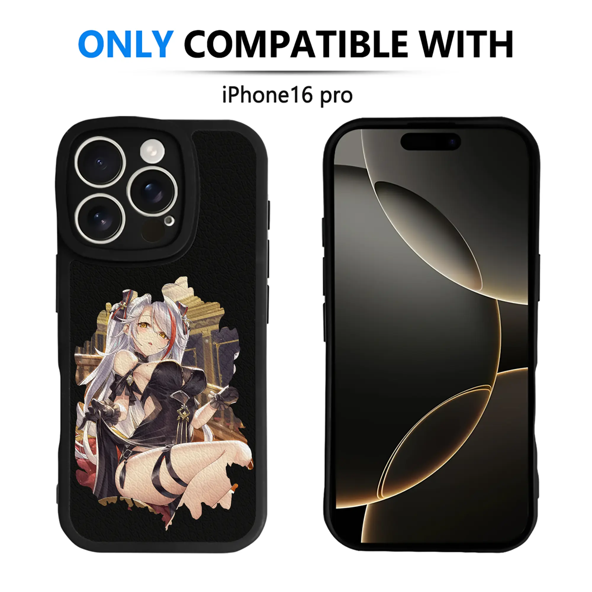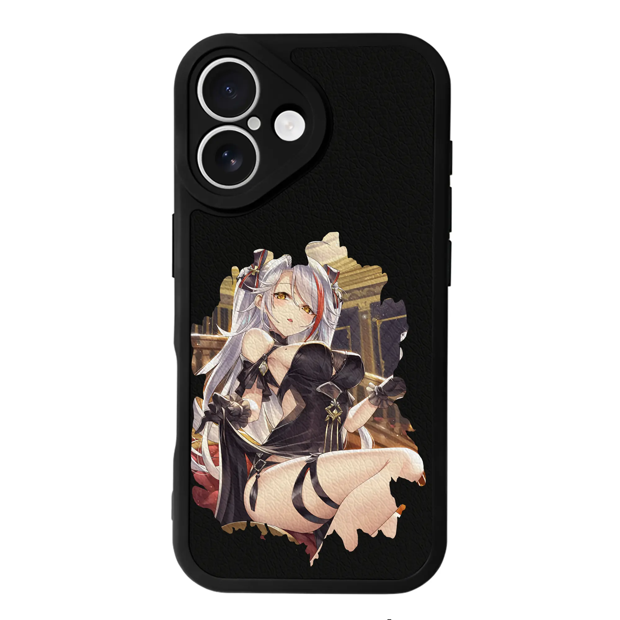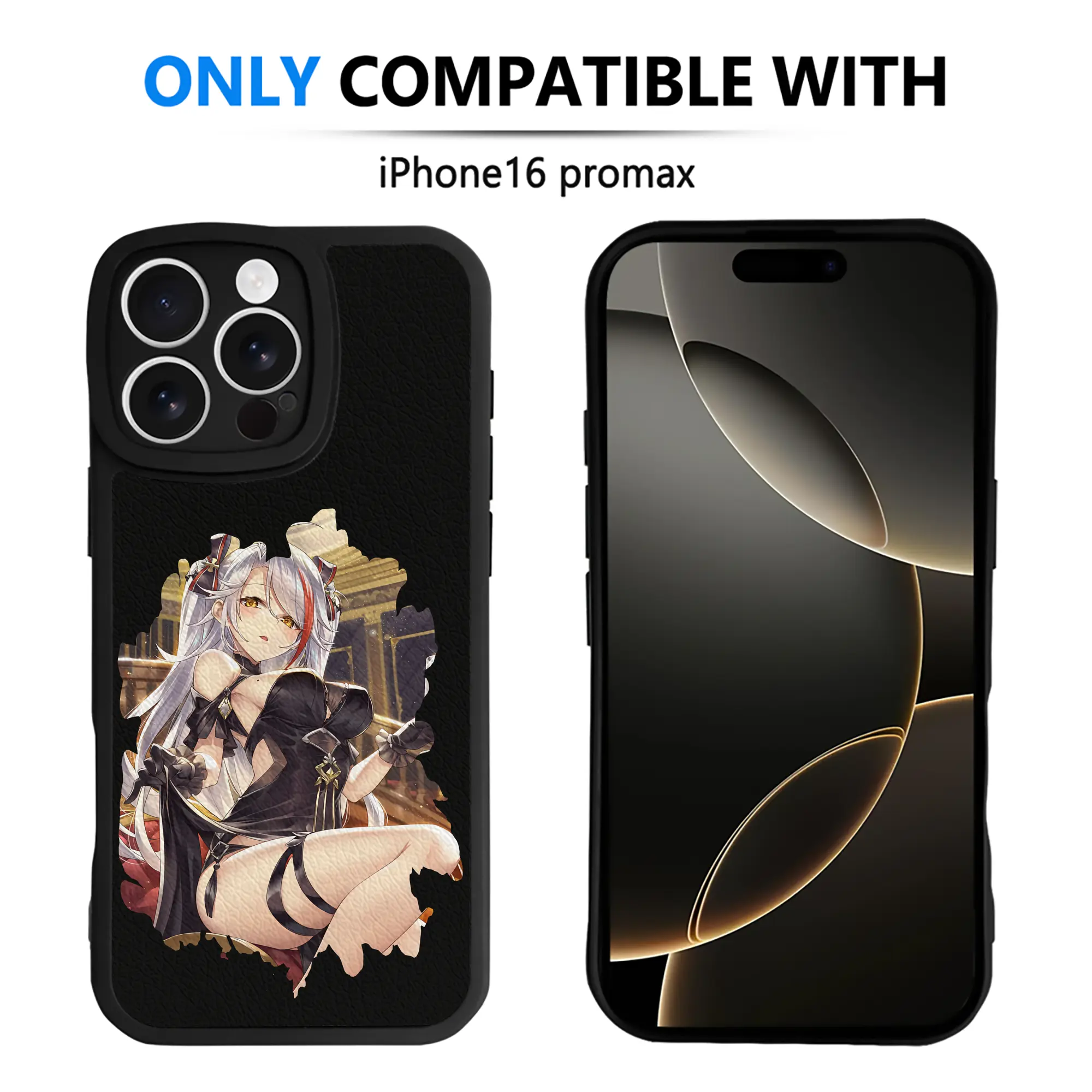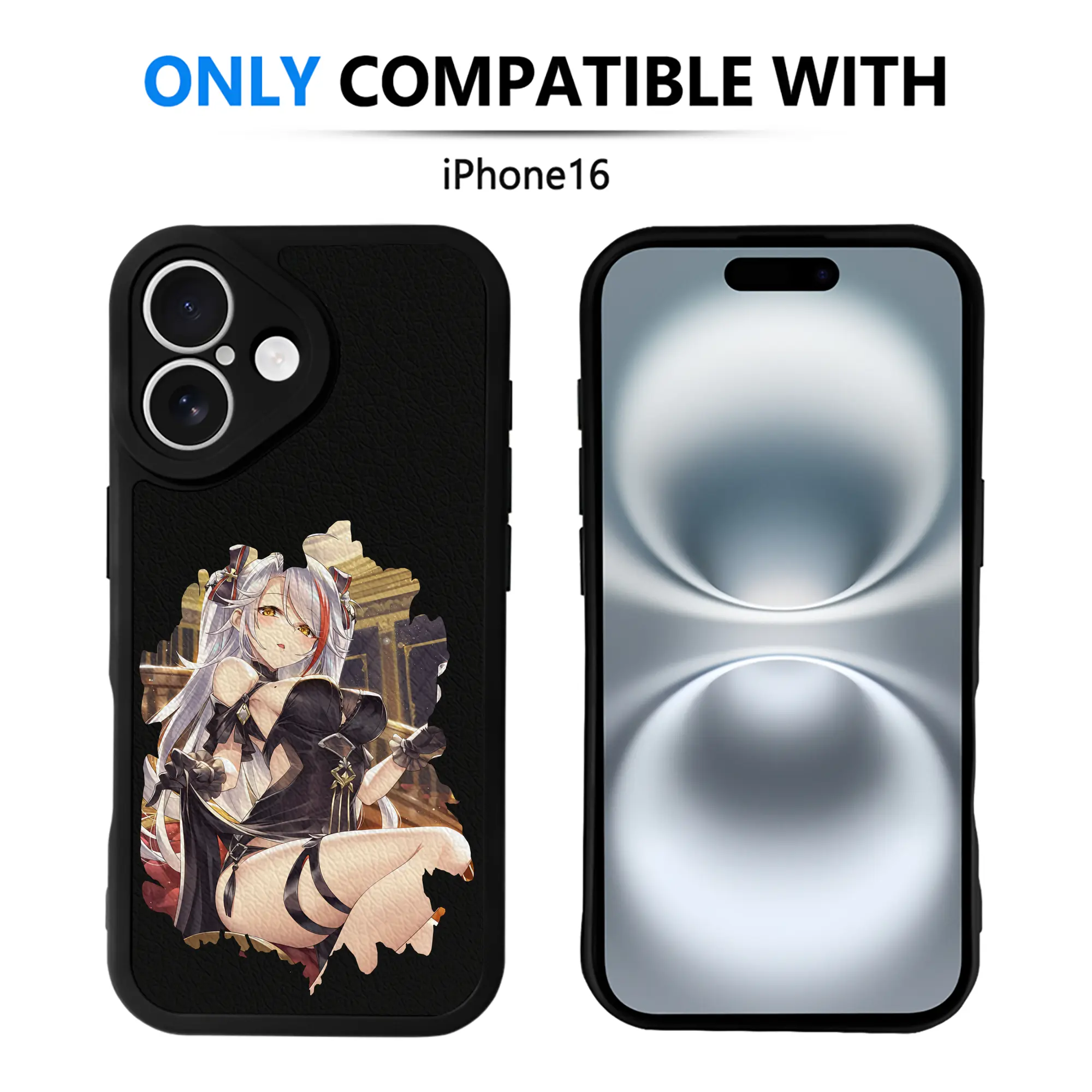 アズールレーン グッズ,プリンツ・オイゲン - IPhone 16シリーズ対応 ・ シリコンスマホケース ・ レザー調 ・ 高精度フィット ・ 耐衝撃 ・ ワイヤレス充電対応 ・ 精密カット