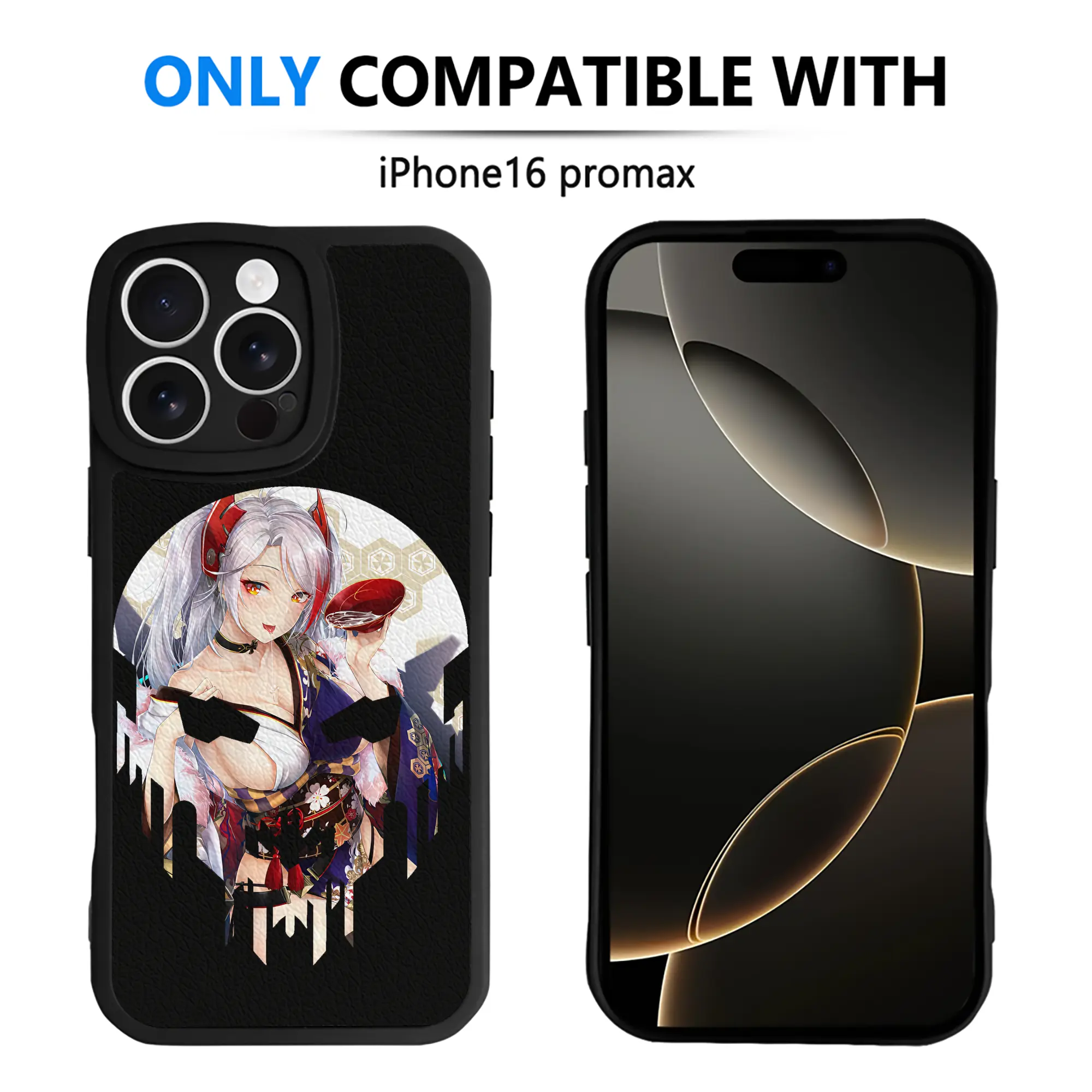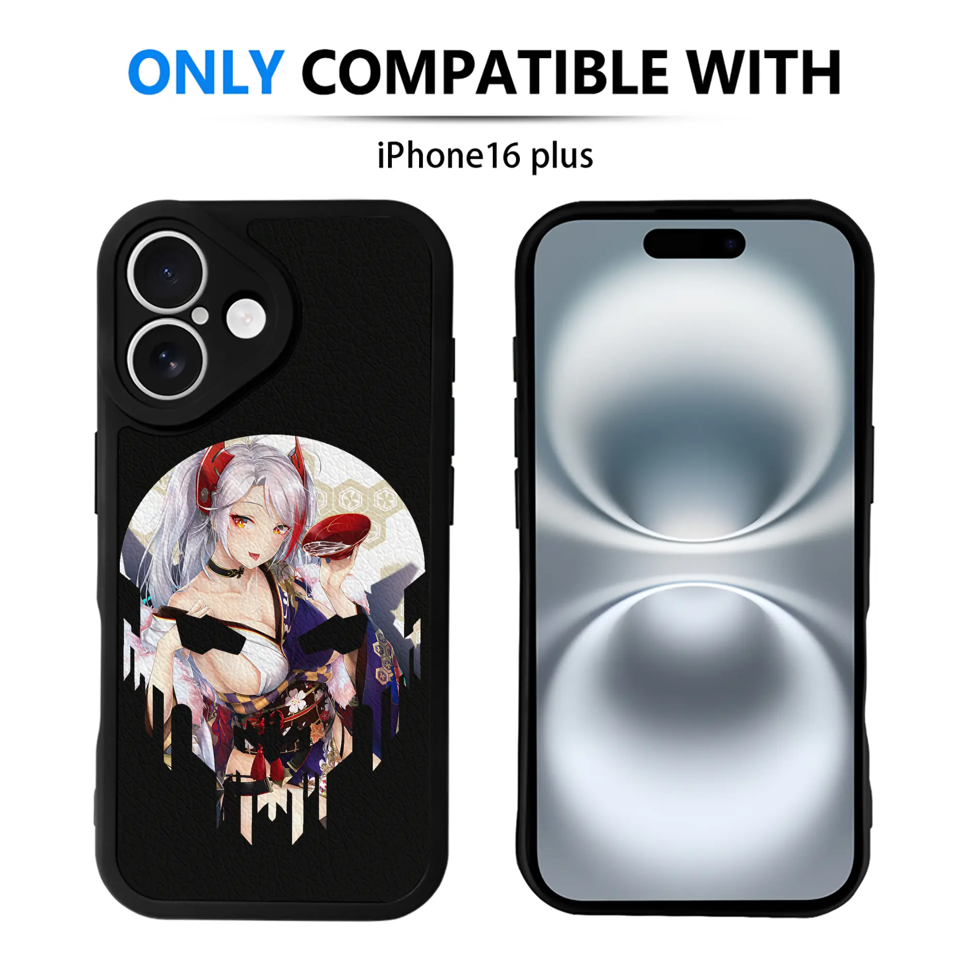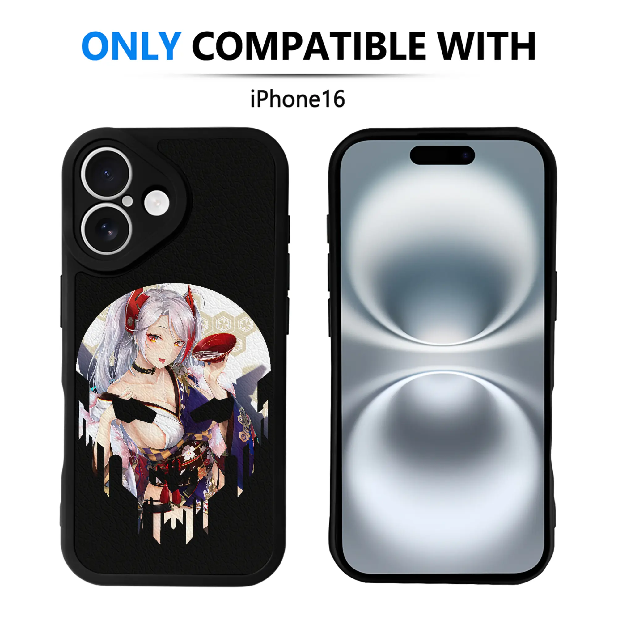 アズールレーン グッズ,プリンツ・オイゲン - IPhone 16シリーズ対応 ・ シリコンスマホケース ・ レザー調 ・ 高精度フィット ・ 耐衝撃 ・ ワイヤレス充電対応 ・ 精密カット