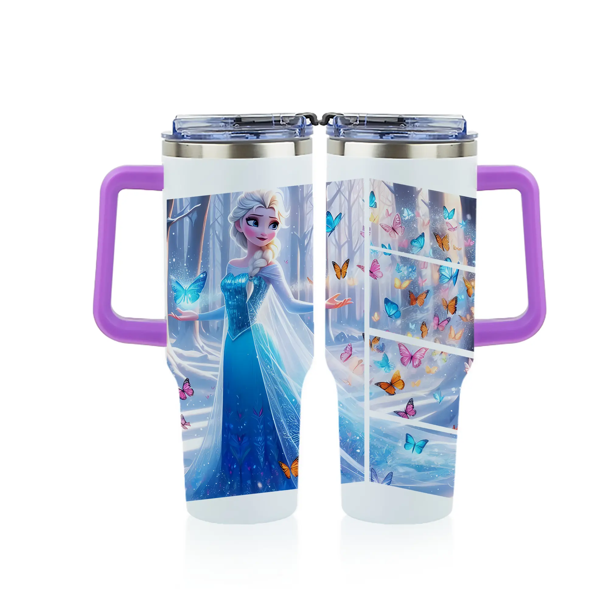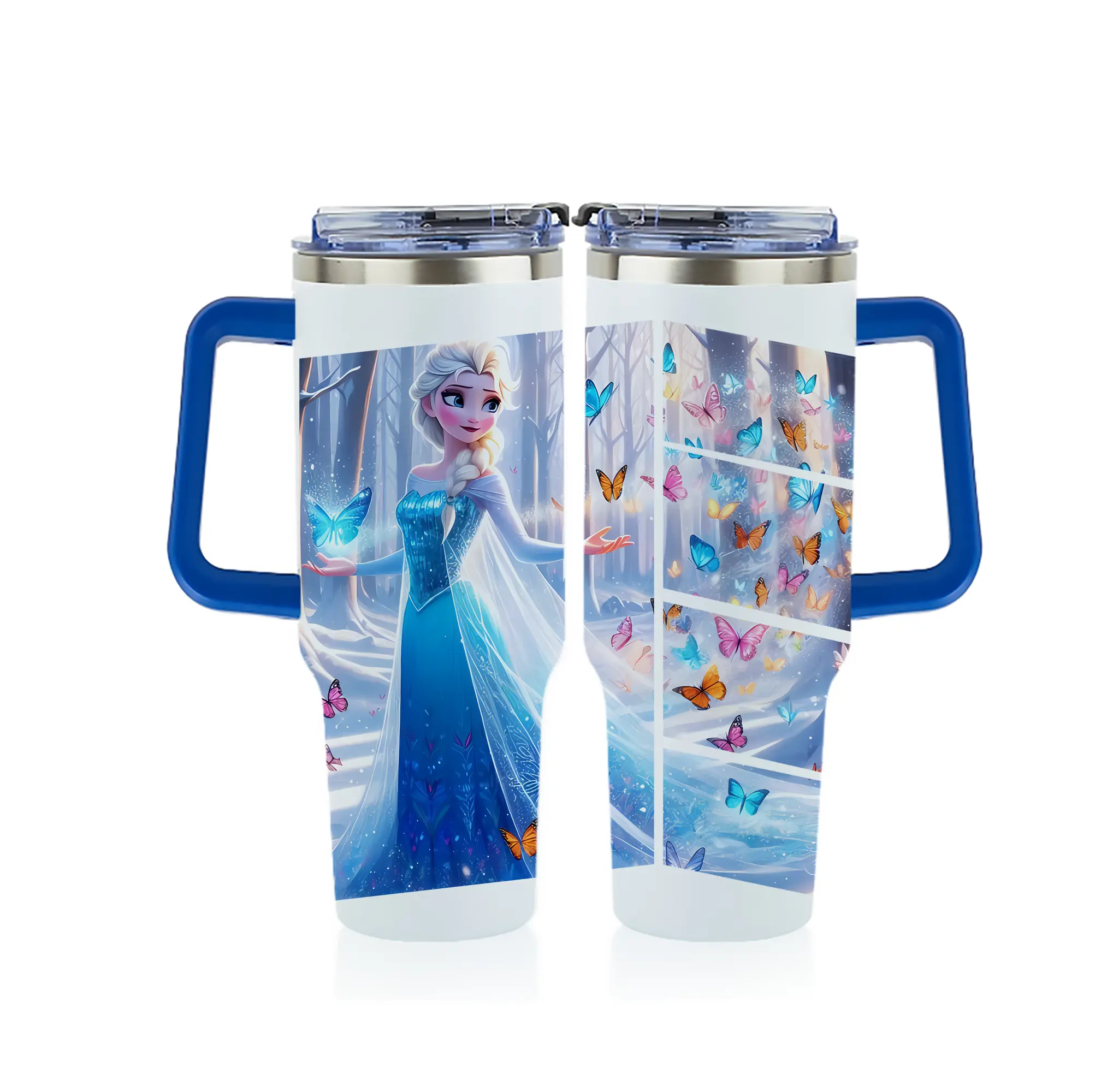 アナと雪の女王(Frozen) グッズ エルサ(Elsa) - 1200mL フルプリント車用タンブラー ・ 304ステンレス 内側 ・ 201ステンレス 外側 ・ 保温 保冷 ・ 通勤 ドライブ アウトドア用
