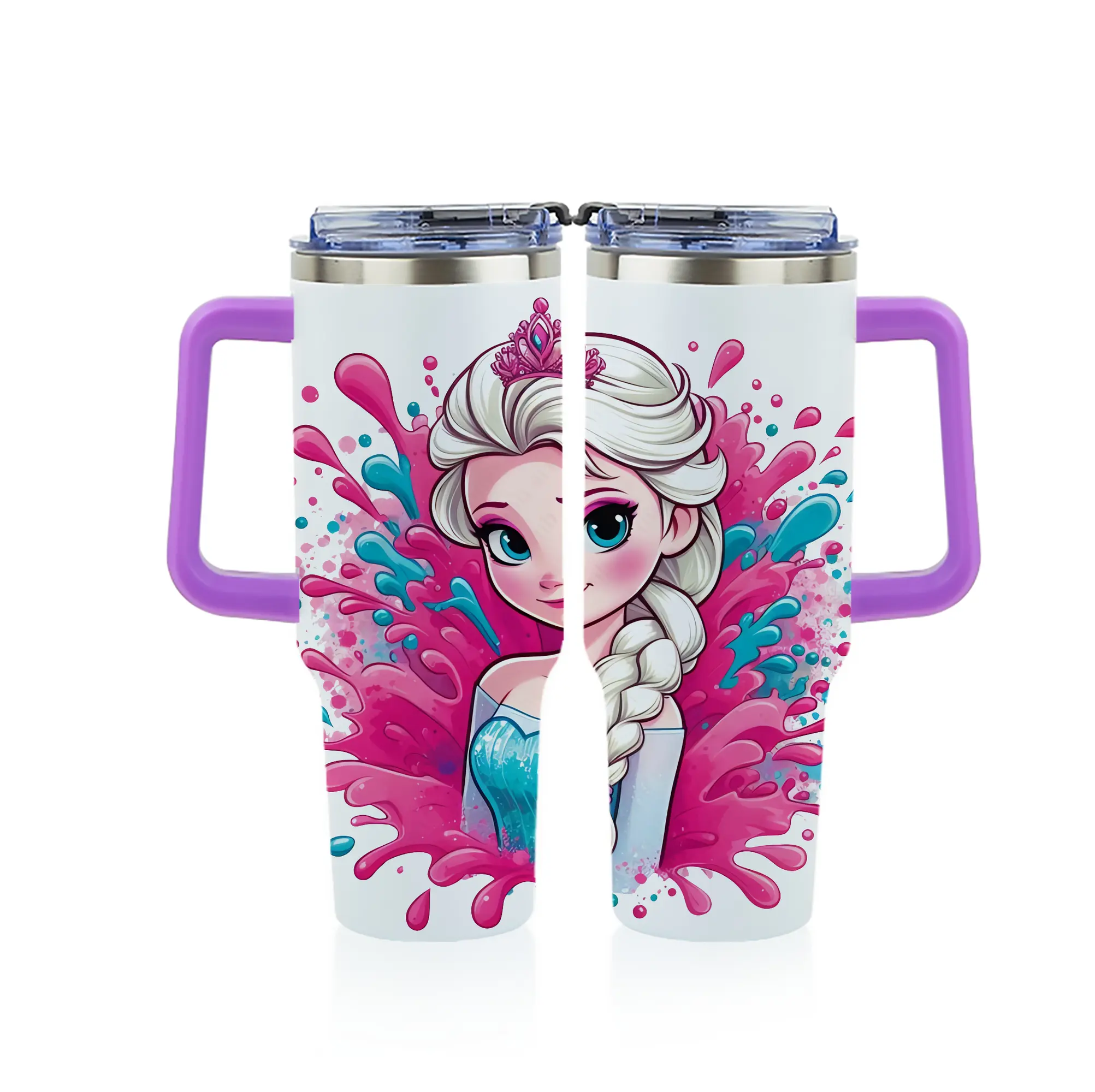 アナと雪の女王(Frozen) グッズ エルサ(Elsa) - 1200mL フルプリント車用タンブラー ・ 304ステンレス 内側 ・ 201ステンレス 外側 ・ 保温 保冷 ・ 通勤 ドライブ アウトドア用