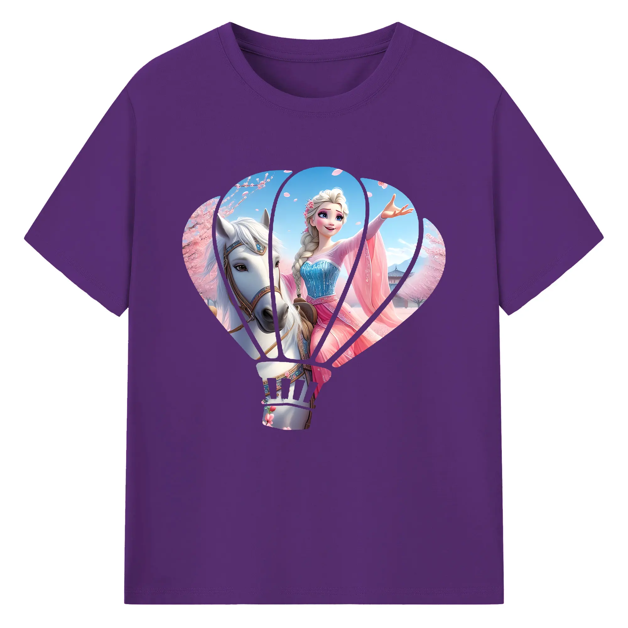 アナと雪の女王(Frozen) グッズ エルサ(Elsa) - 綿100% 半袖Tシャツ ・ バックプリント ・ 快適 通気性 ・ 日常使い 散歩 スポーツ用