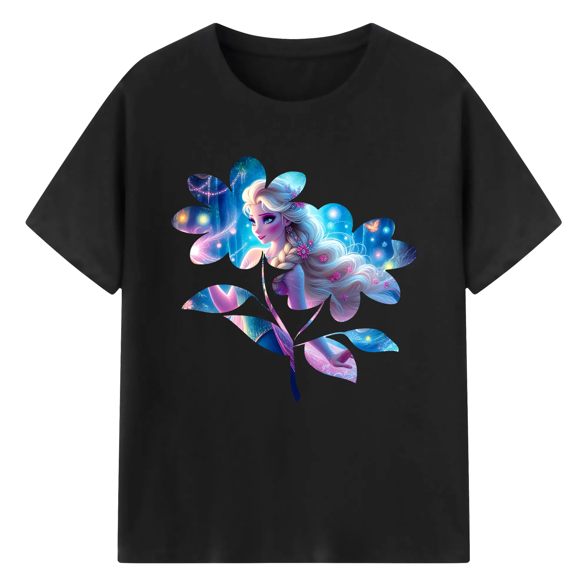 アナと雪の女王(Frozen) グッズ エルサ(Elsa) - 綿100% 半袖Tシャツ ・ バックプリント ・ 快適 通気性 ・ 日常使い 散歩 スポーツ用