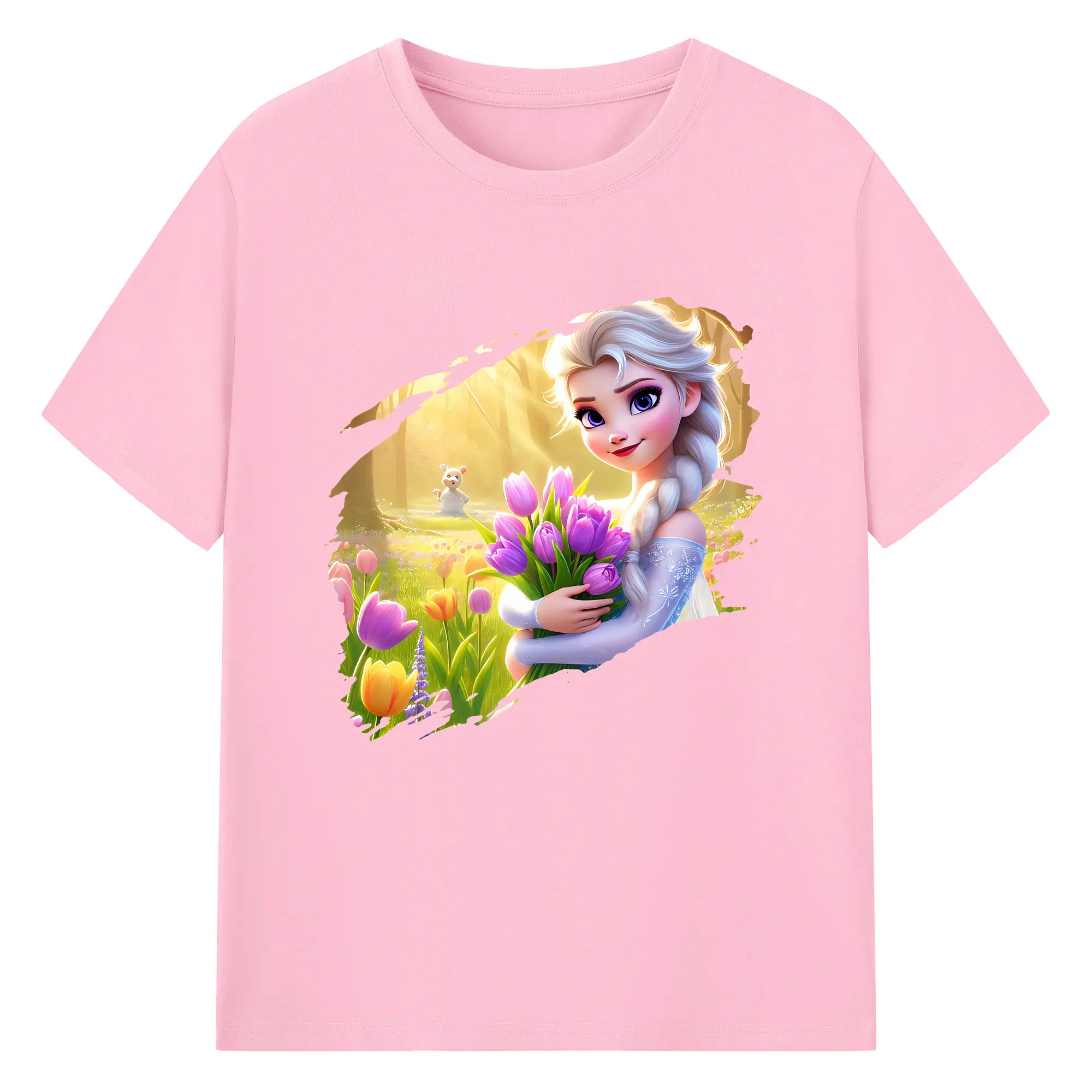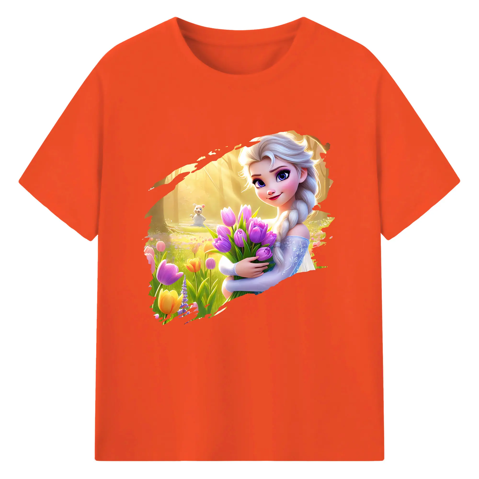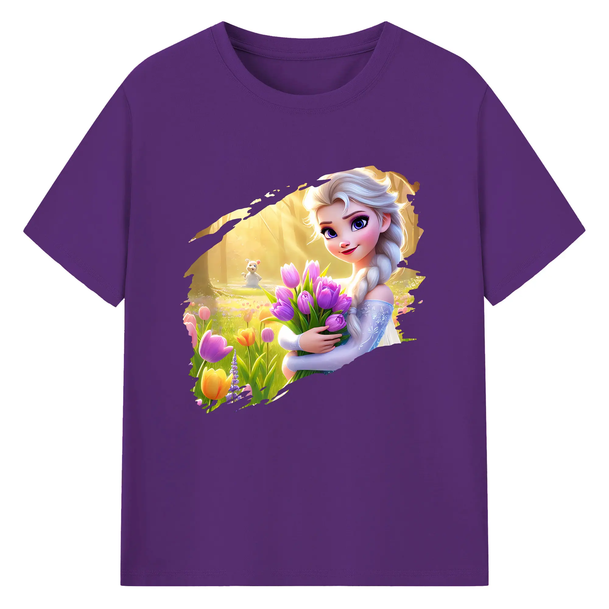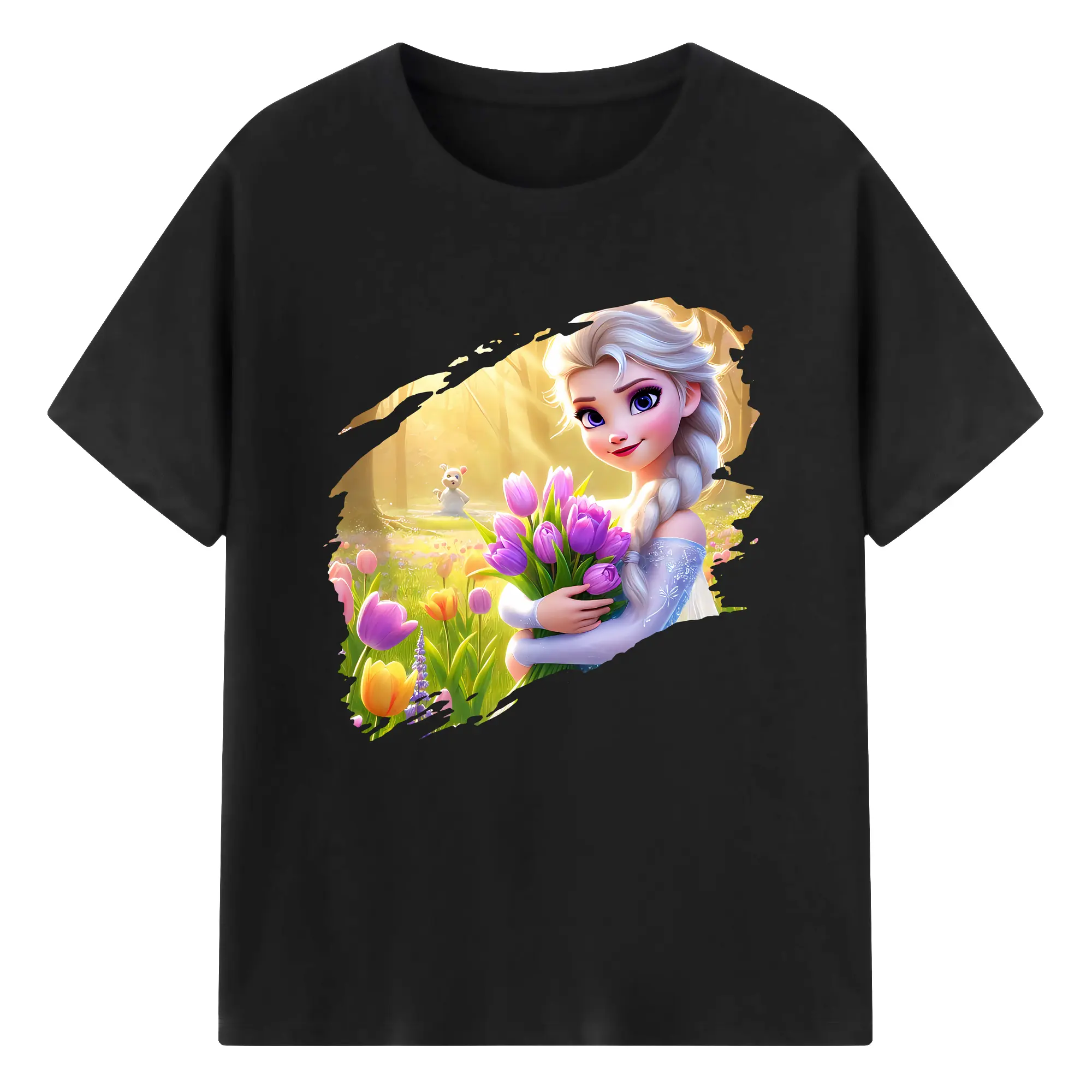 アナと雪の女王(Frozen) グッズ エルサ(Elsa) - 綿100% 半袖Tシャツ ・ バックプリント ・ 快適 通気性 ・ 日常使い 散歩 スポーツ用