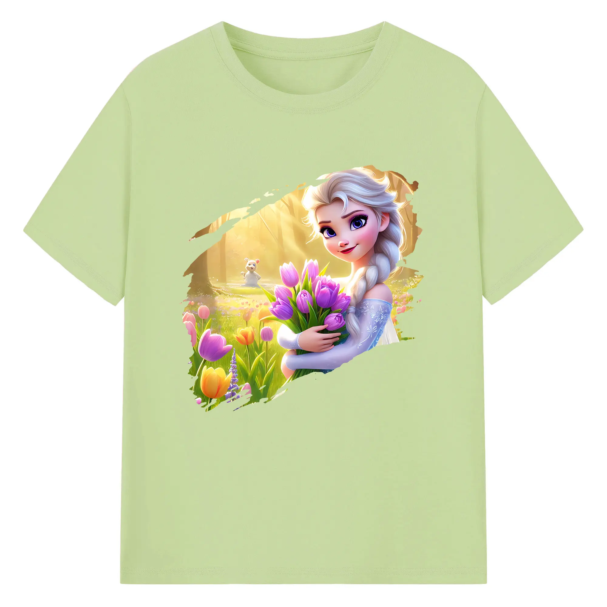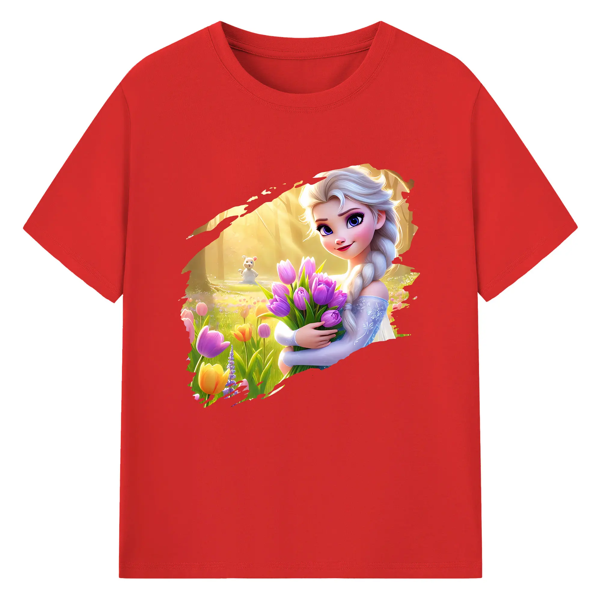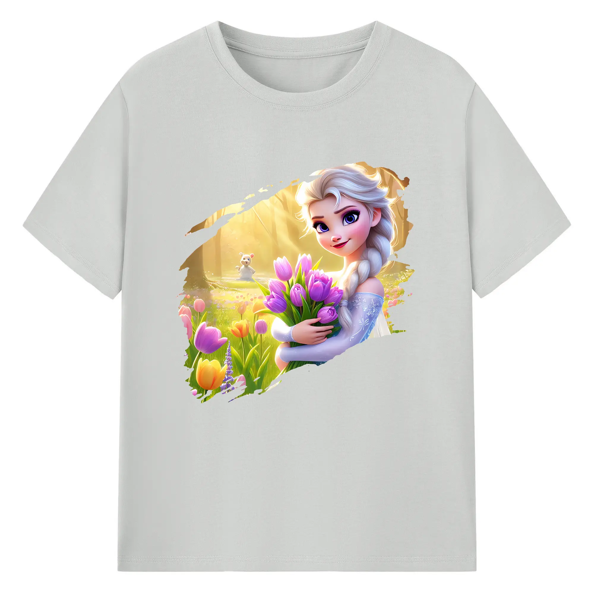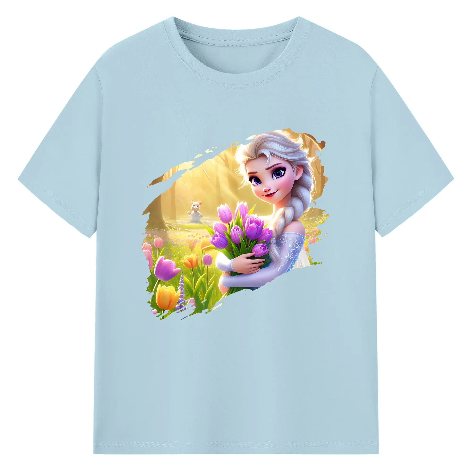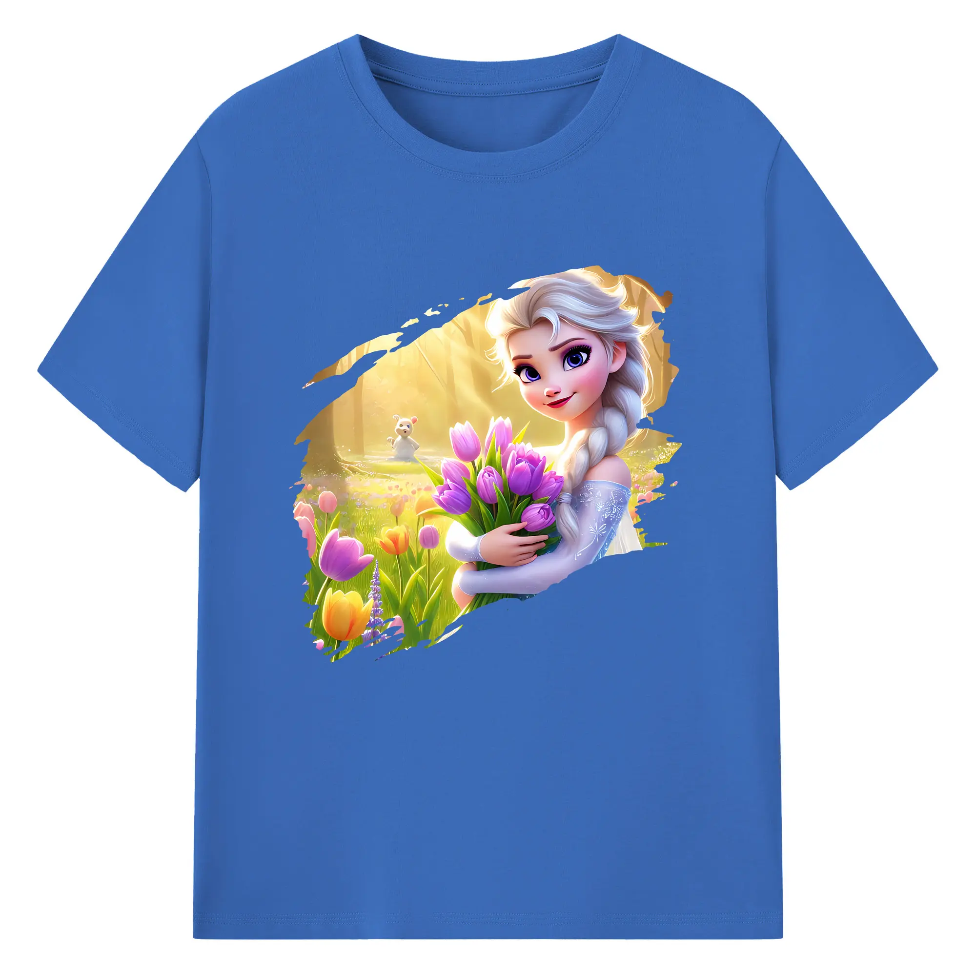 アナと雪の女王(Frozen) グッズ エルサ(Elsa) - 綿100% 半袖Tシャツ ・ バックプリント ・ 快適 通気性 ・ 日常使い 散歩 スポーツ用