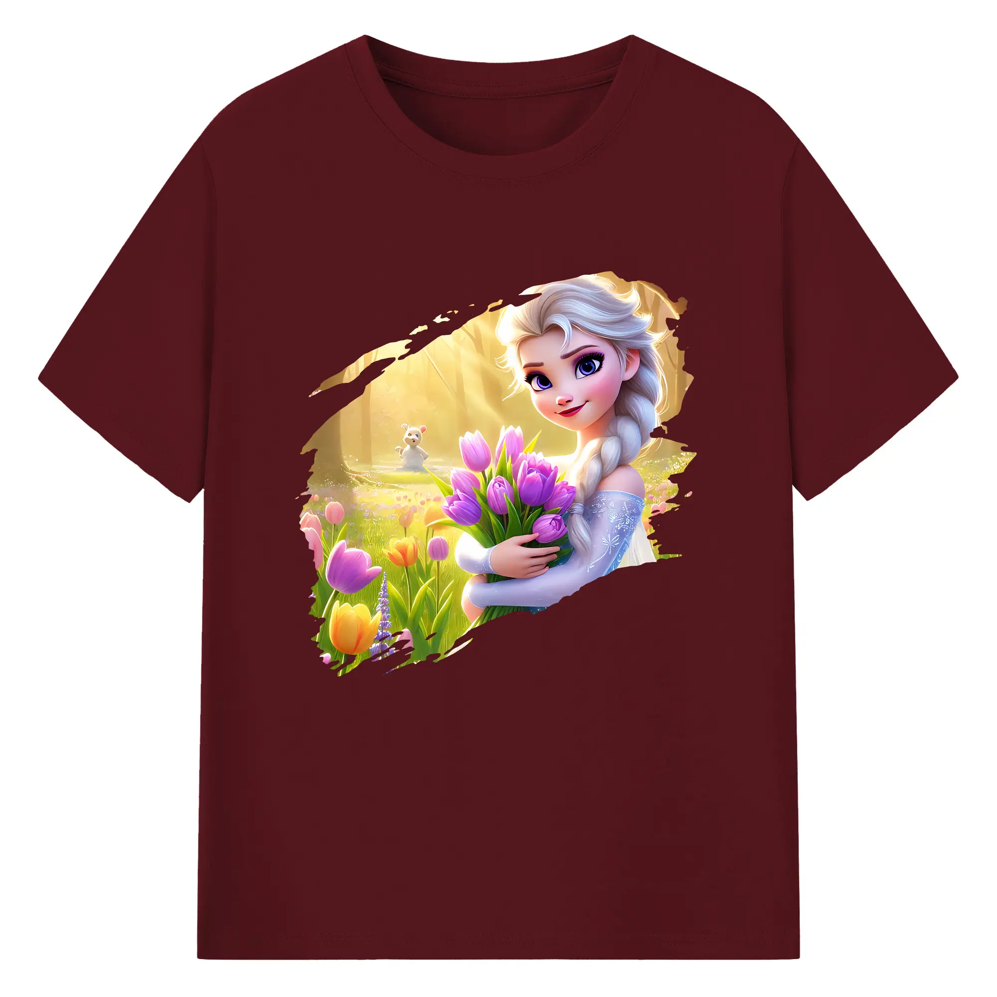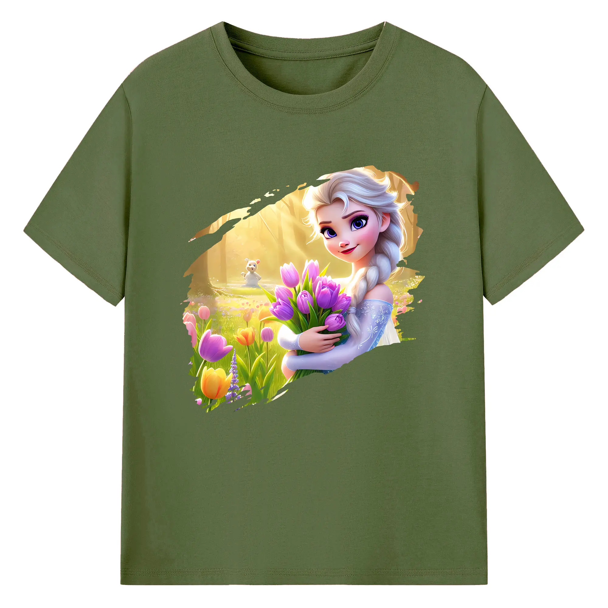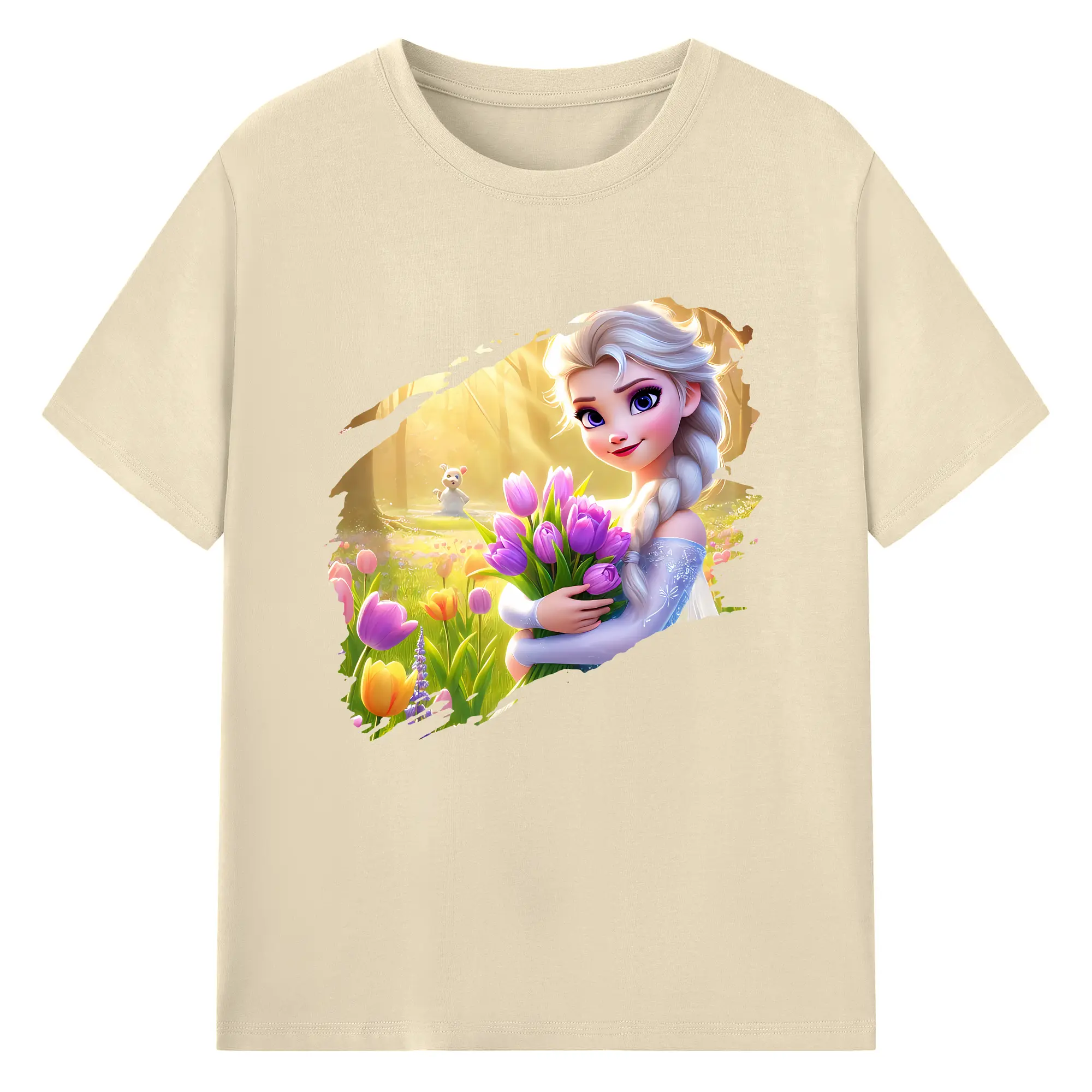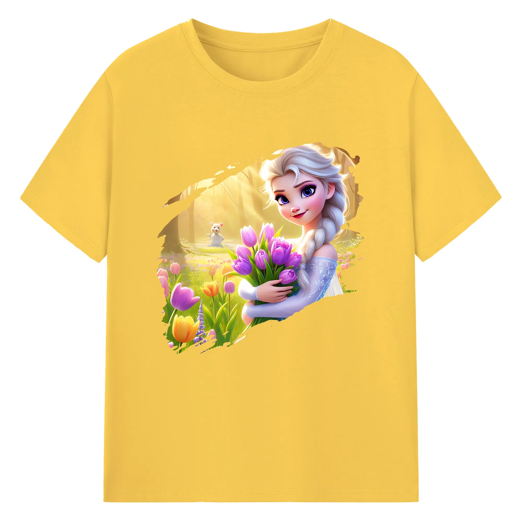 アナと雪の女王(Frozen) グッズ エルサ(Elsa) - 綿100% 半袖Tシャツ ・ バックプリント ・ 快適 通気性 ・ 日常使い 散歩 スポーツ用