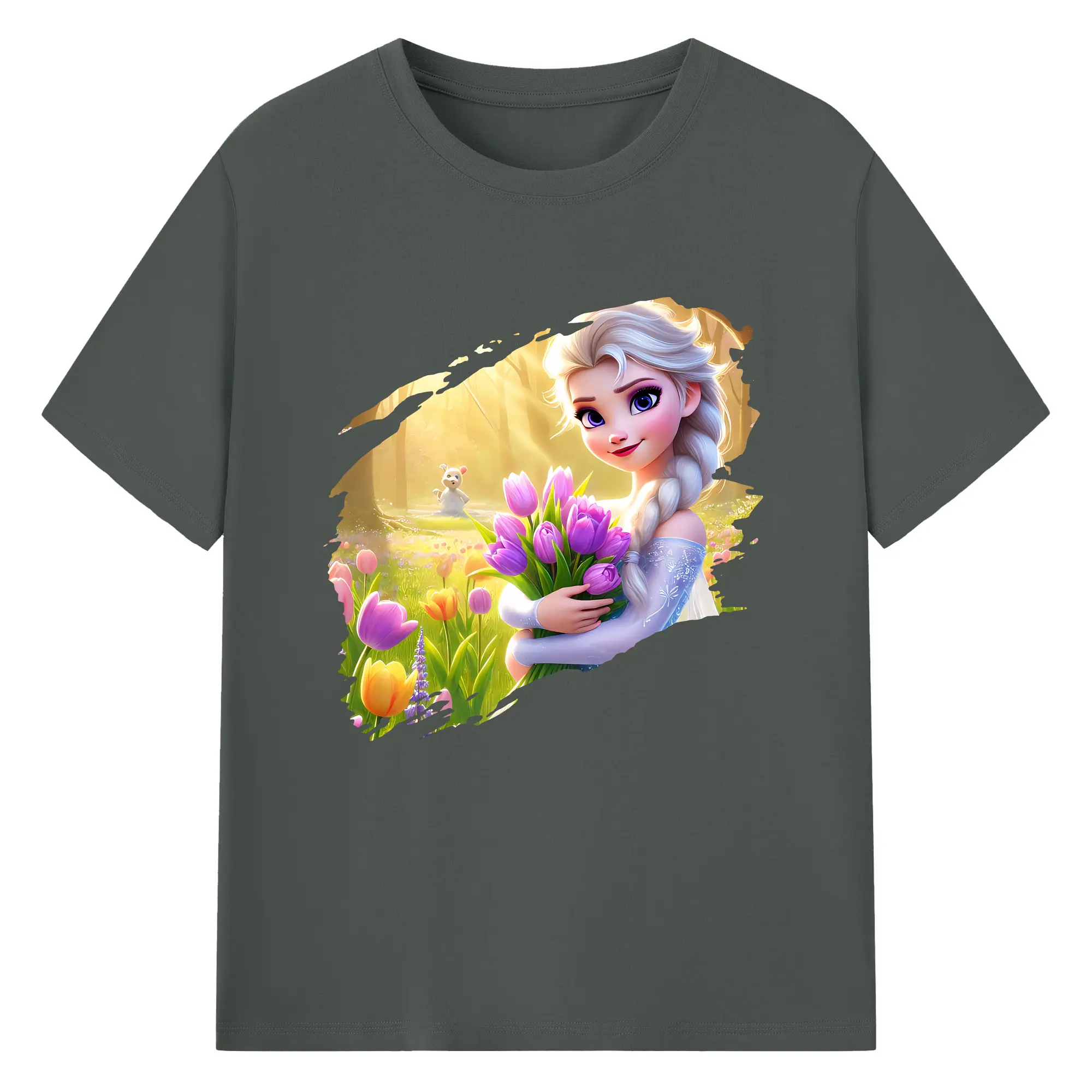 アナと雪の女王(Frozen) グッズ エルサ(Elsa) - 綿100% ヴィンテージ風 半袖Tシャツ ・ 背面プリント ・ 柔らか肌触り ・ 通気性 快適 ・ スポーツ カジュアル 外出用