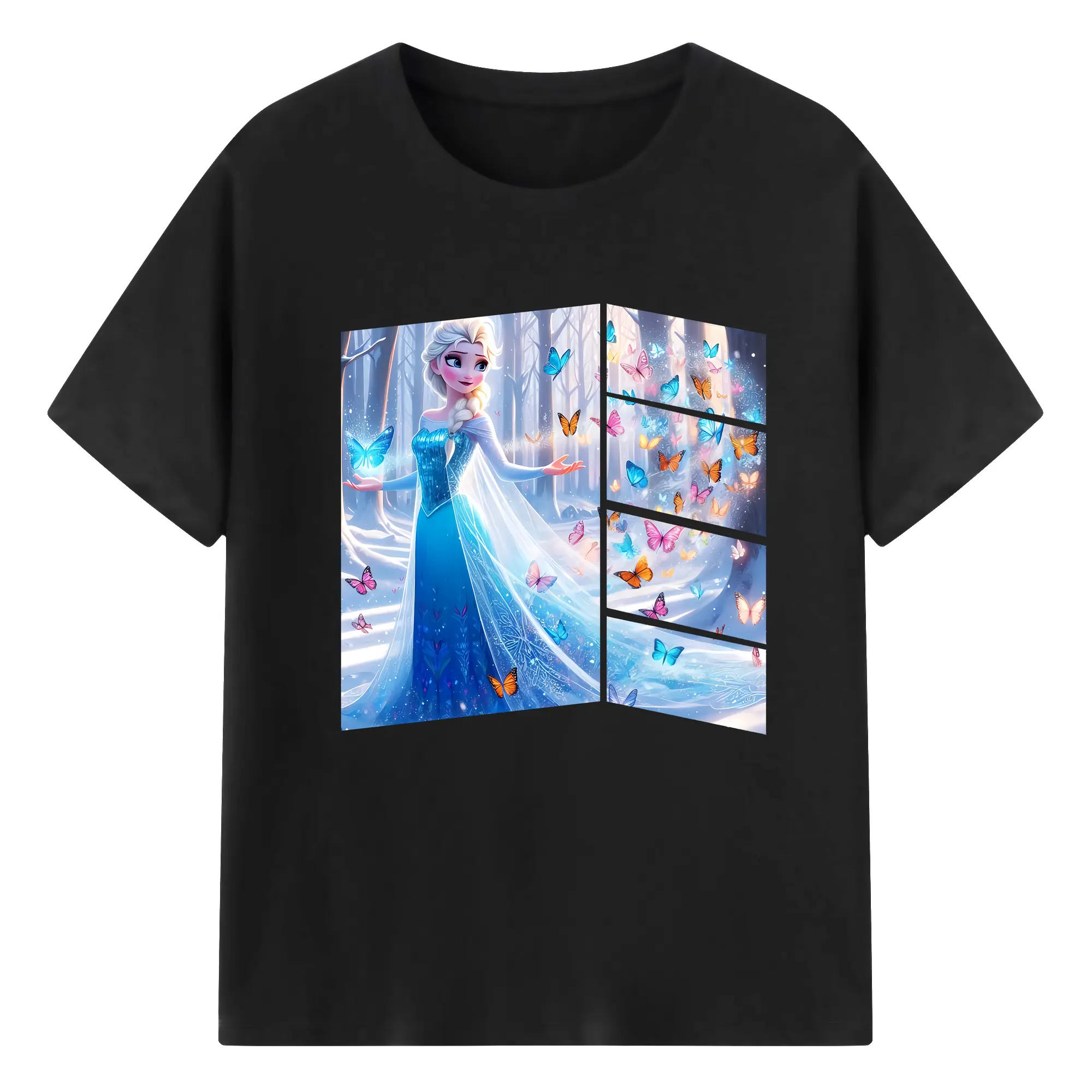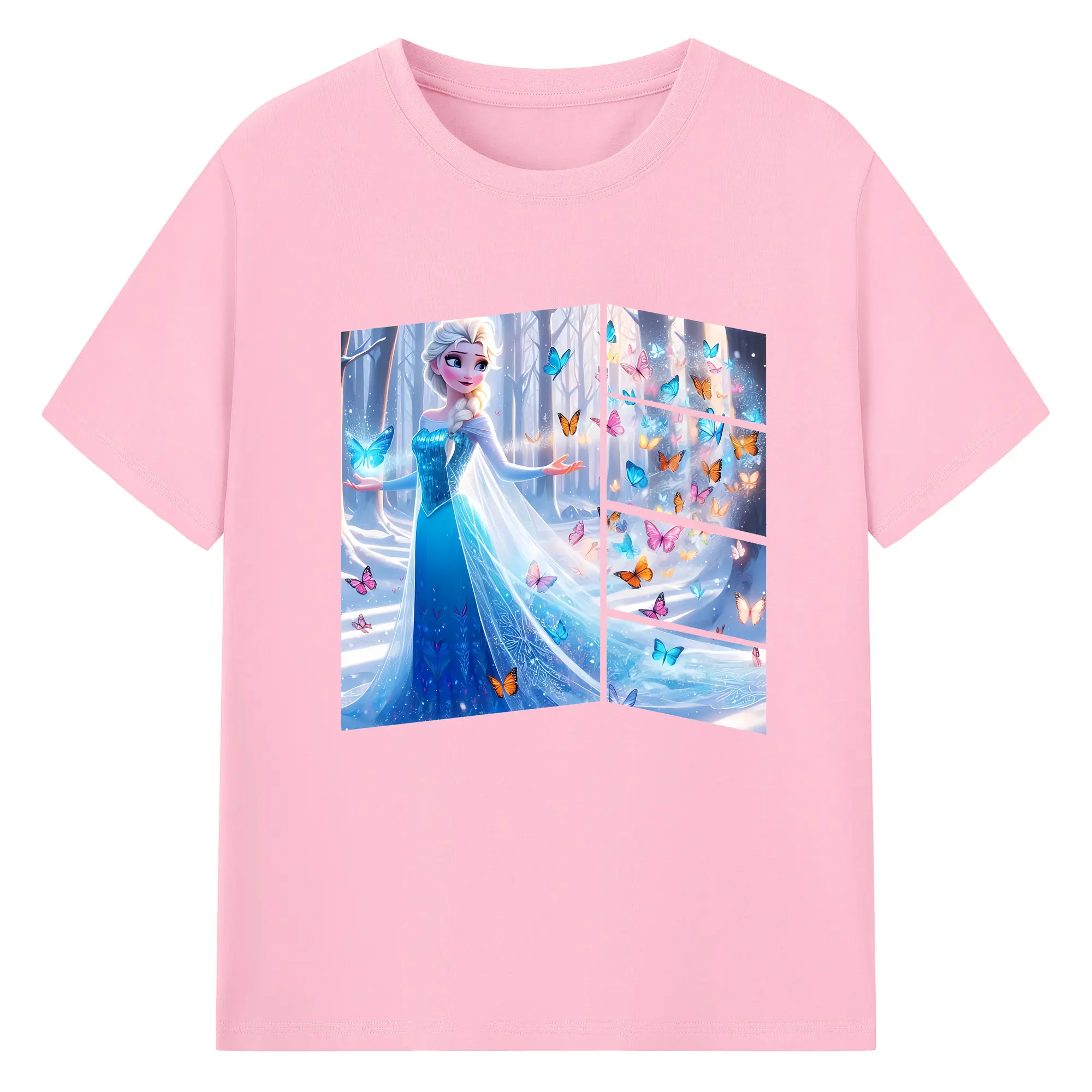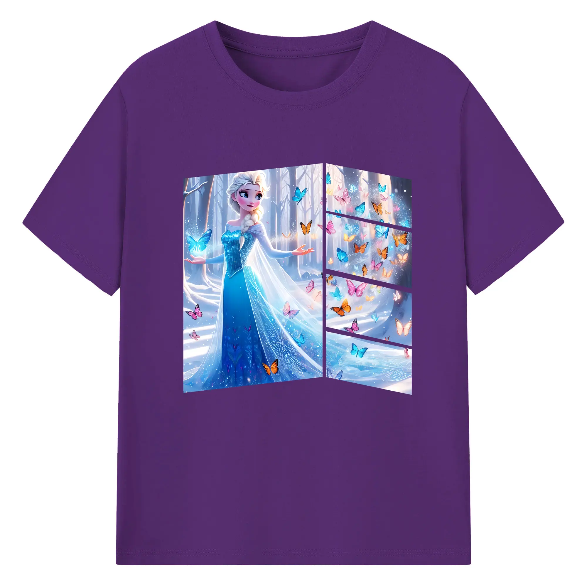 アナと雪の女王(Frozen) グッズ エルサ(Elsa) - 綿100% 半袖Tシャツ ・ フロントプリント ・ 快適 通気性 ・ 日常使い 散歩 スポーツ用
