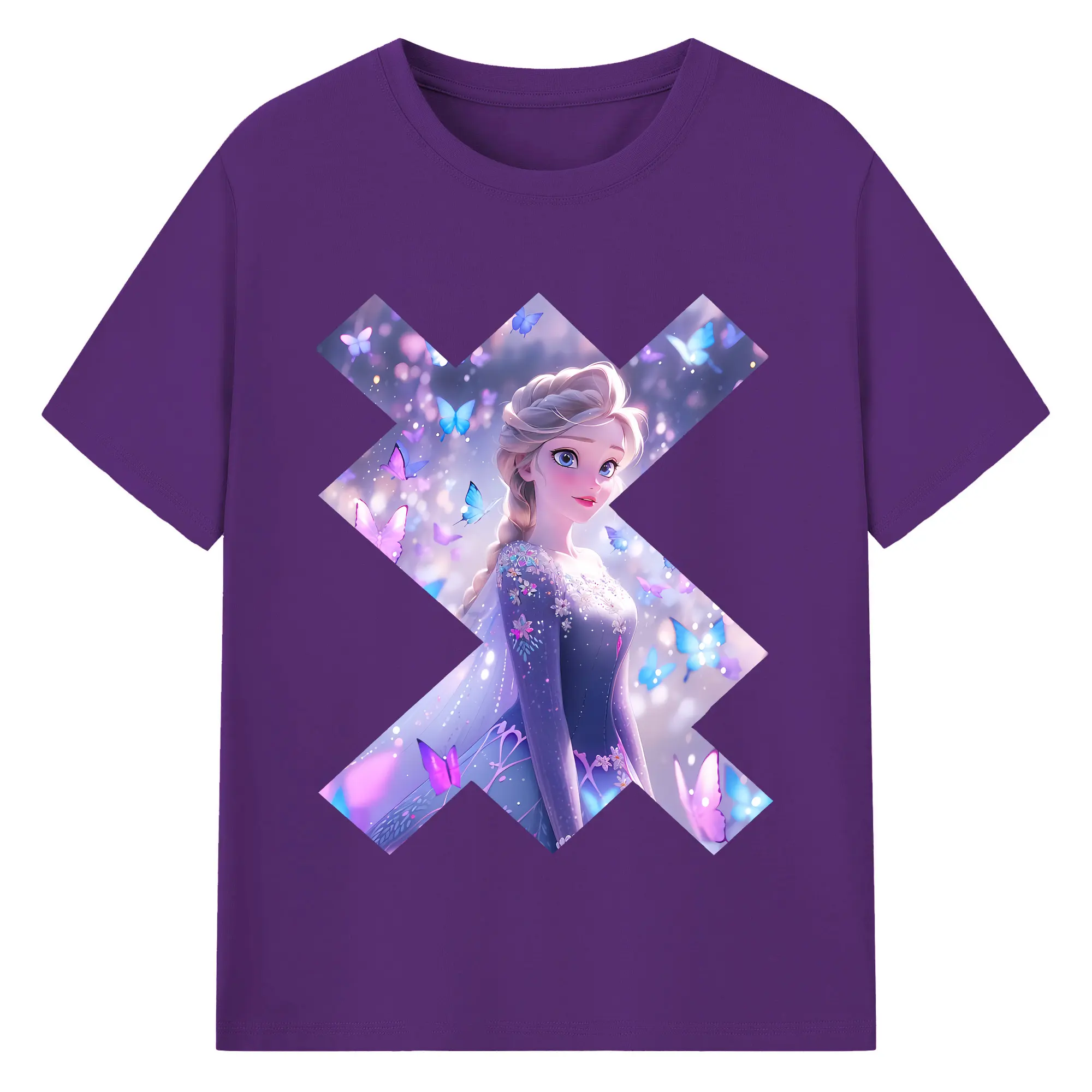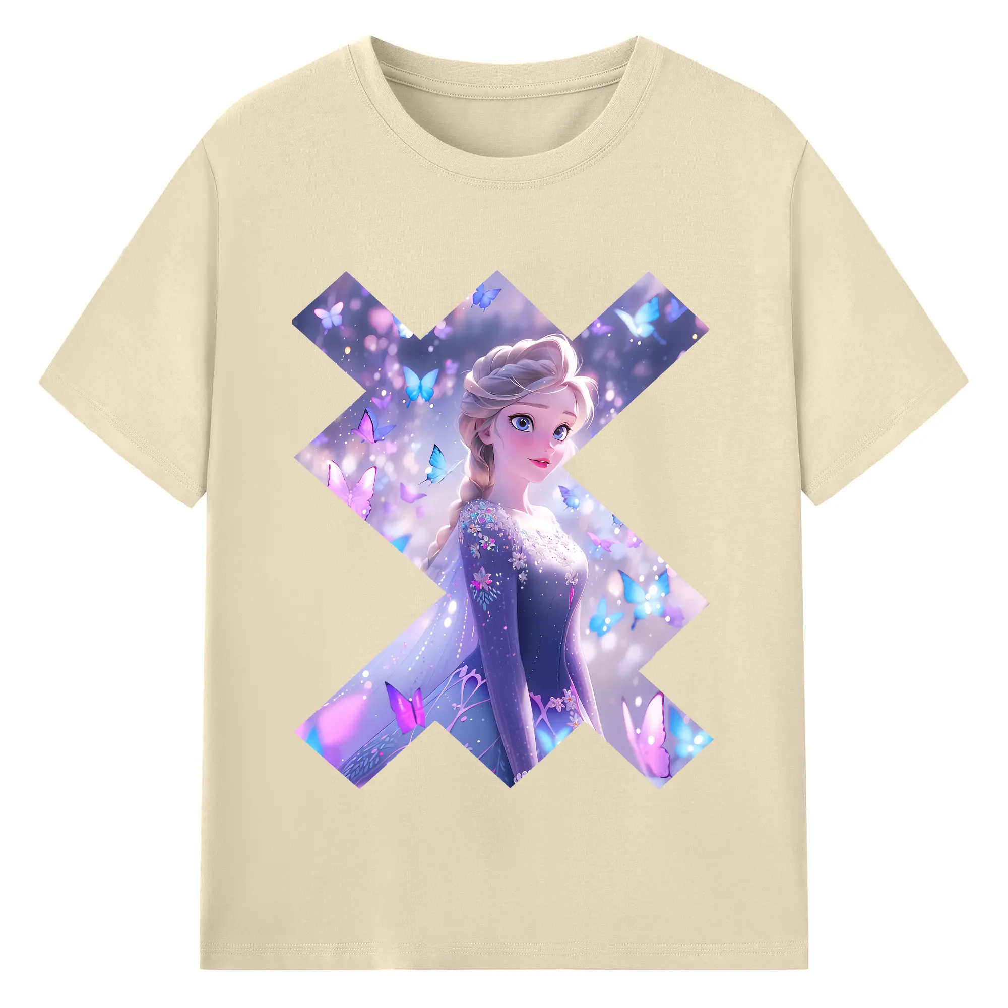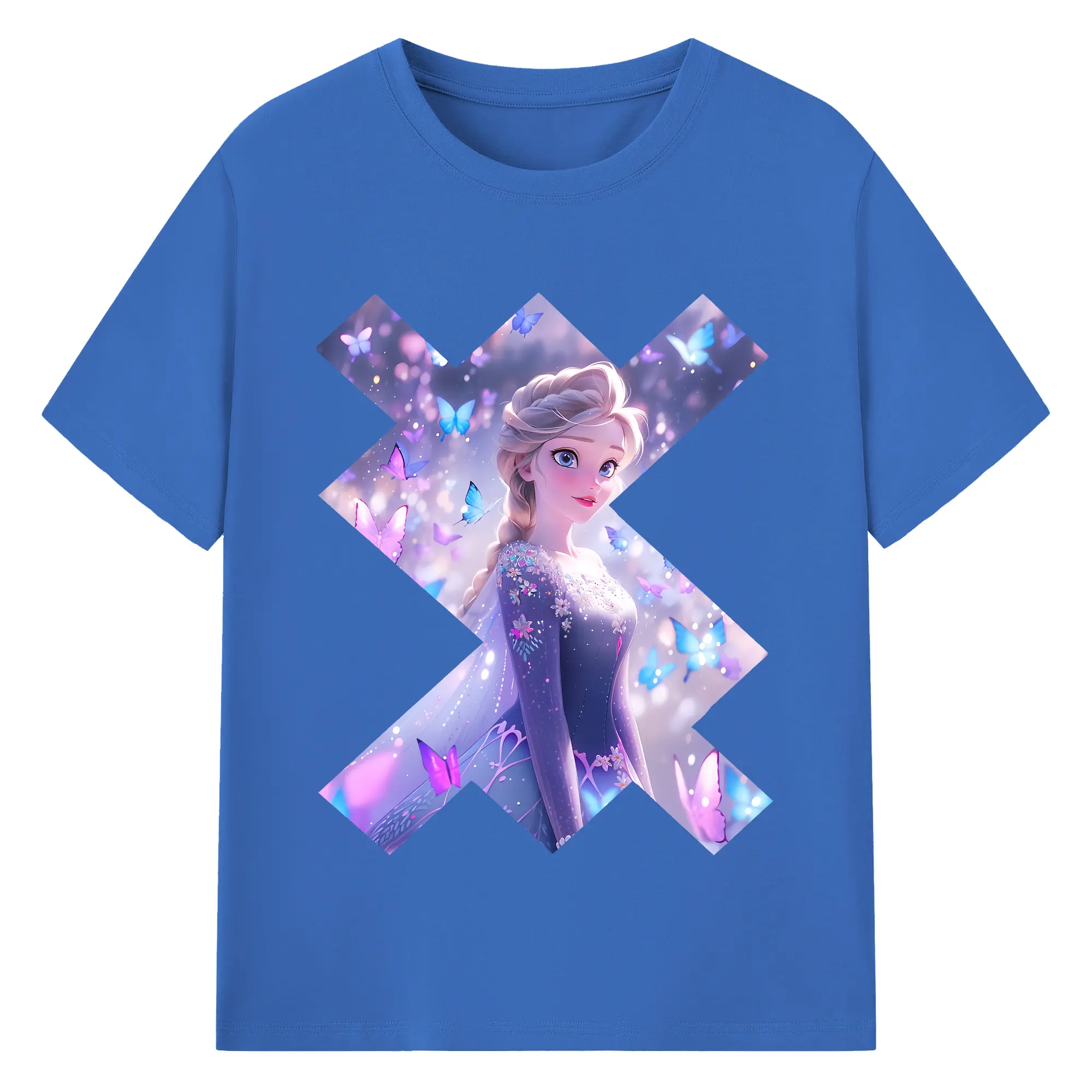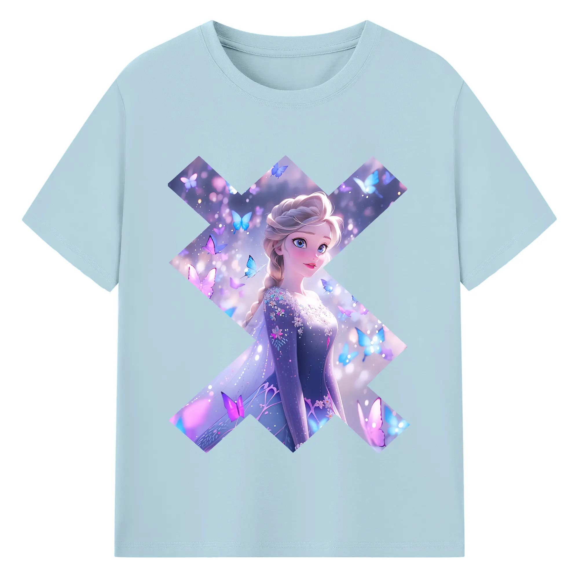 アナと雪の女王(Frozen) グッズ エルサ(Elsa) - 綿100% 半袖Tシャツ ・ バックプリント ・ 快適 通気性 ・ 日常使い 散歩 スポーツ用