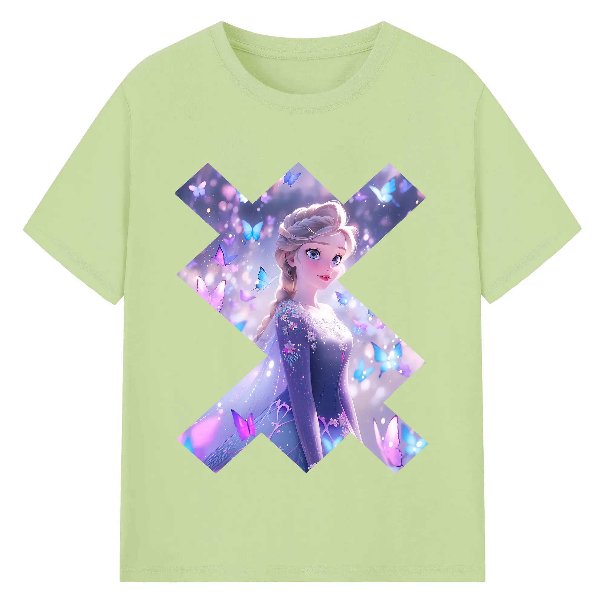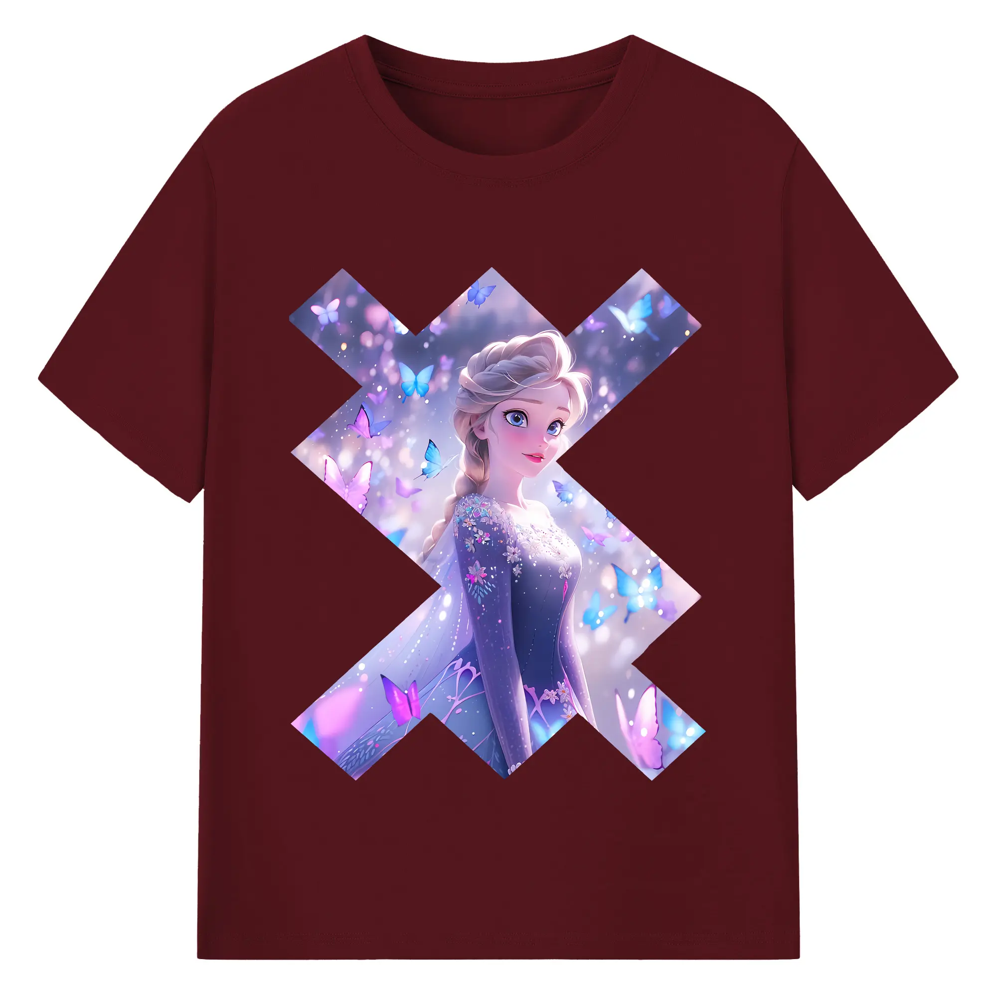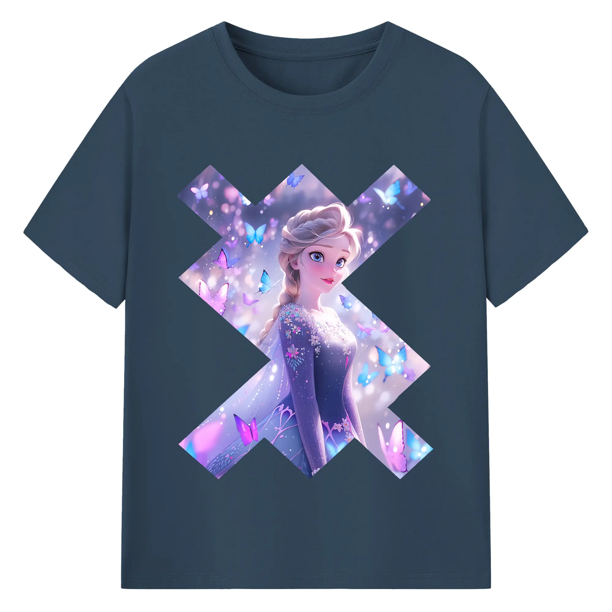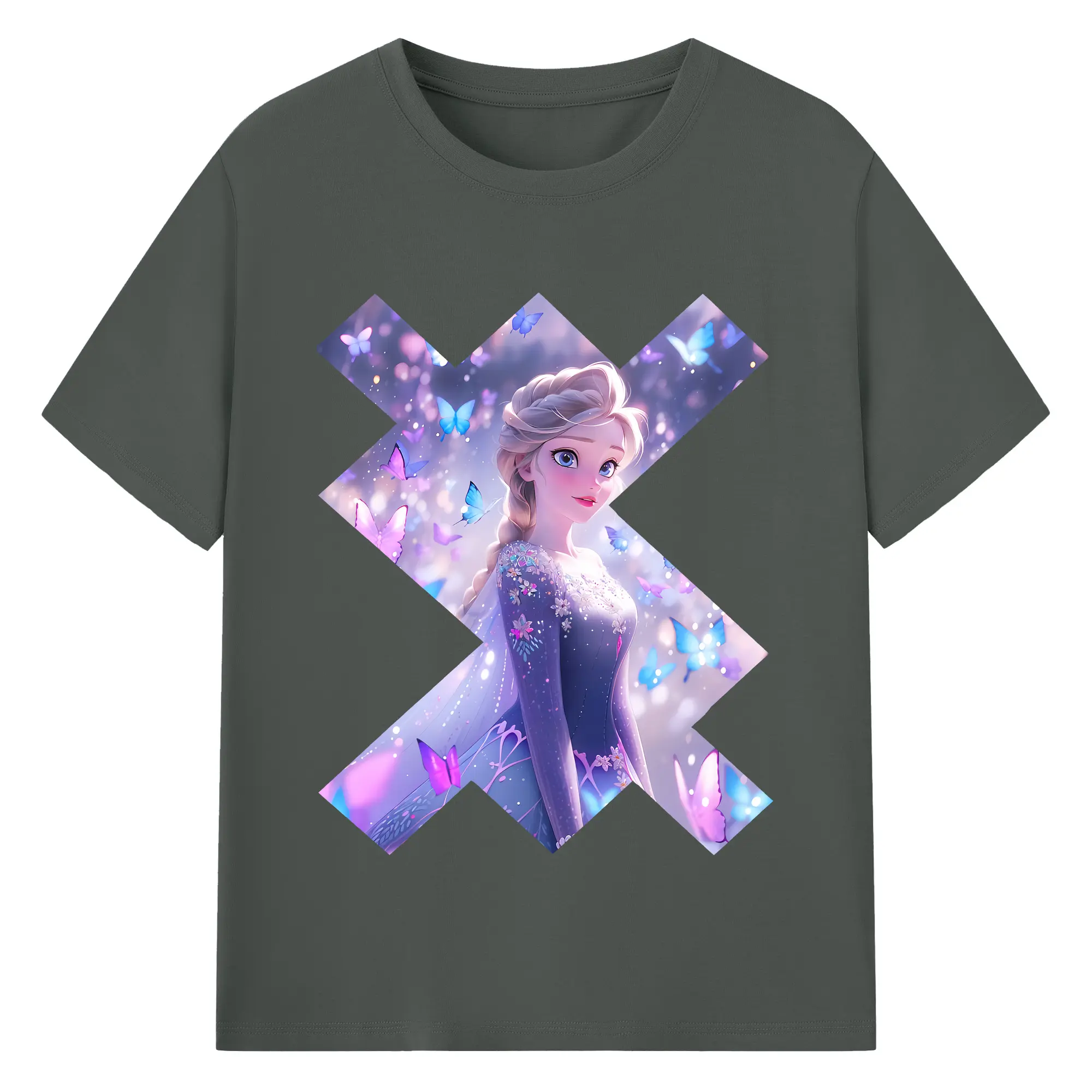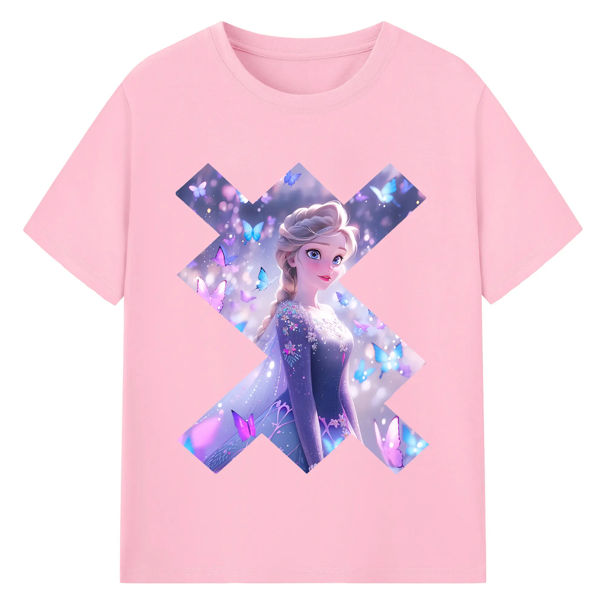 アナと雪の女王(Frozen) グッズ エルサ(Elsa) - 綿100% 半袖Tシャツ ・ バックプリント ・ 快適 通気性 ・ 日常使い 散歩 スポーツ用