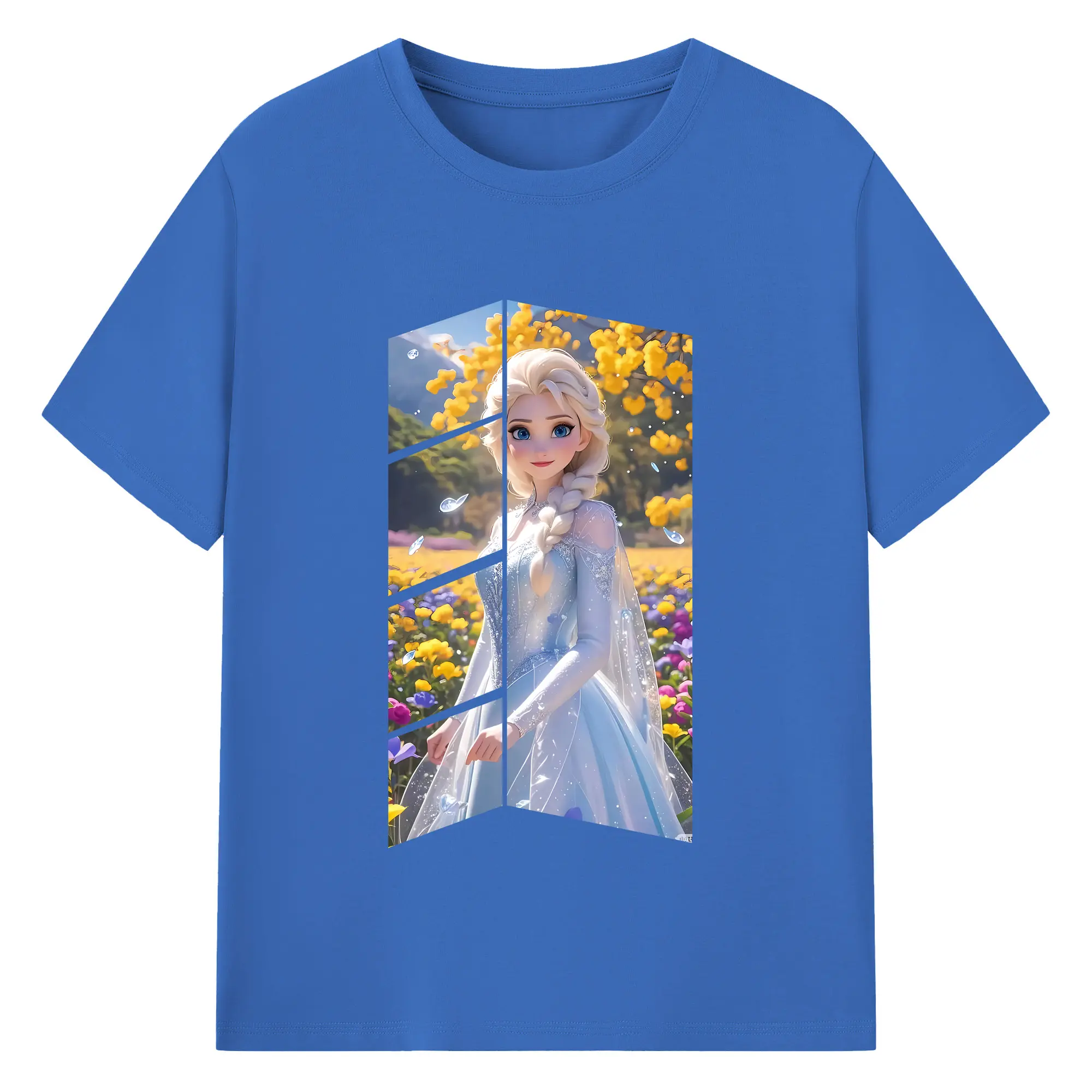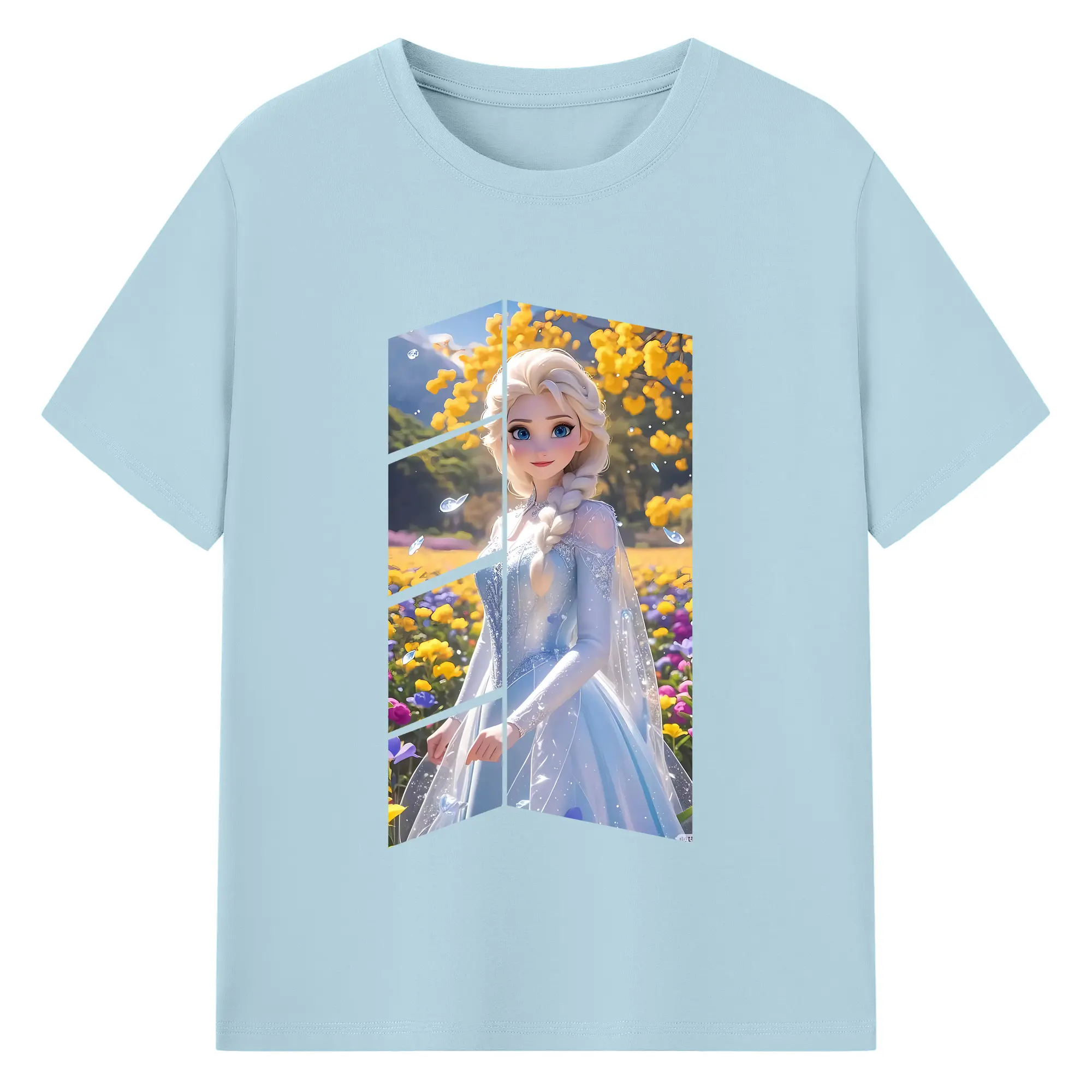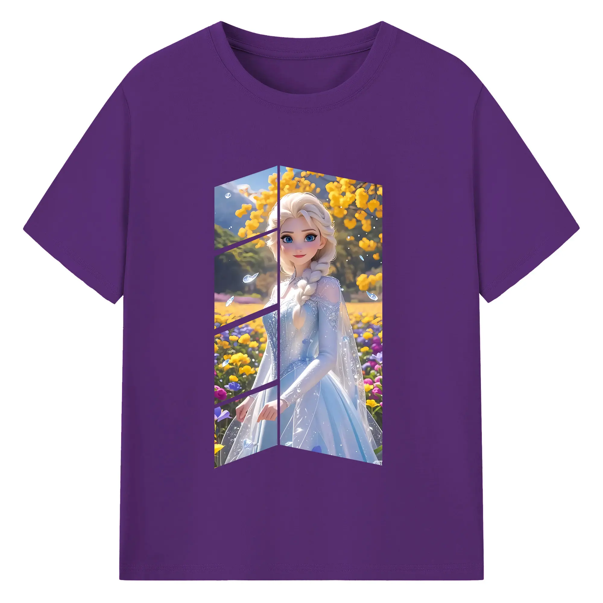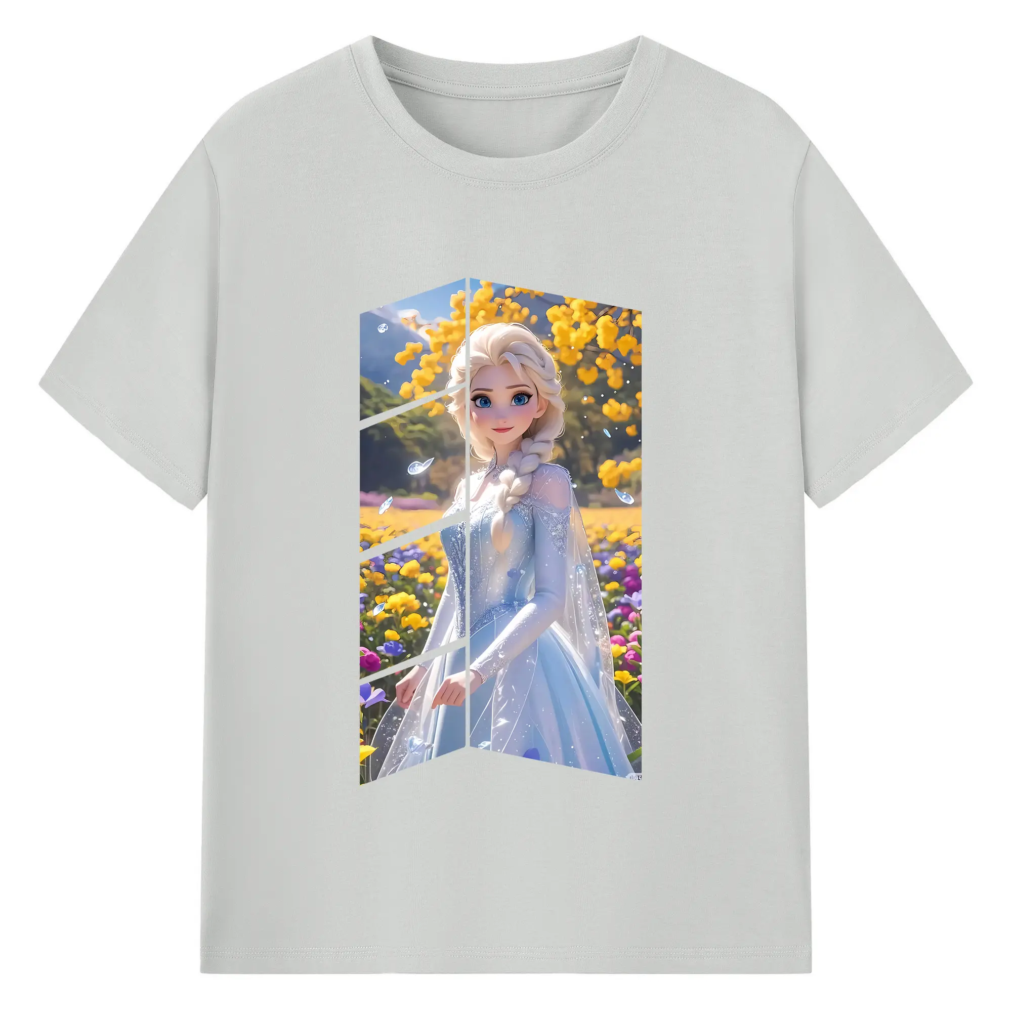 アナと雪の女王(Frozen) グッズ エルサ(Elsa) - 綿100% 半袖Tシャツ ・ バックプリント ・ 快適 通気性 ・ 日常使い 散歩 スポーツ用