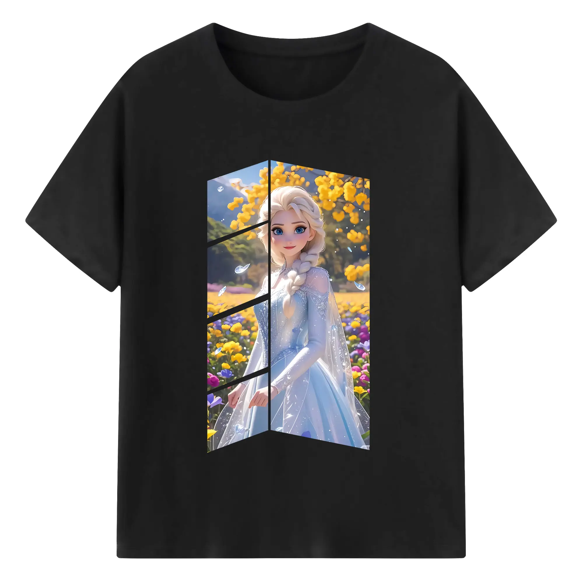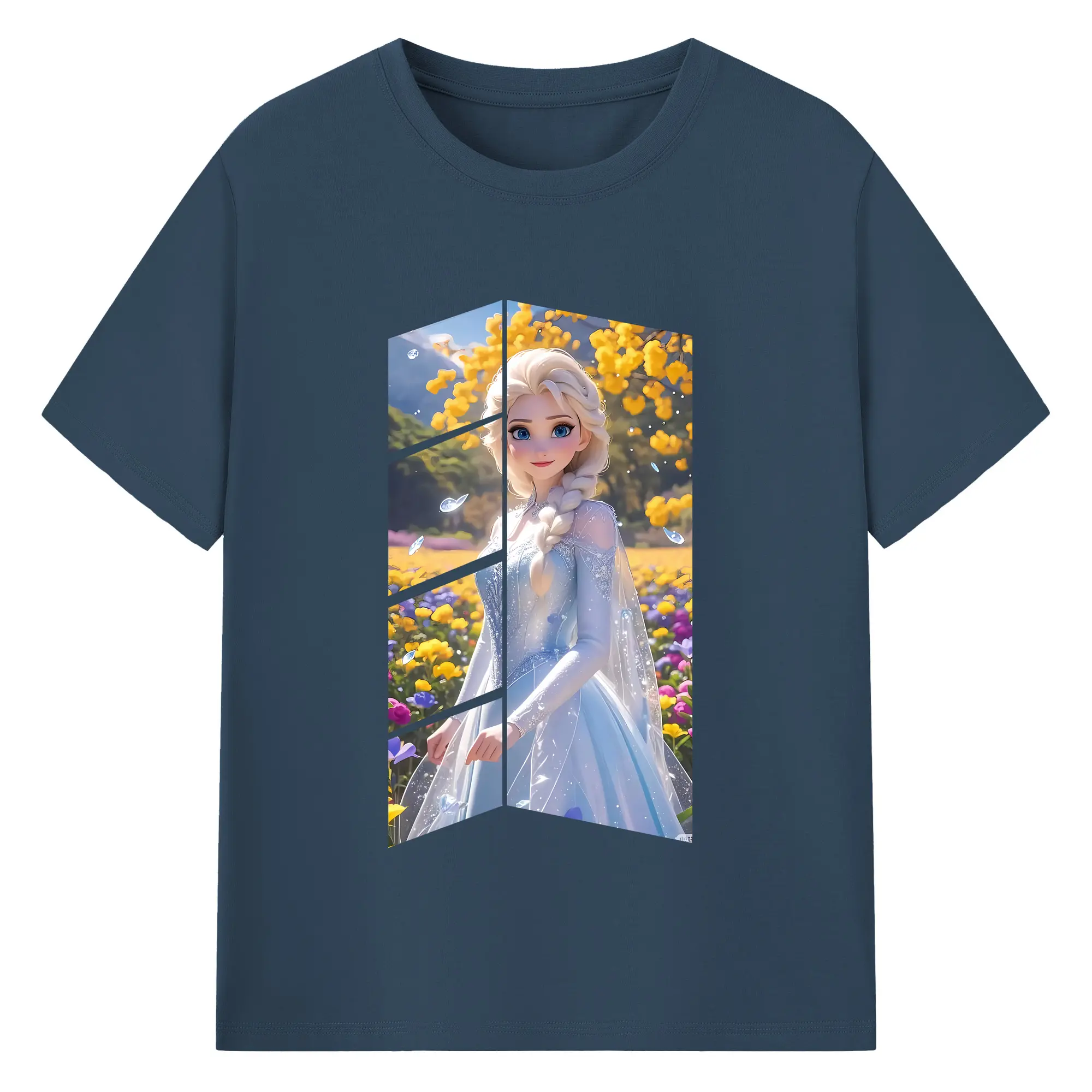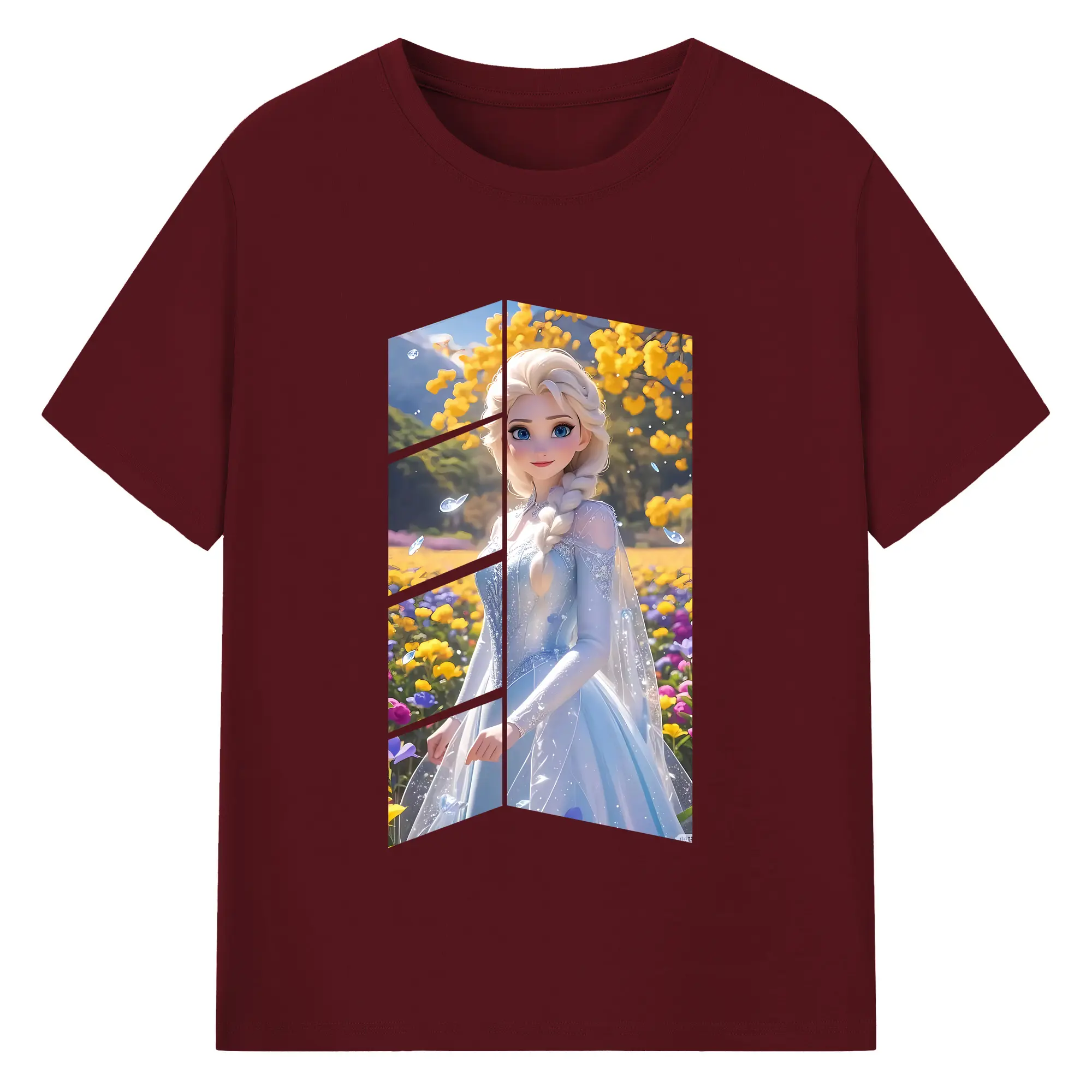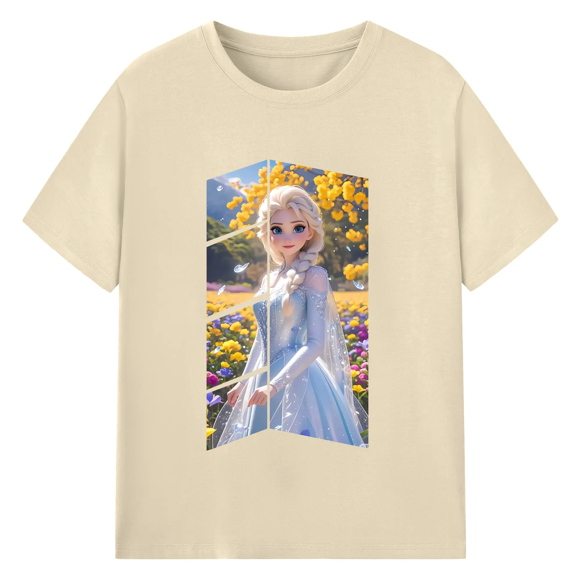 アナと雪の女王(Frozen) グッズ エルサ(Elsa) - 綿100% 半袖Tシャツ ・ バックプリント ・ 快適 通気性 ・ 日常使い 散歩 スポーツ用
