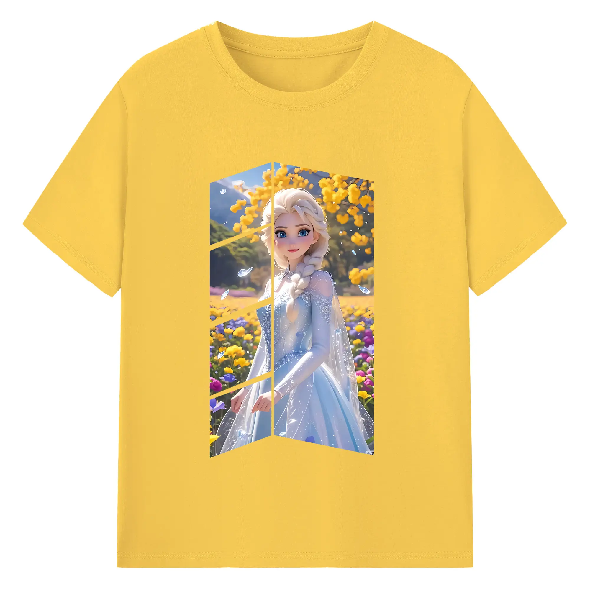 アナと雪の女王(Frozen) グッズ エルサ(Elsa) - 綿100% キッズTシャツ ・ フロントプリント ・ 快適 通気性 ・ スポーツ カジュアル 散歩用