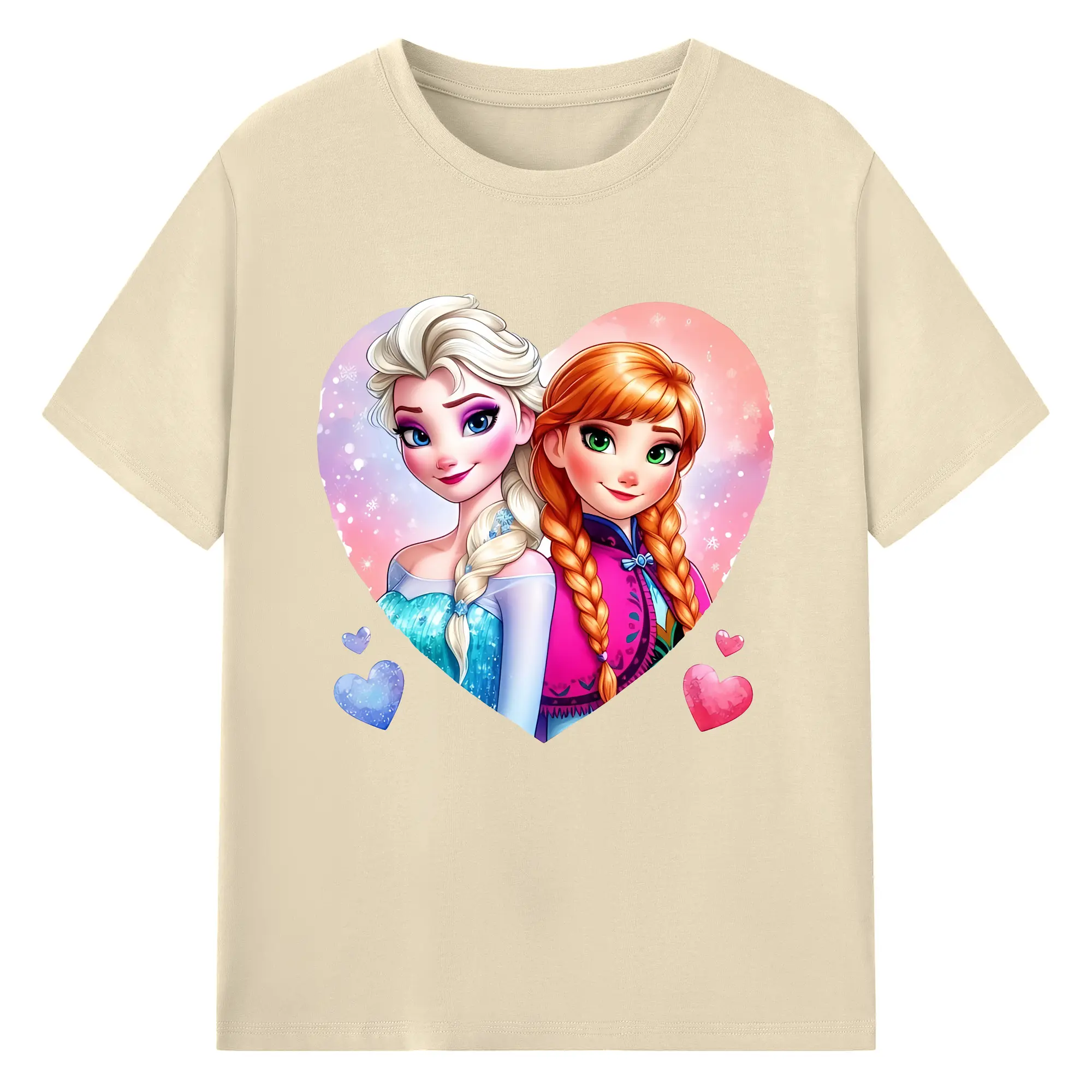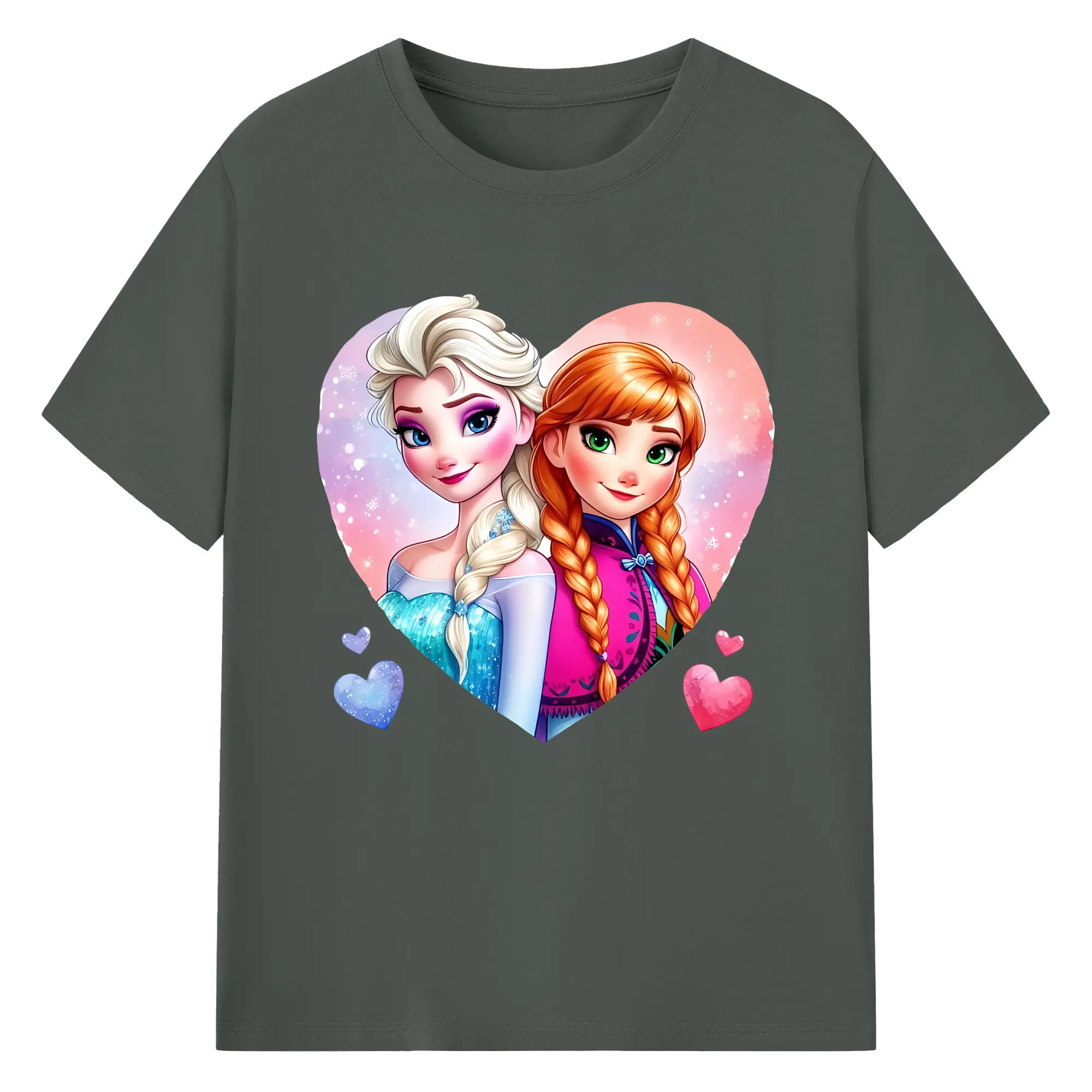 アナと雪の女王(Frozen) グッズ エルサ(Elsa) - 綿100% ヴィンテージ風 半袖Tシャツ ・ 背面プリント ・ 柔らか肌触り ・ 通気性 快適 ・ スポーツ カジュアル 外出用