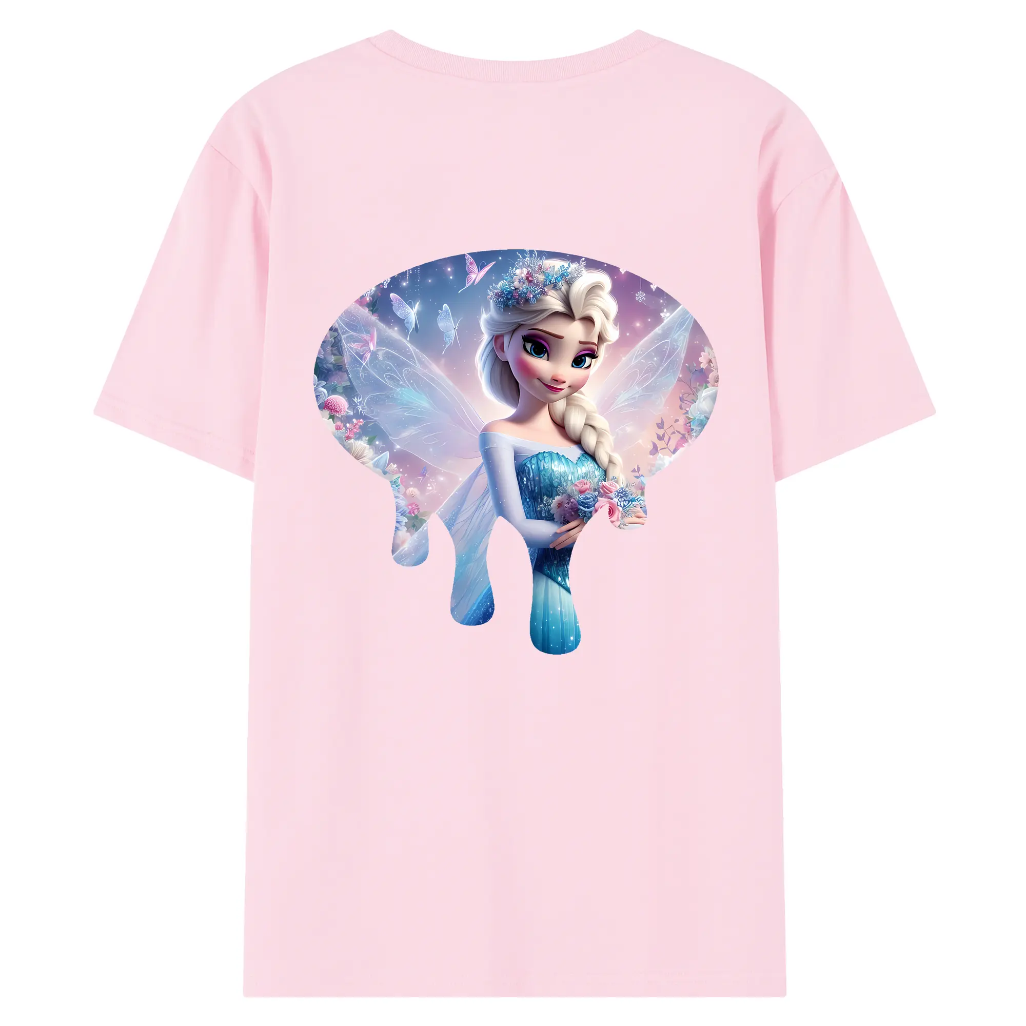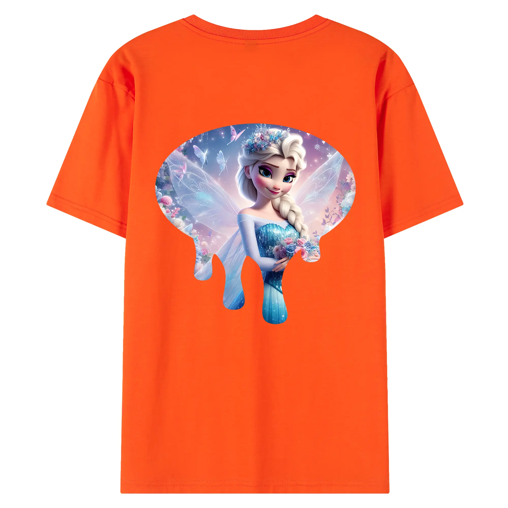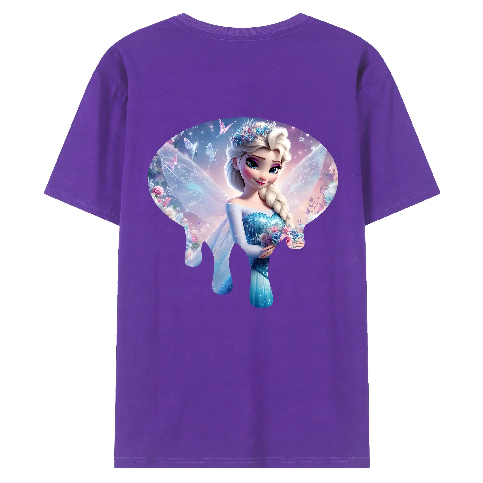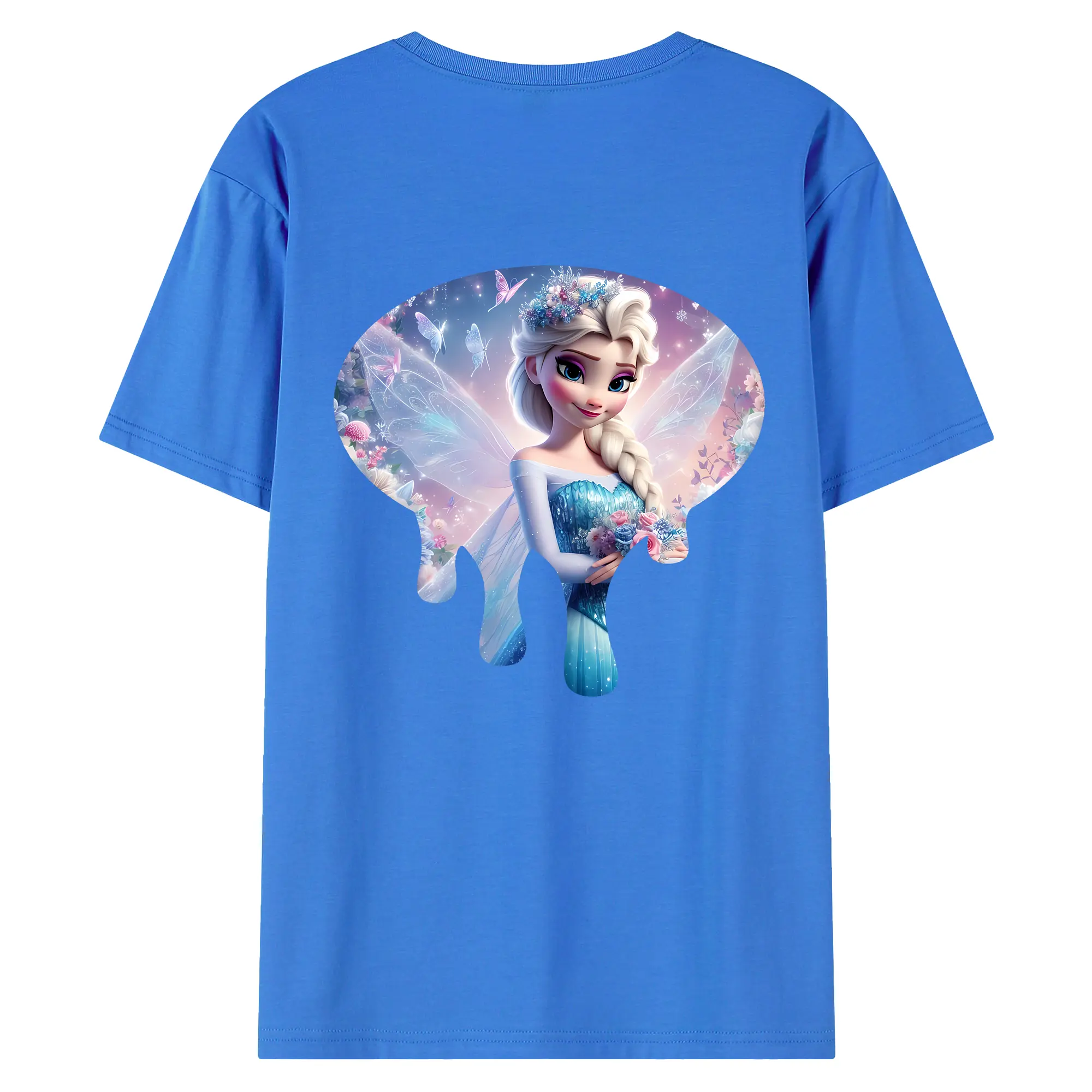 アナと雪の女王(Frozen) グッズ エルサ(Elsa) - 綿100% 半袖Tシャツ ・ フロントプリント ・ 快適 通気性 ・ 日常使い 散歩 スポーツ用