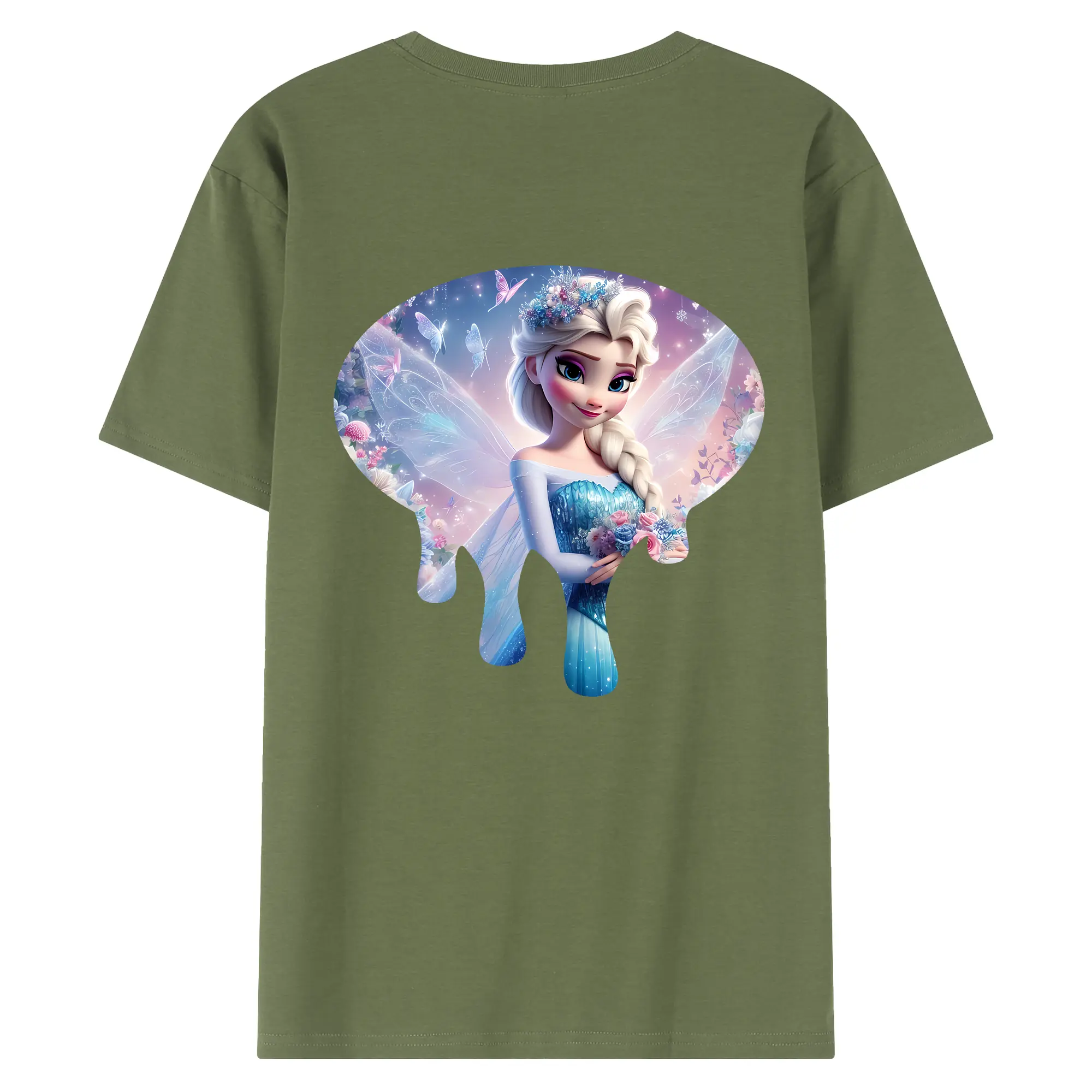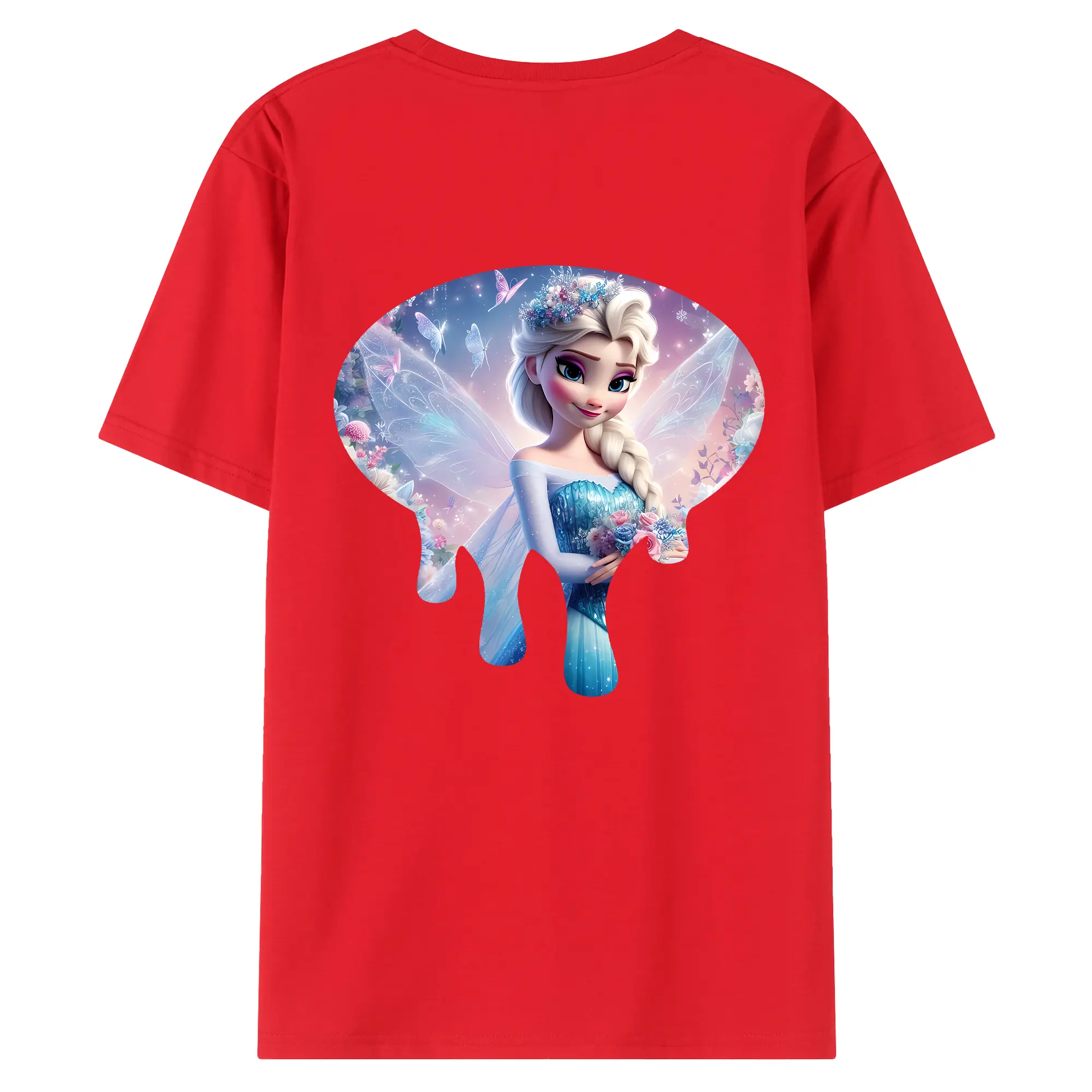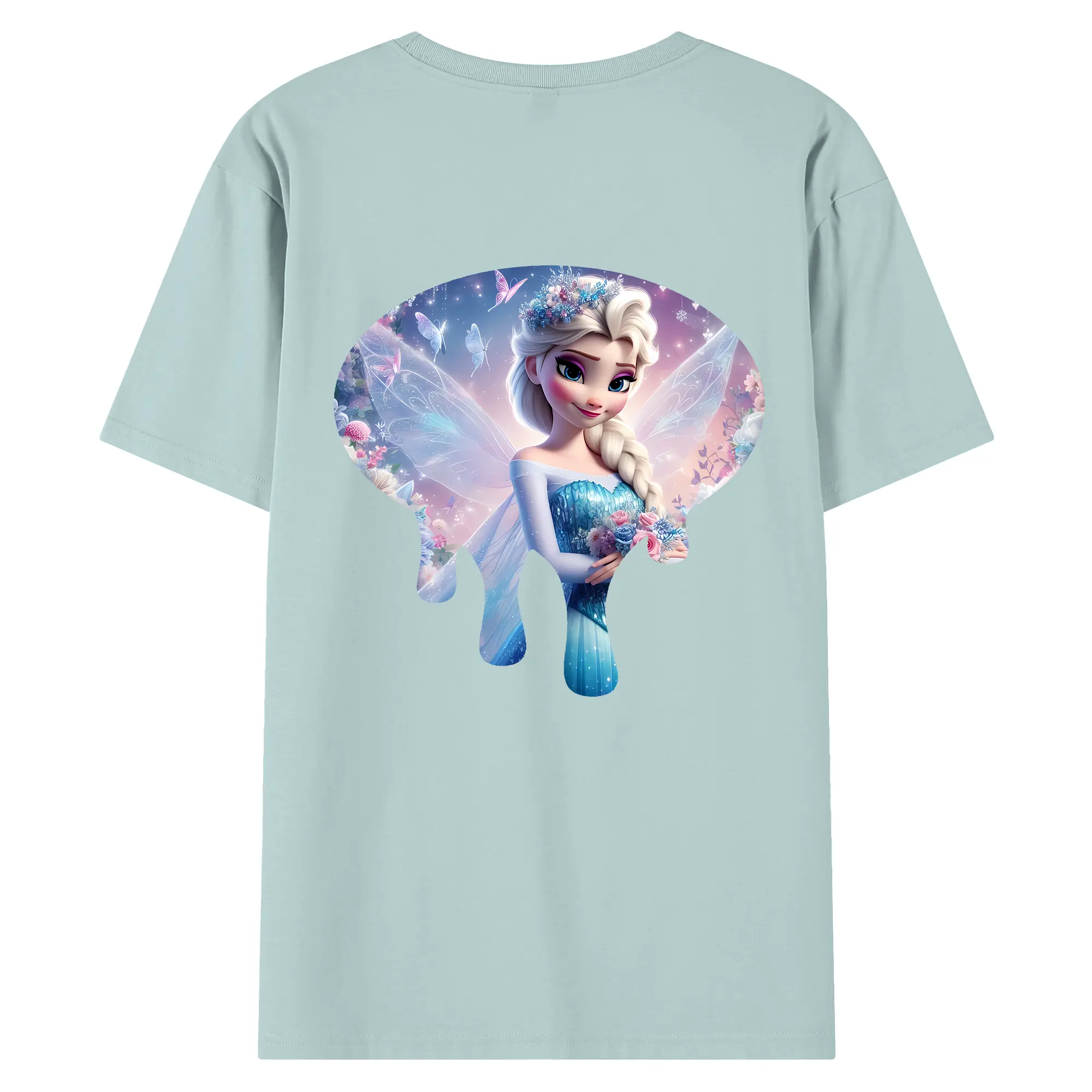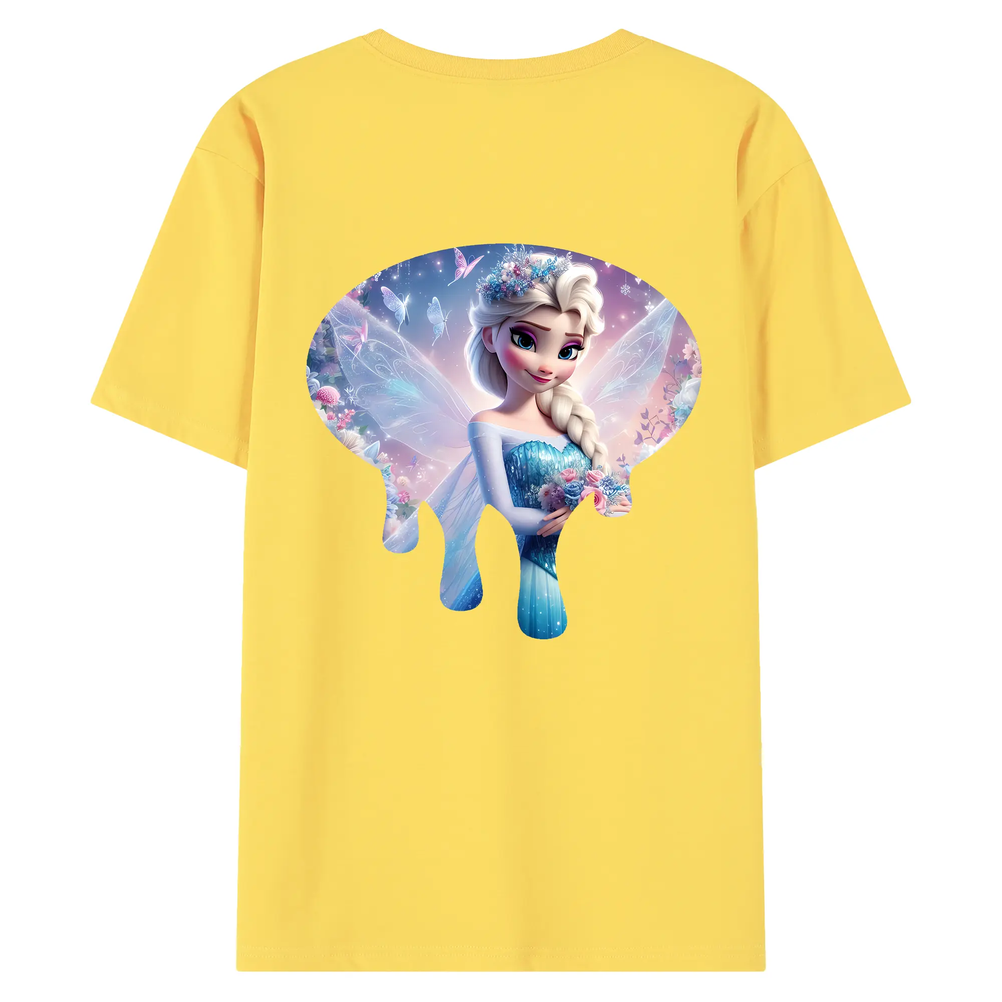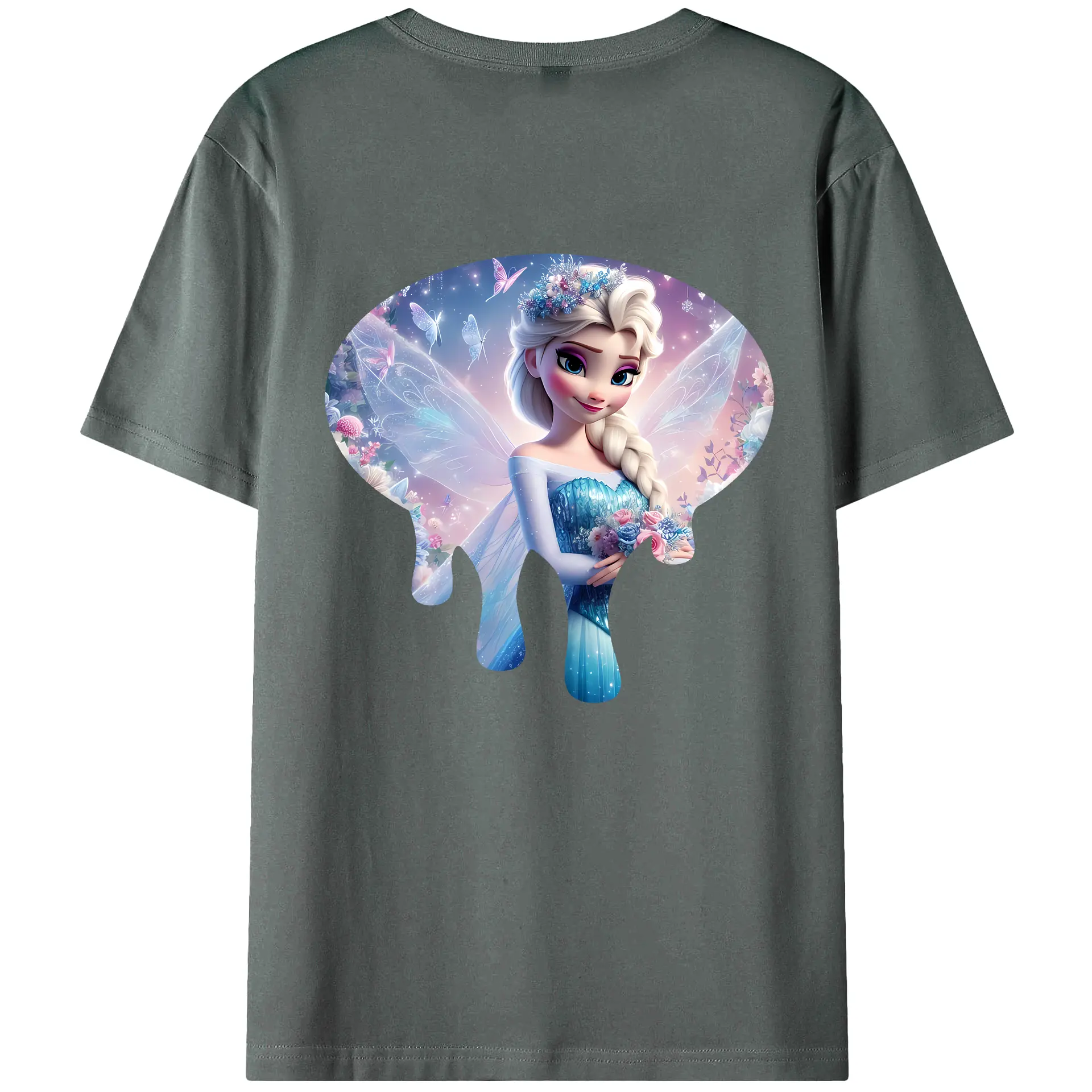 アナと雪の女王(Frozen) グッズ エルサ(Elsa) - 綿100% 半袖Tシャツ ・ フロントプリント ・ 快適 通気性 ・ 日常使い 散歩 スポーツ用
