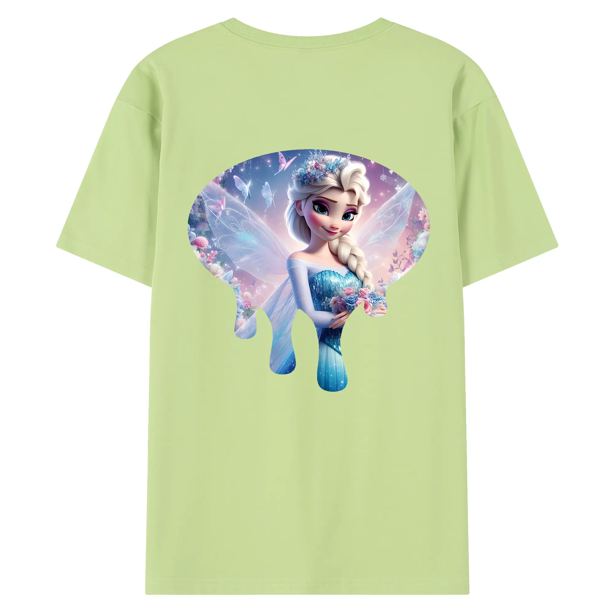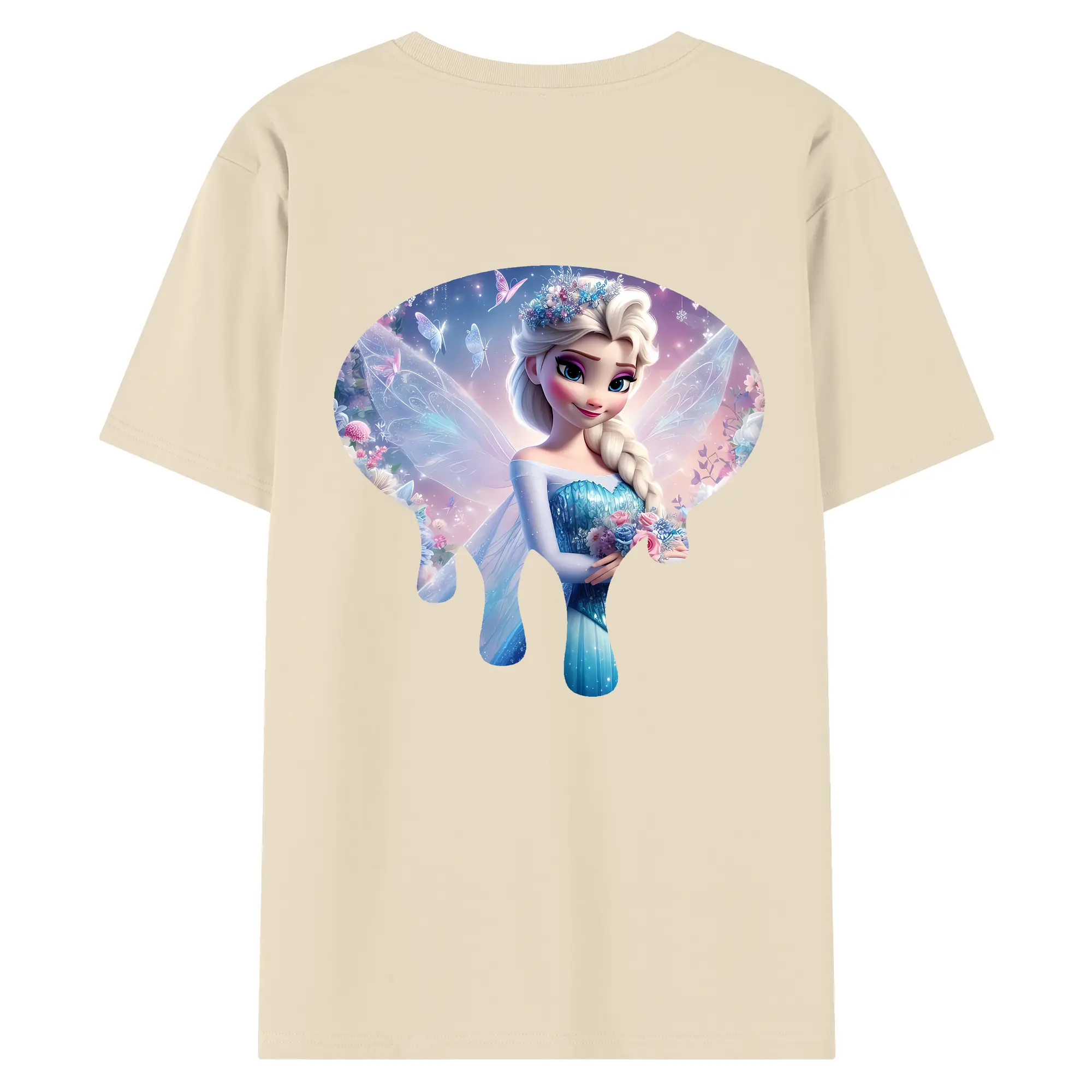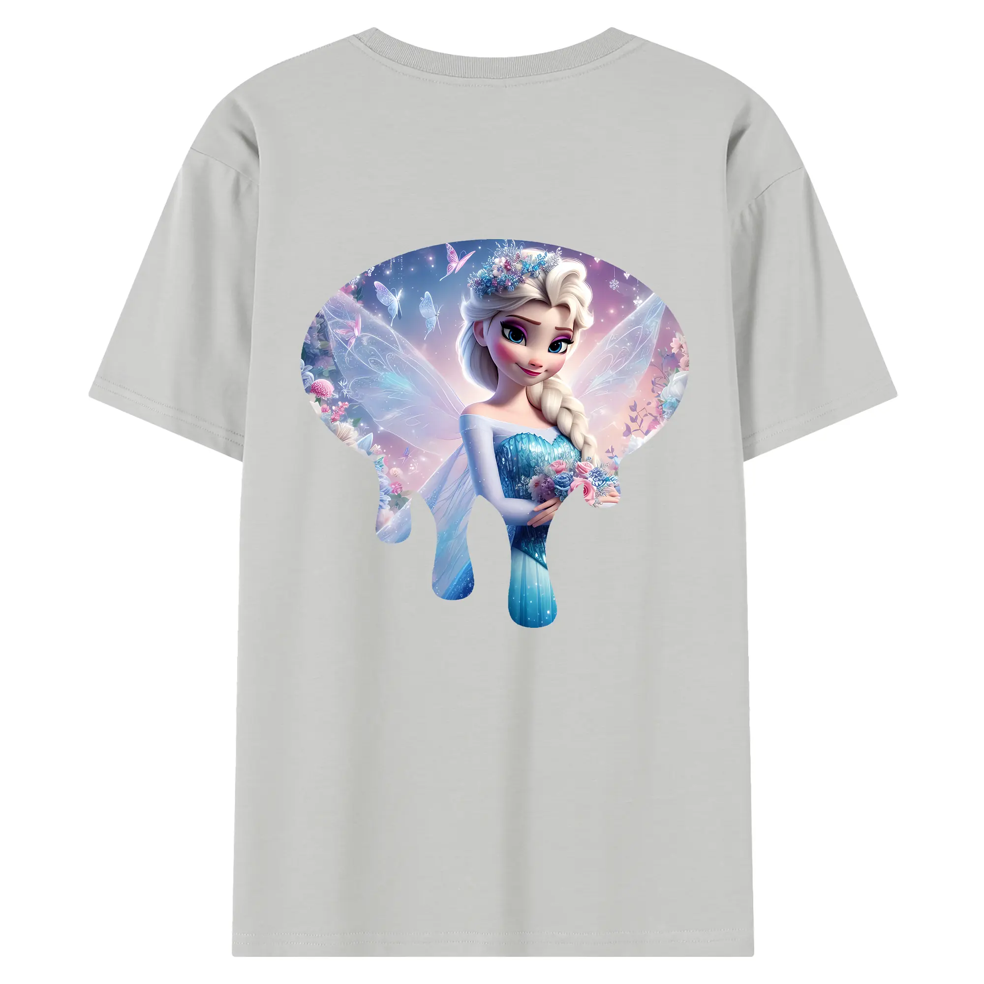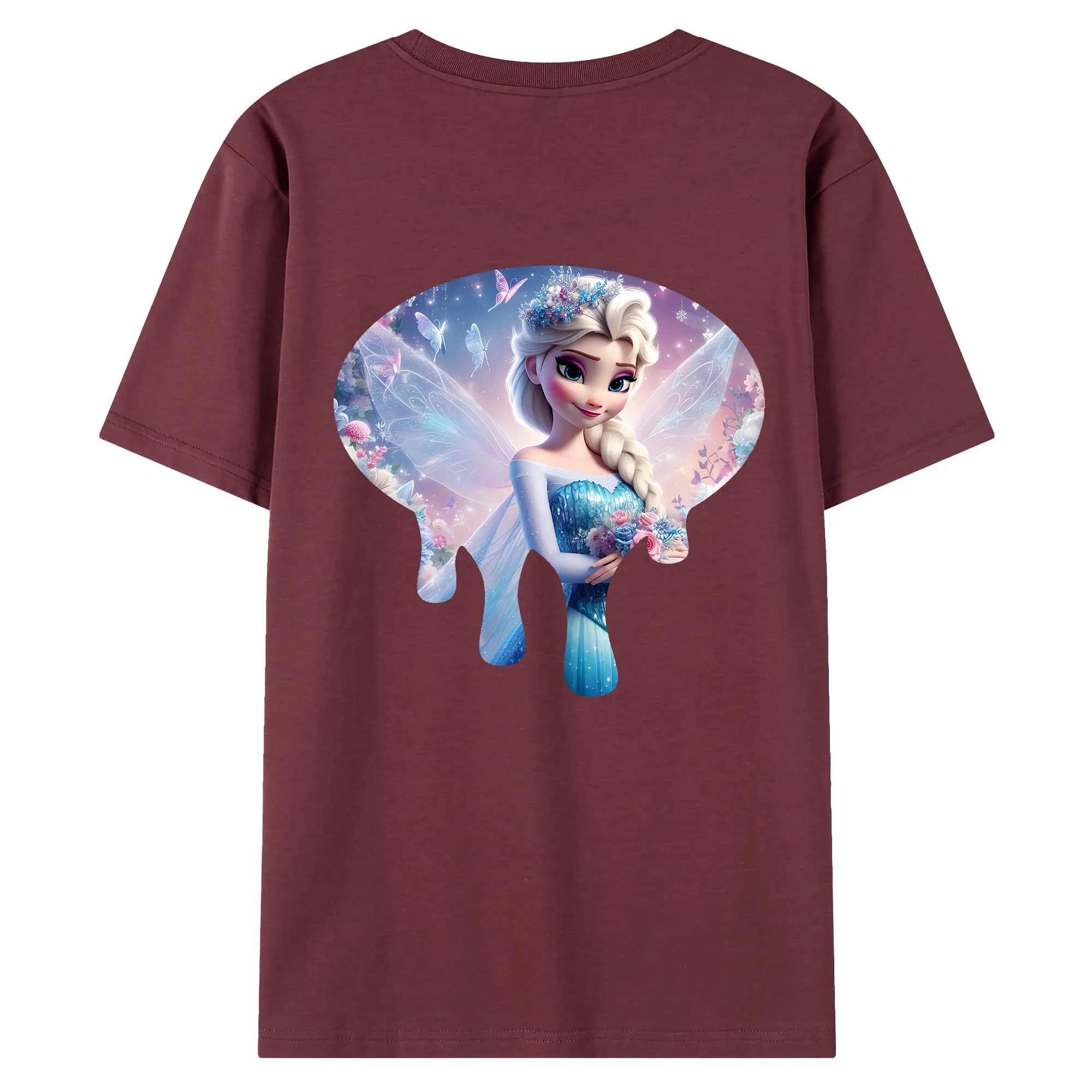 アナと雪の女王(Frozen) グッズ エルサ(Elsa) - 綿100% 半袖Tシャツ ・ フロントプリント ・ 快適 通気性 ・ 日常使い 散歩 スポーツ用