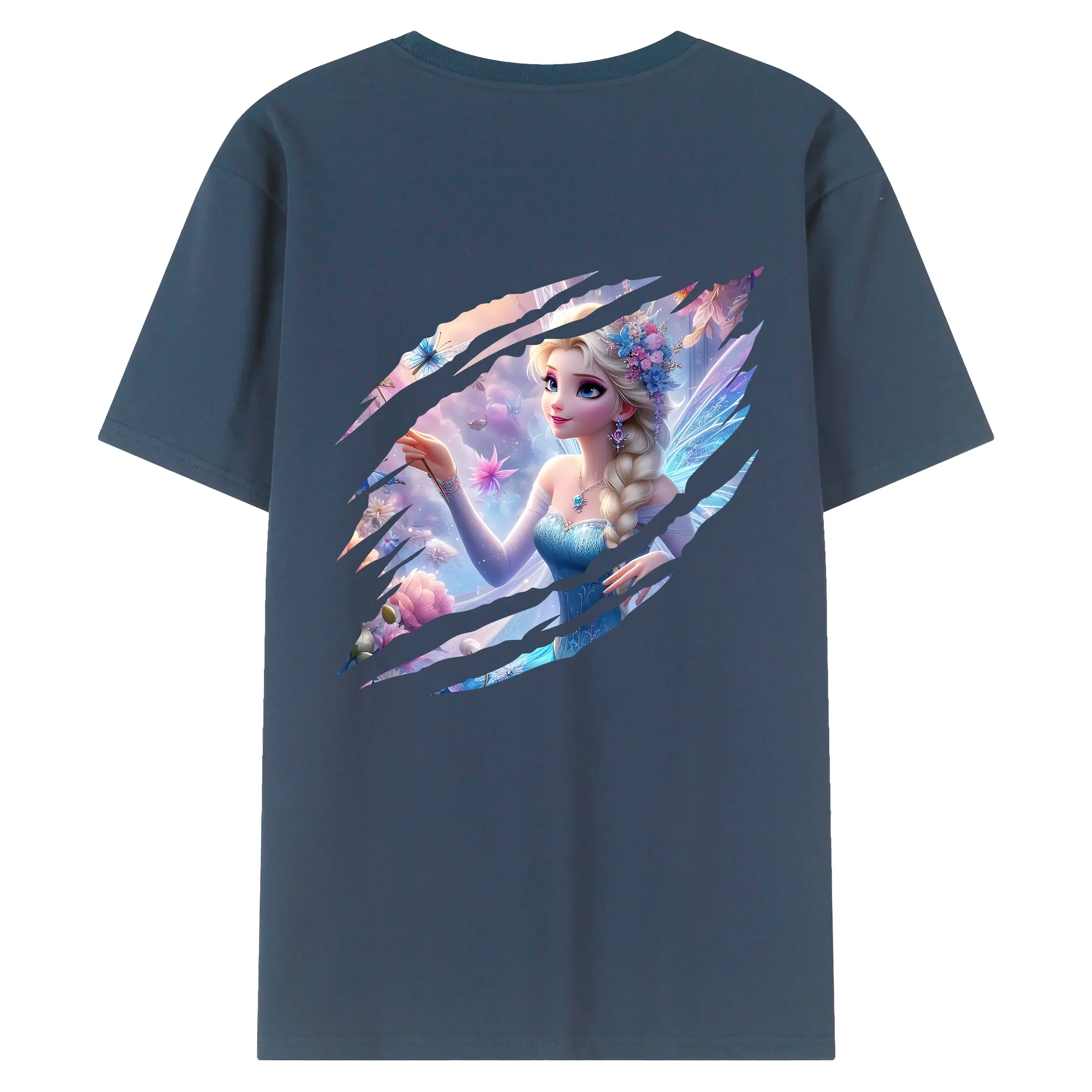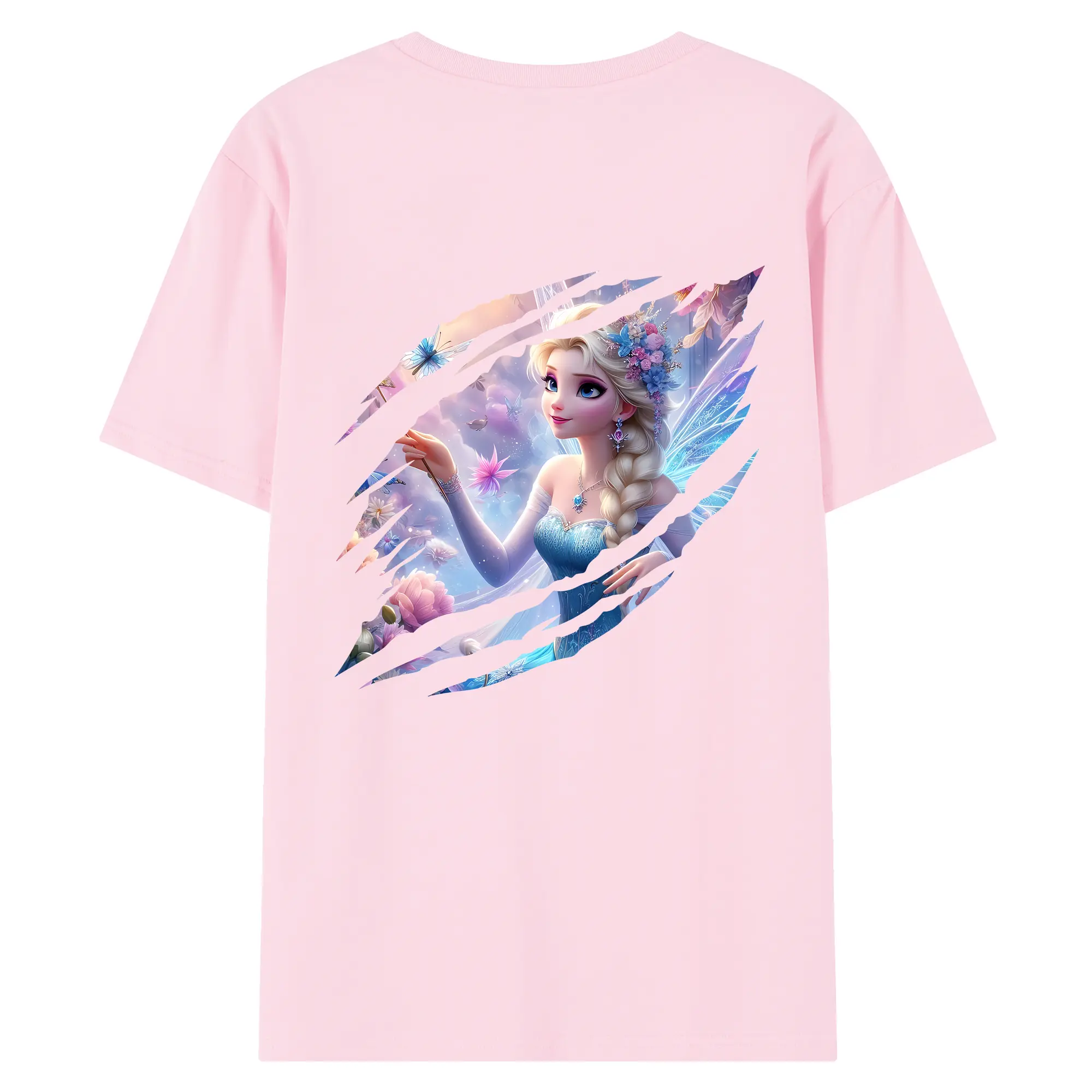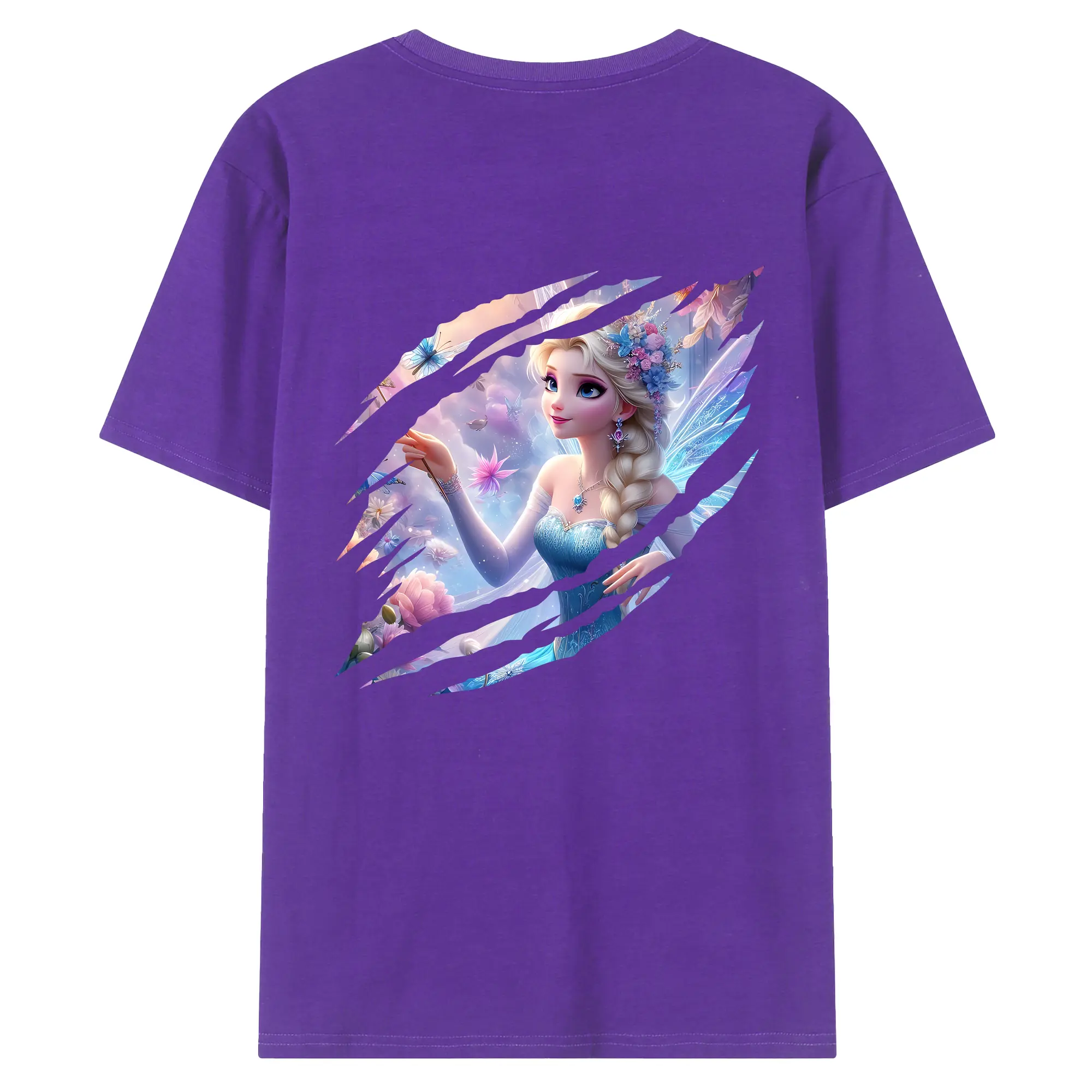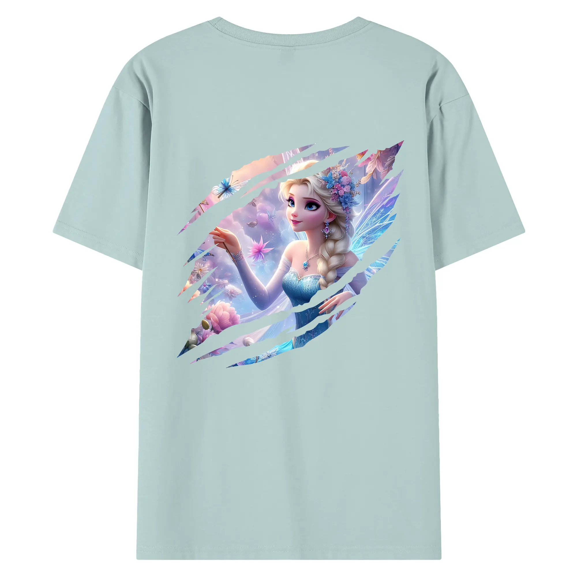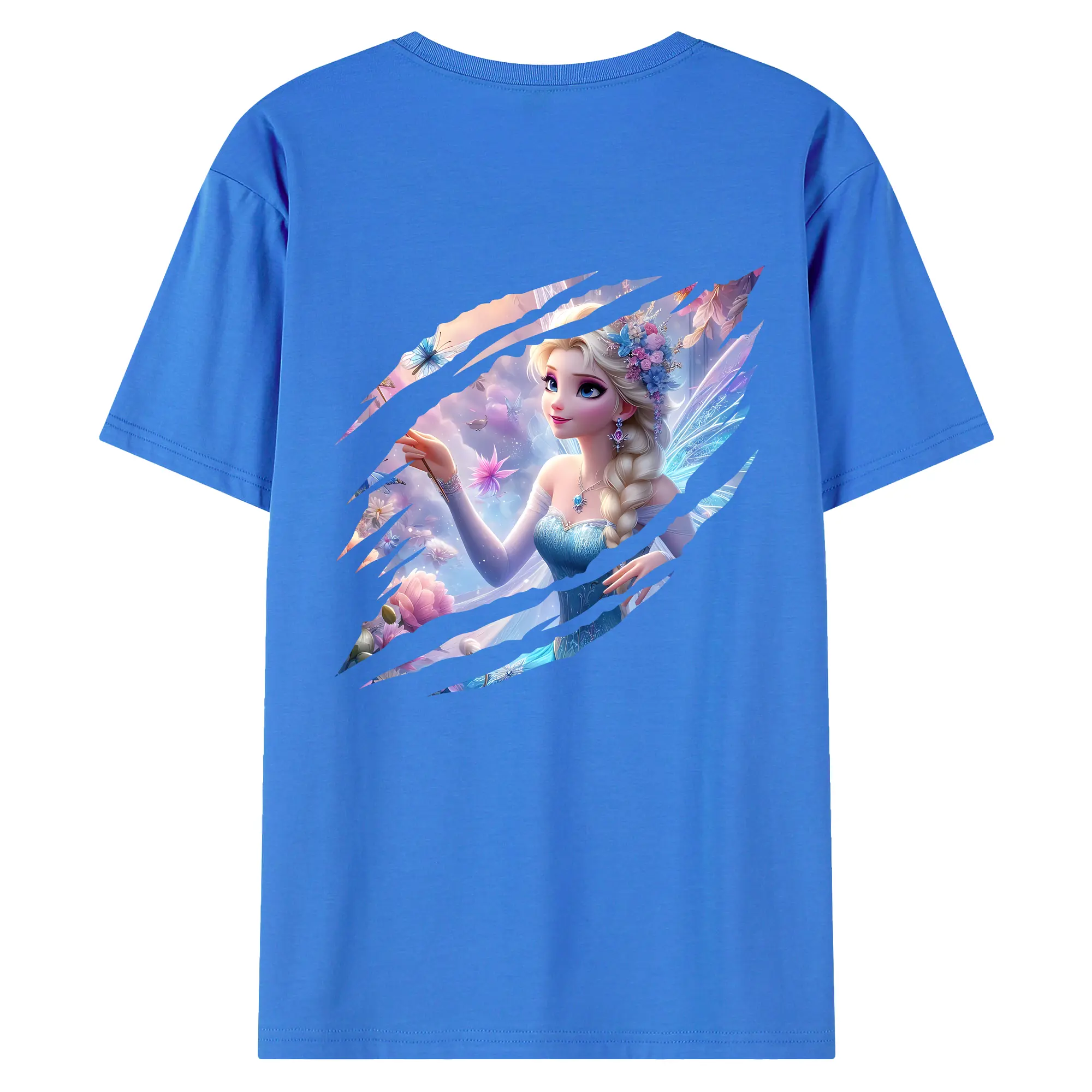 アナと雪の女王(Frozen) グッズ エルサ(Elsa) - 綿100% 半袖Tシャツ ・ フロントプリント ・ 快適 通気性 ・ 日常使い 散歩 スポーツ用