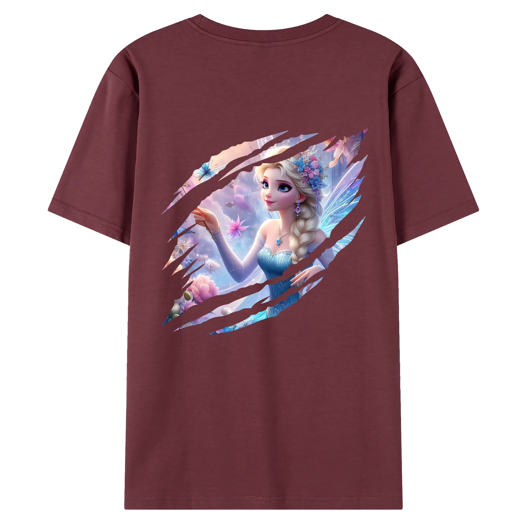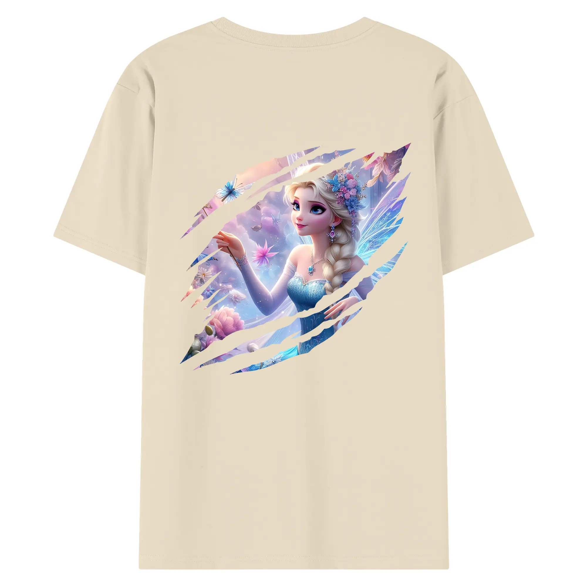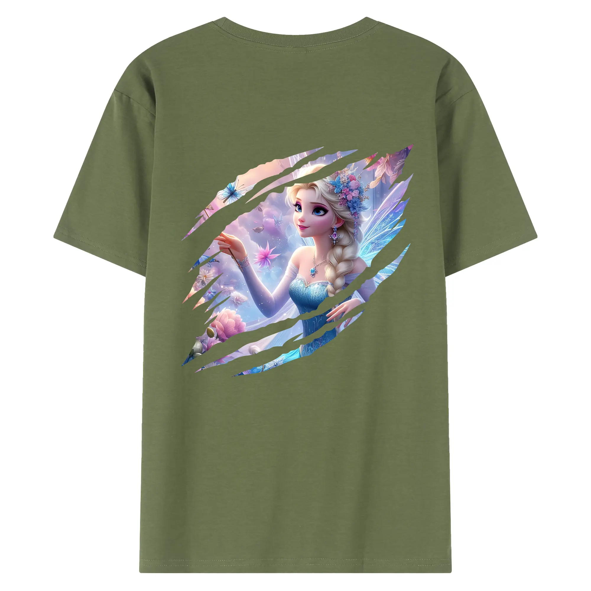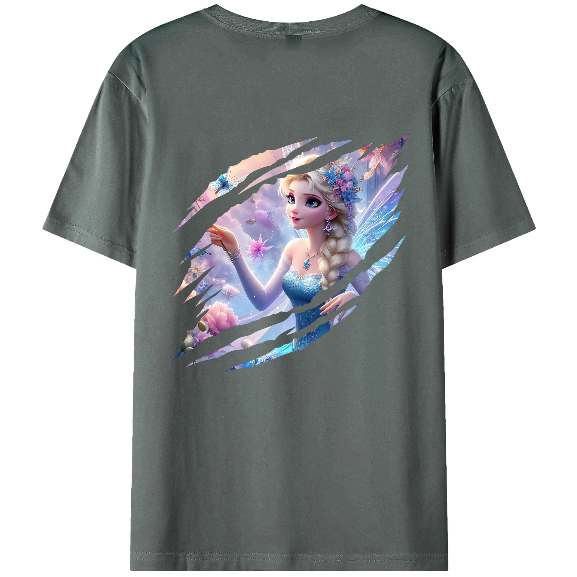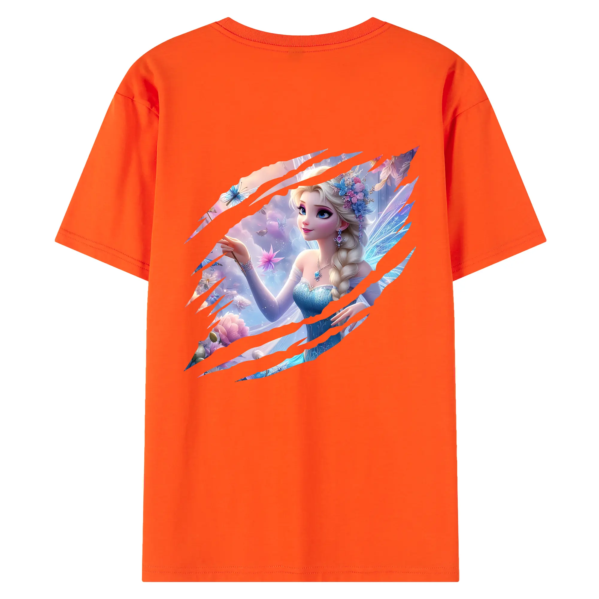 アナと雪の女王(Frozen) グッズ エルサ(Elsa) - 綿100% 半袖Tシャツ ・ フロントプリント ・ 快適 通気性 ・ 日常使い 散歩 スポーツ用