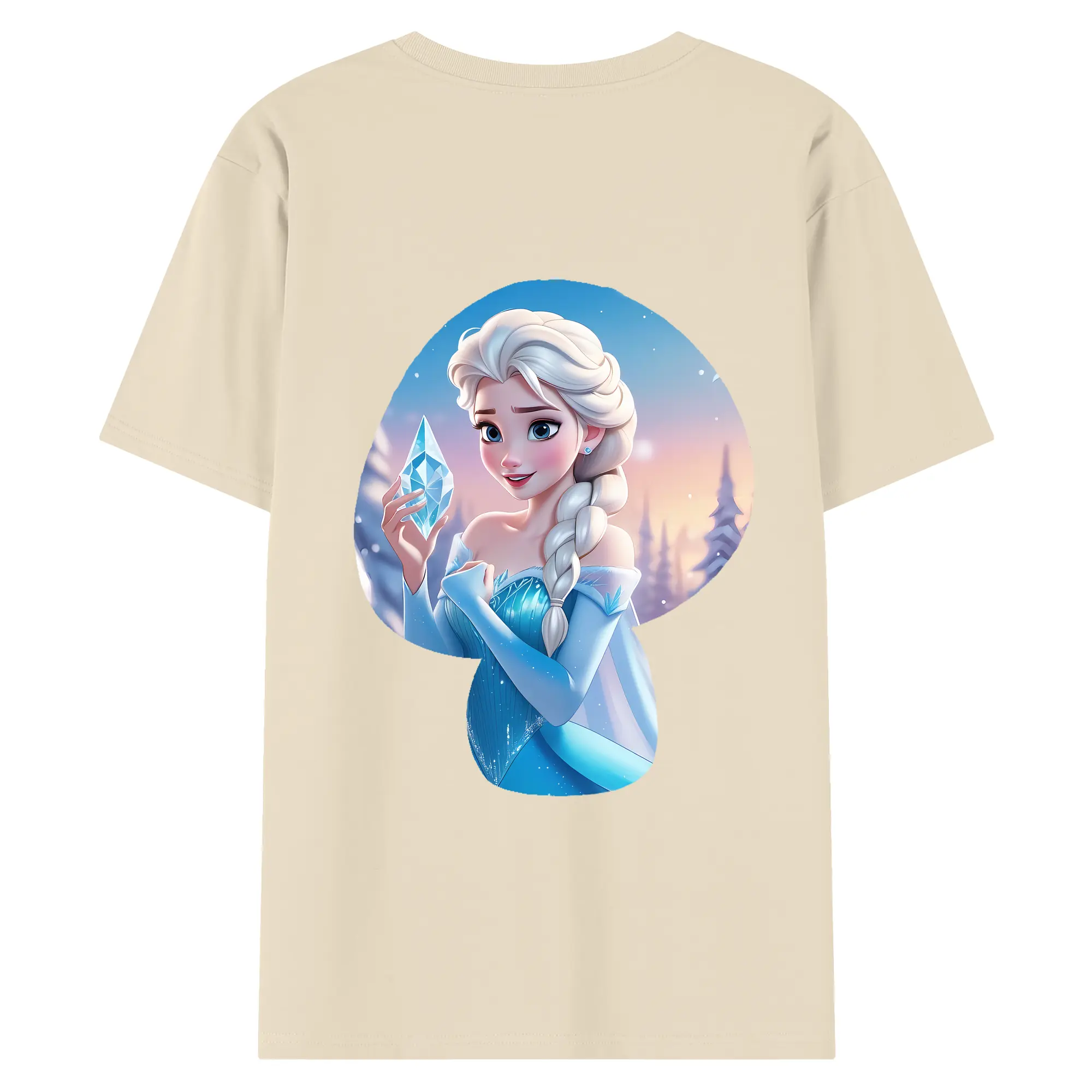 アナと雪の女王(Frozen) グッズ エルサ(Elsa) - 綿100% ヴィンテージ風 半袖Tシャツ ・ 背面プリント ・ 柔らか肌触り ・ 通気性 快適 ・ スポーツ カジュアル 外出用