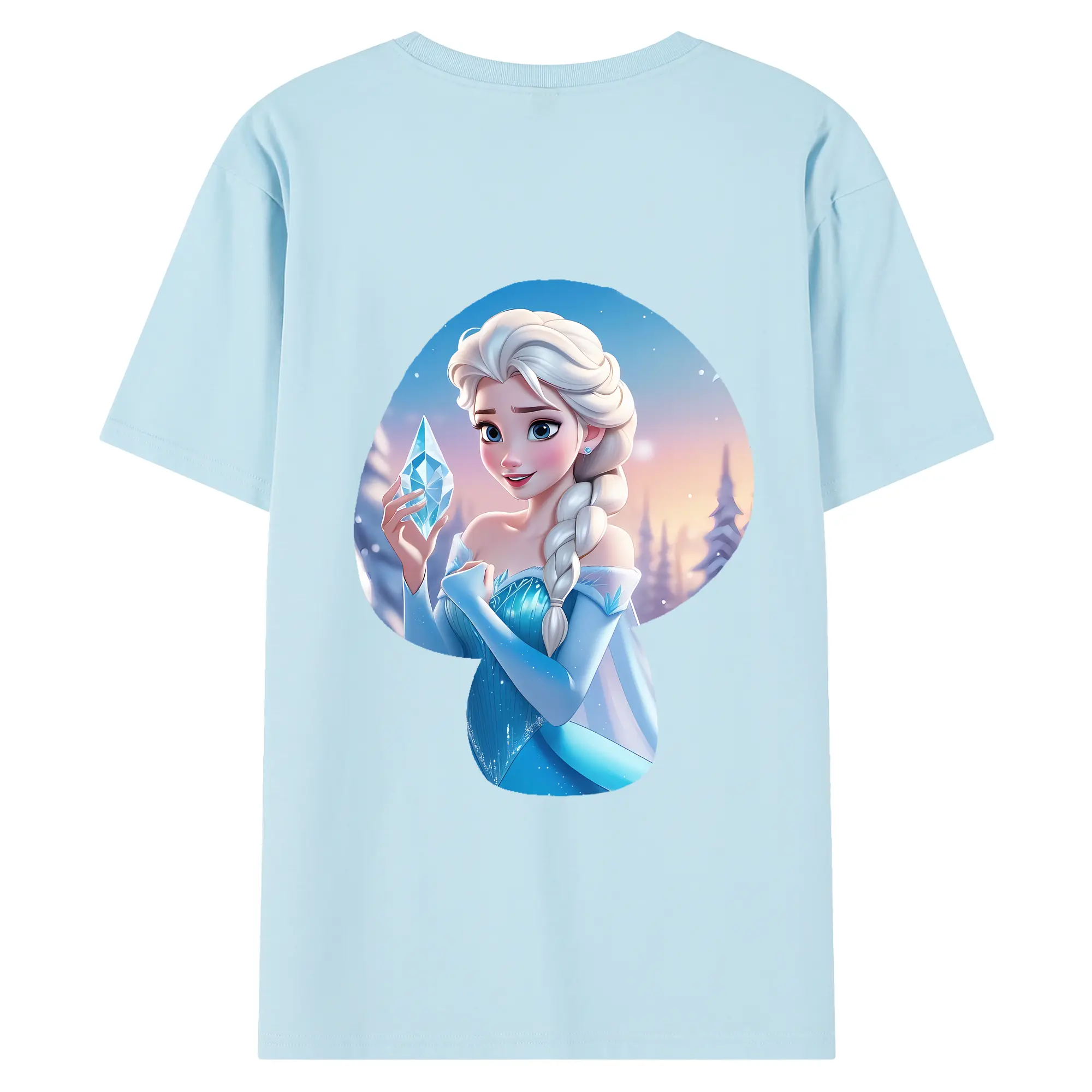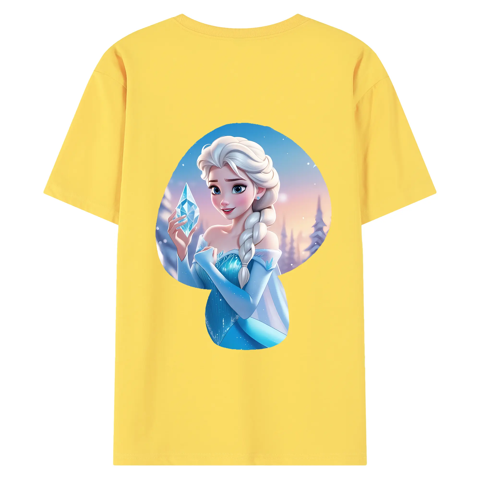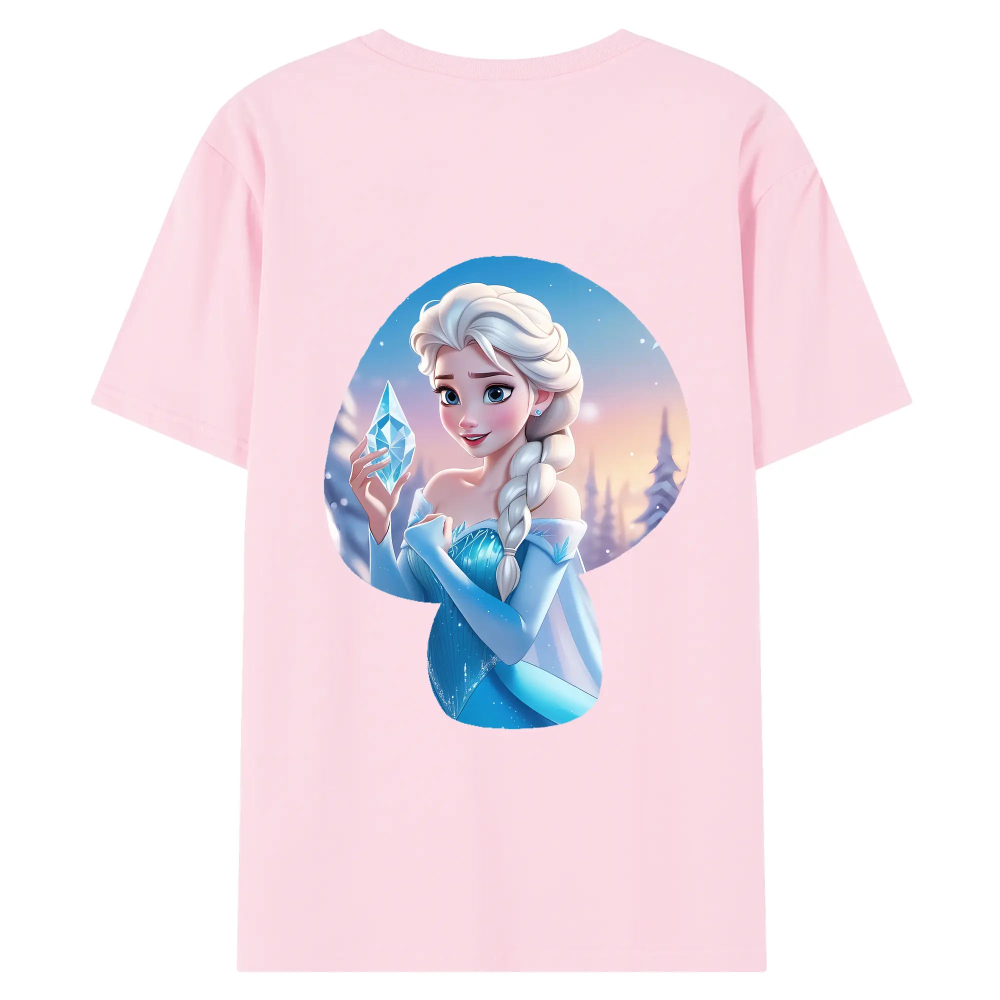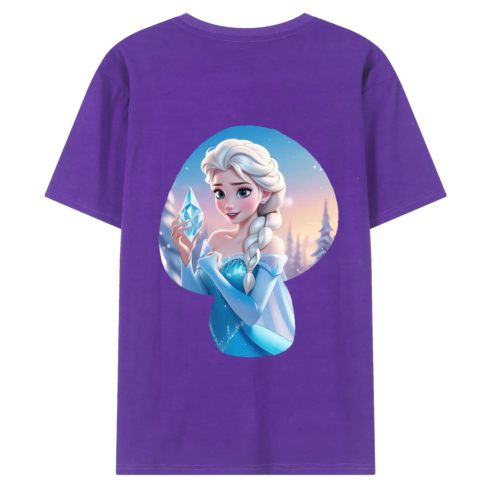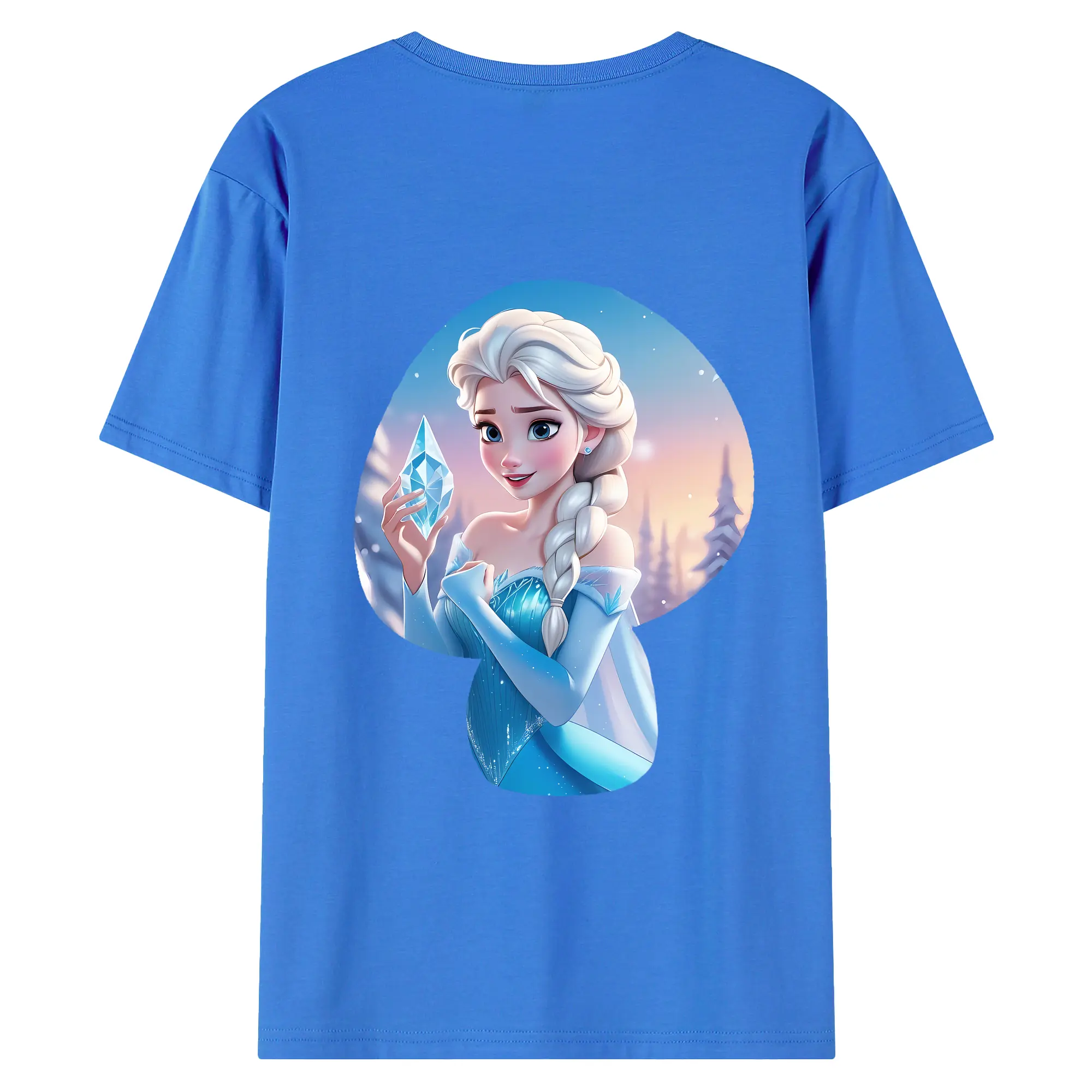 アナと雪の女王(Frozen) グッズ エルサ(Elsa) - 綿100% 半袖Tシャツ ・ フロントプリント ・ 快適 通気性 ・ 日常使い 散歩 スポーツ用