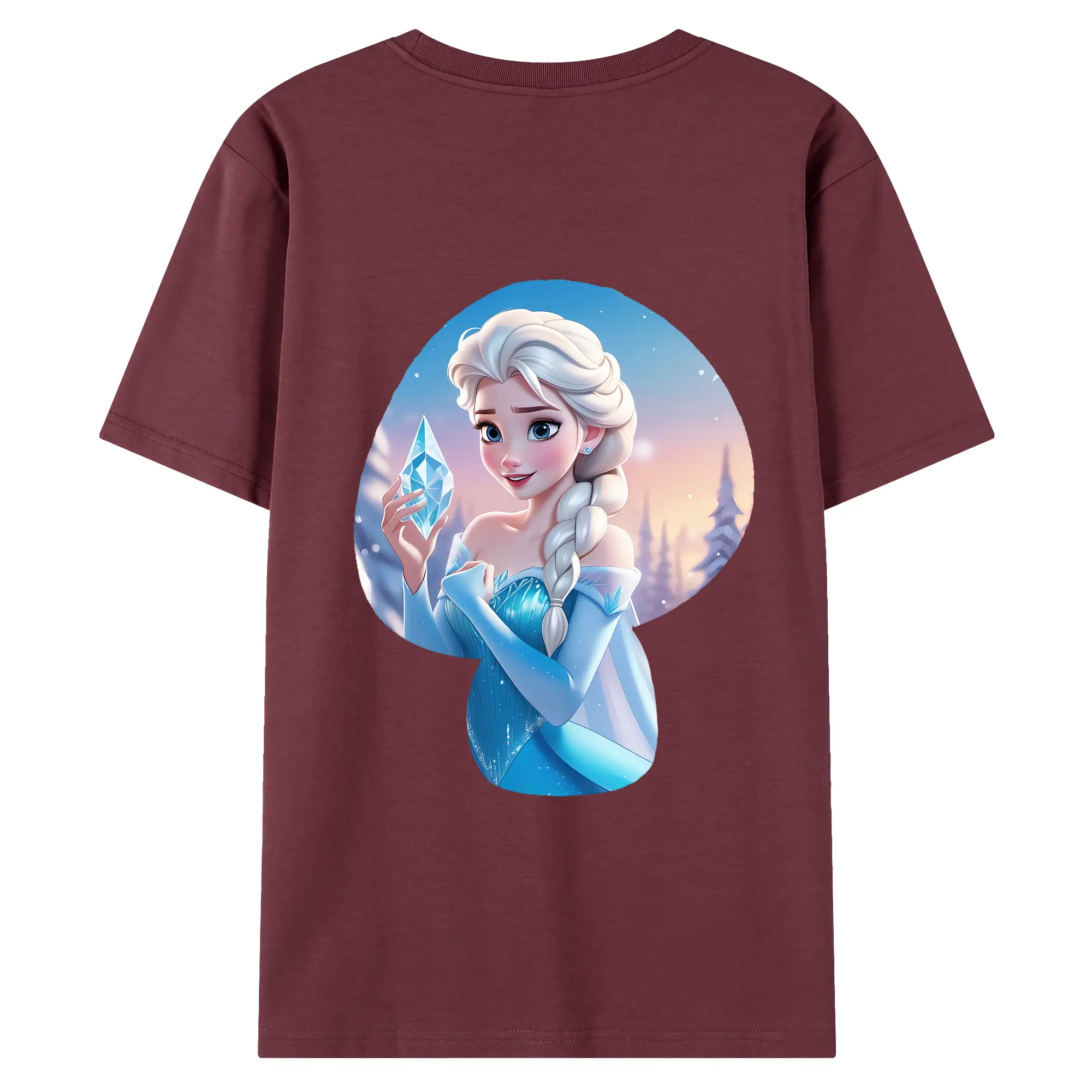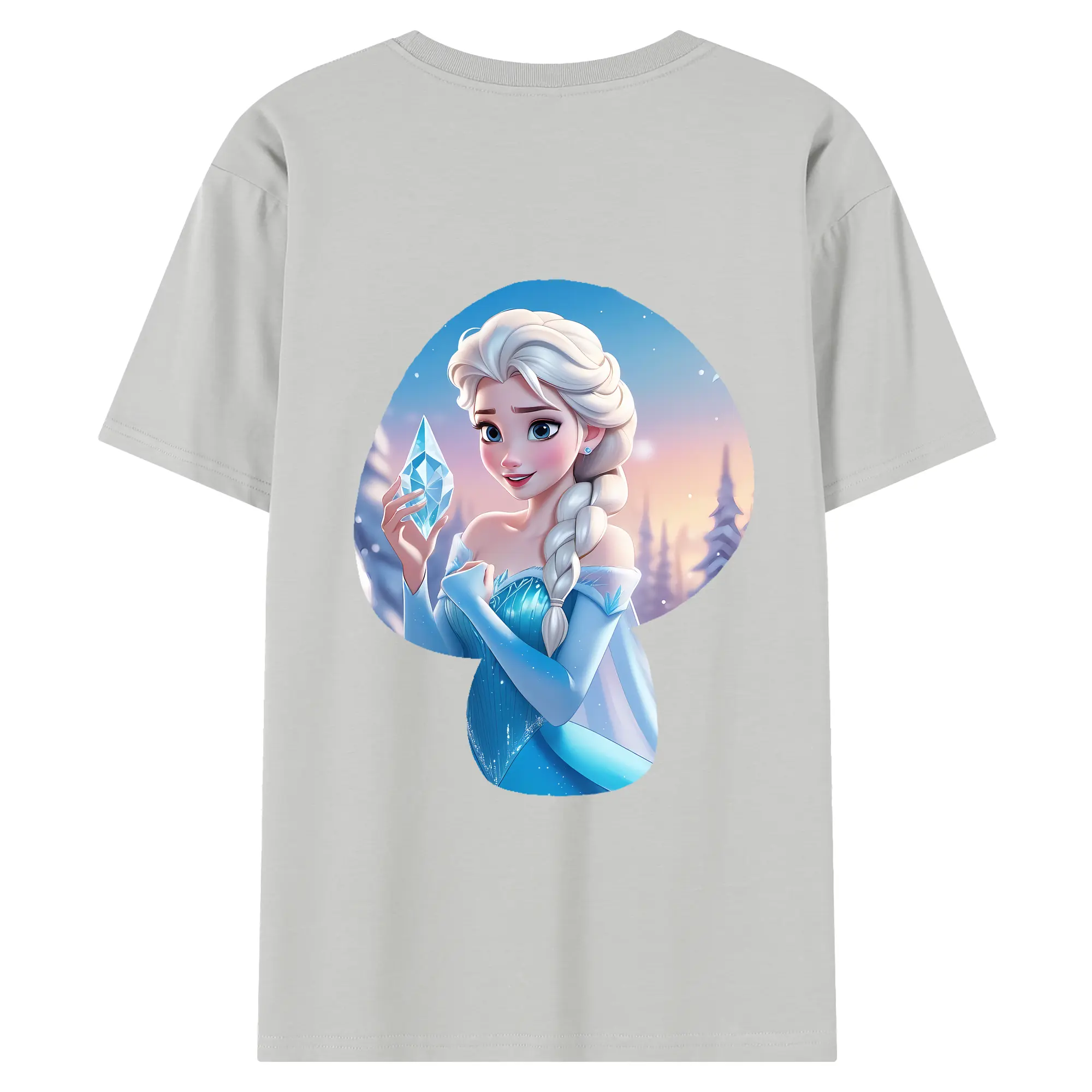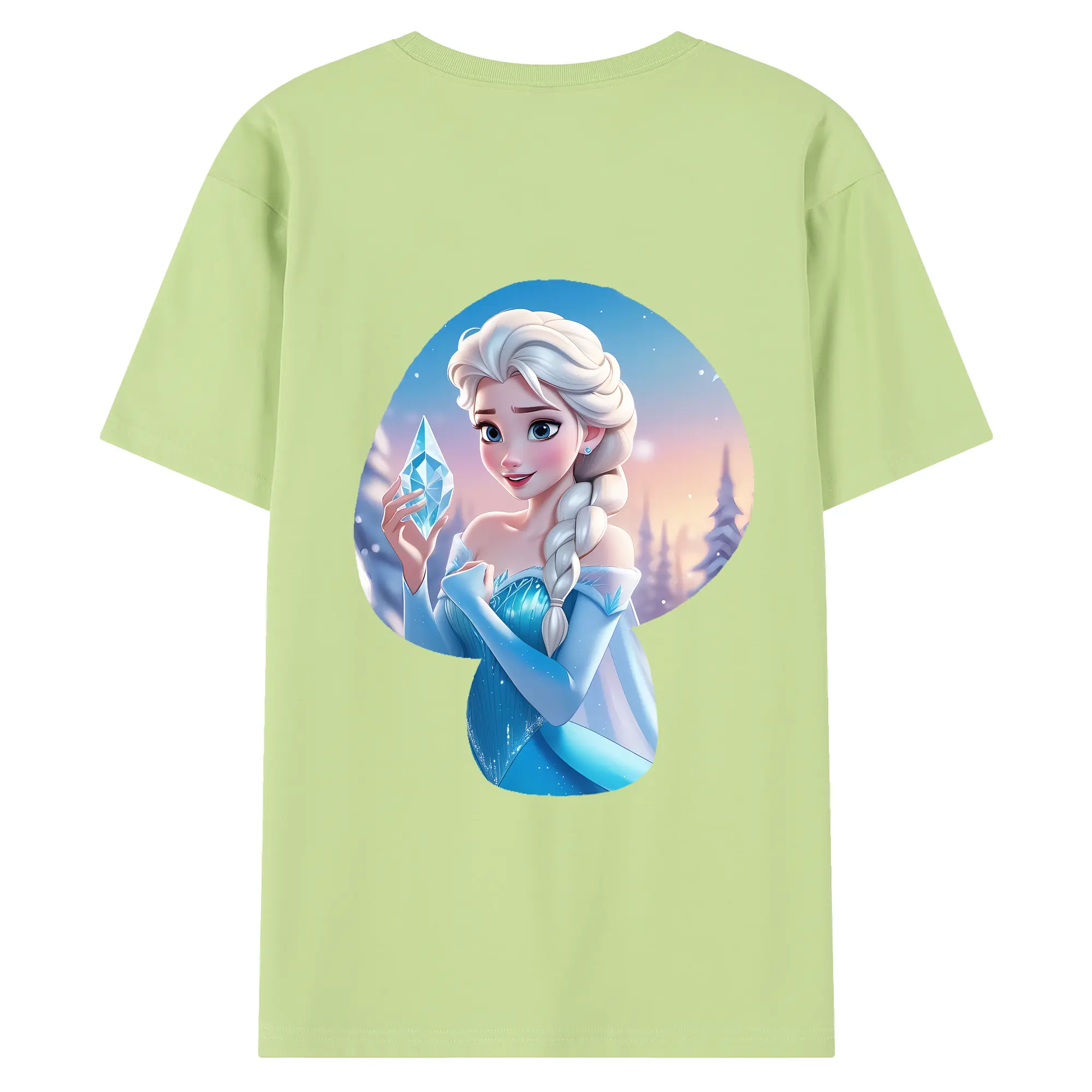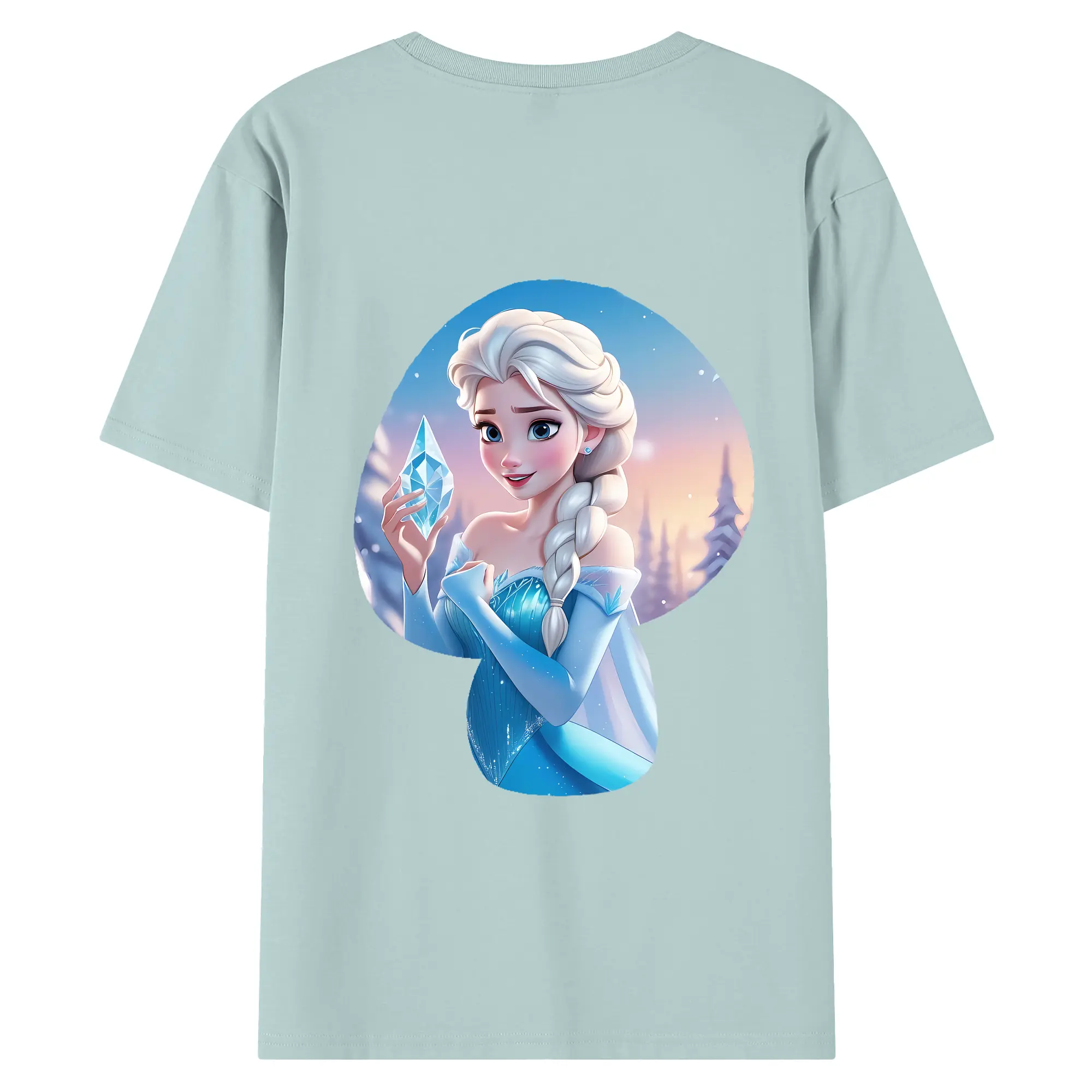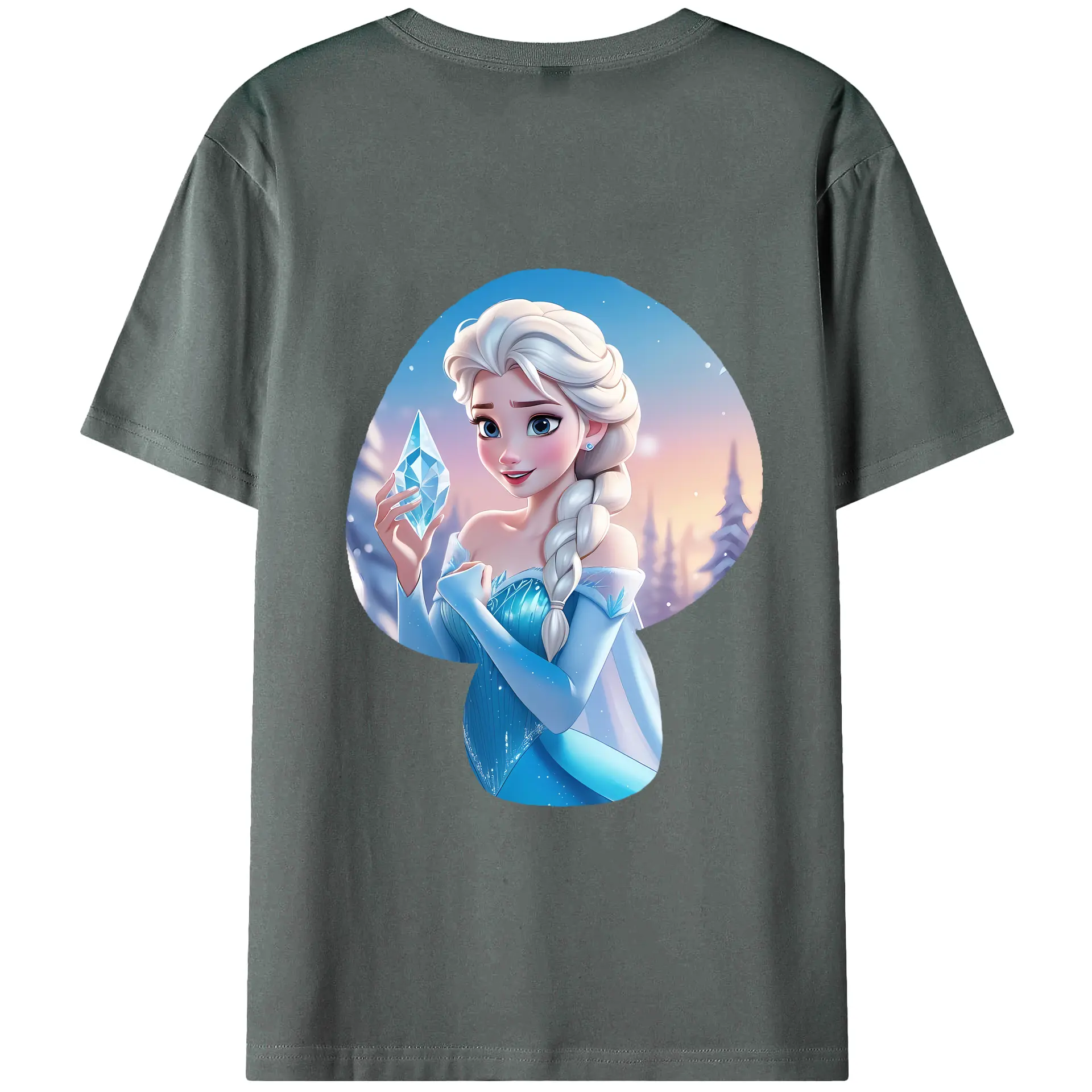 アナと雪の女王(Frozen) グッズ エルサ(Elsa) - 綿100% 半袖Tシャツ ・ フロントプリント ・ 快適 通気性 ・ 日常使い 散歩 スポーツ用