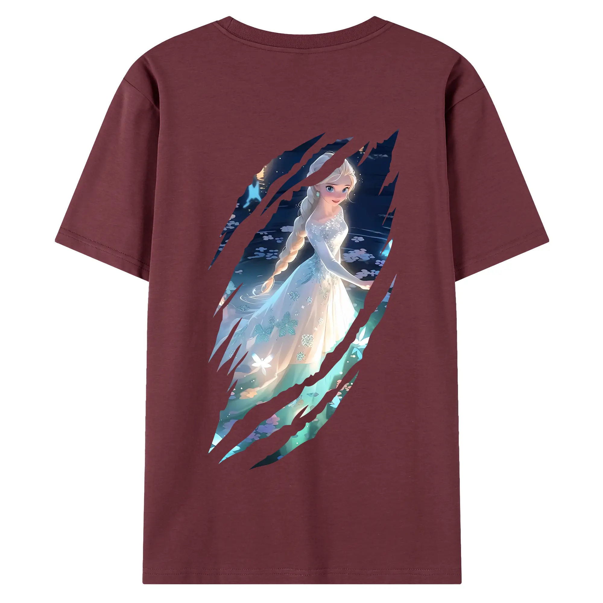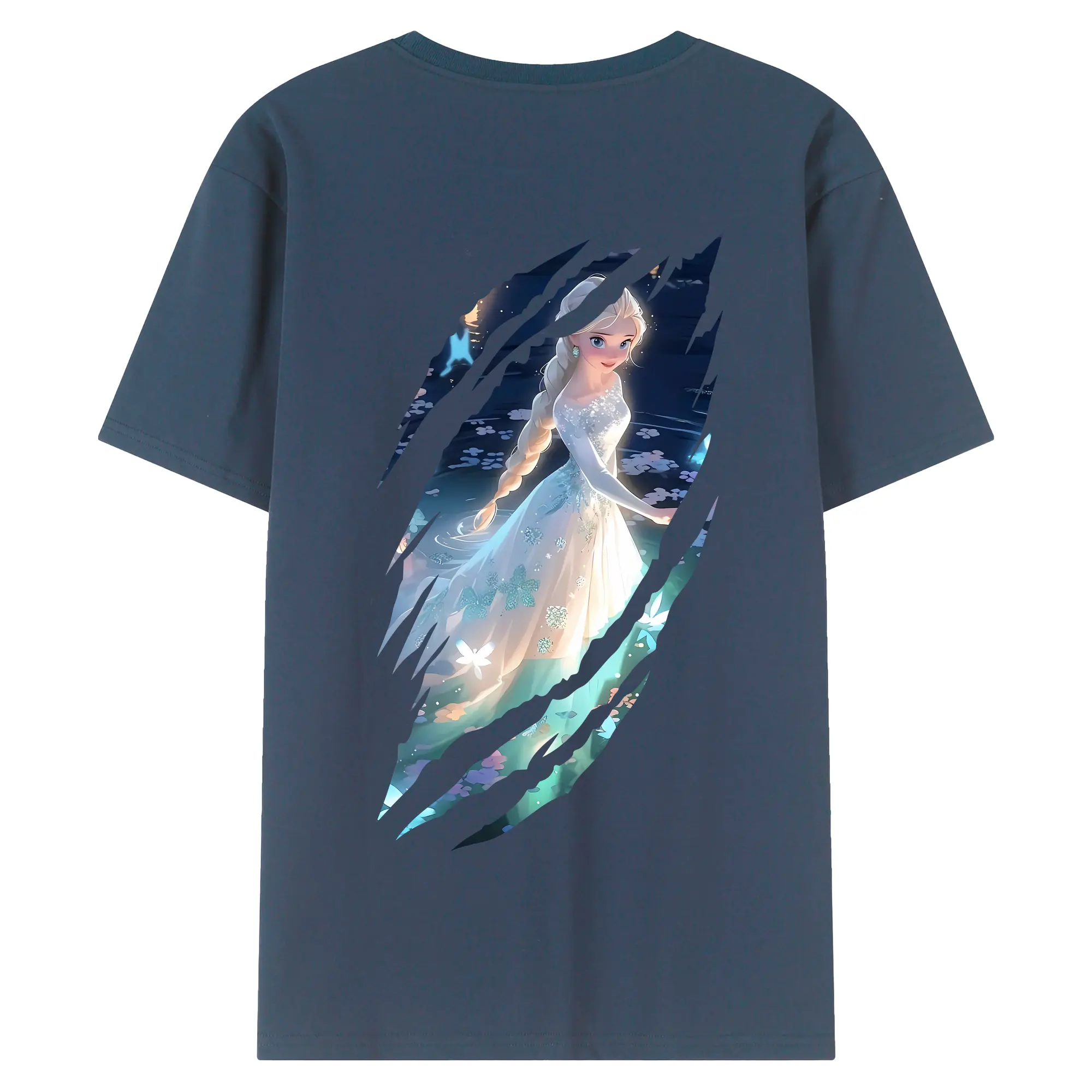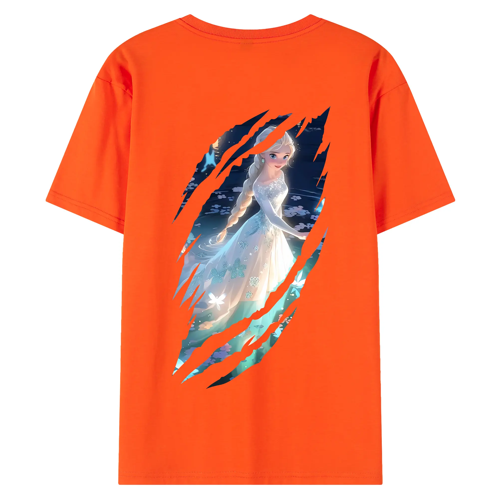 アナと雪の女王(Frozen) グッズ エルサ(Elsa) - 綿100% ヴィンテージ風 半袖Tシャツ ・ 背面プリント ・ 柔らか肌触り ・ 通気性 快適 ・ スポーツ カジュアル 外出用