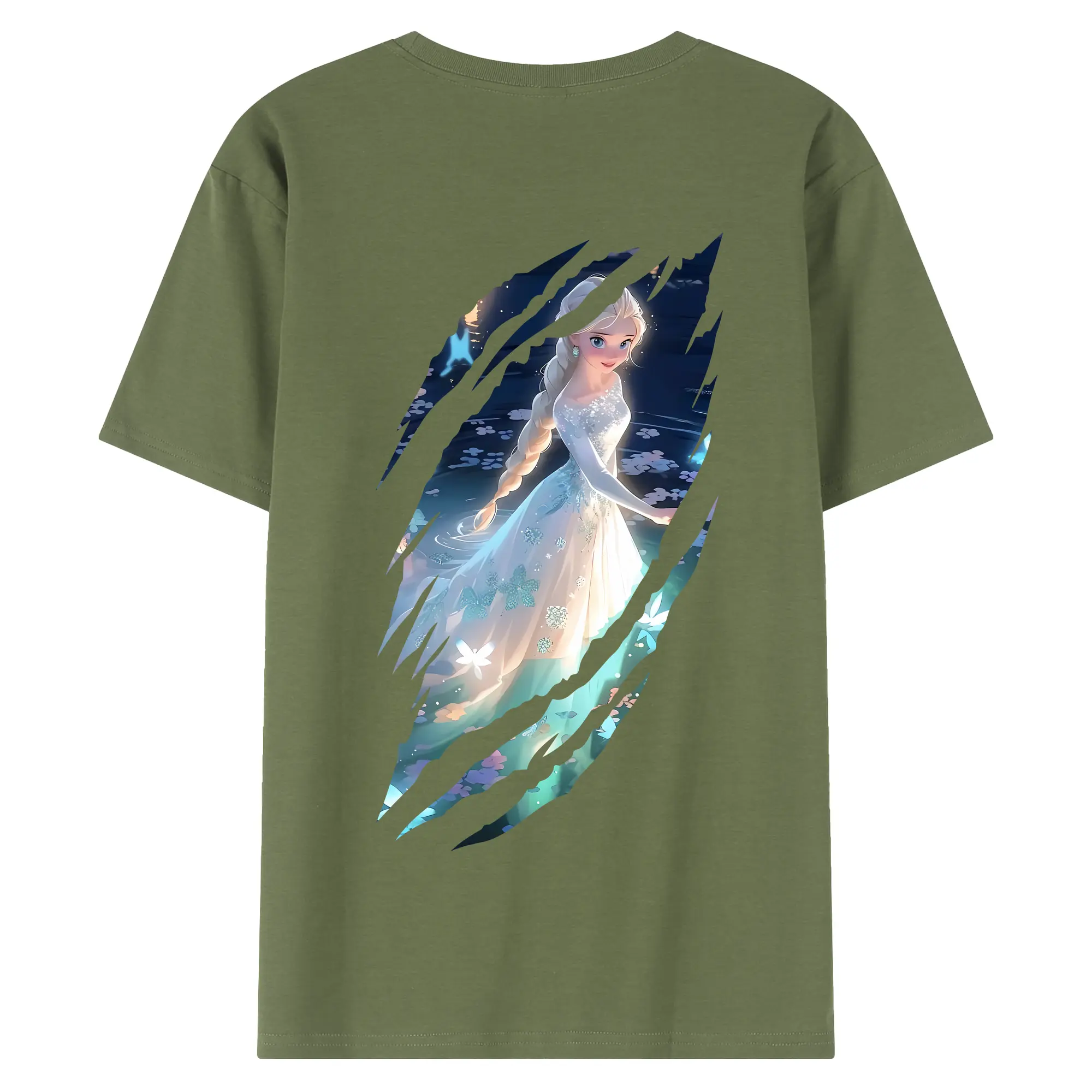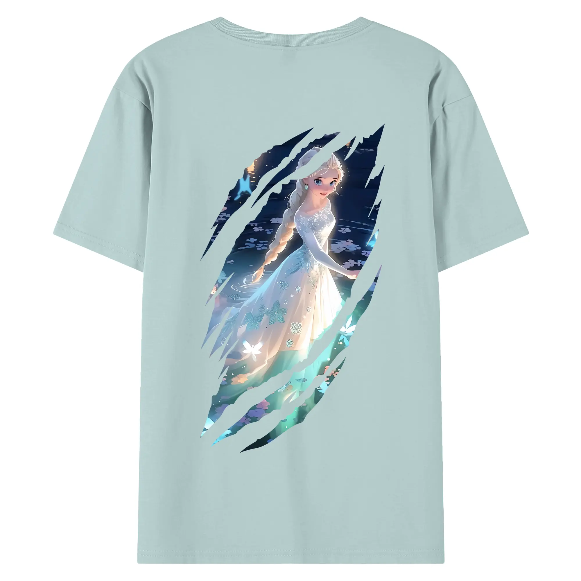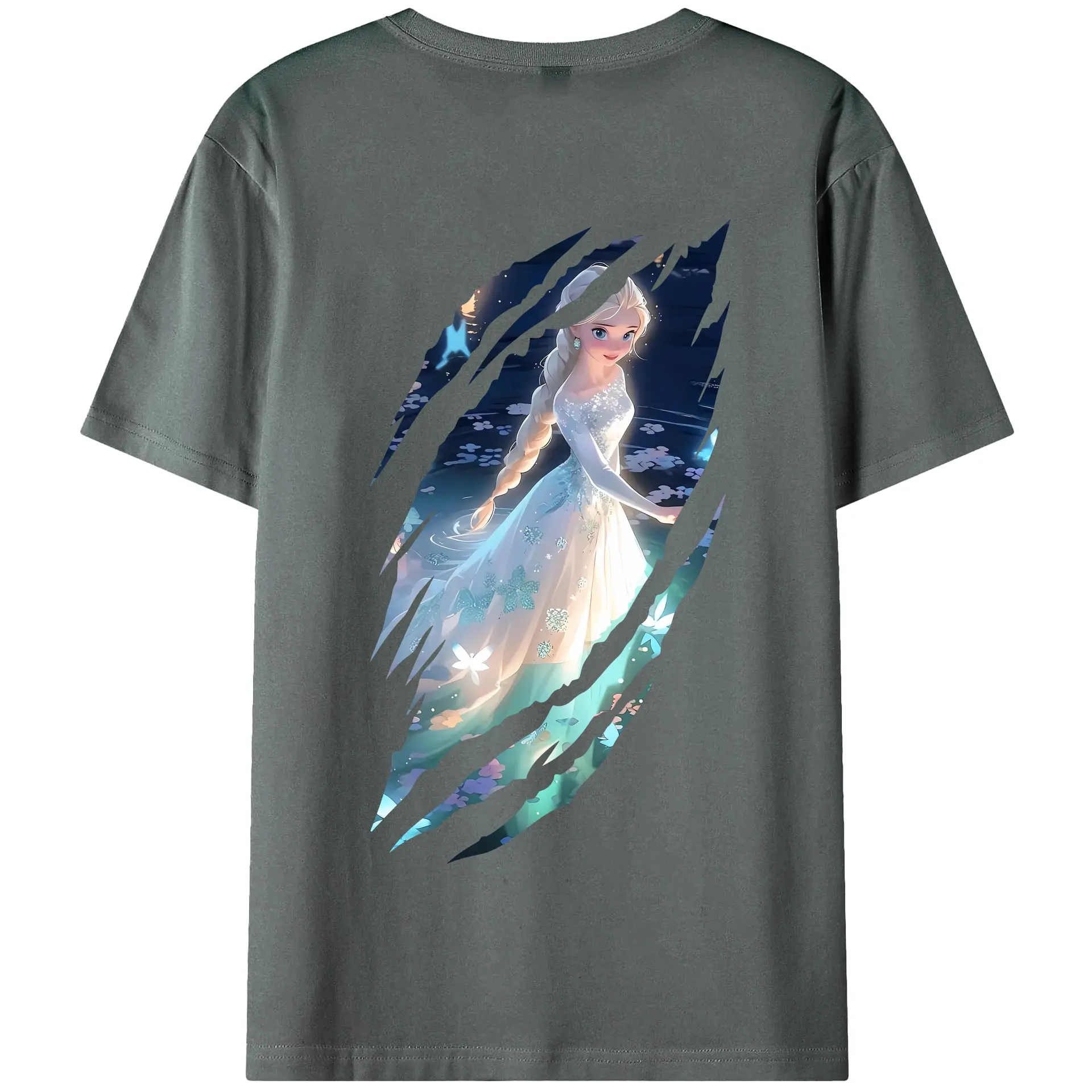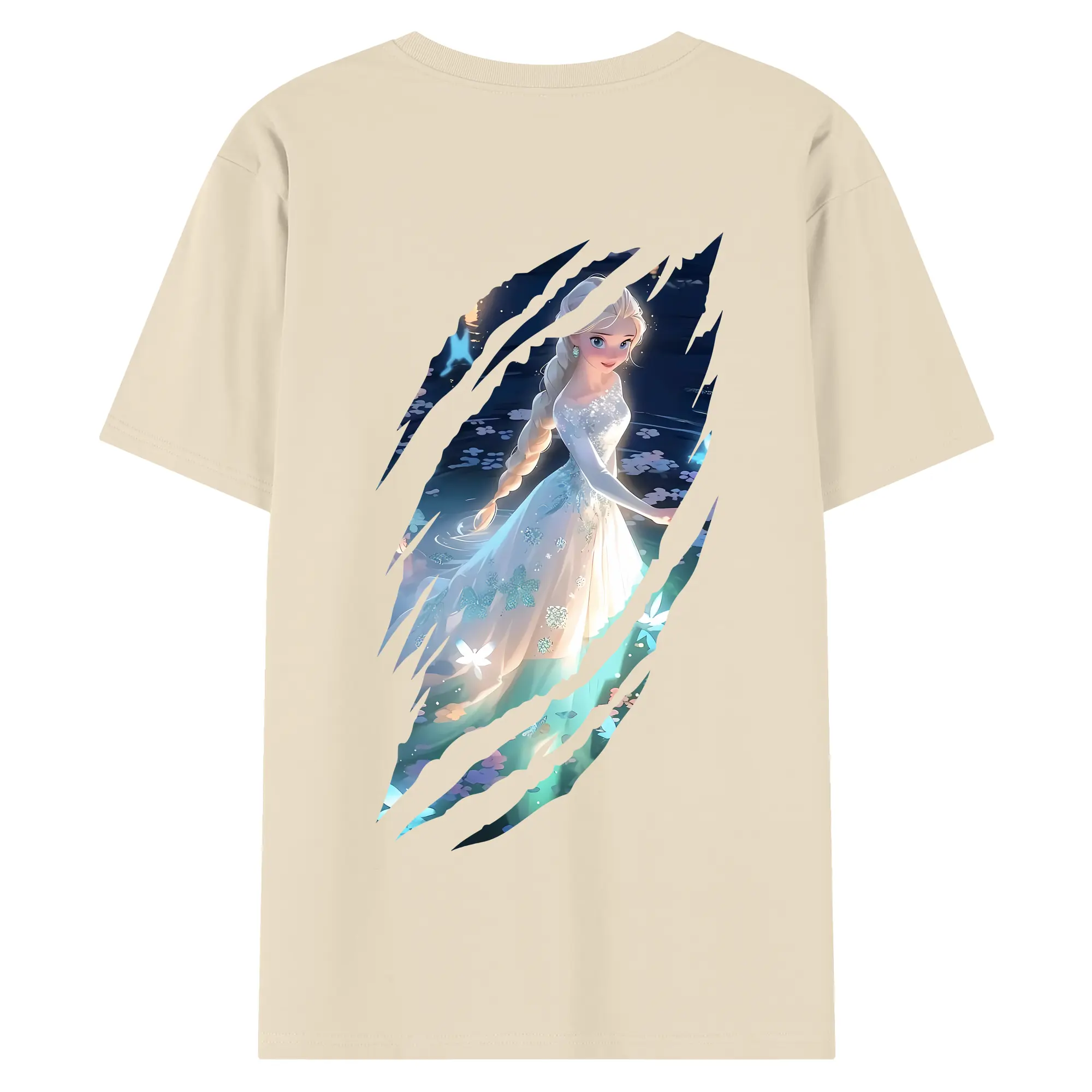 アナと雪の女王(Frozen) グッズ エルサ(Elsa) - 綿100% ヴィンテージ風 半袖Tシャツ ・ 背面プリント ・ 柔らか肌触り ・ 通気性 快適 ・ スポーツ カジュアル 外出用