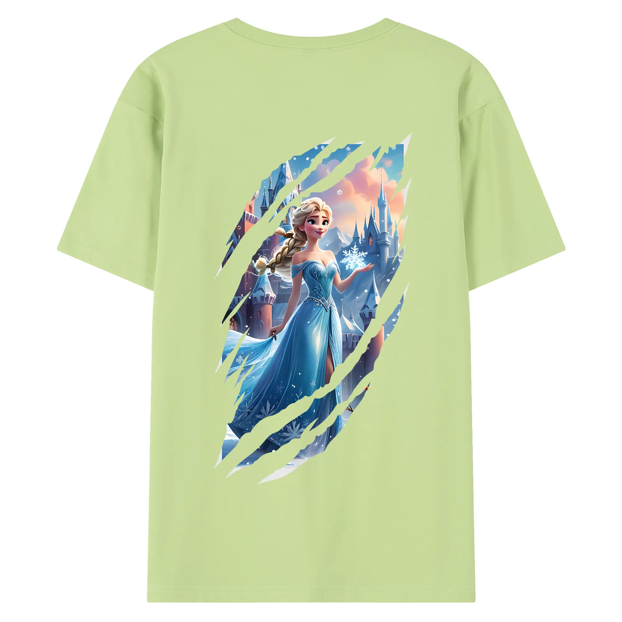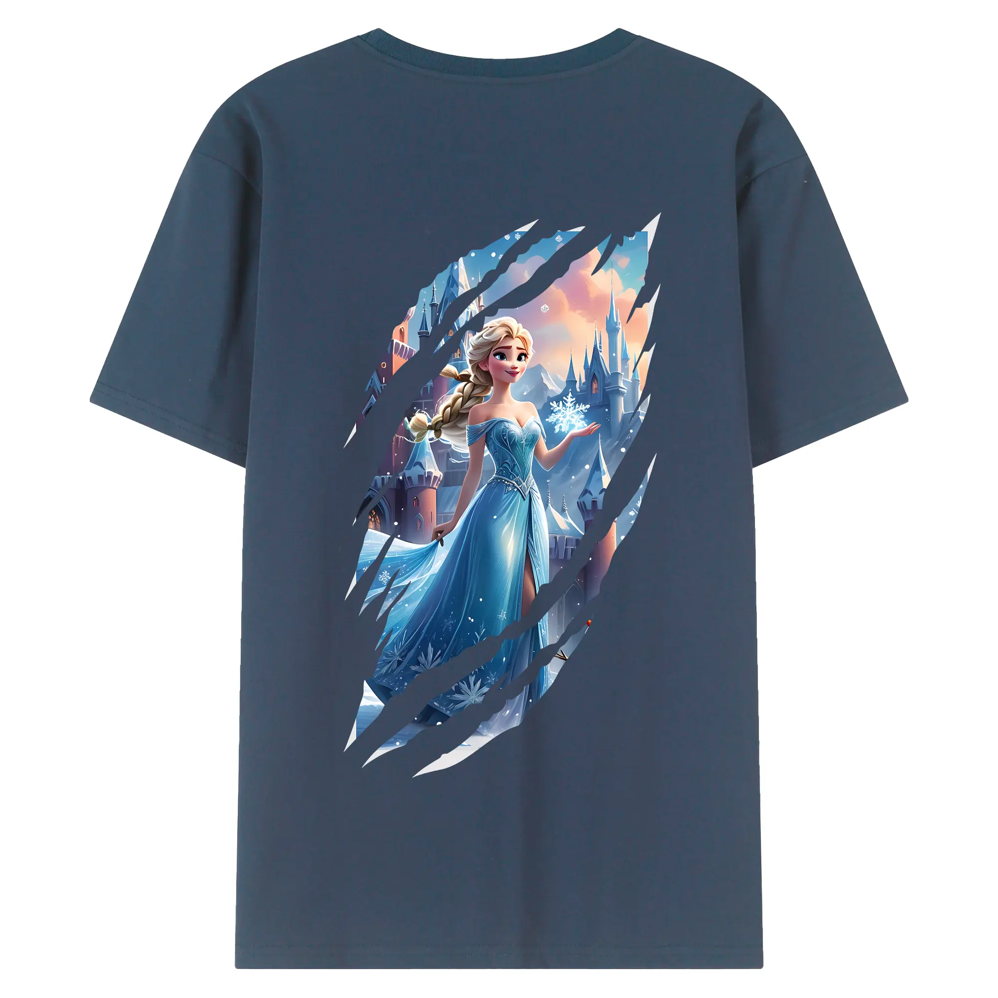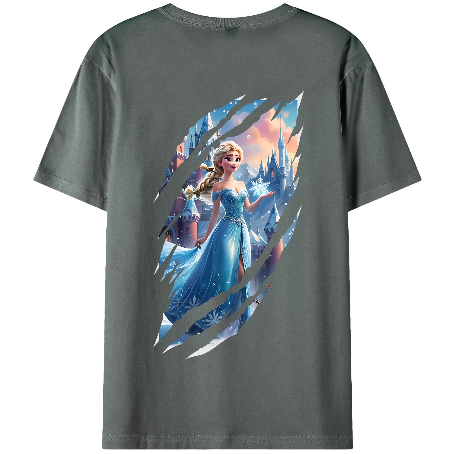 アナと雪の女王(Frozen) グッズ エルサ(Elsa) - 綿100% ヴィンテージ風 半袖Tシャツ ・ 背面プリント ・ 柔らか肌触り ・ 通気性 快適 ・ スポーツ カジュアル 外出用