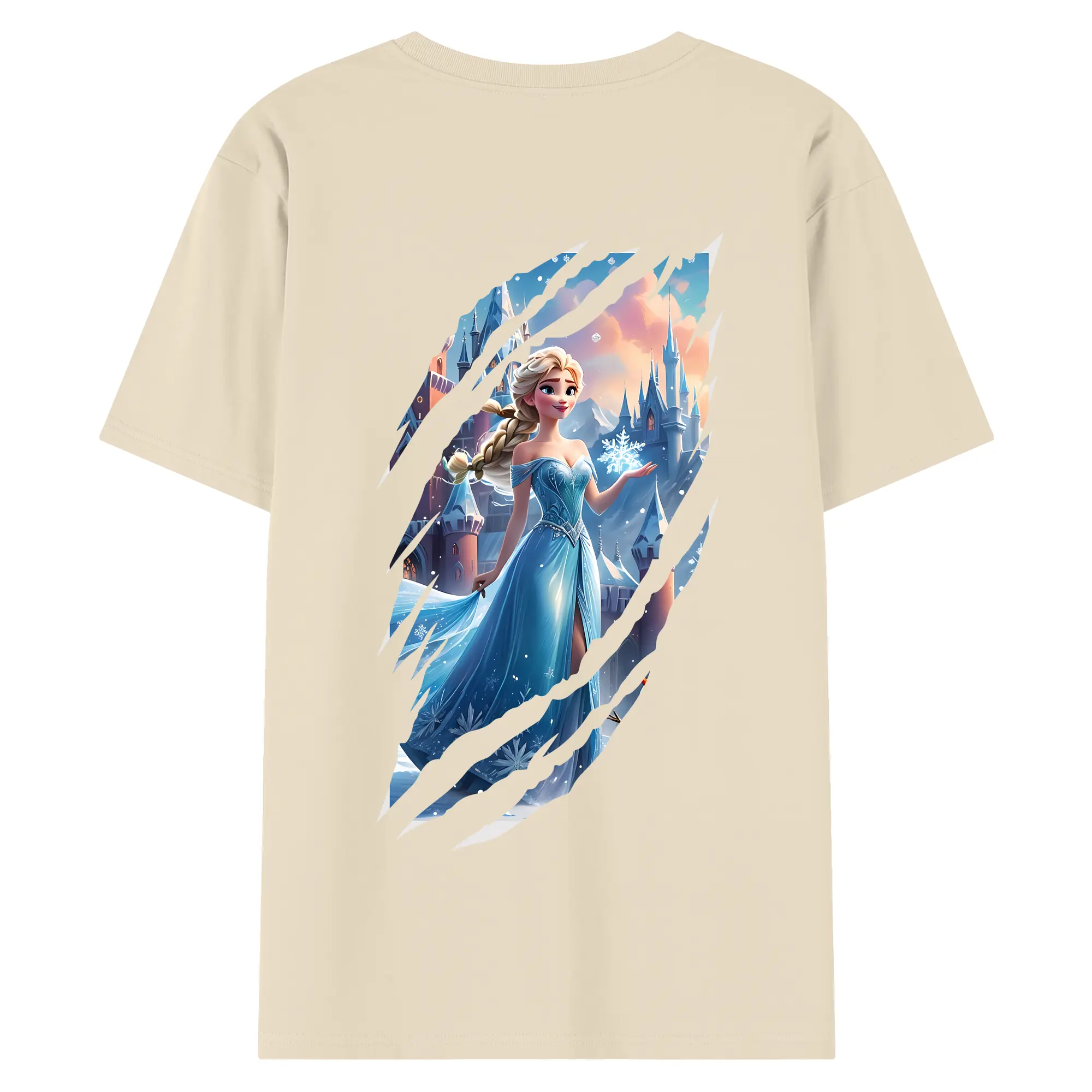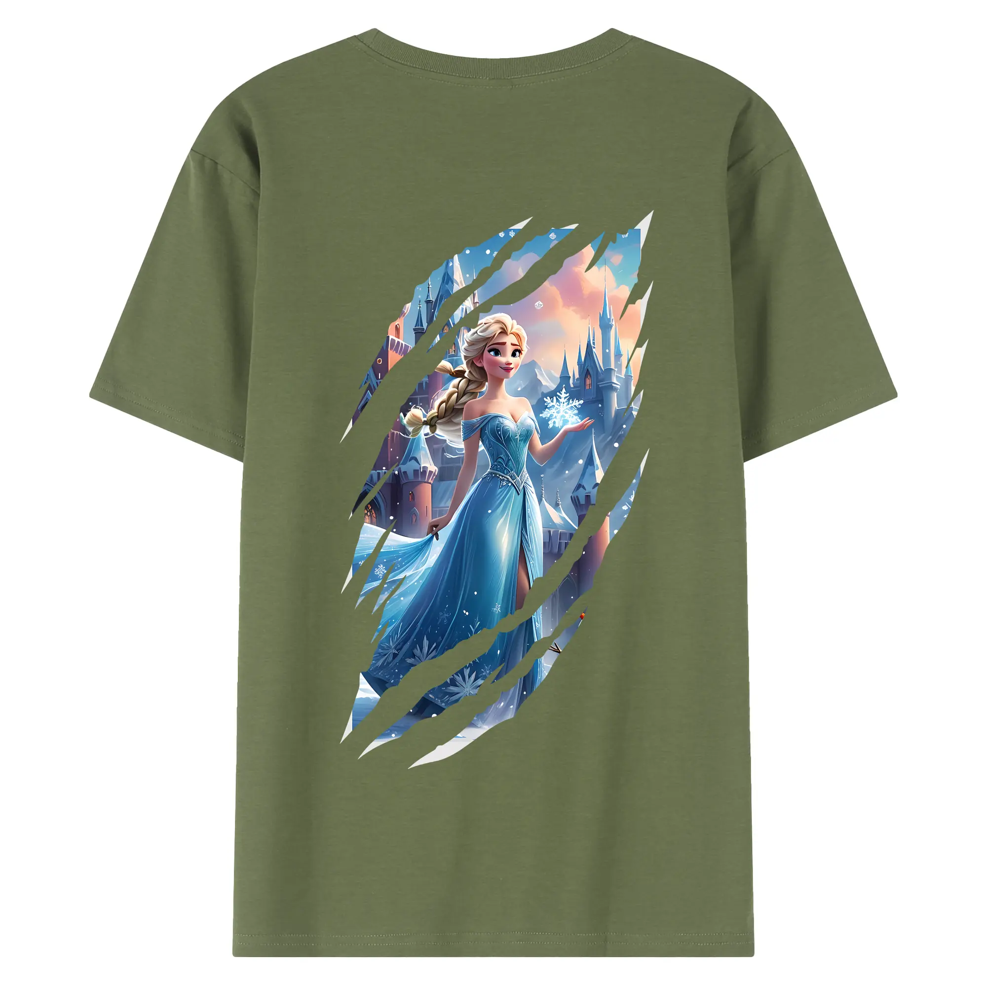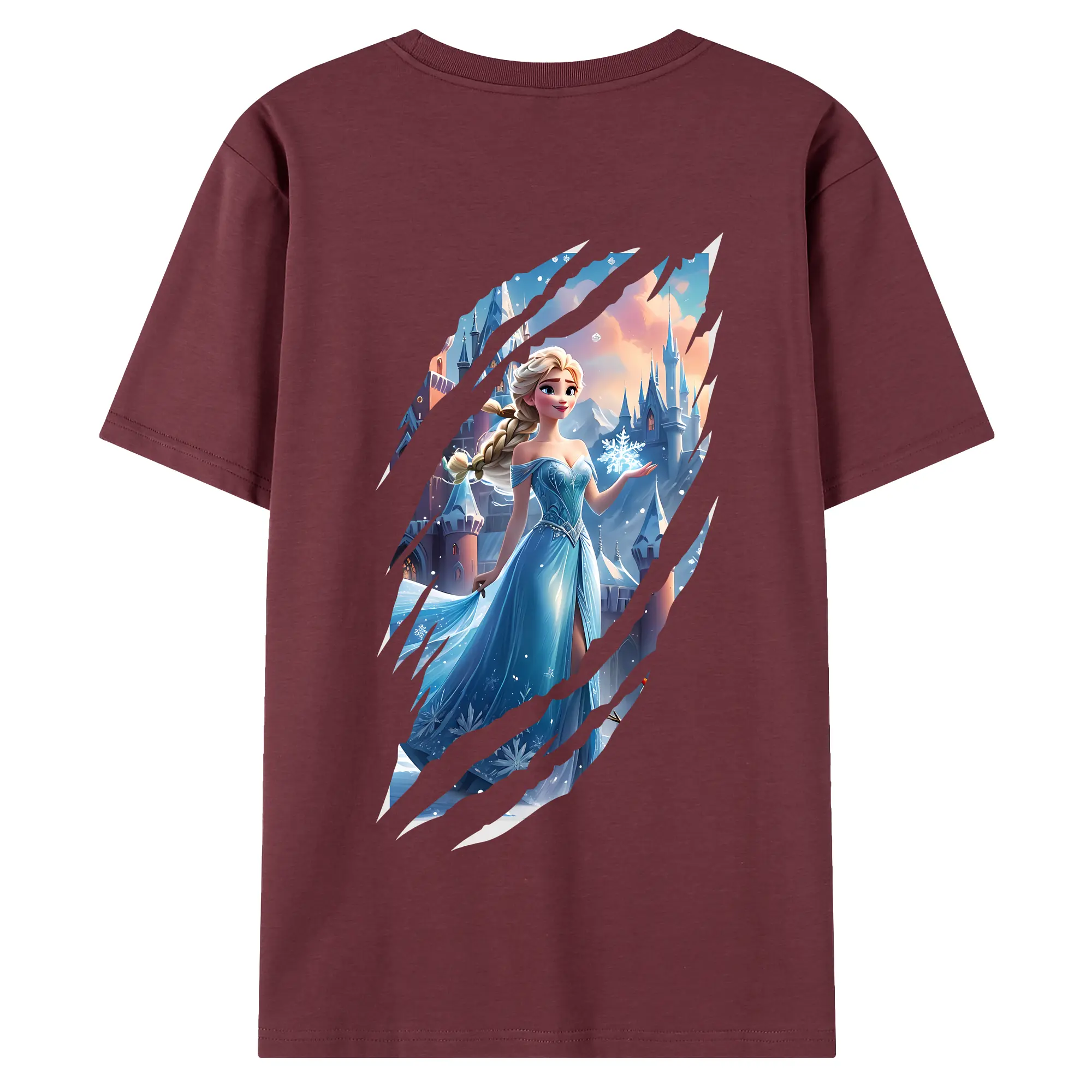 アナと雪の女王(Frozen) グッズ エルサ(Elsa) - 綿100% ヴィンテージ風 半袖Tシャツ ・ 背面プリント ・ 柔らか肌触り ・ 通気性 快適 ・ スポーツ カジュアル 外出用