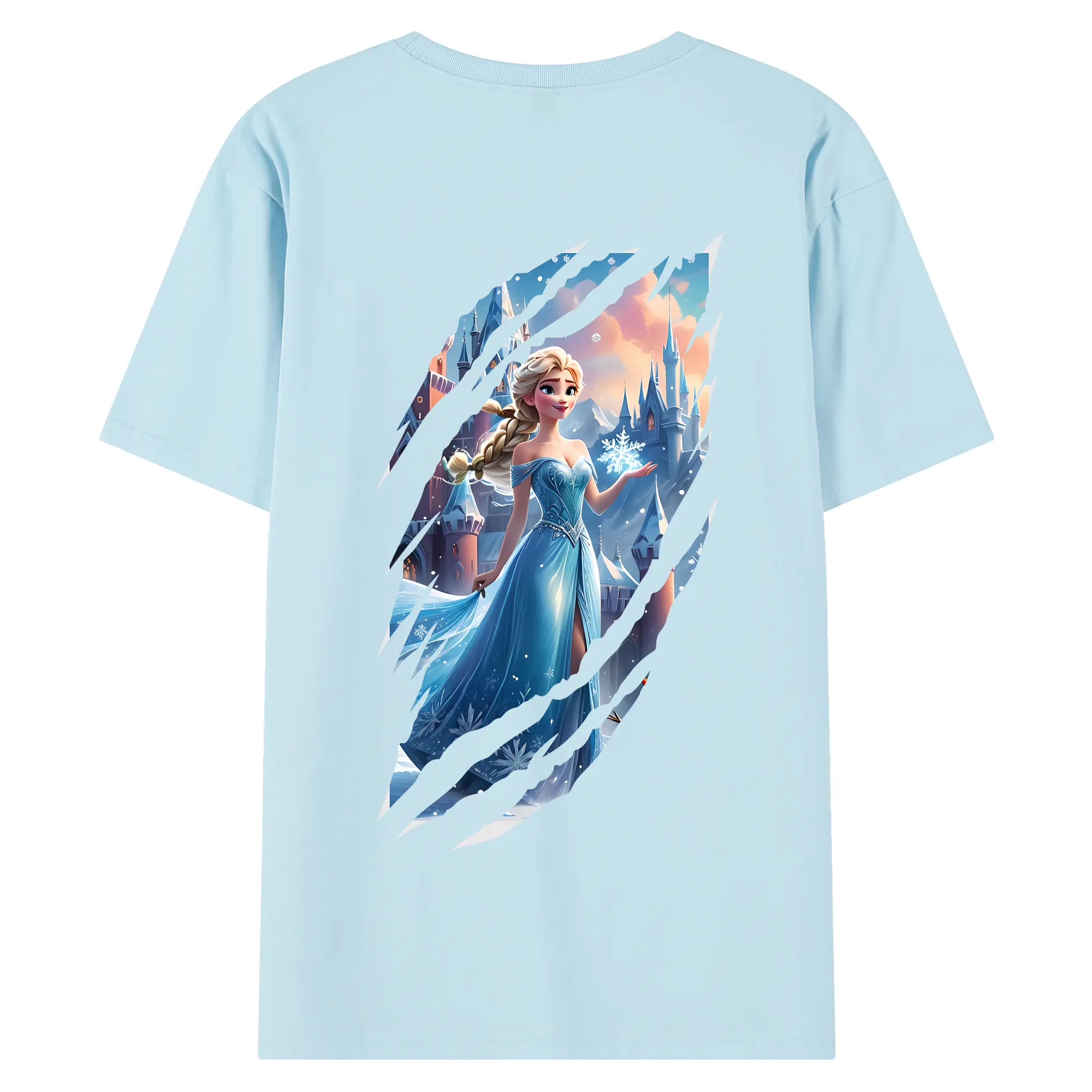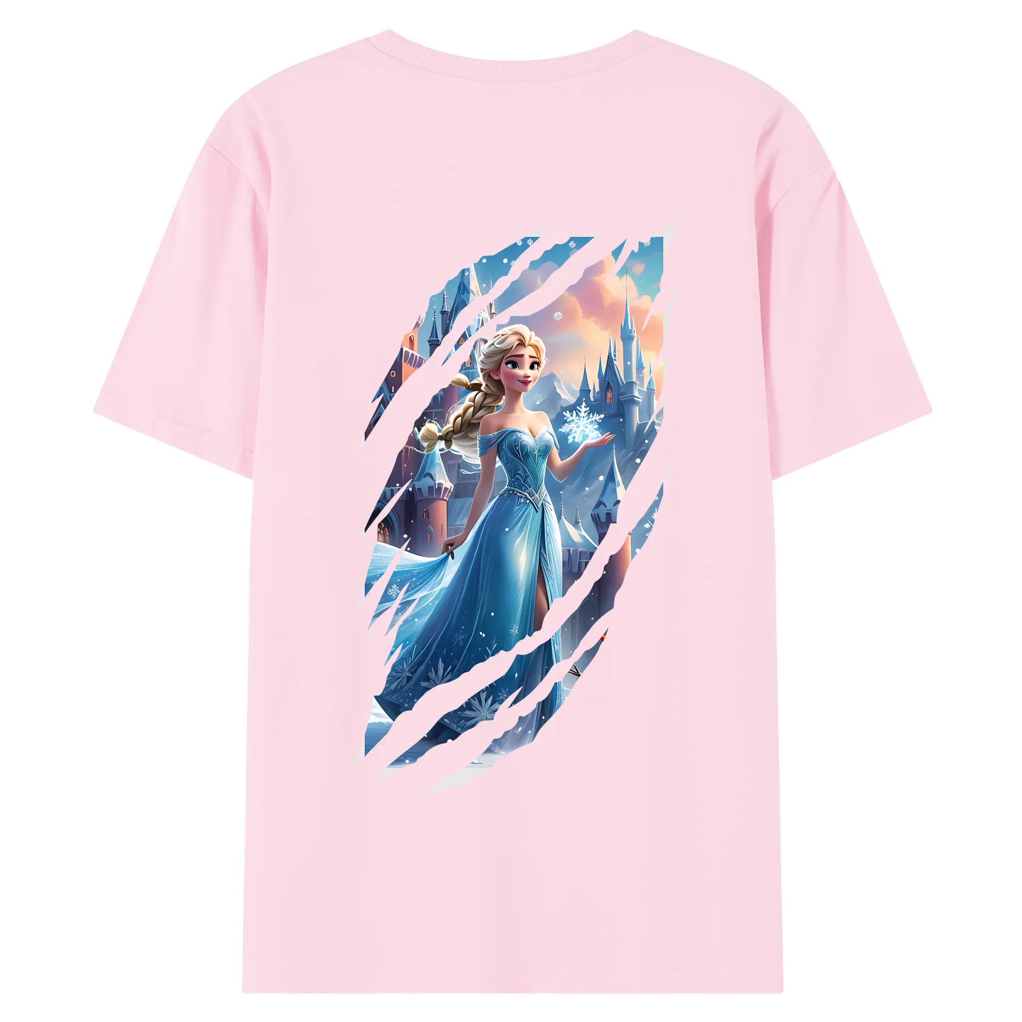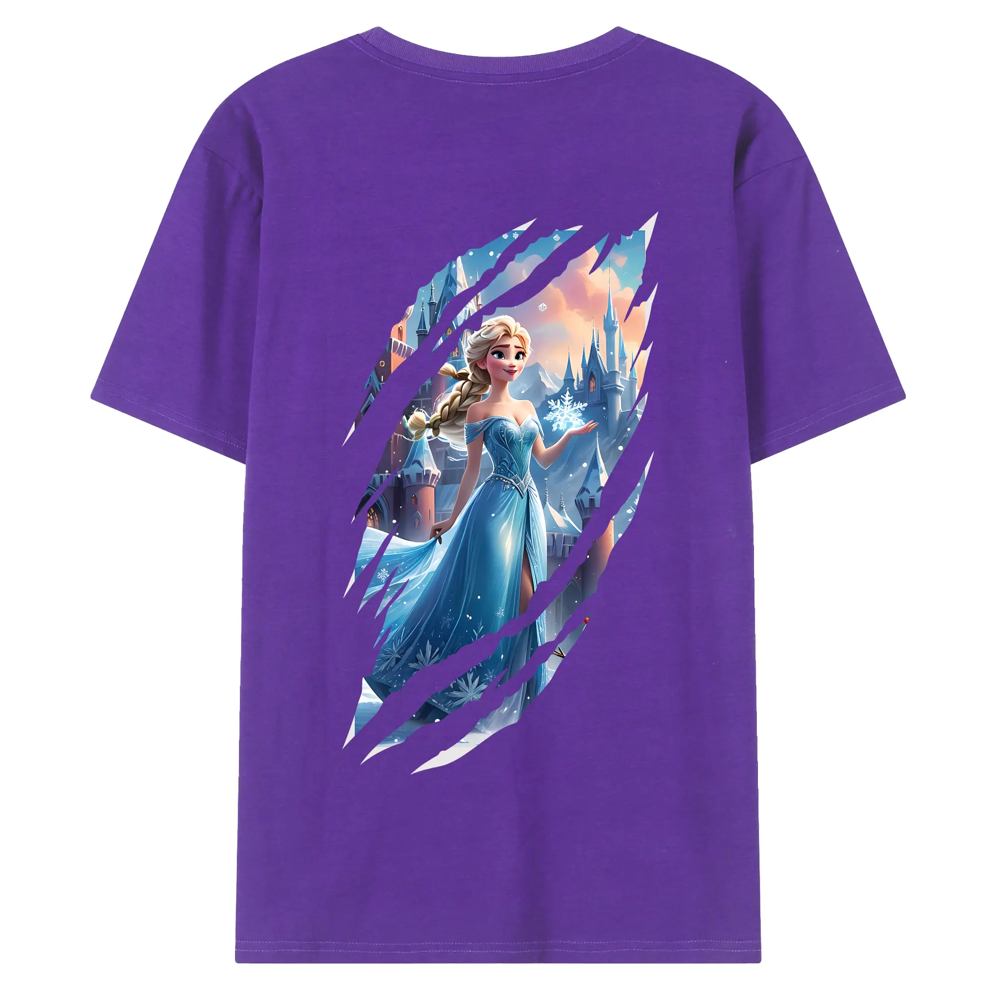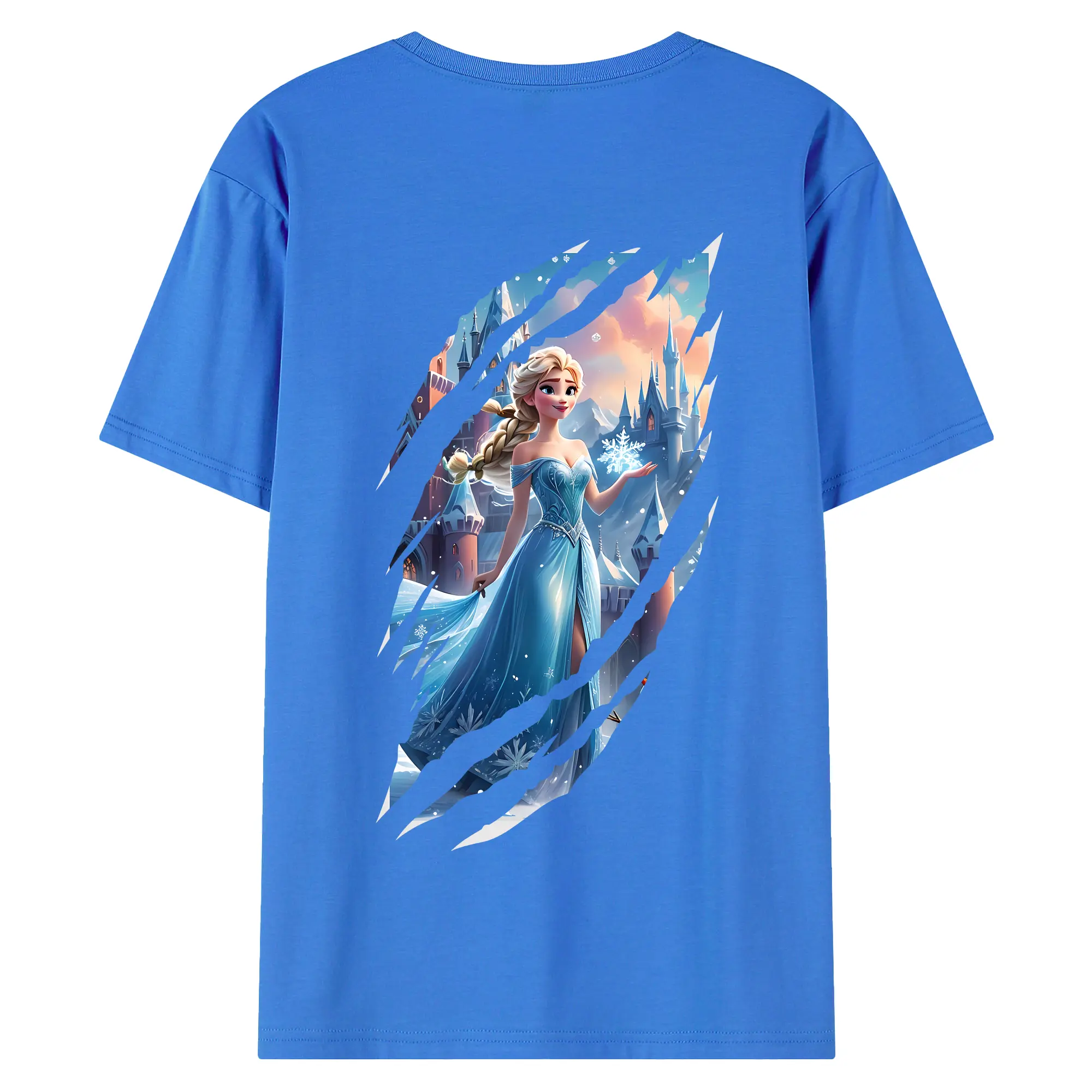 アナと雪の女王(Frozen) グッズ エルサ(Elsa) - 綿100% 半袖Tシャツ ・ フロントプリント ・ 快適 通気性 ・ 日常使い 散歩 スポーツ用