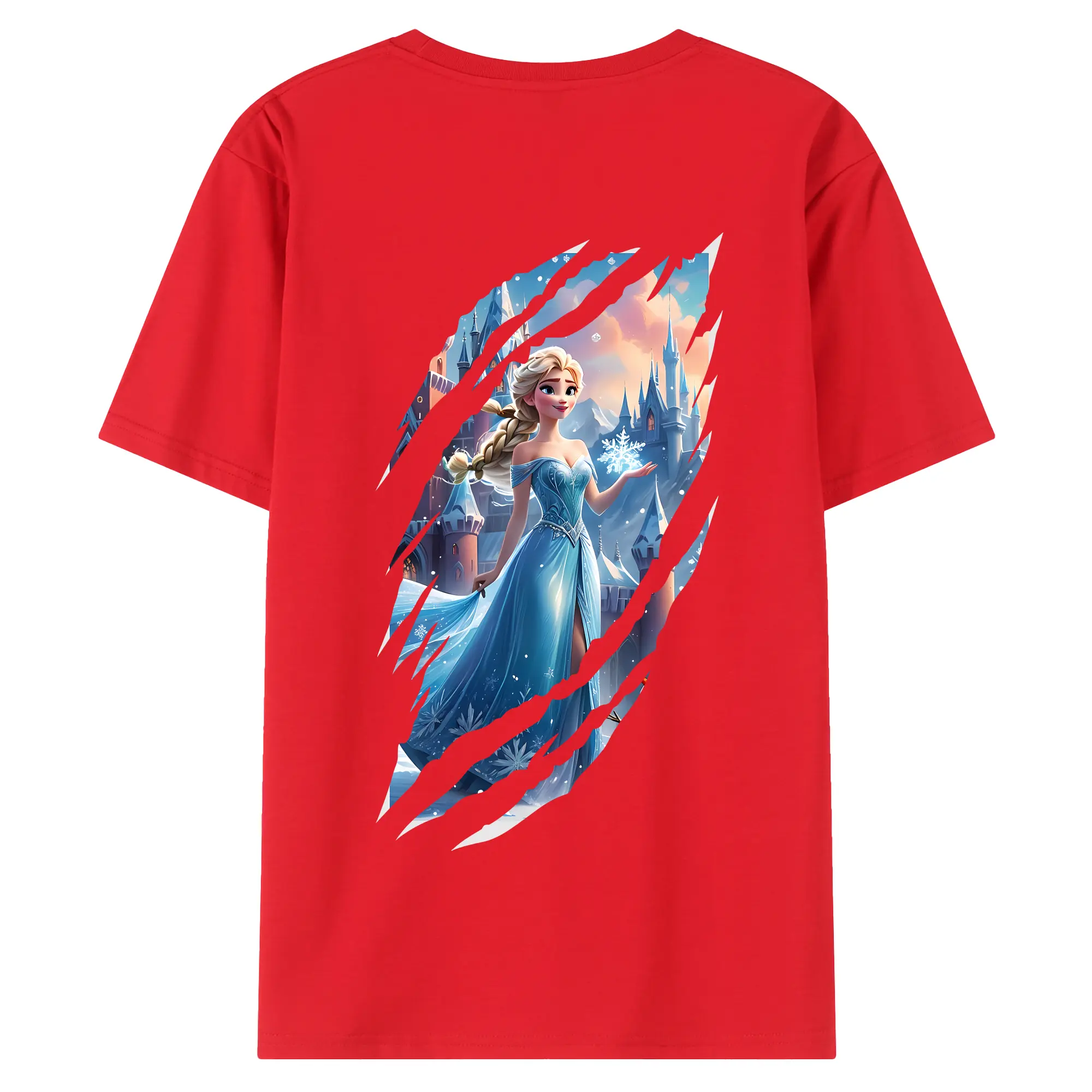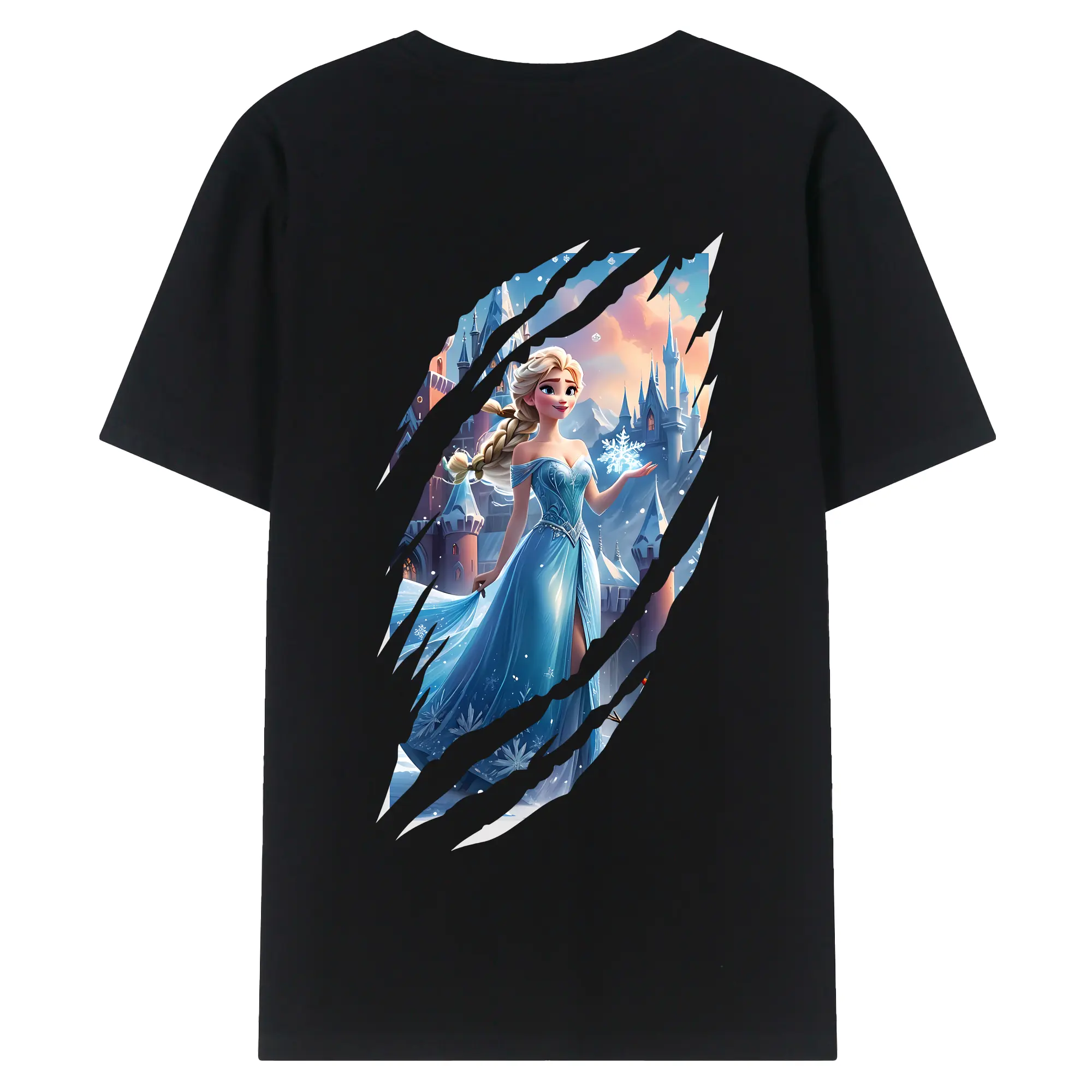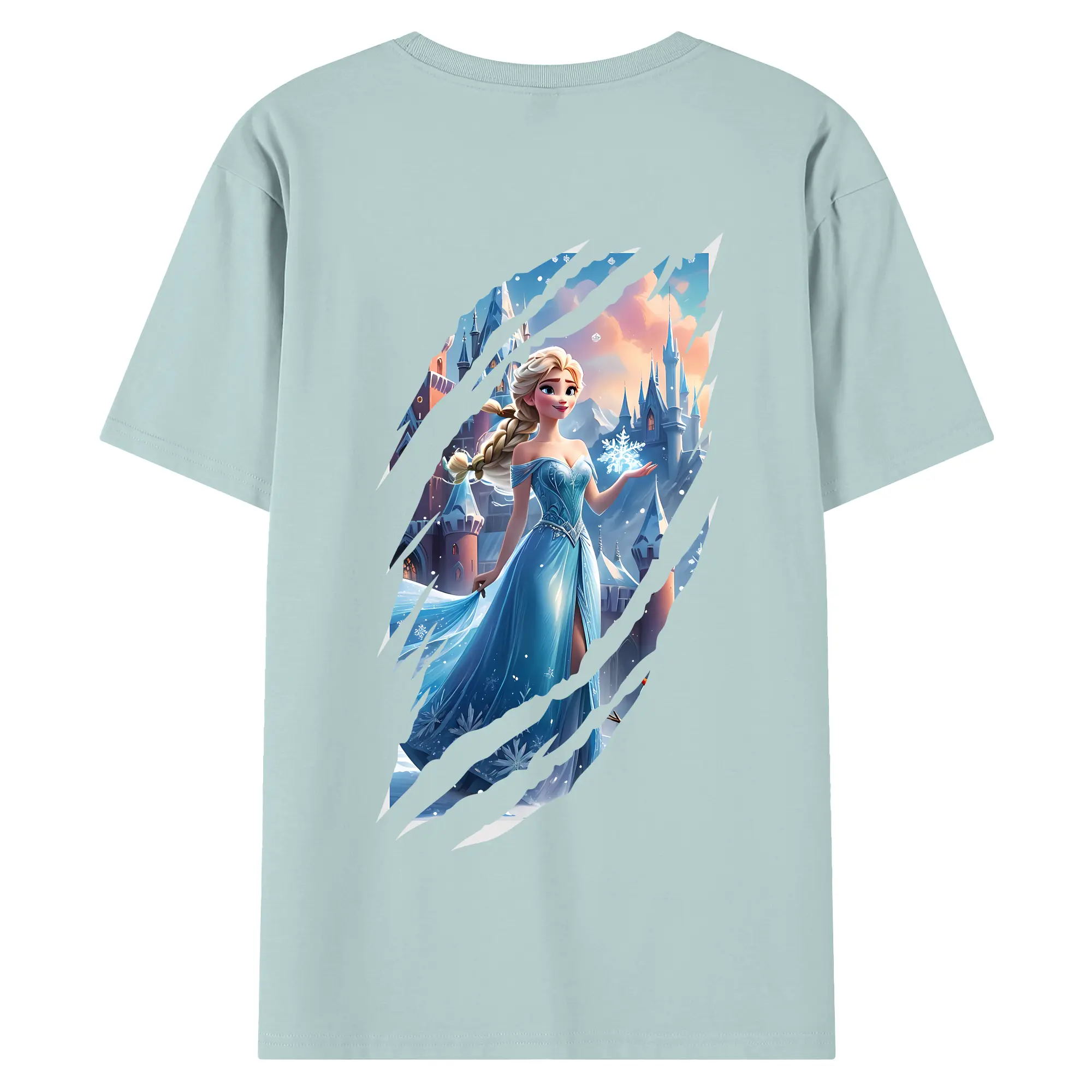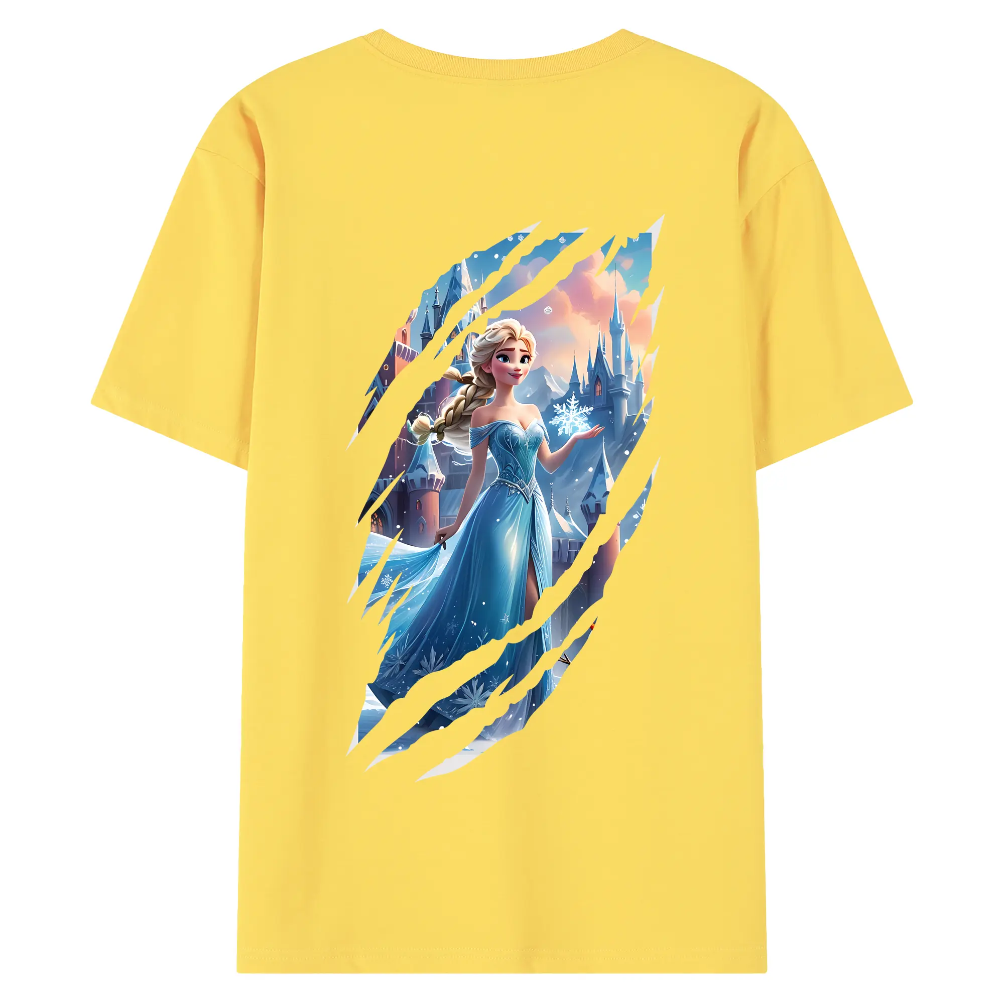 アナと雪の女王(Frozen) グッズ エルサ(Elsa) - 綿100% 半袖Tシャツ ・ フロントプリント ・ 快適 通気性 ・ 日常使い 散歩 スポーツ用