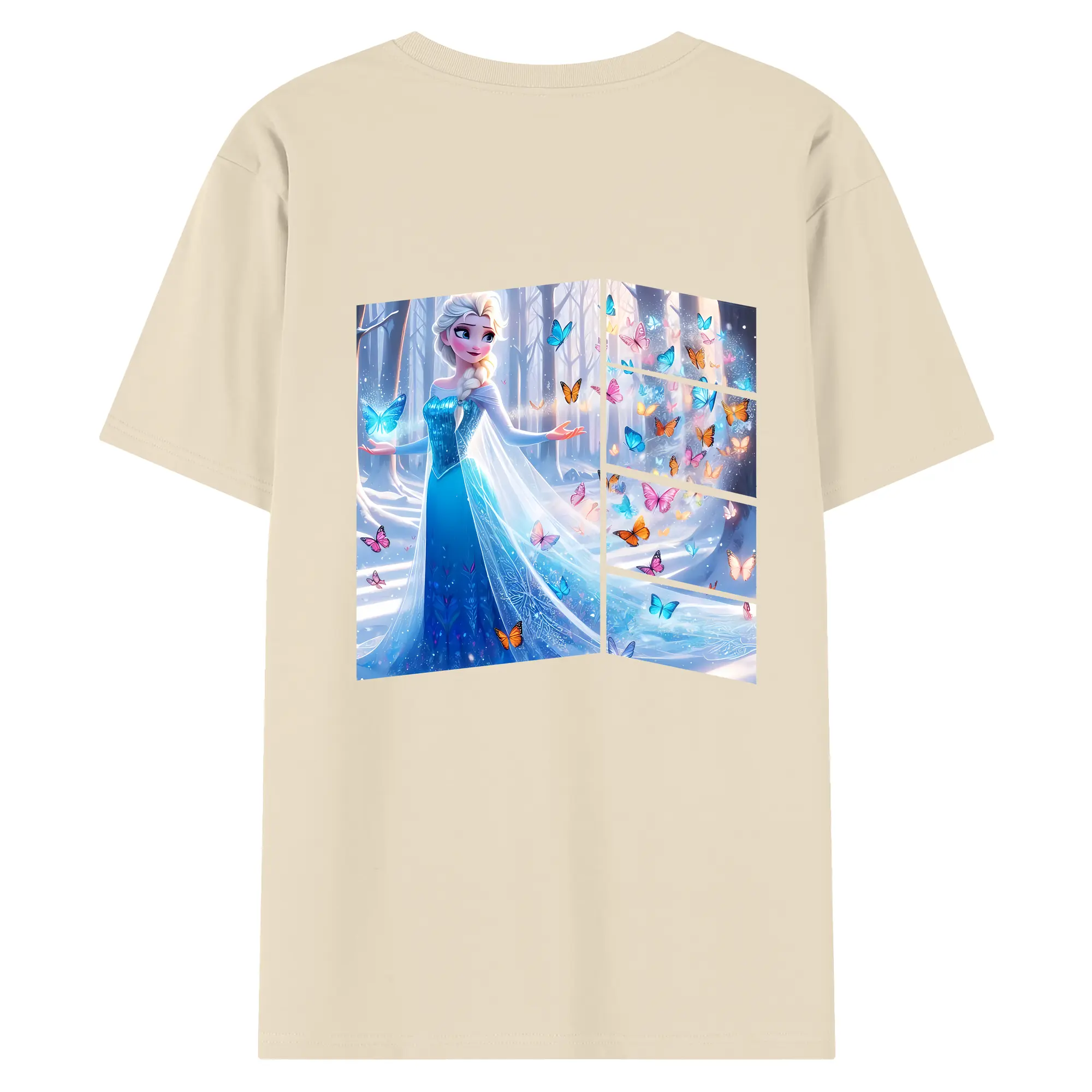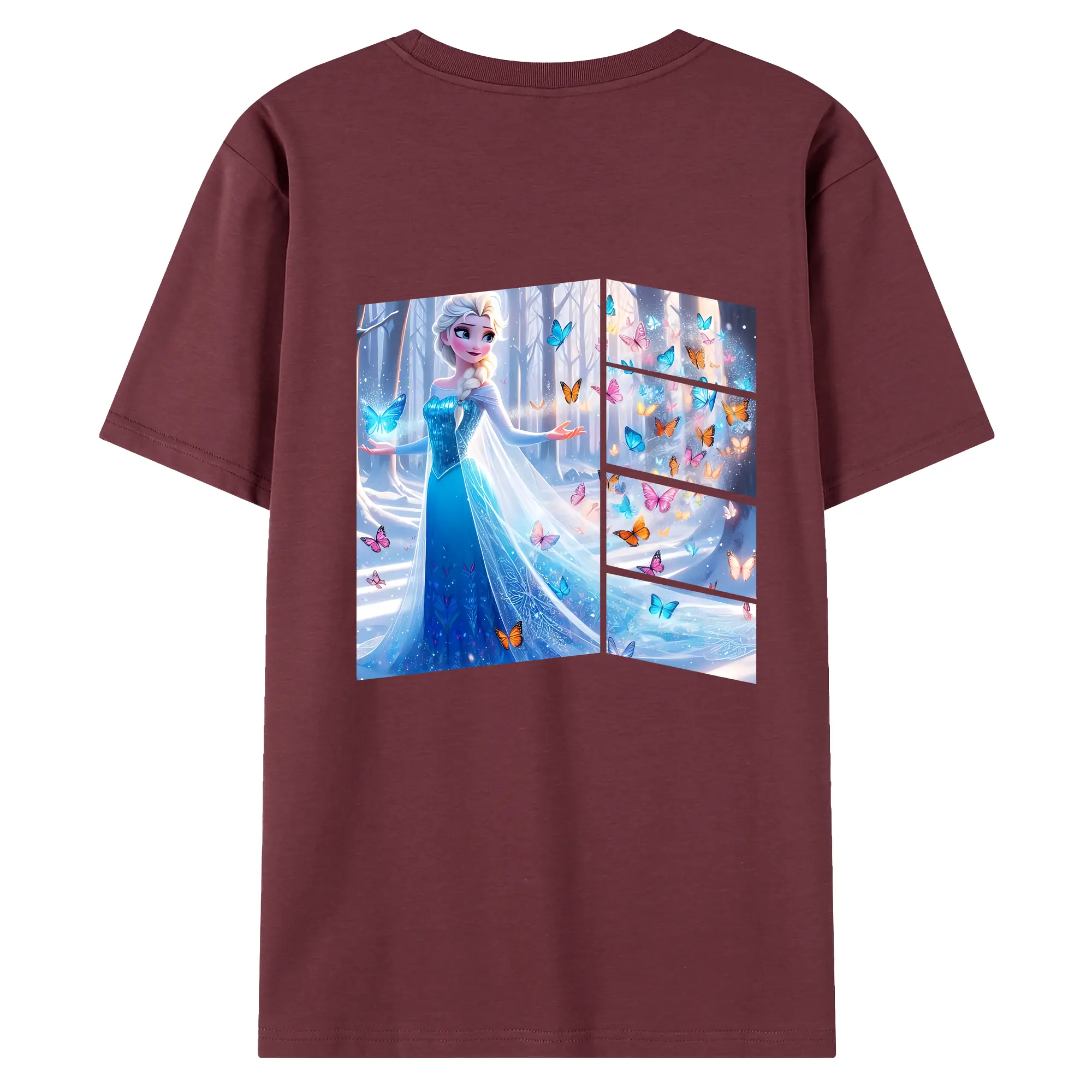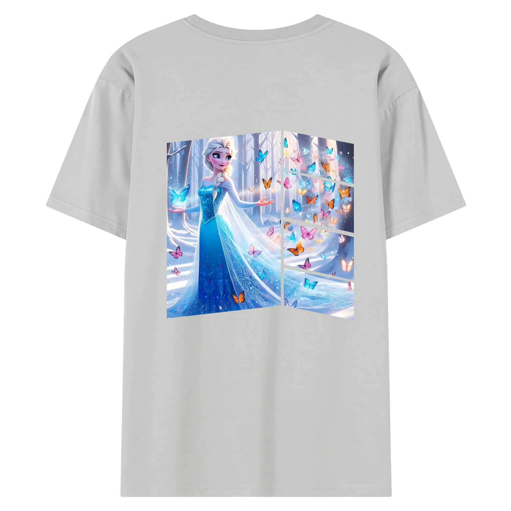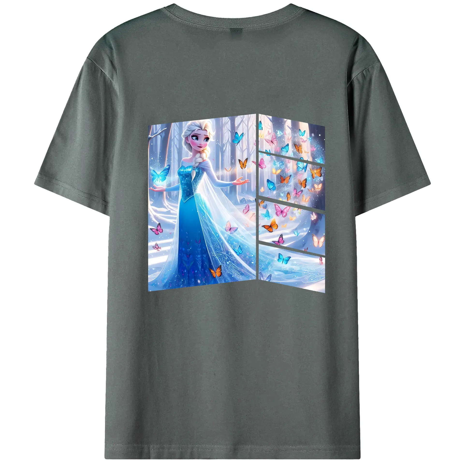 アナと雪の女王(Frozen) グッズ エルサ(Elsa) - 綿100% 半袖Tシャツ ・ バックプリント ・ 快適 通気性 ・ 日常使い 散歩 スポーツ用