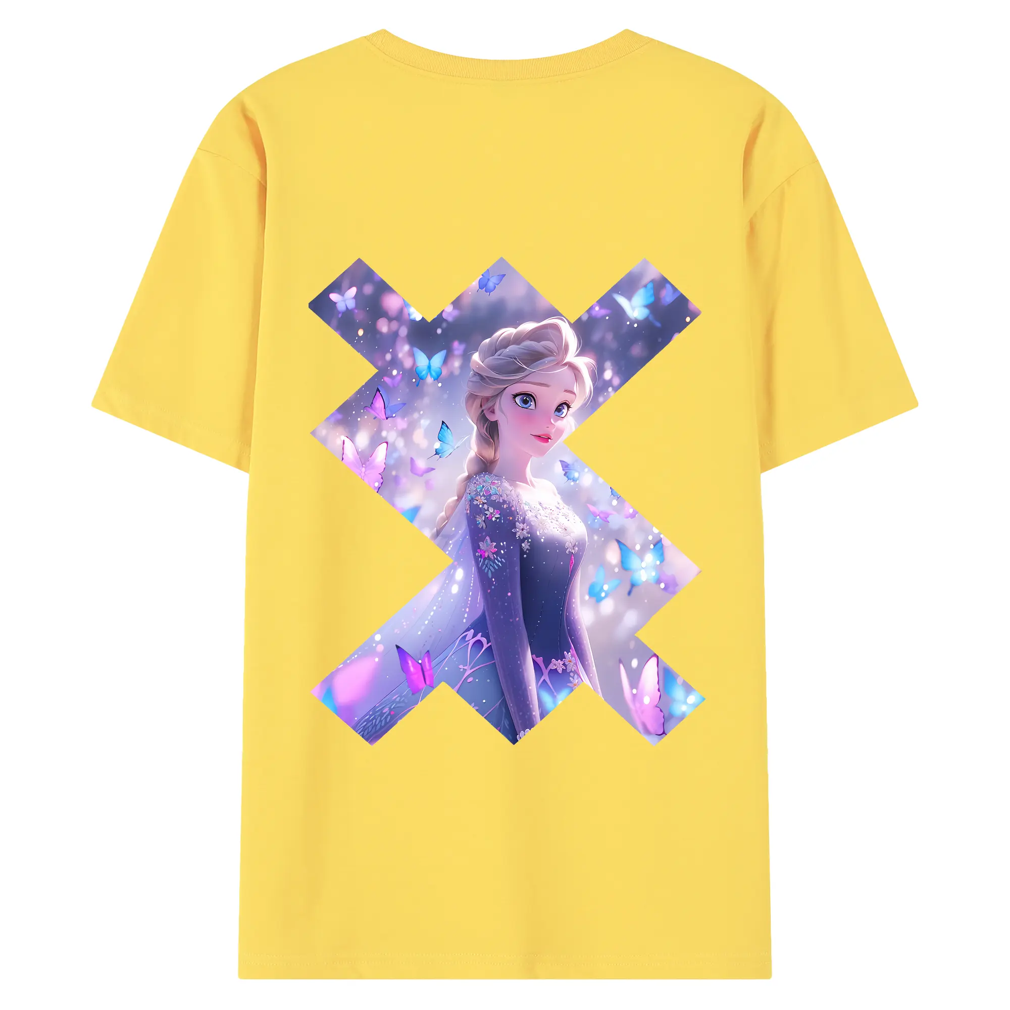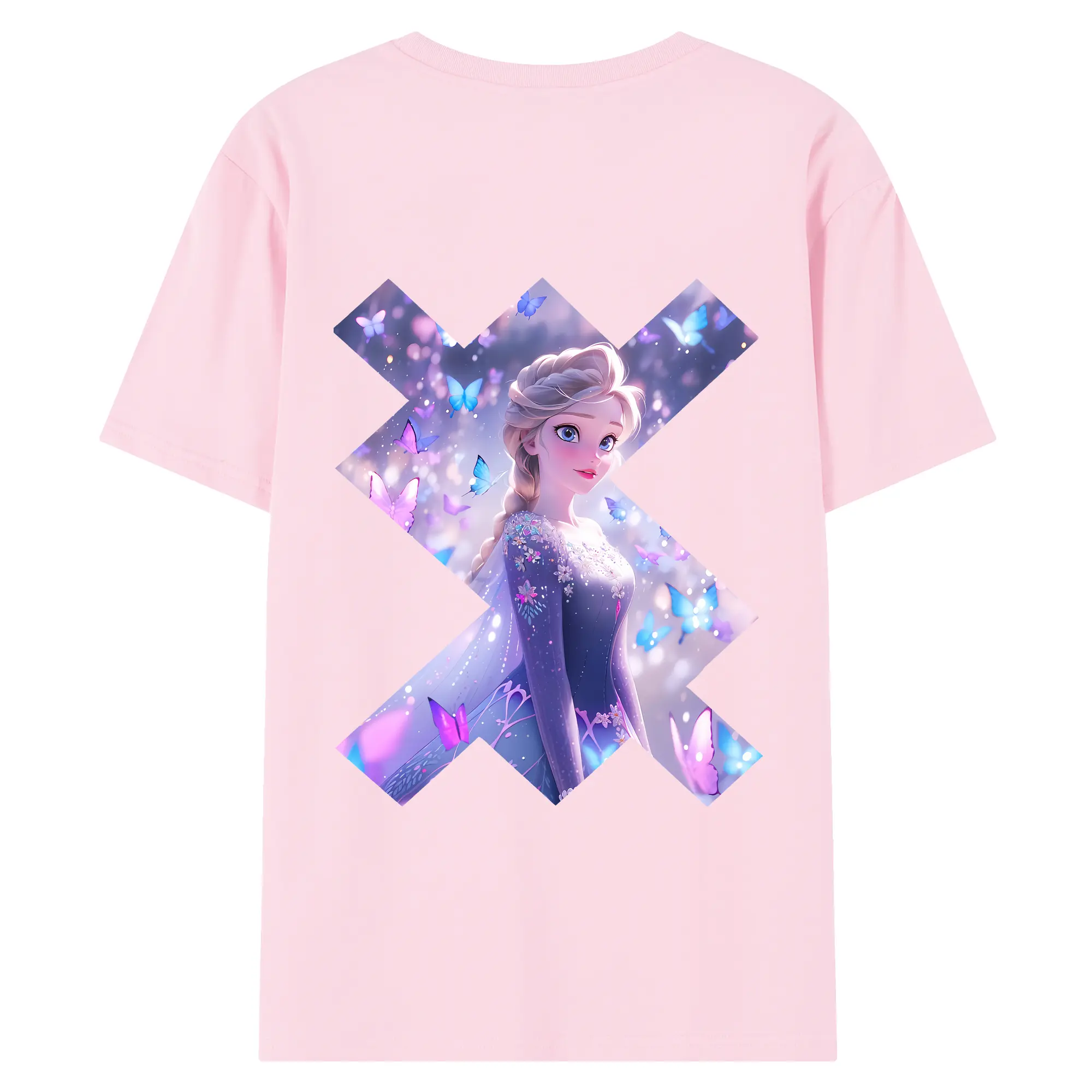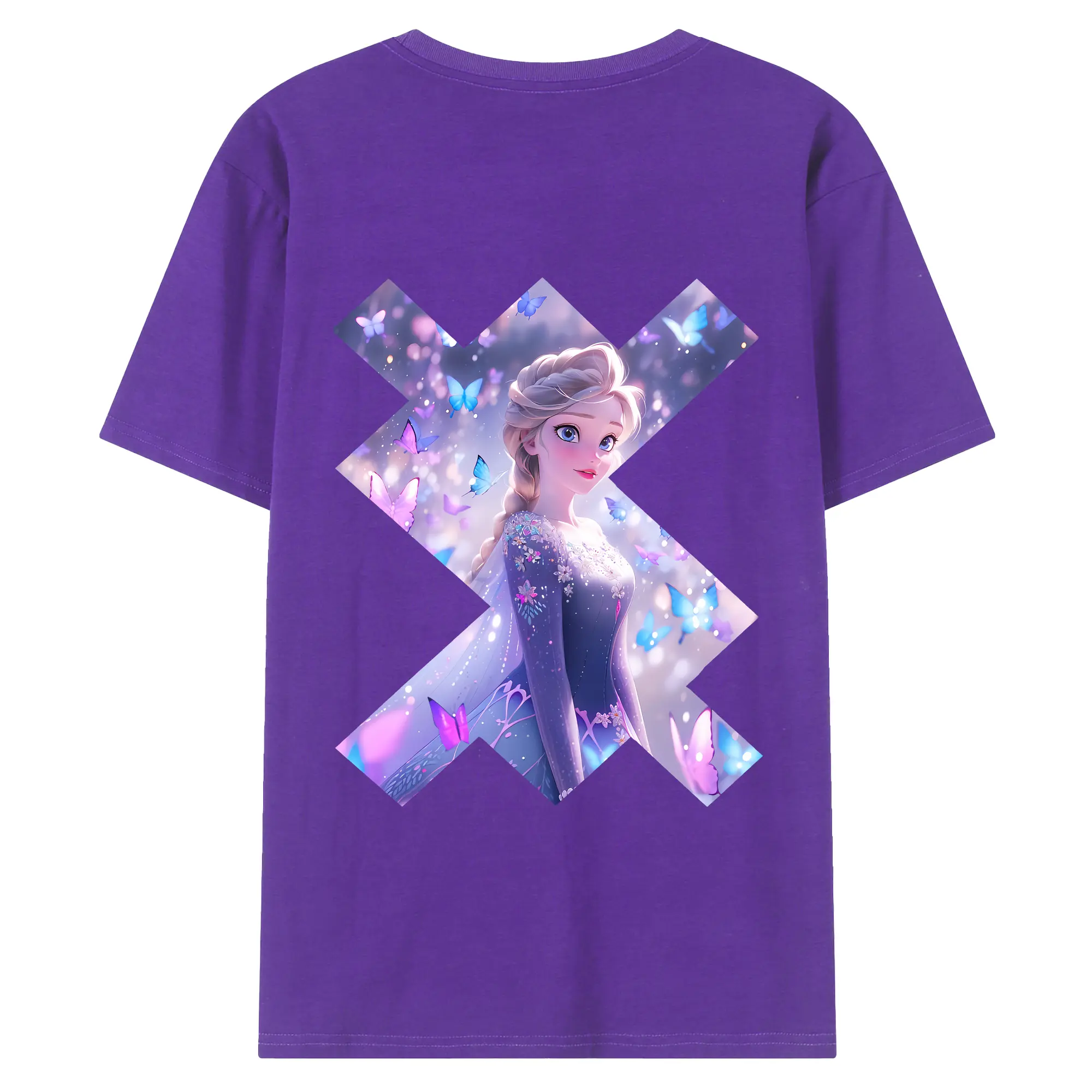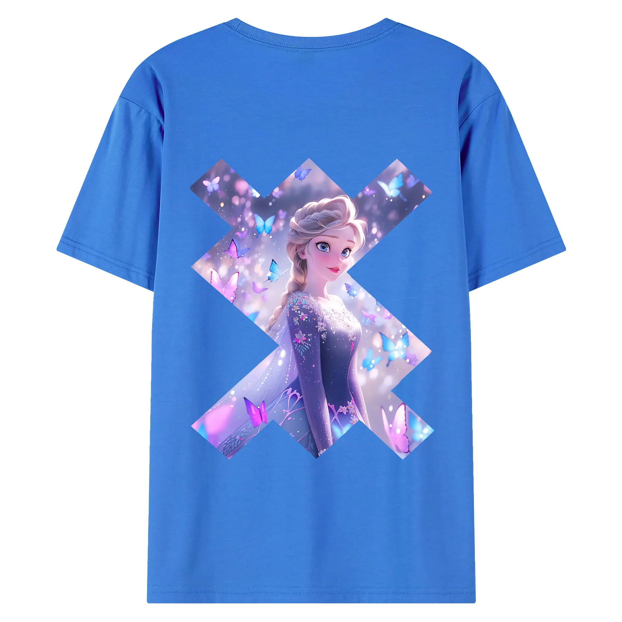 アナと雪の女王(Frozen) グッズ エルサ(Elsa) - 綿100% 半袖Tシャツ ・ フロントプリント ・ 快適 通気性 ・ 日常使い 散歩 スポーツ用