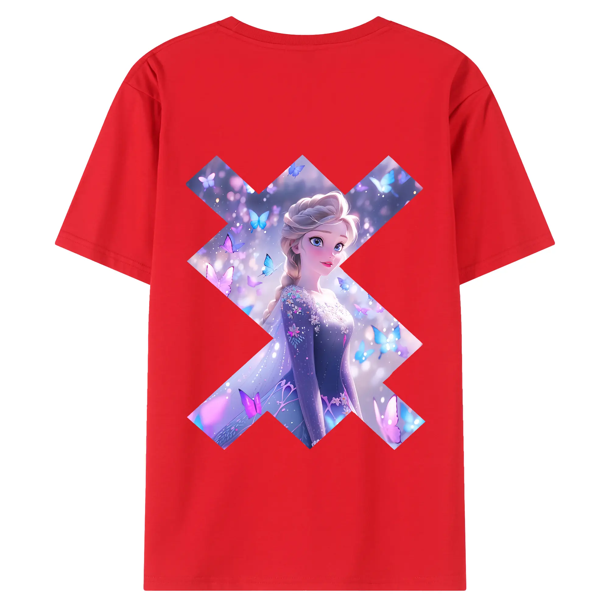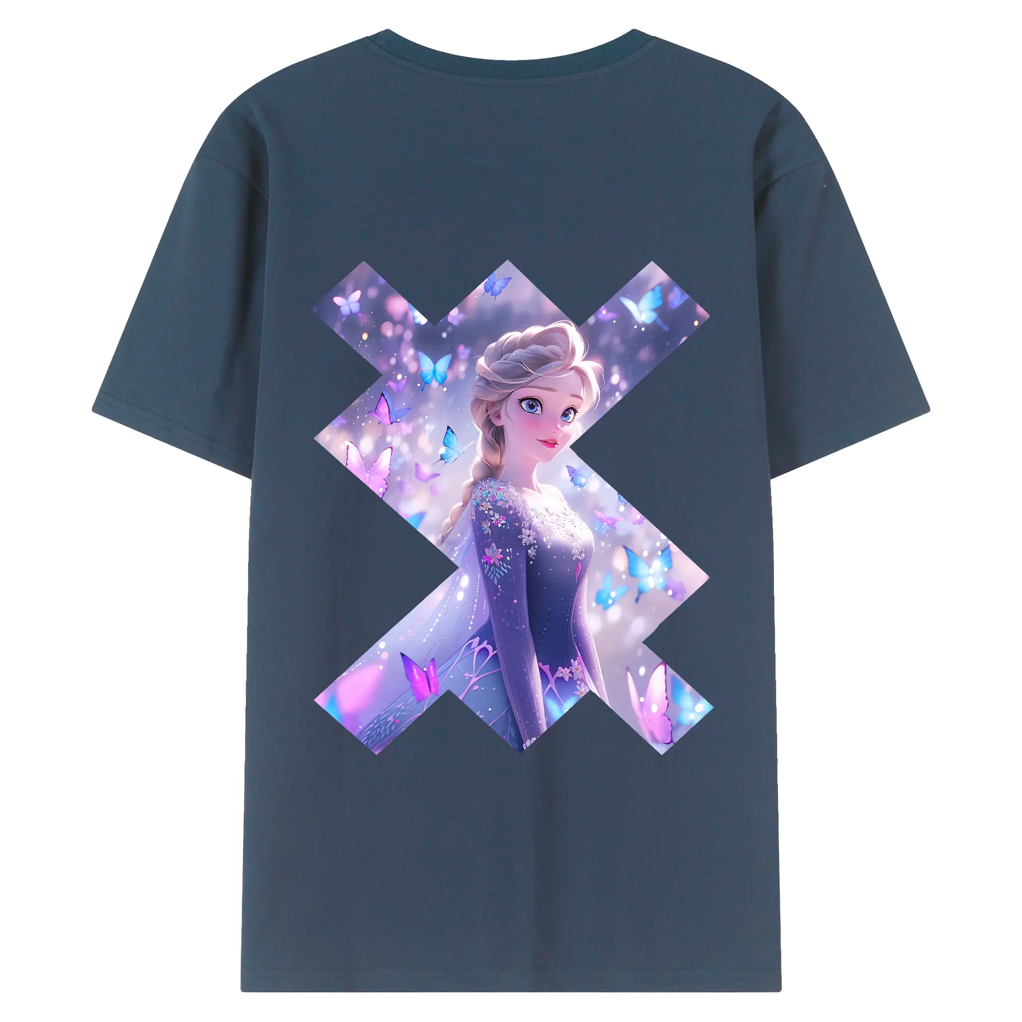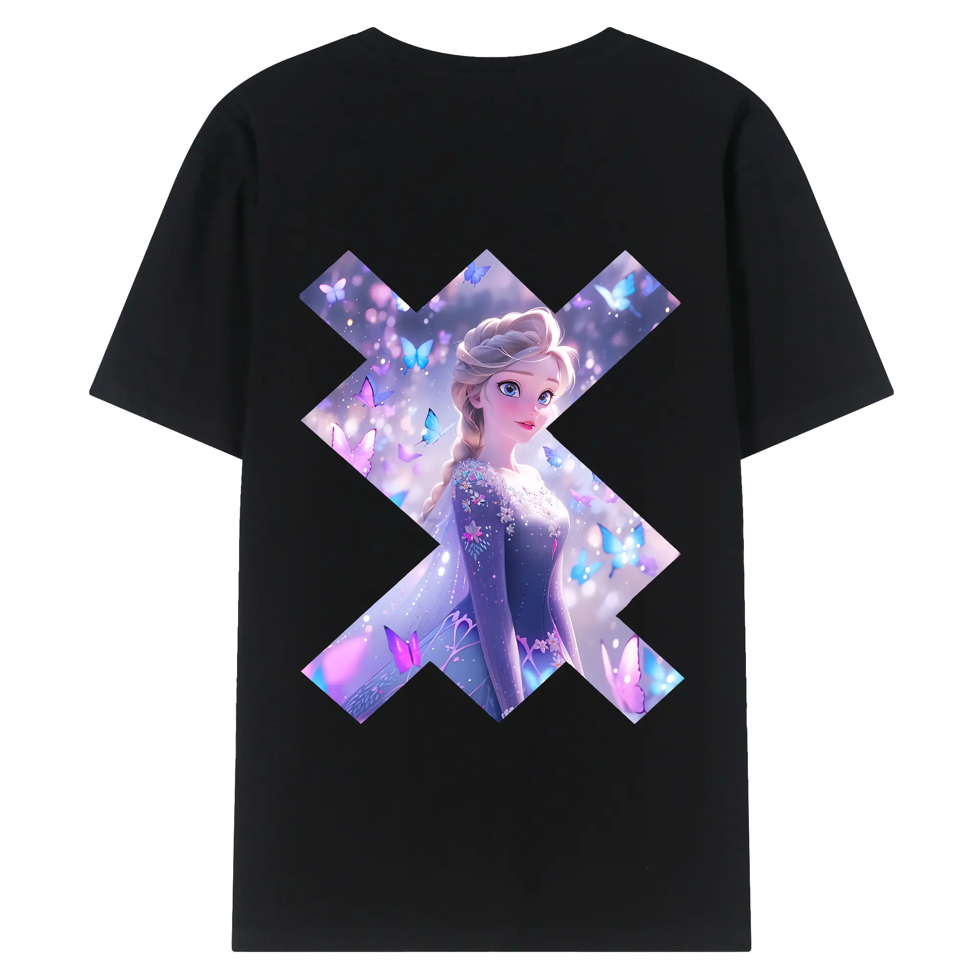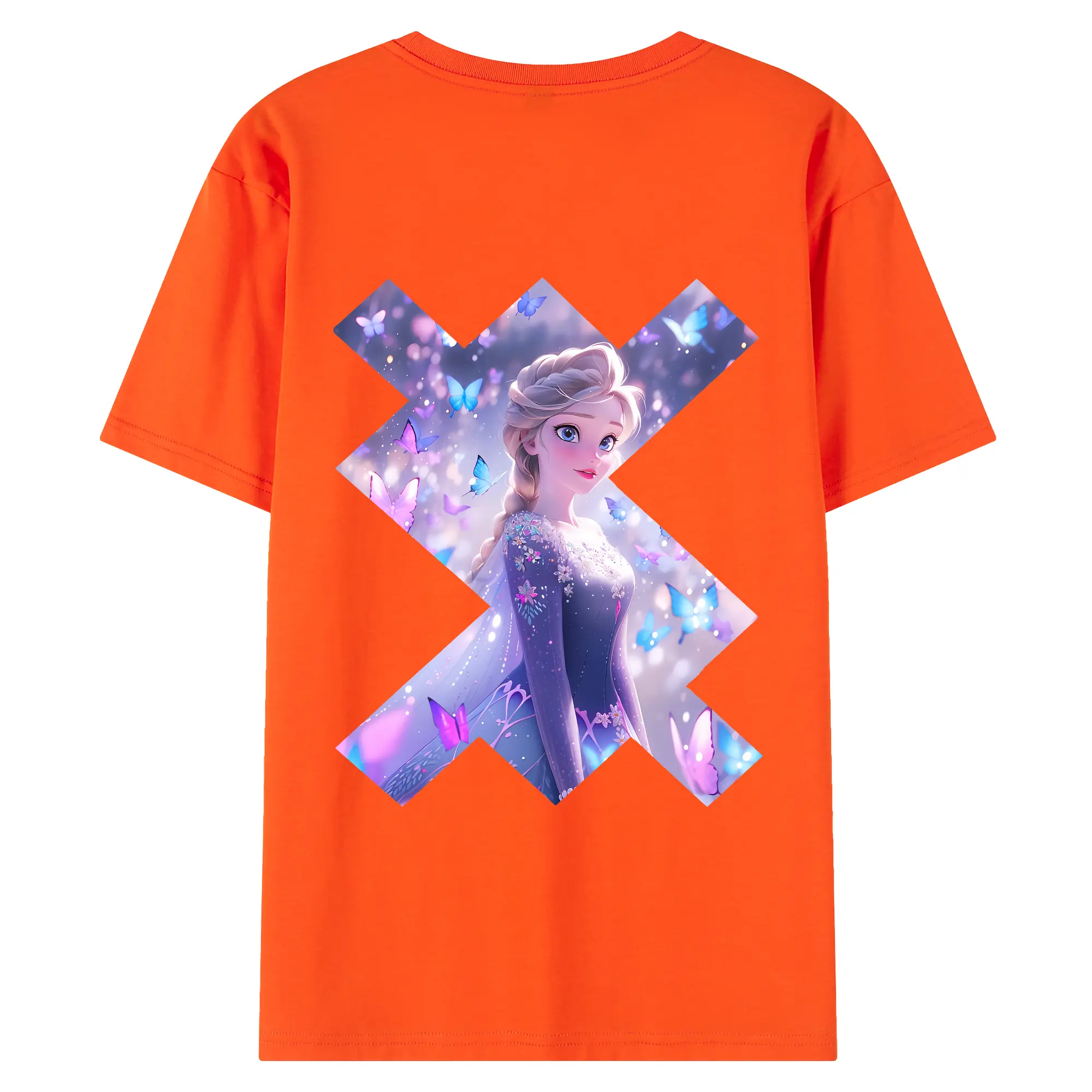 アナと雪の女王(Frozen) グッズ エルサ(Elsa) - 綿100% 半袖Tシャツ ・ フロントプリント ・ 快適 通気性 ・ 日常使い 散歩 スポーツ用